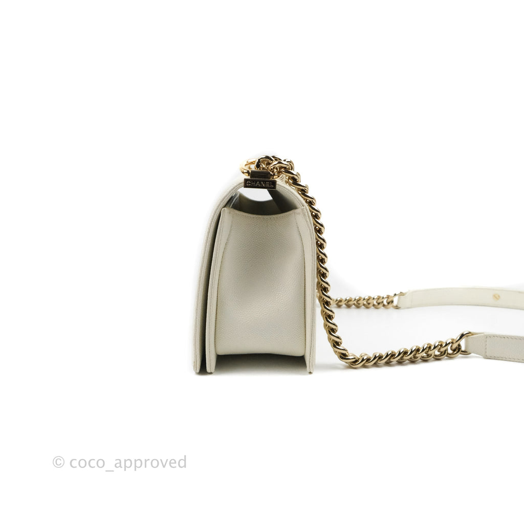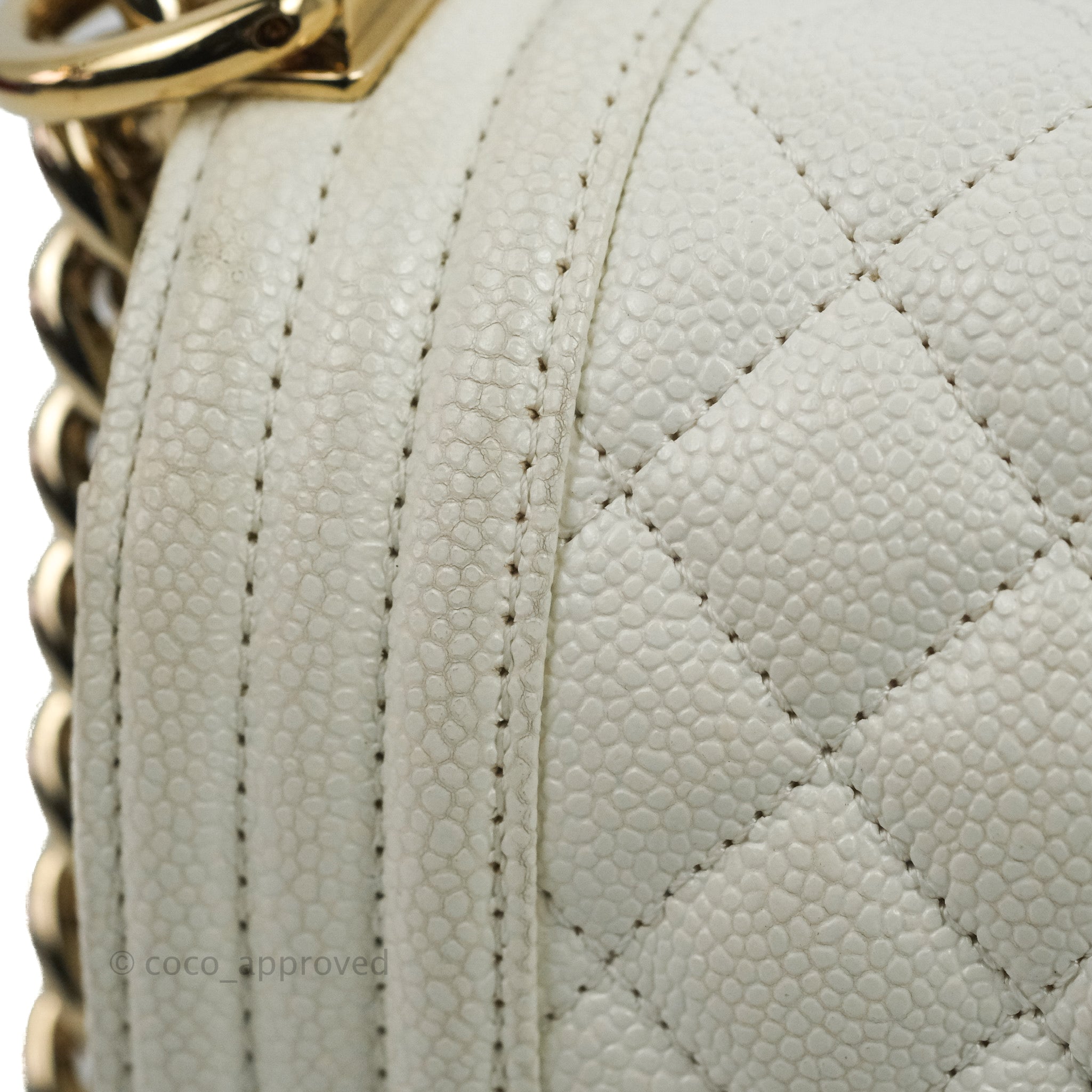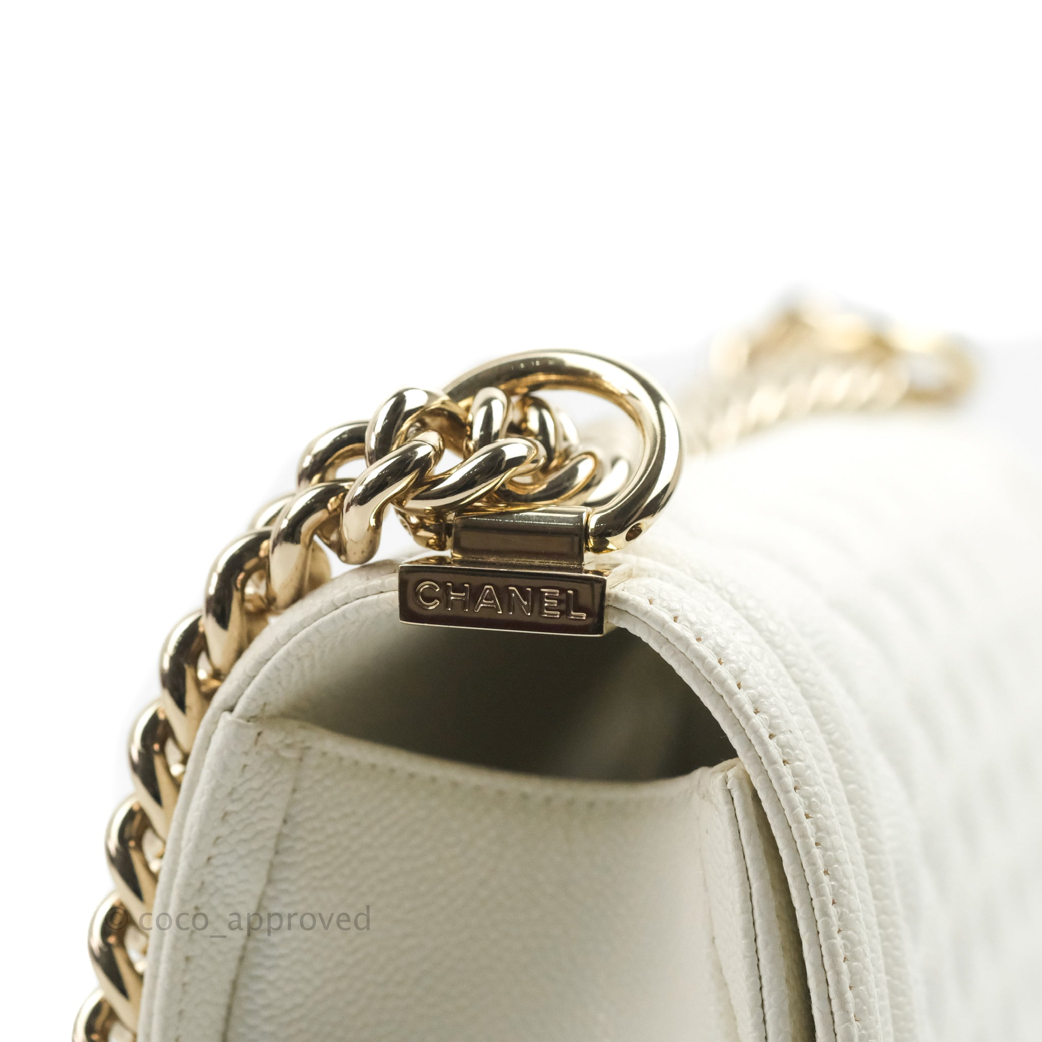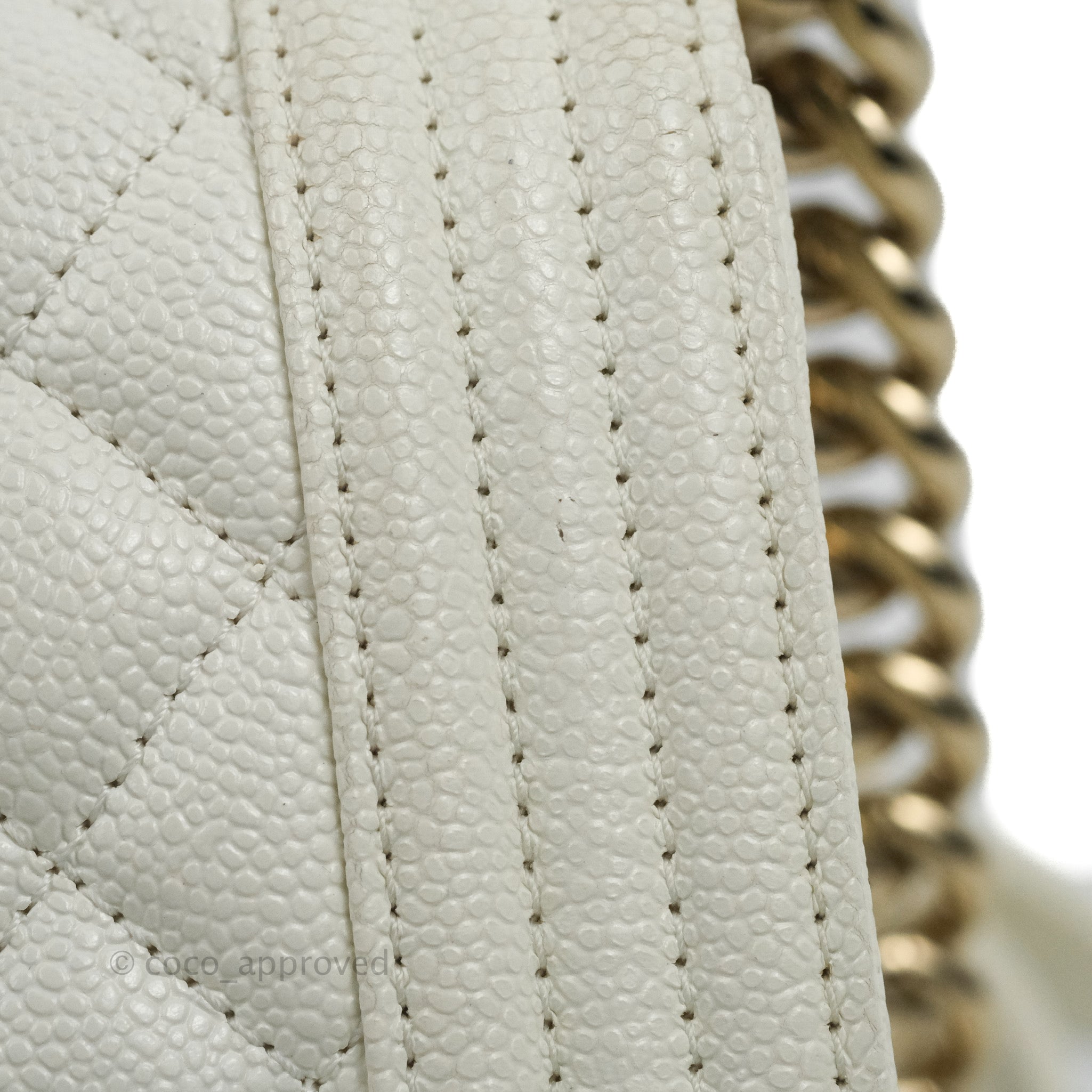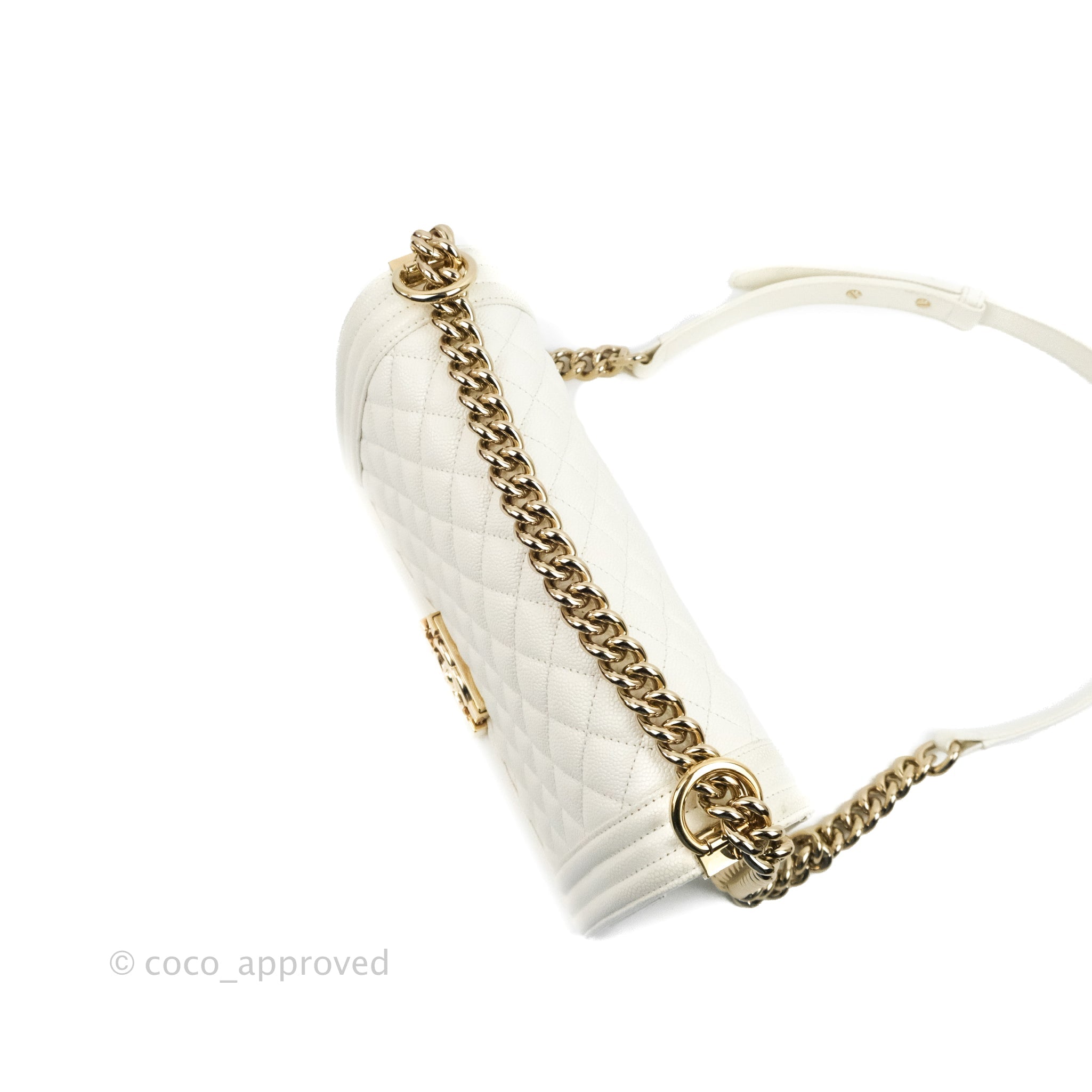 Chanel Quilted Medium Boy White Caviar Gold Hardware