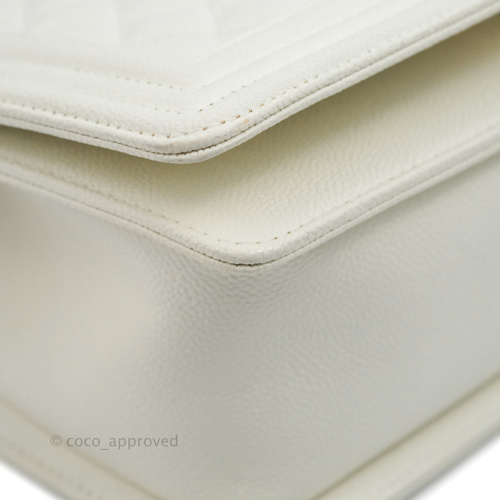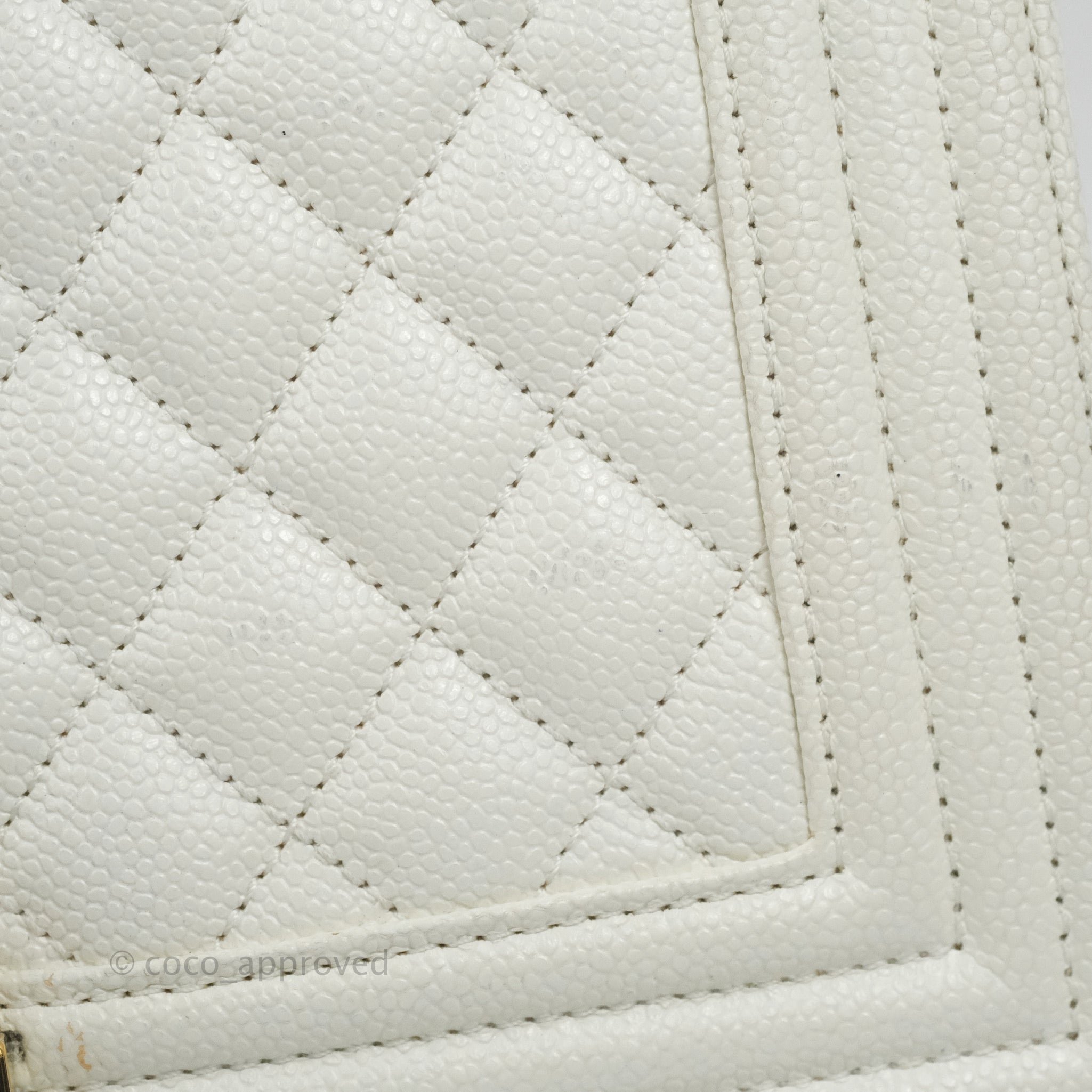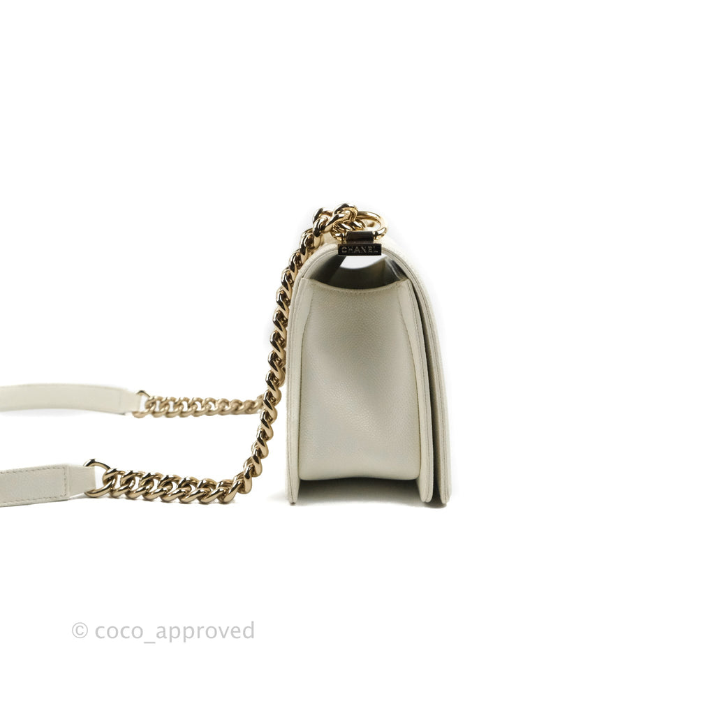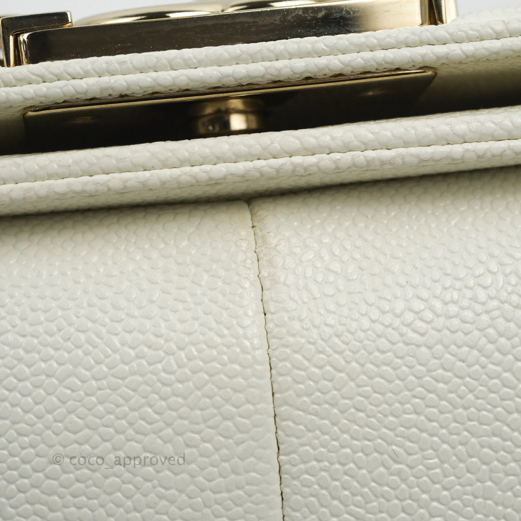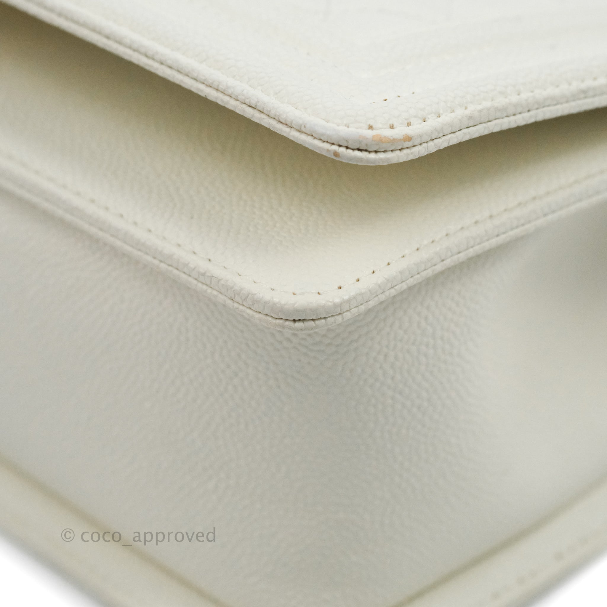 Chanel Quilted Medium Boy White Caviar Gold Hardware