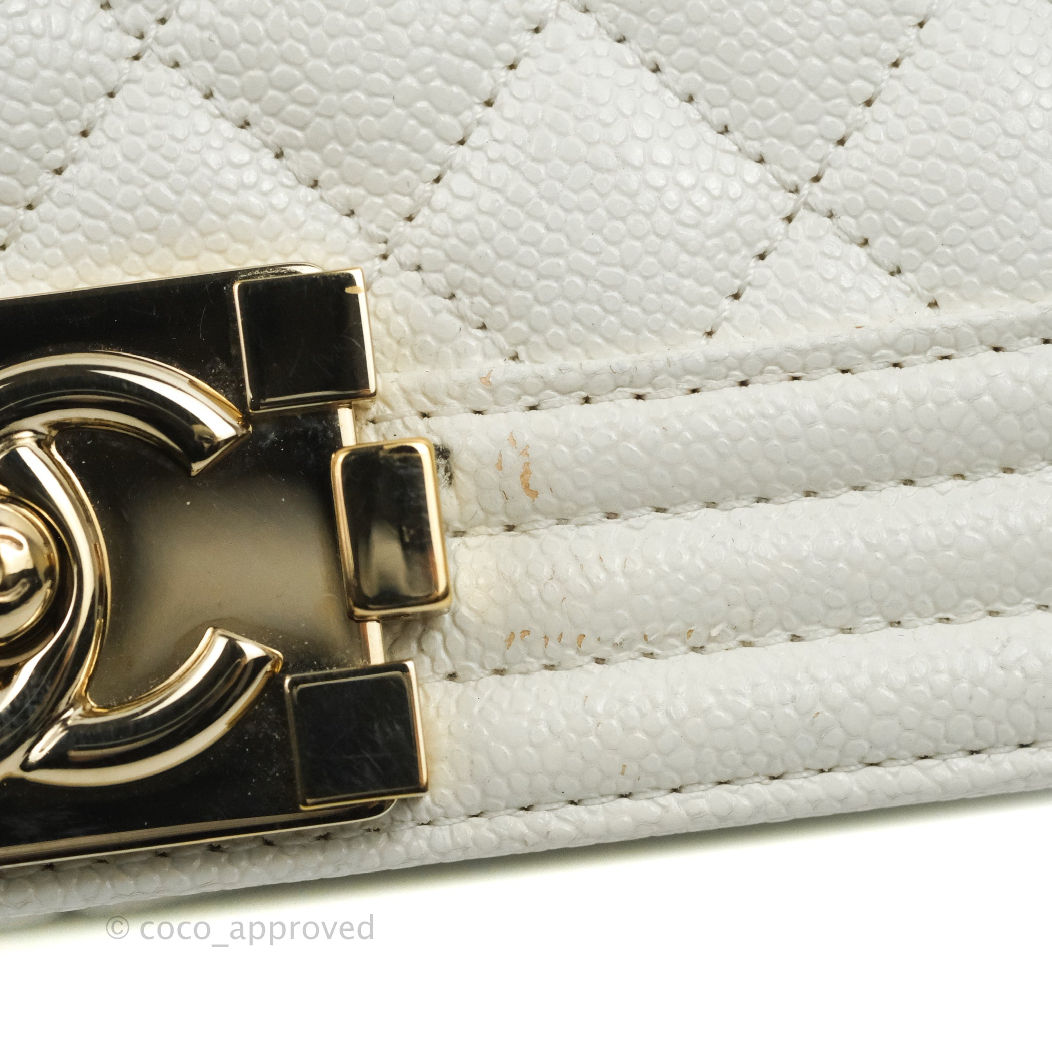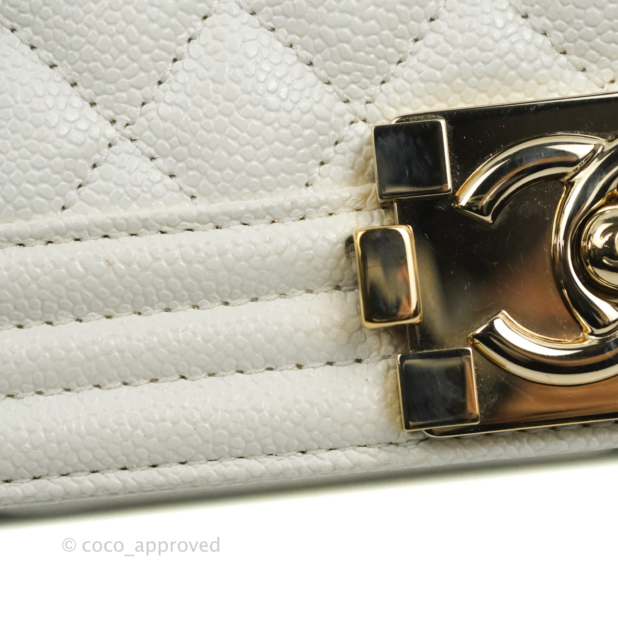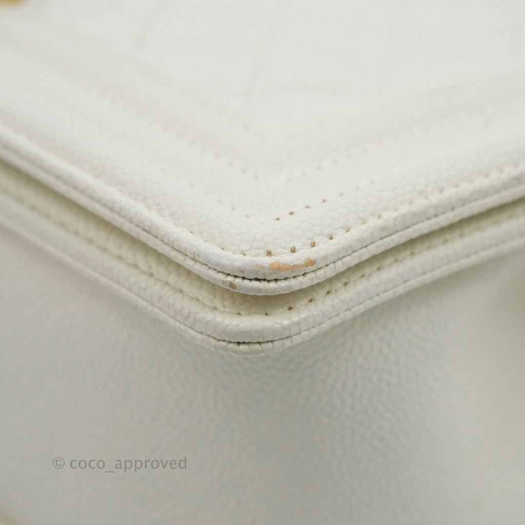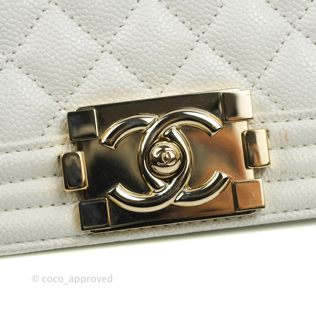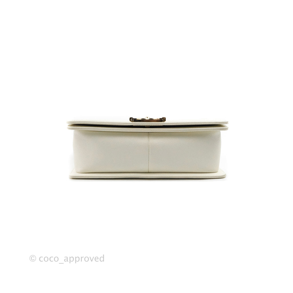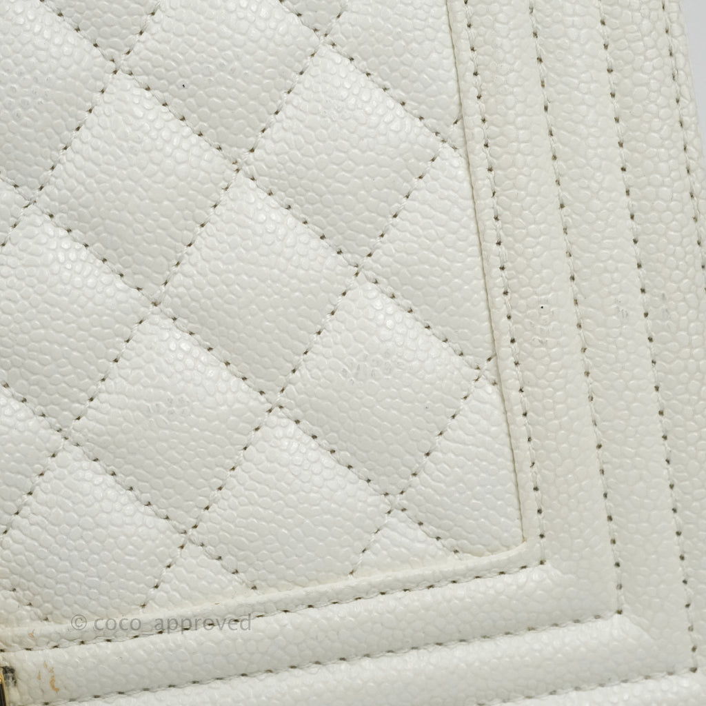 Chanel Quilted Medium Boy White Caviar Gold Hardware
