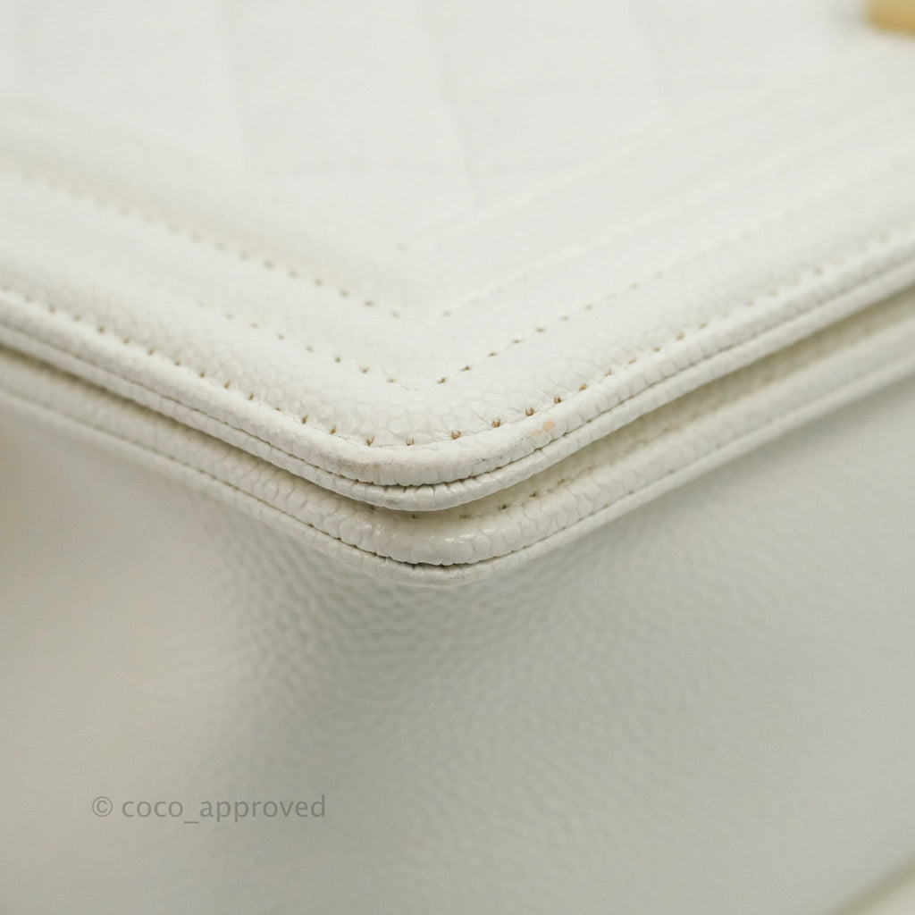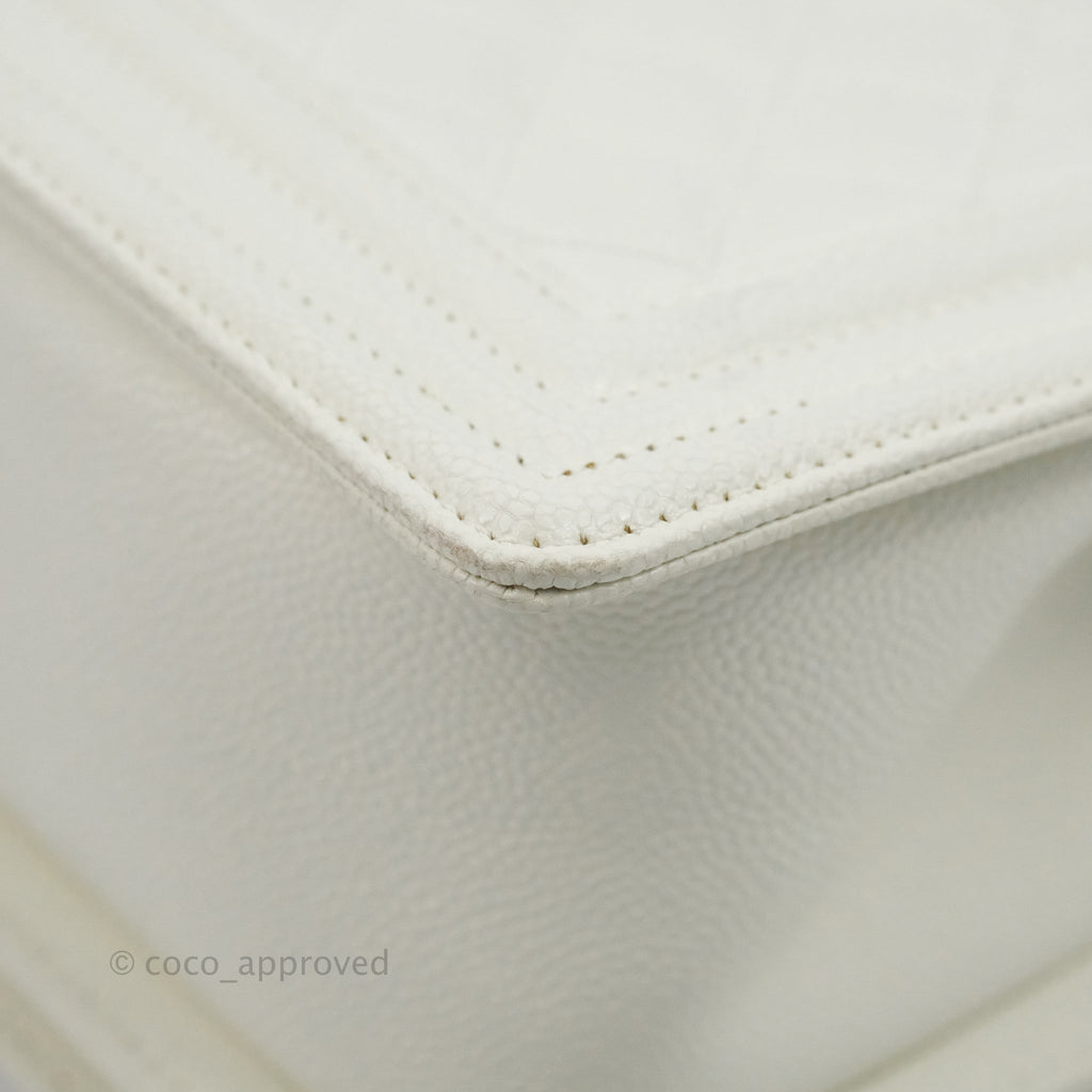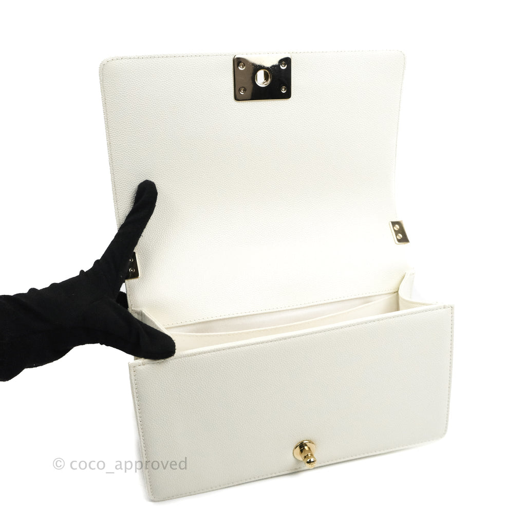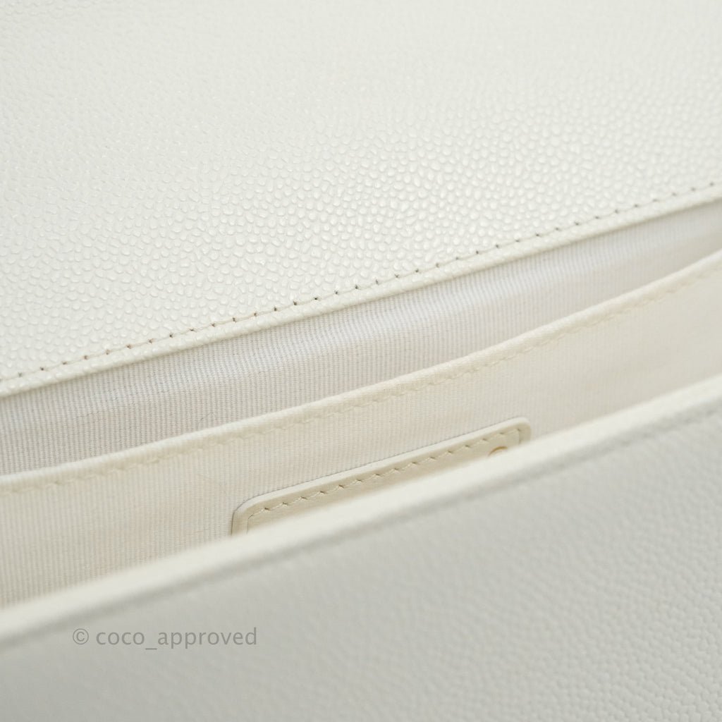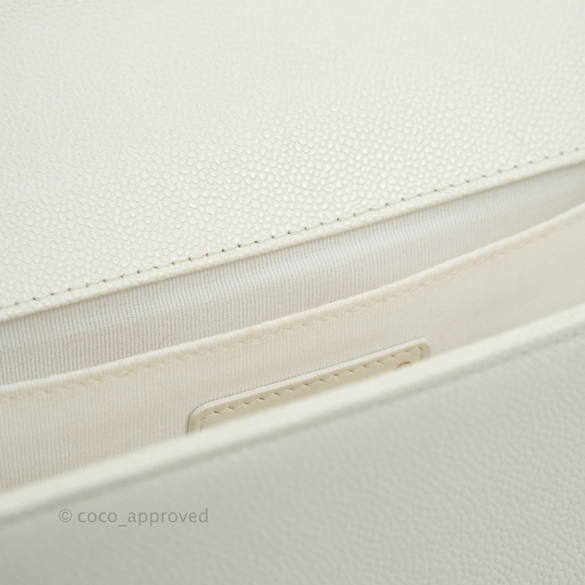 Chanel Quilted Medium Boy White Caviar Gold Hardware
