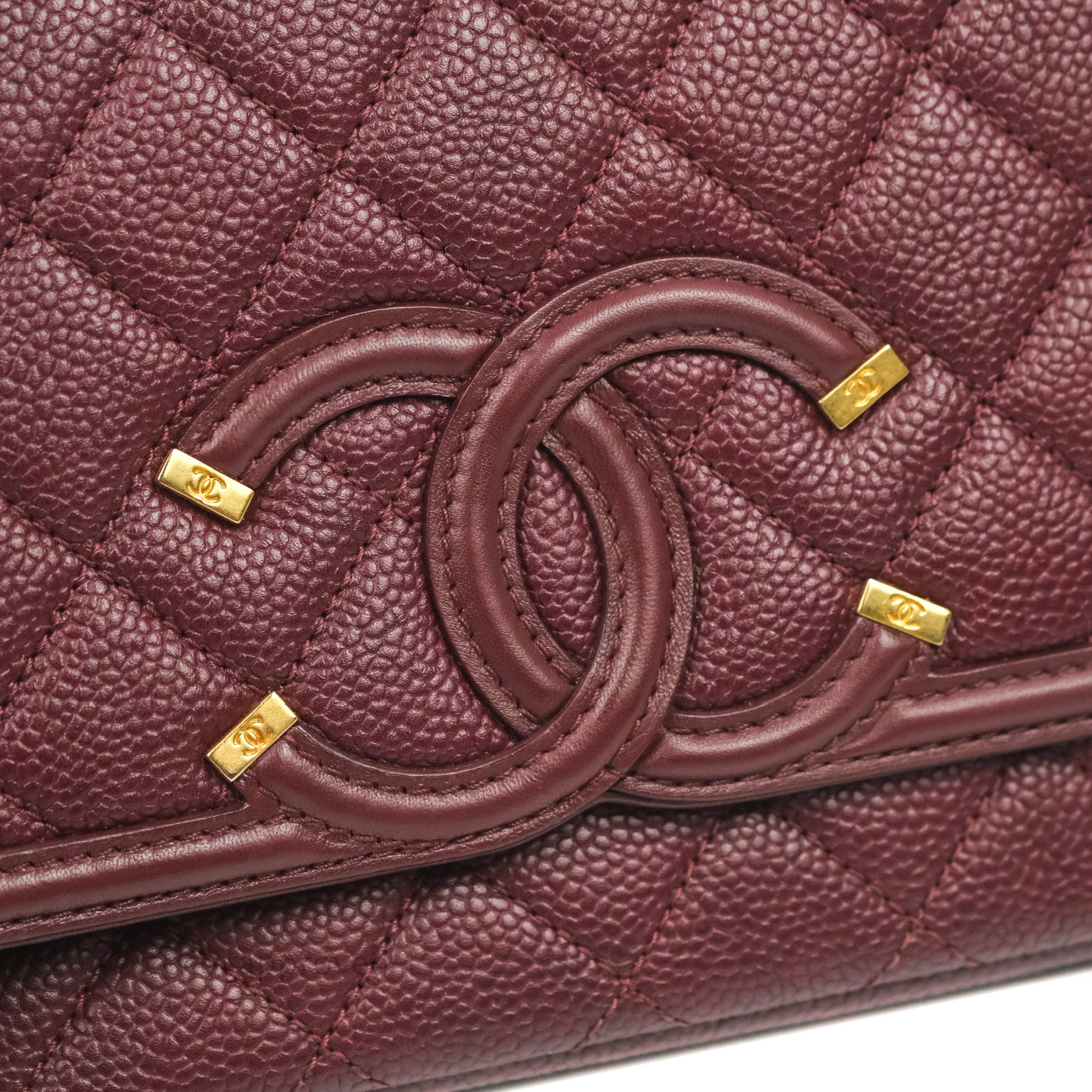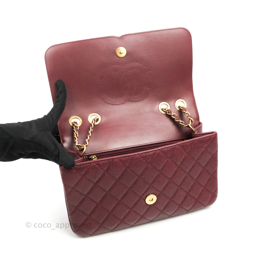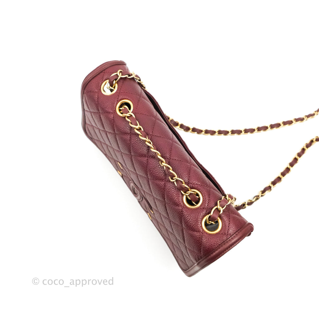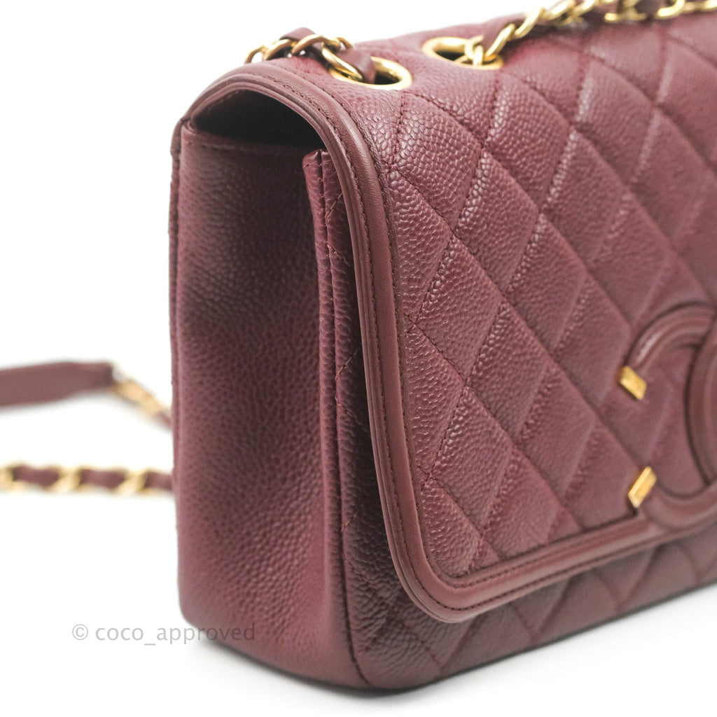 Chanel Quilted Medium CC Filigree Flap Burgundy Black Caviar