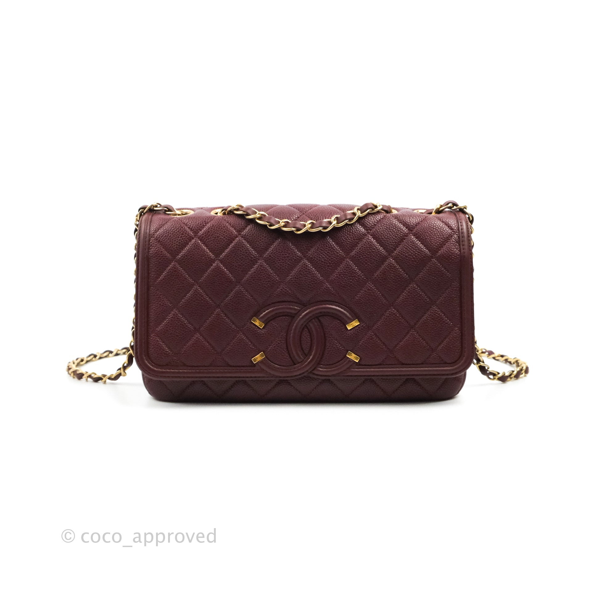 Chanel Quilted Medium CC Filigree Flap Burgundy Black Caviar is now sold. Please subscribe for any updates if similar item becomes available.