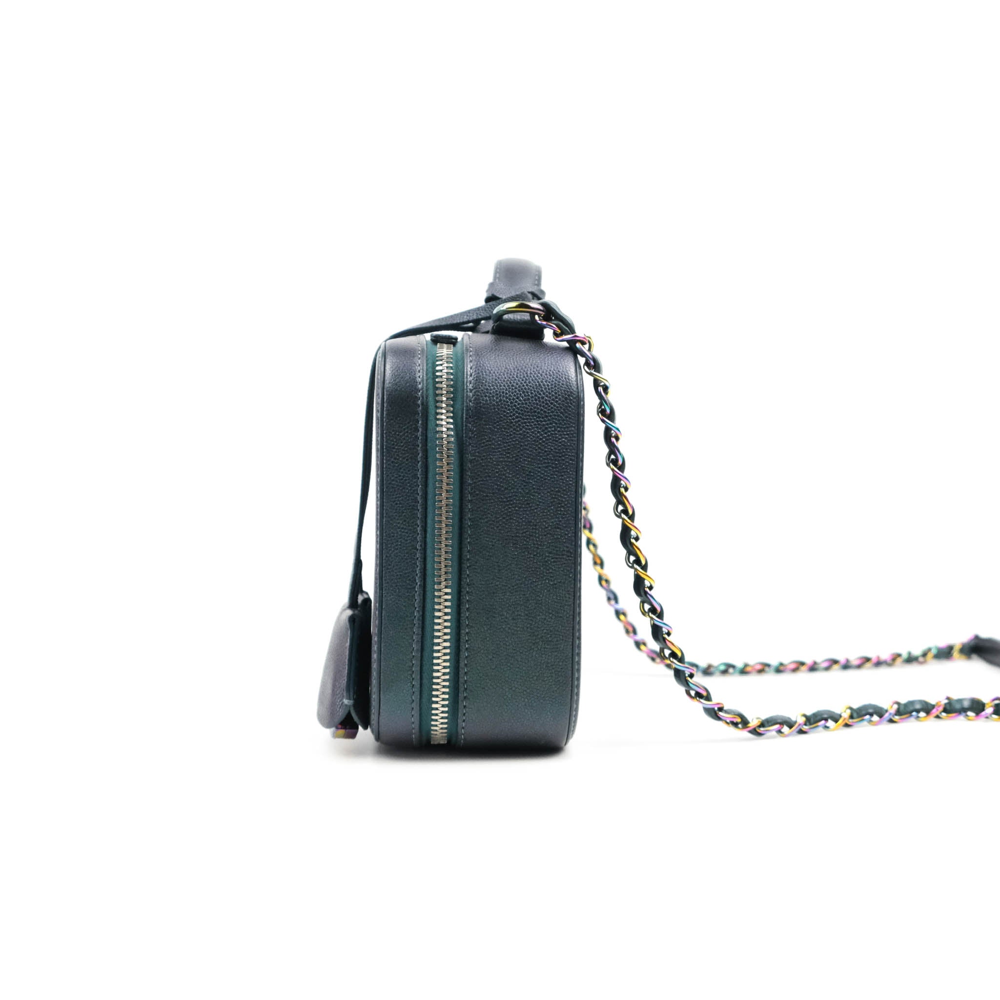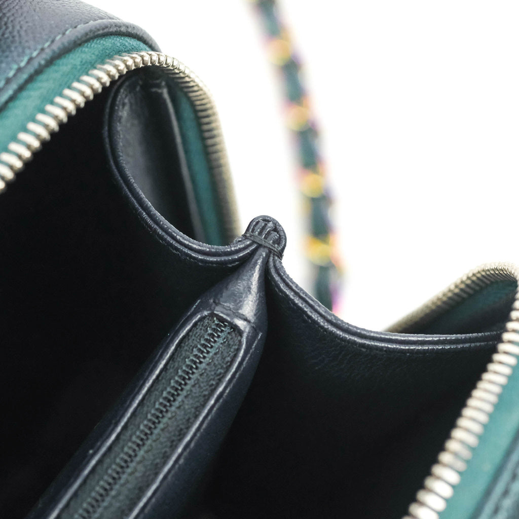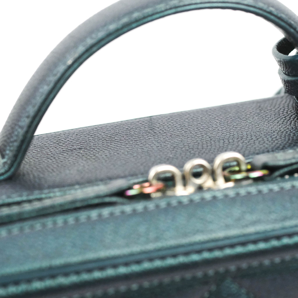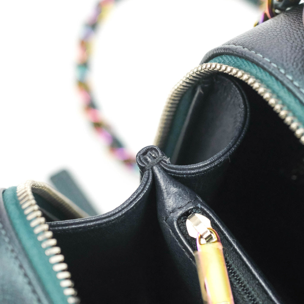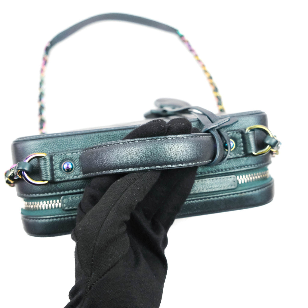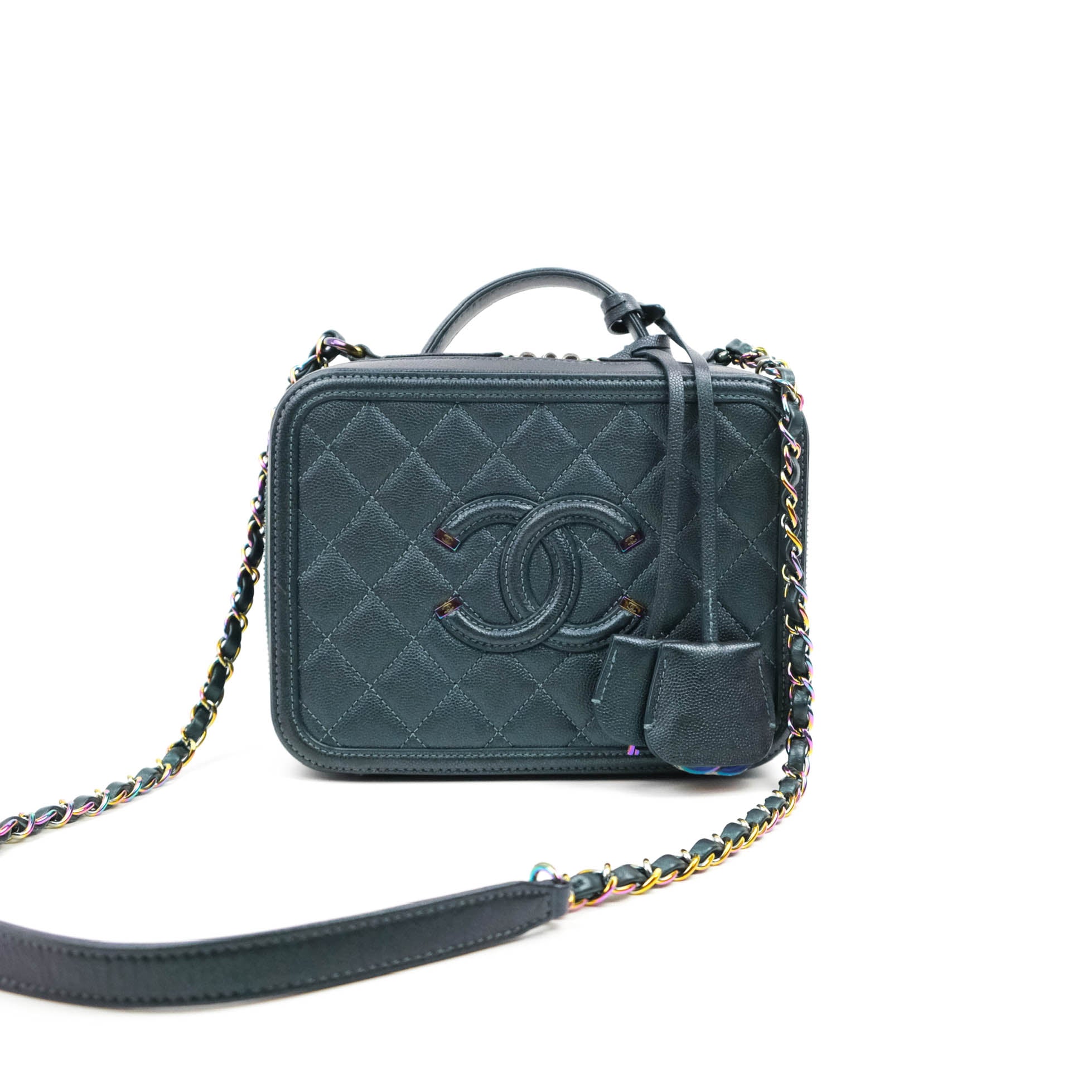 Chanel Quilted Medium CC Filigree Vanity Case Iridescent Dark Turquoise Caviar Rainbow Hardware