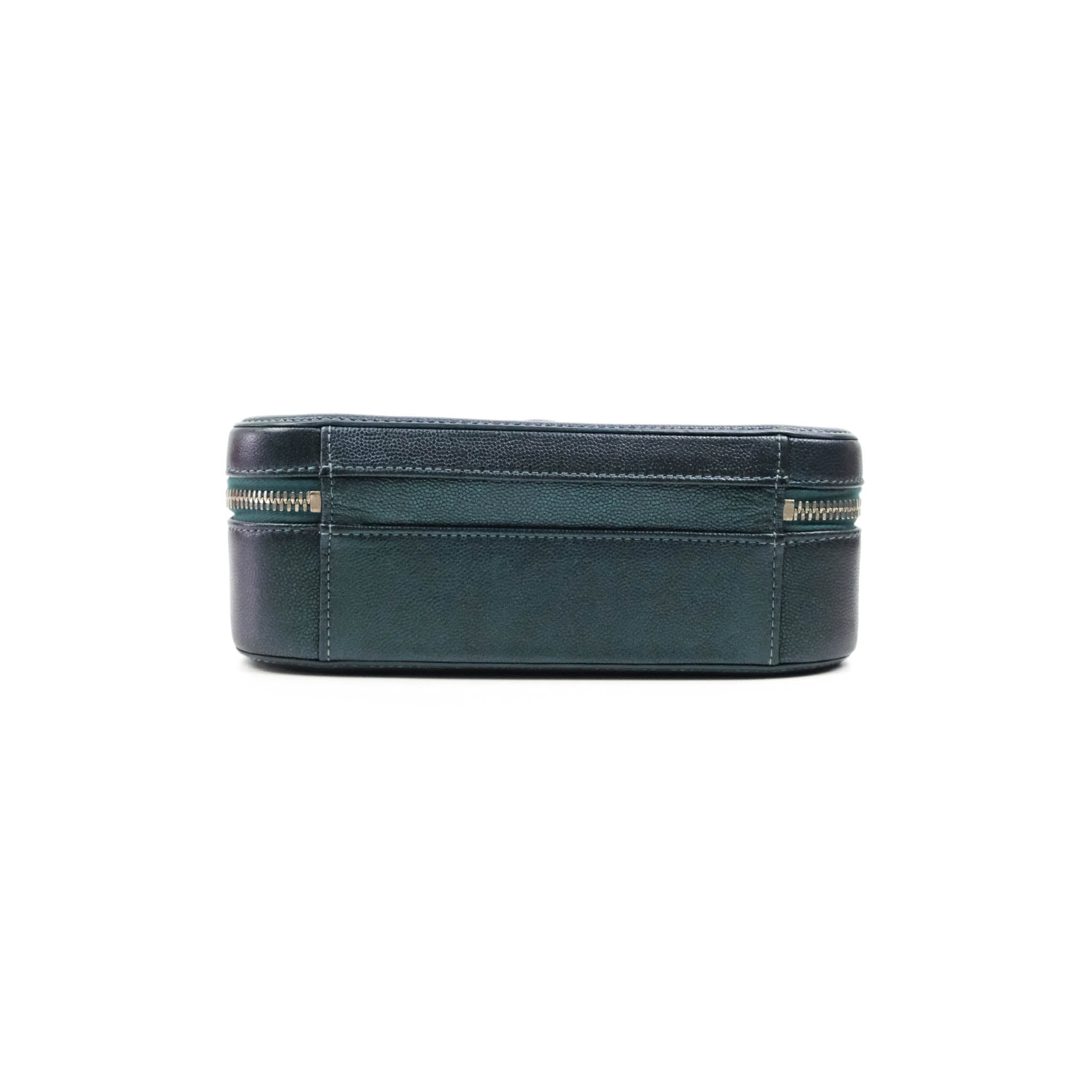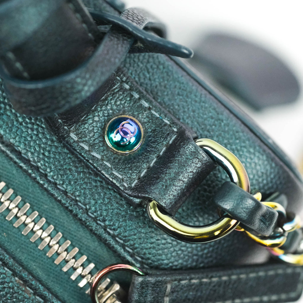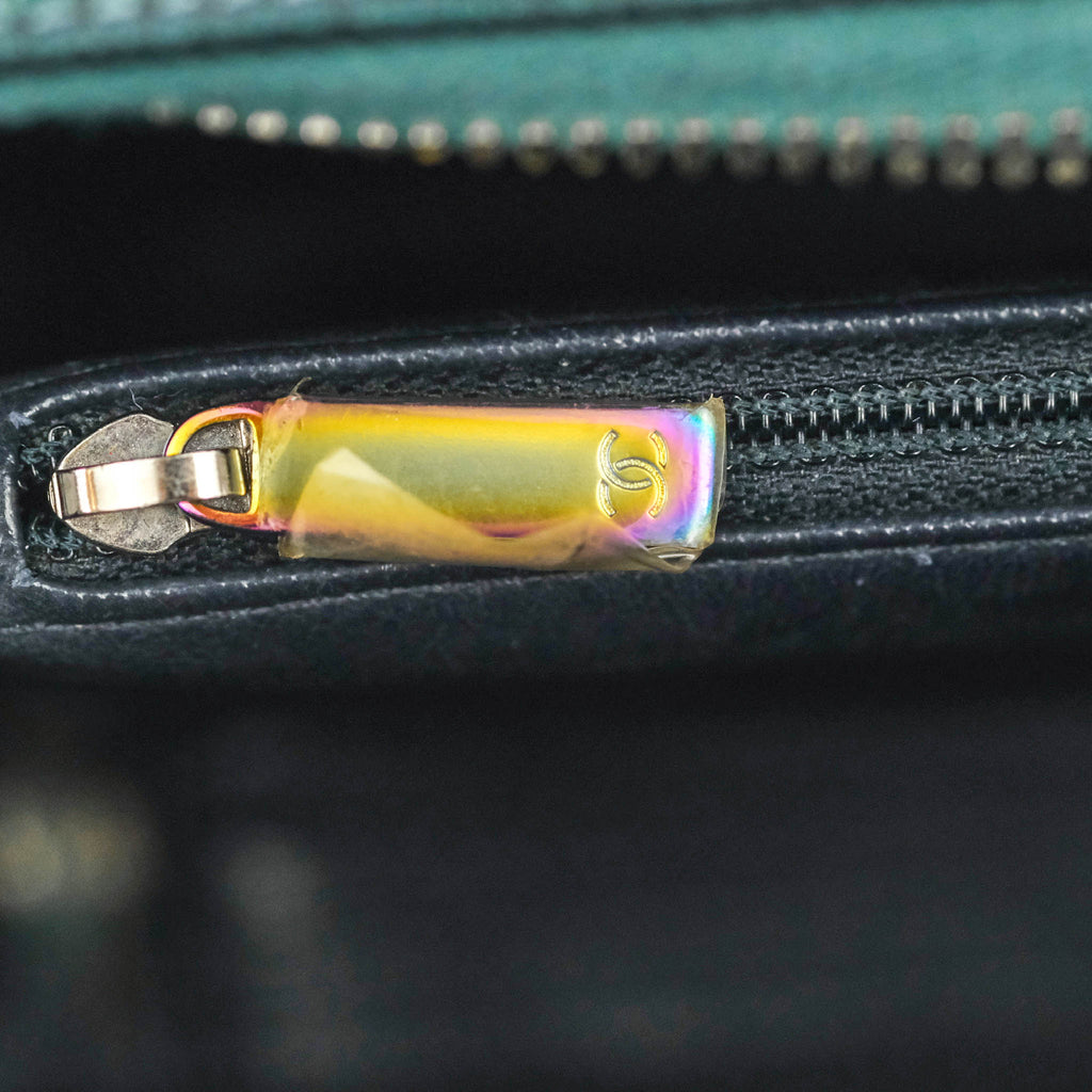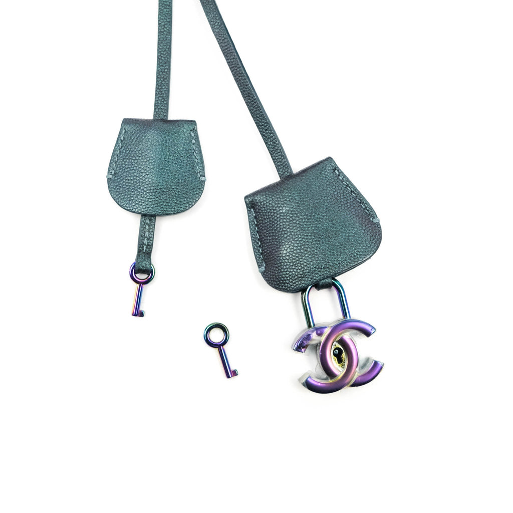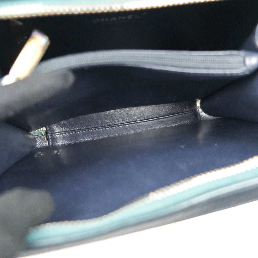 Chanel Quilted Medium CC Filigree Vanity Case Iridescent Dark Turquoise Caviar Rainbow Hardware