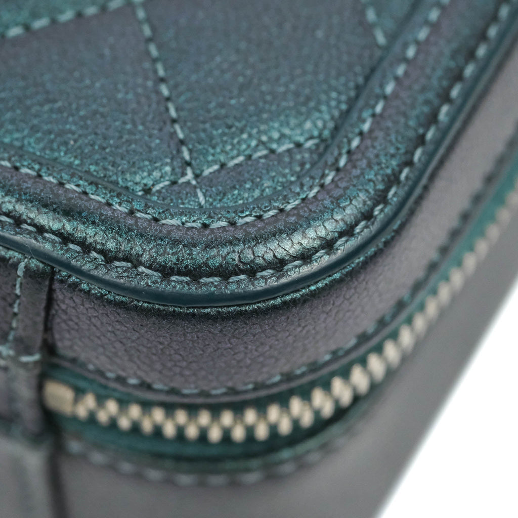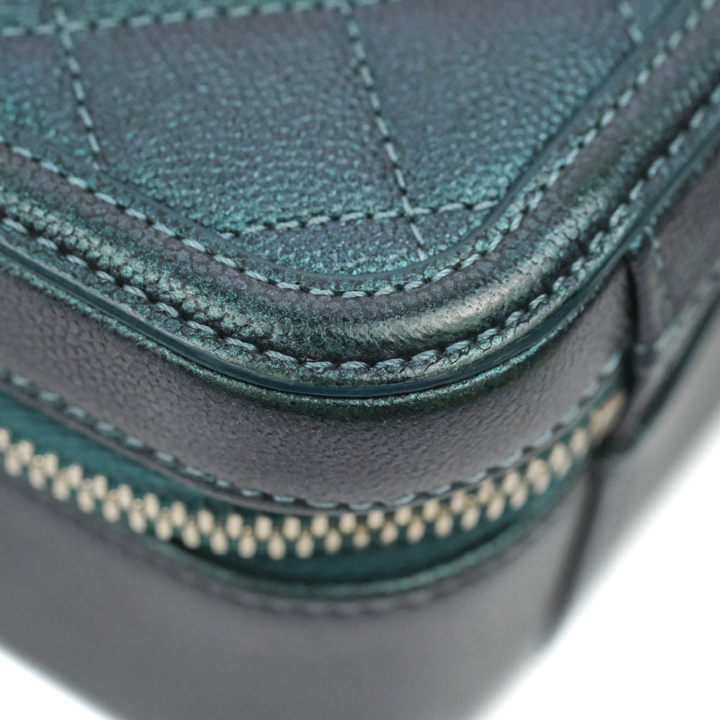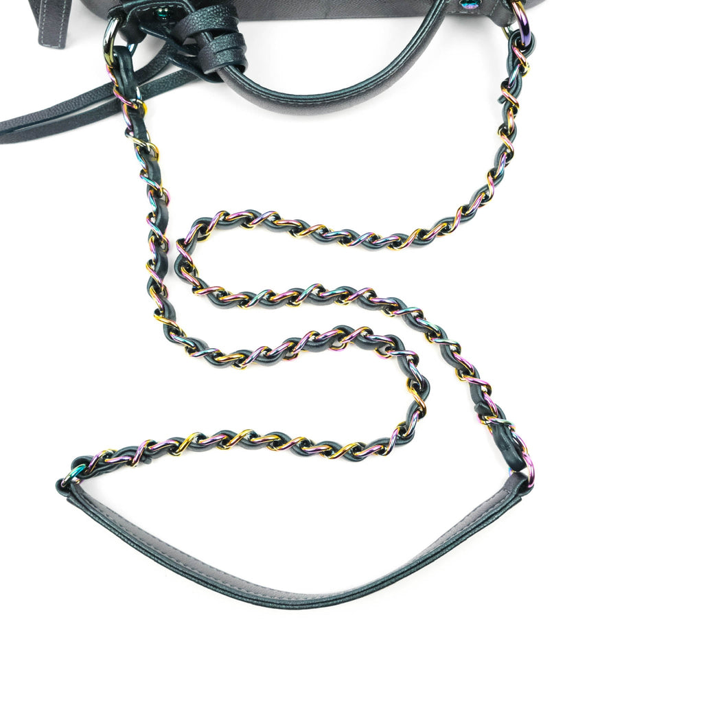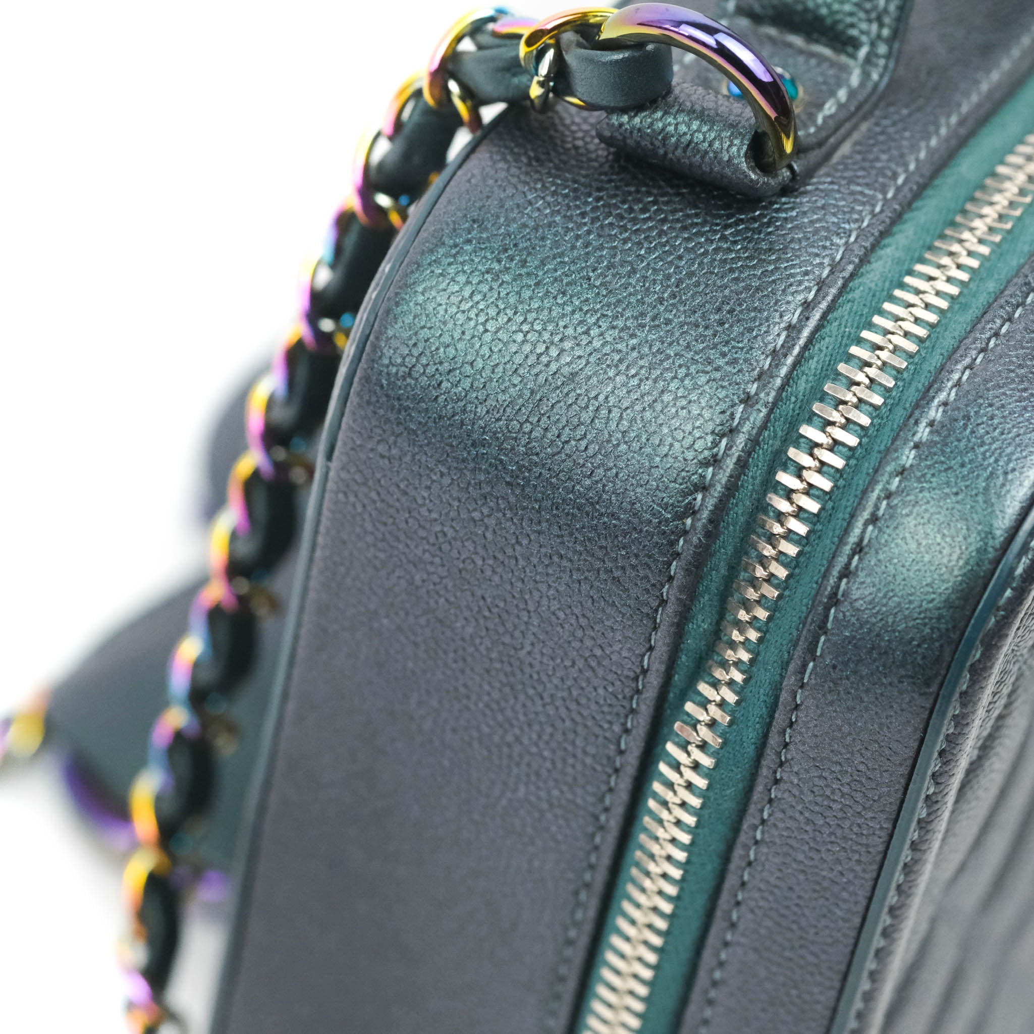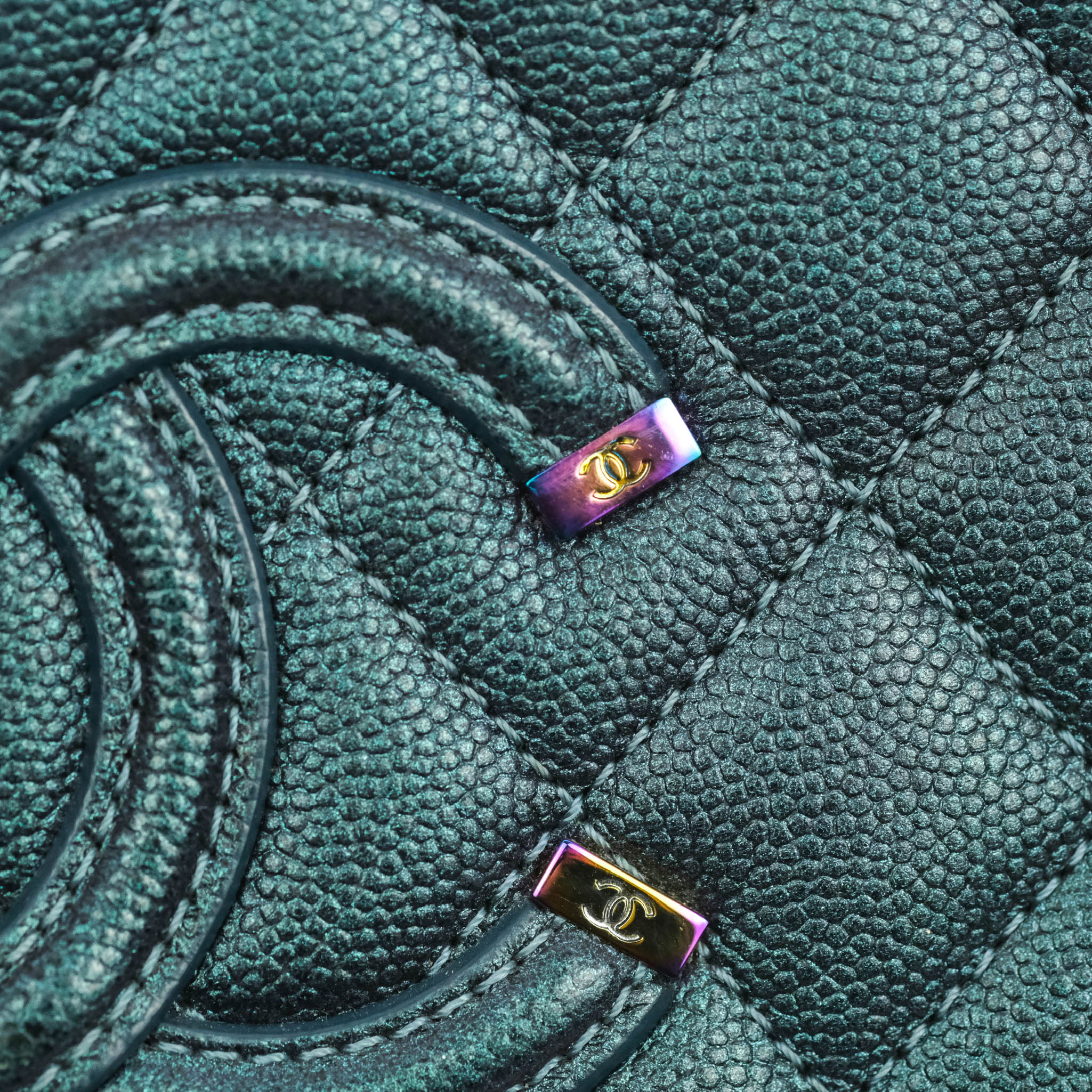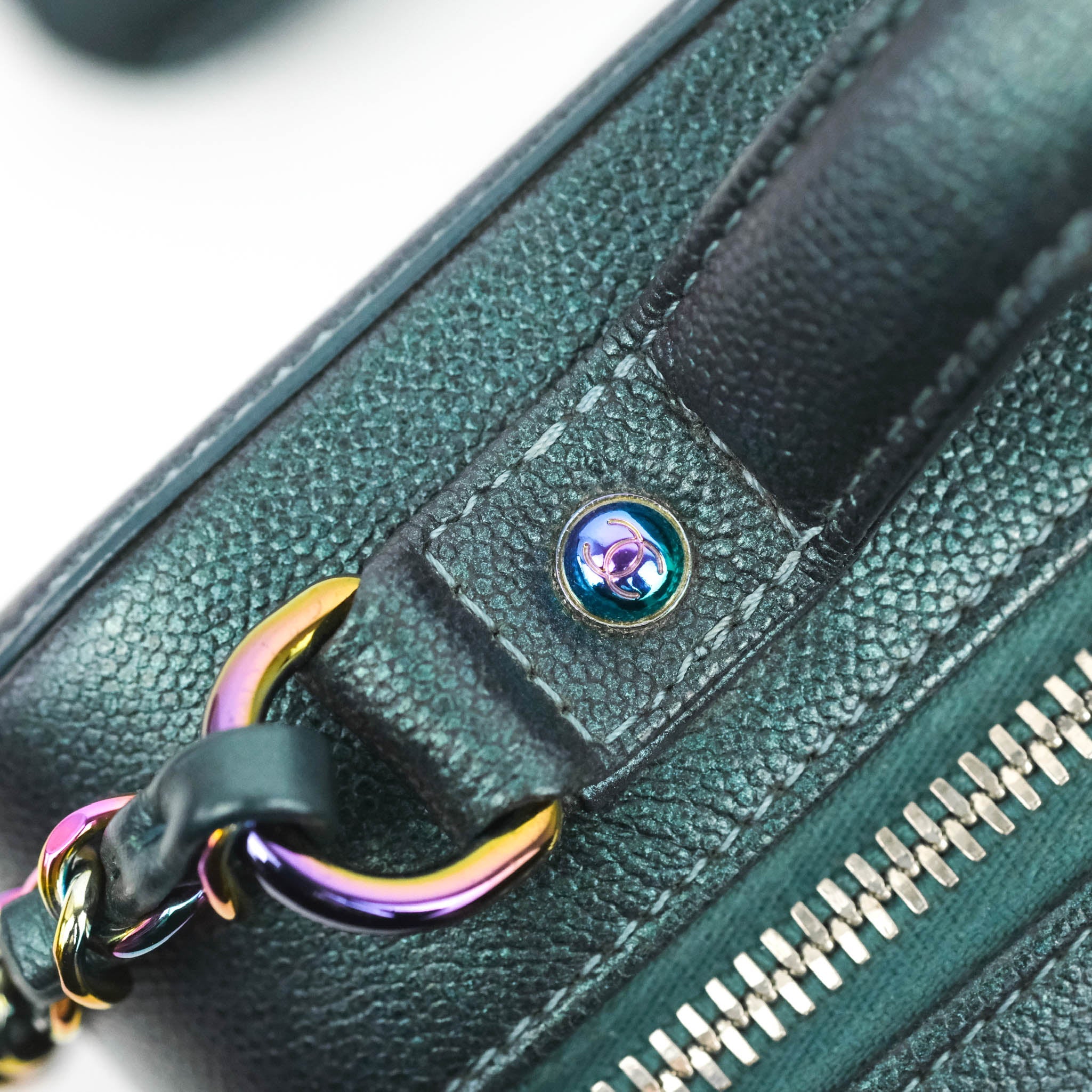Chanel Quilted Medium CC Filigree Vanity Case Iridescent Dark Turquoise Caviar Rainbow Hardware