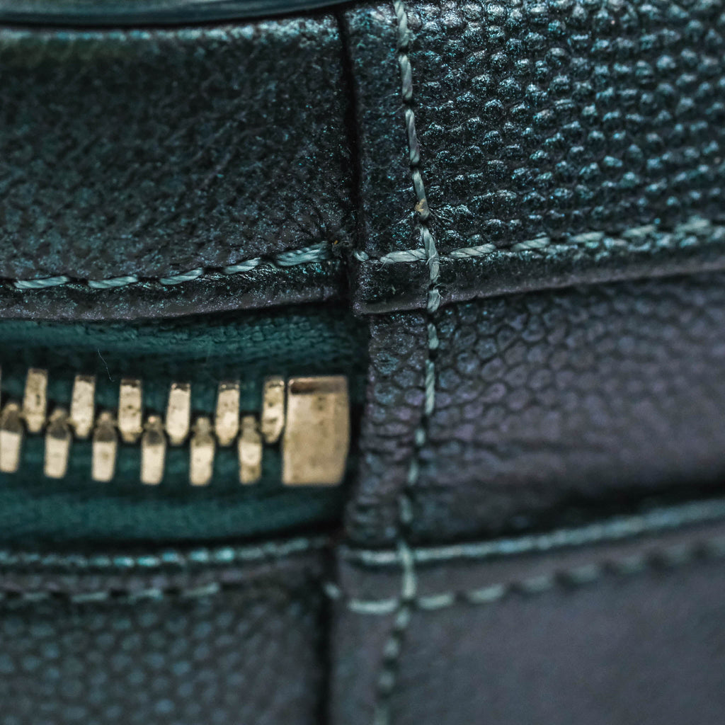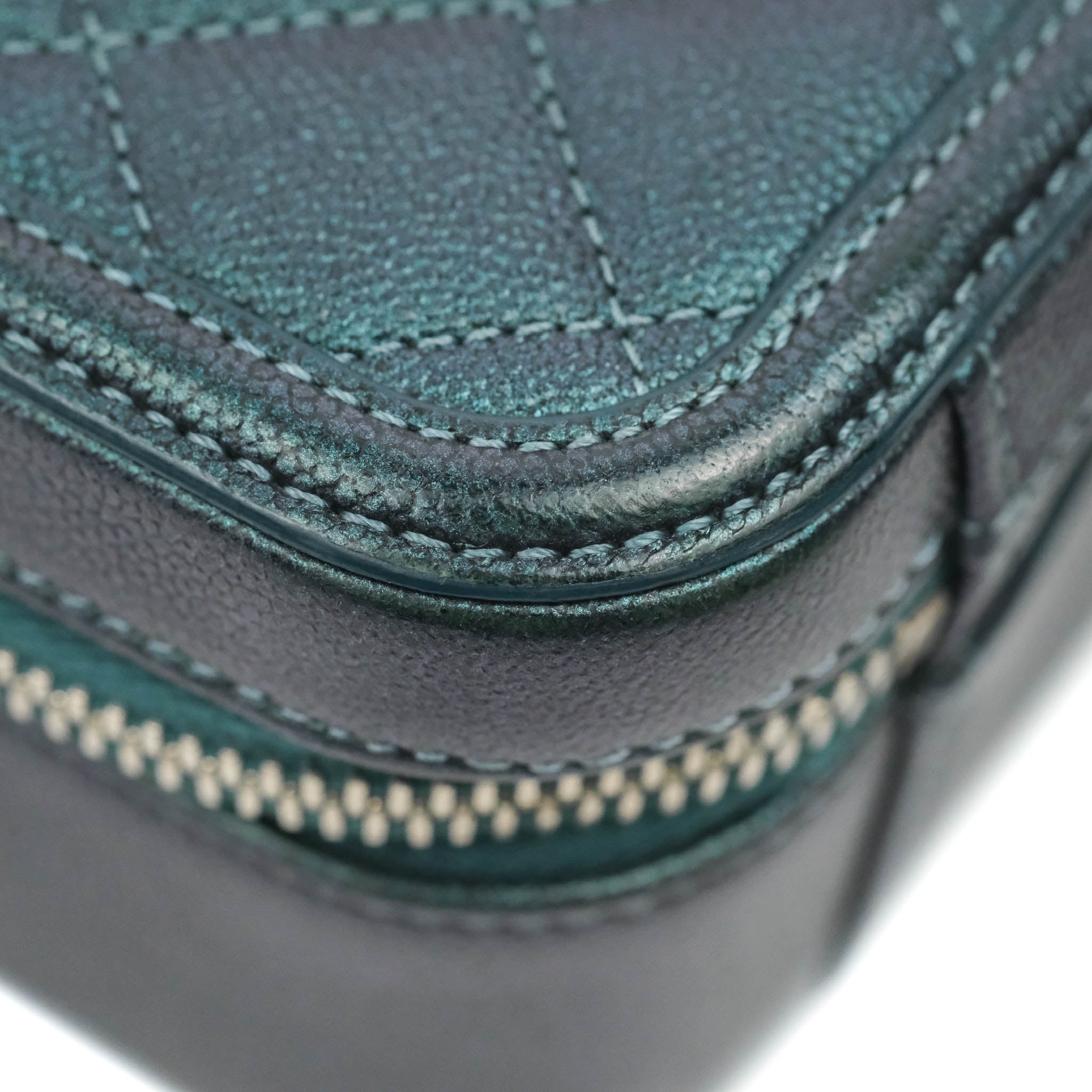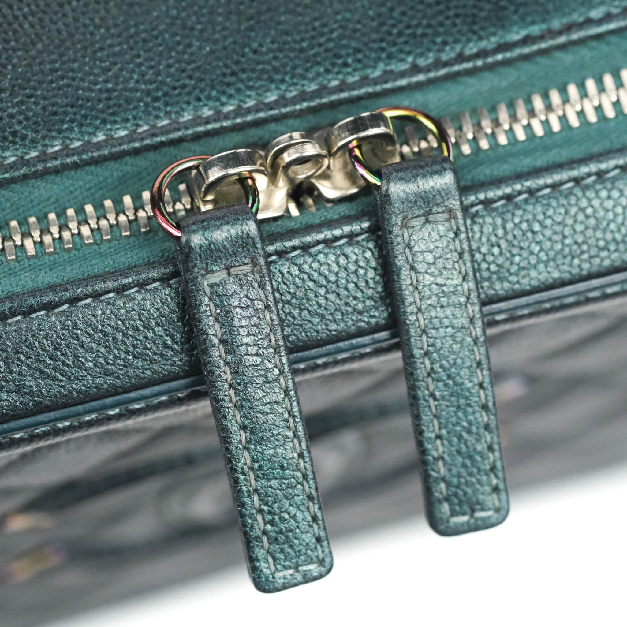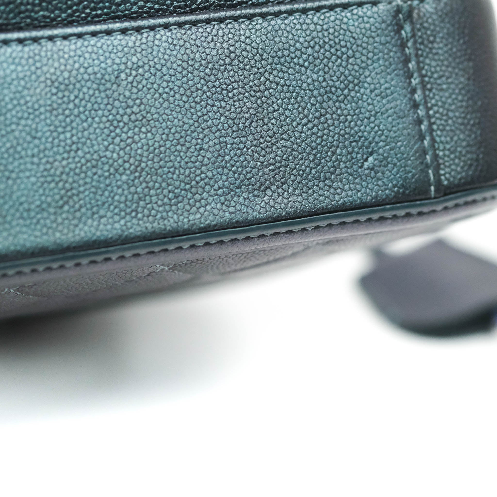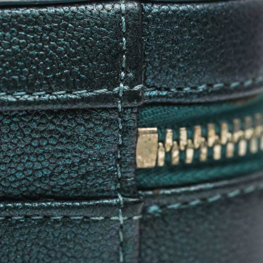 Chanel Quilted Medium CC Filigree Vanity Case Iridescent Dark Turquoise Caviar Rainbow Hardware