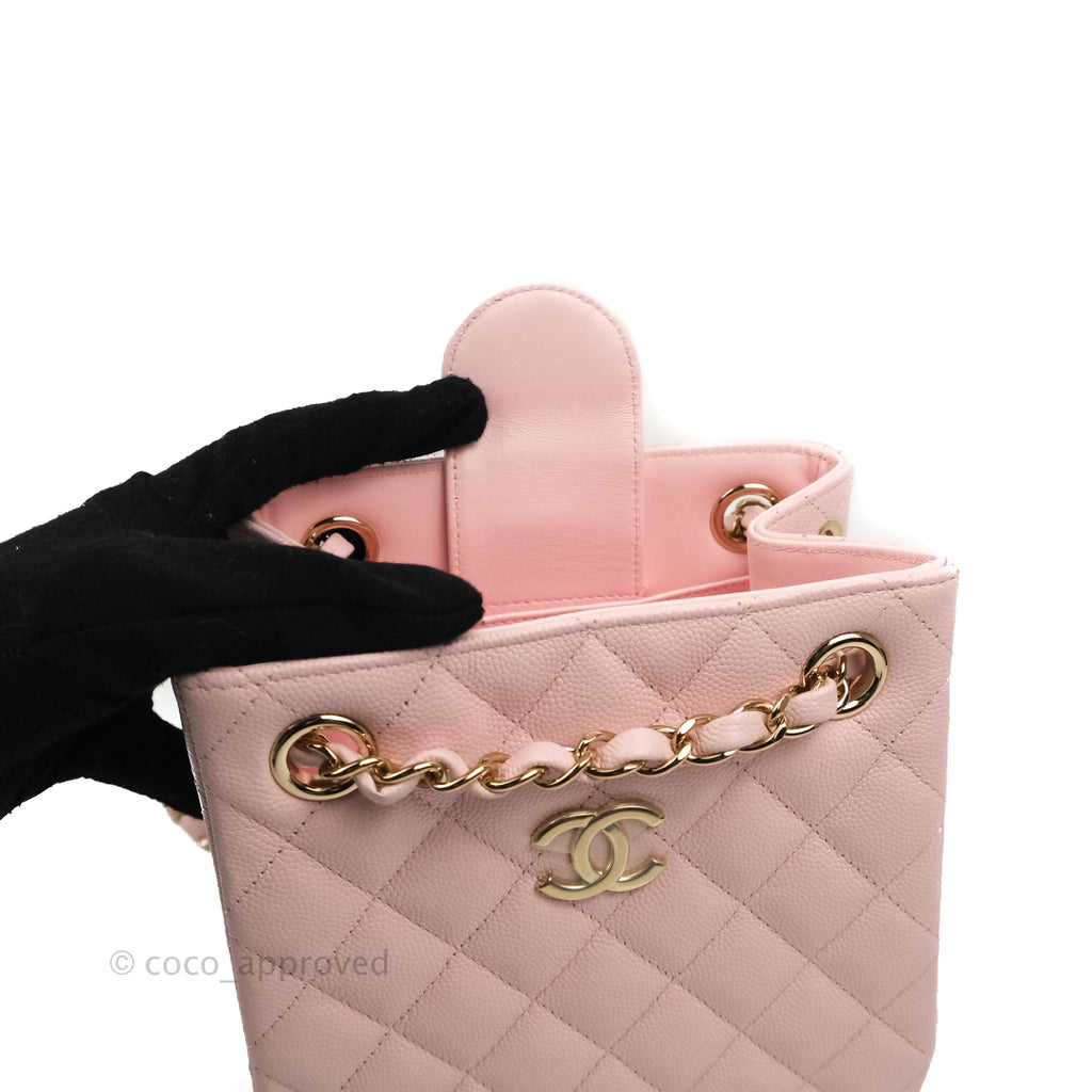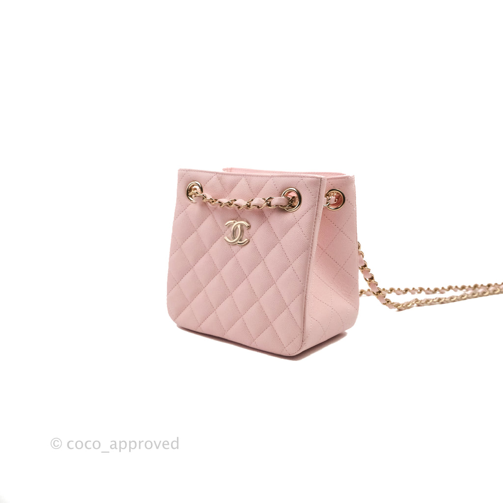 Chanel Quilted Mini Bucket Bag Light Pink Caviar Gold Hardware