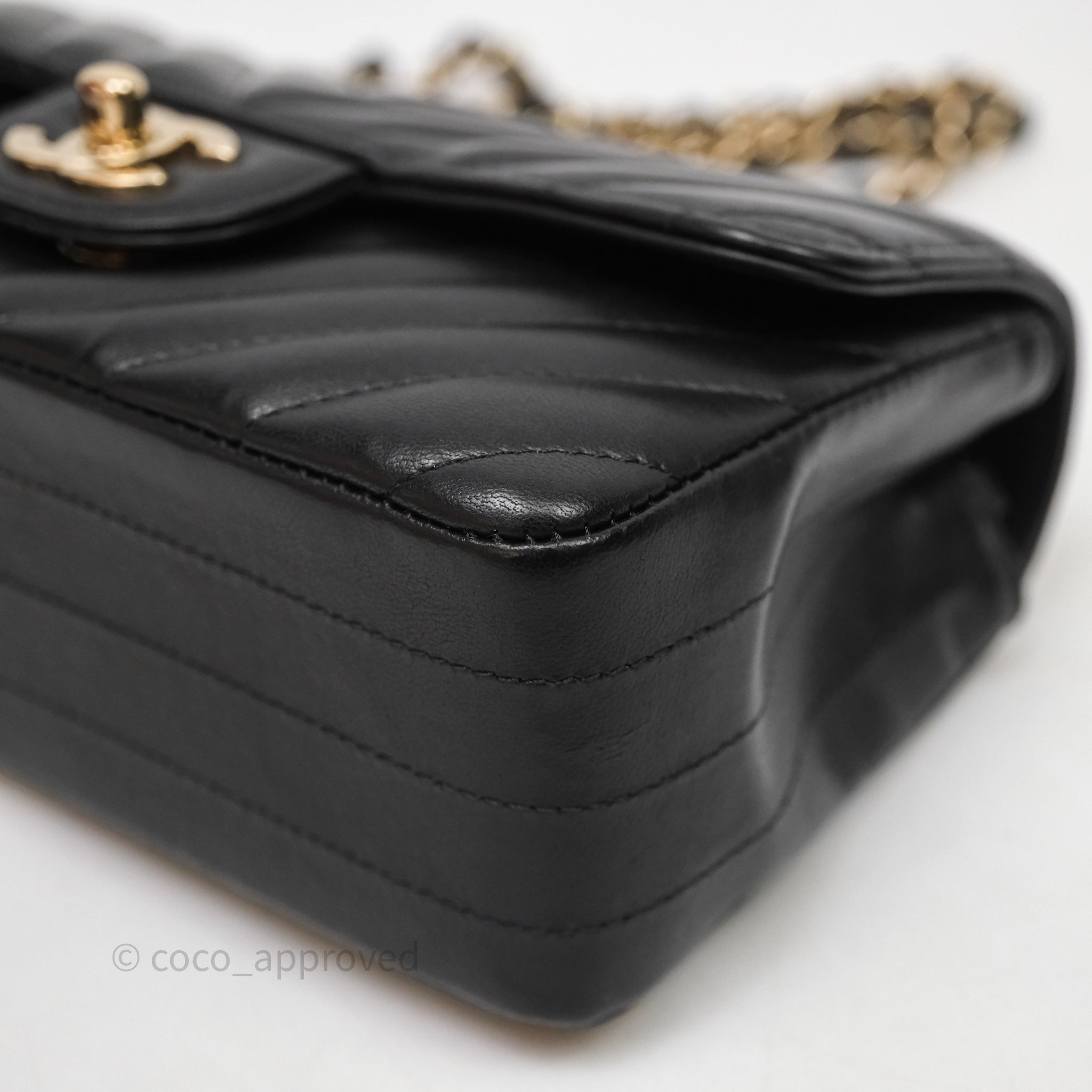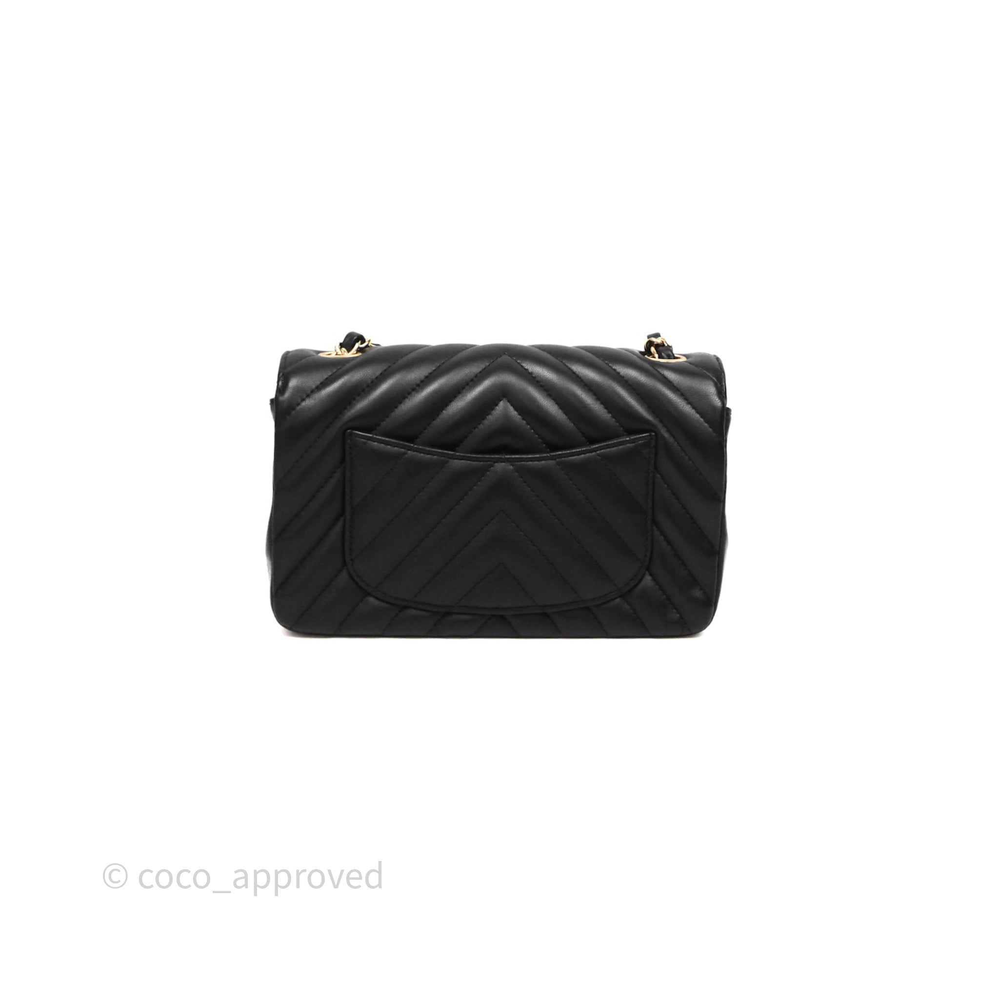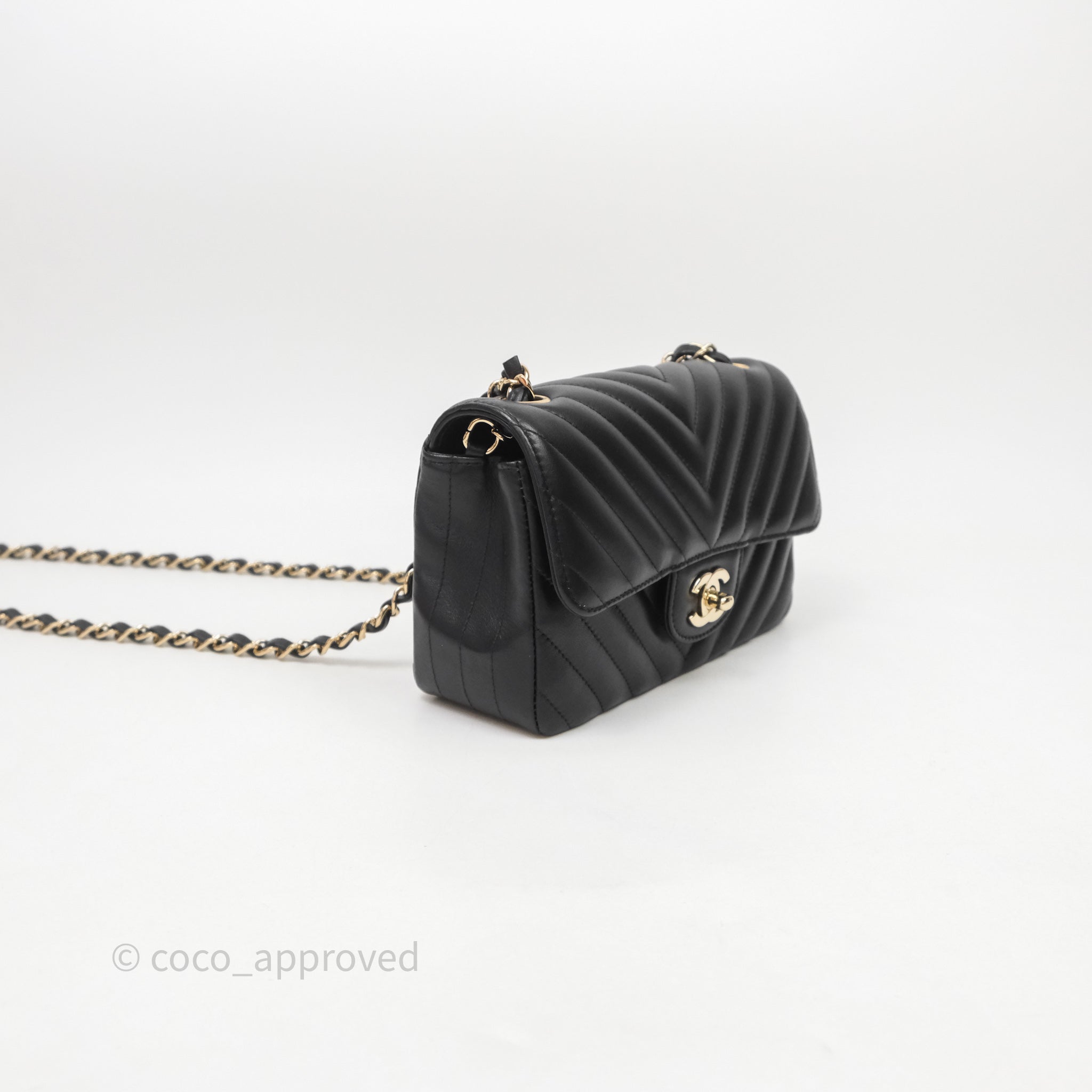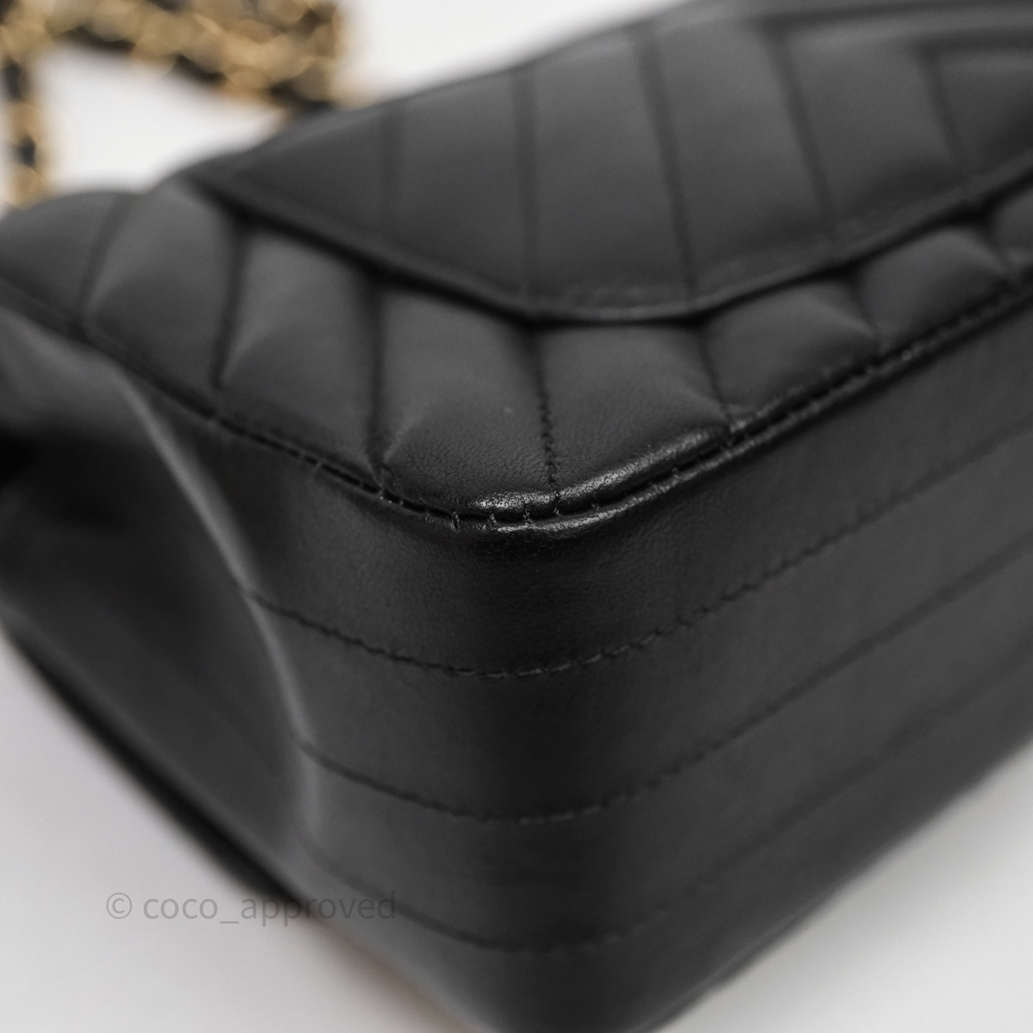 Chanel Quilted Mini Rectangular Chevron Black Lambskin Gold Hardware