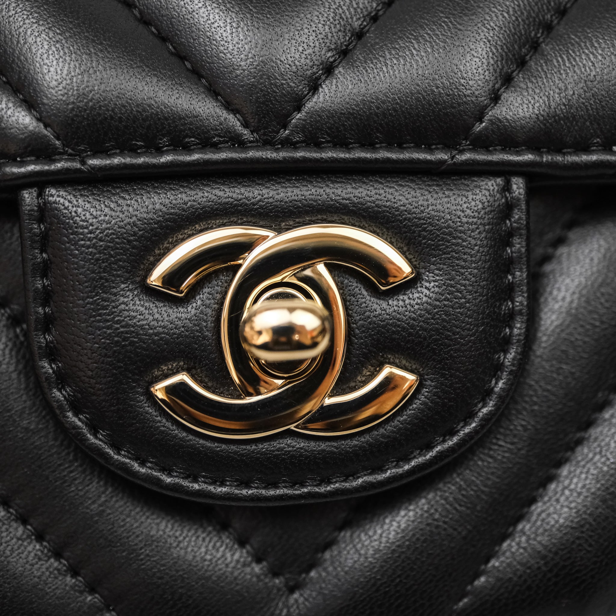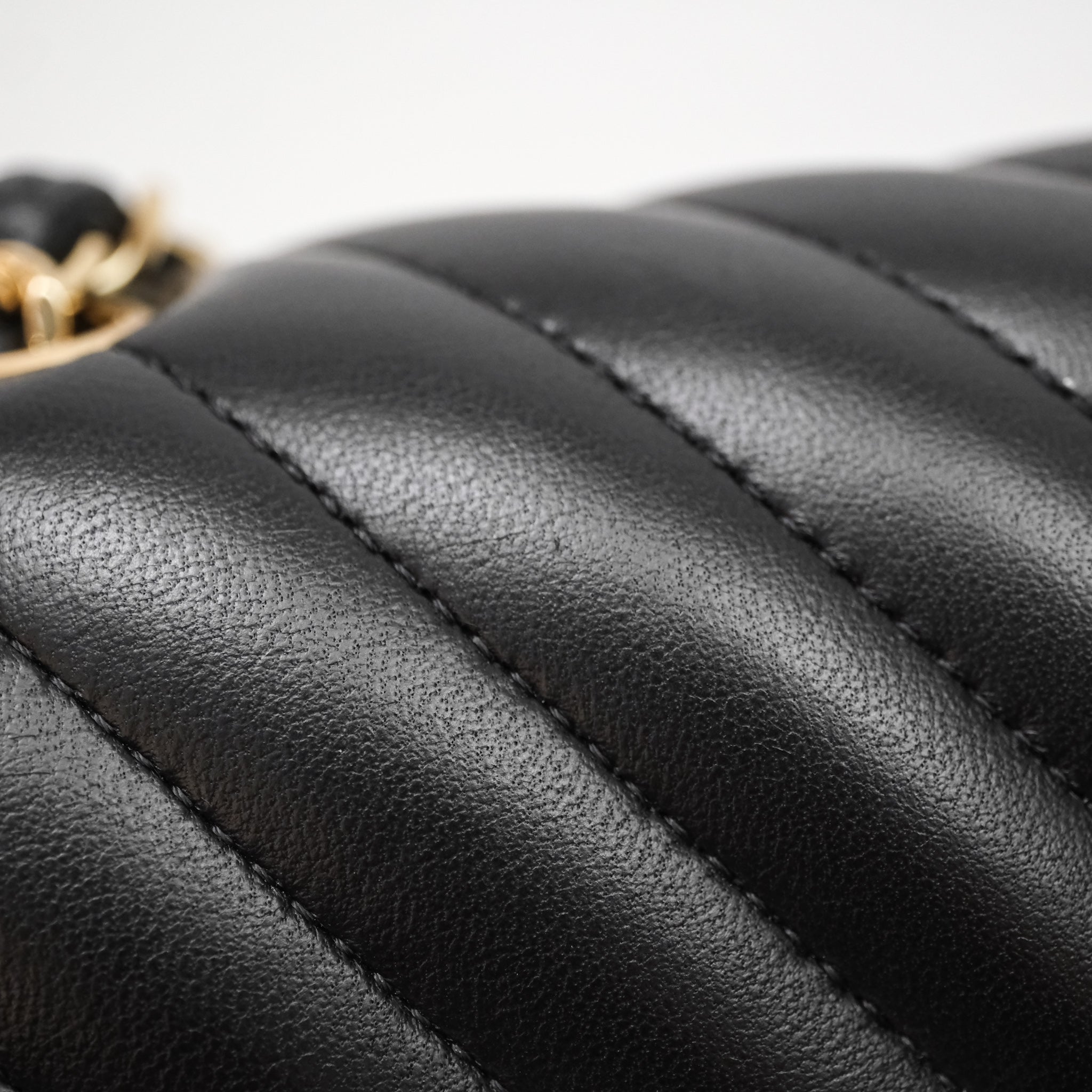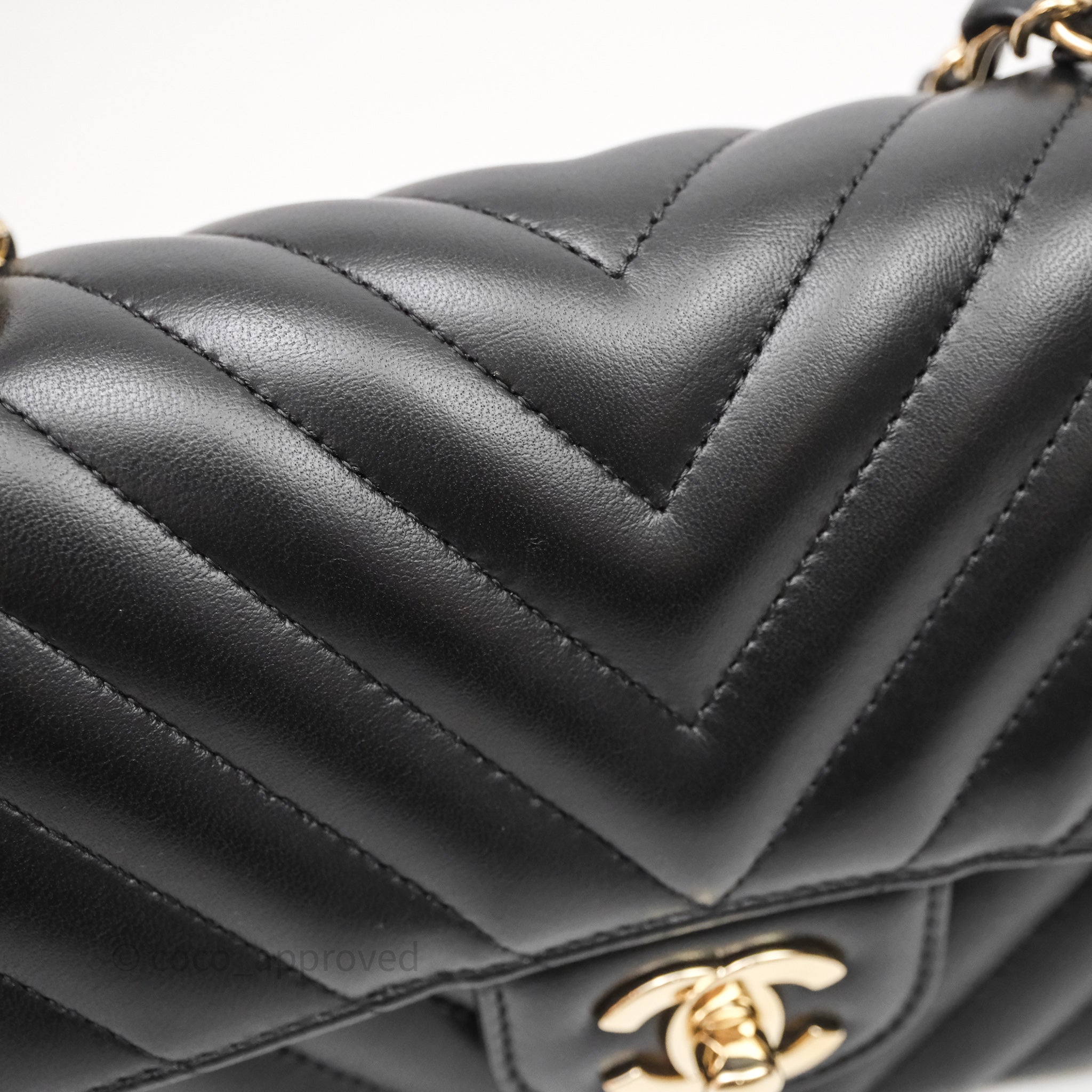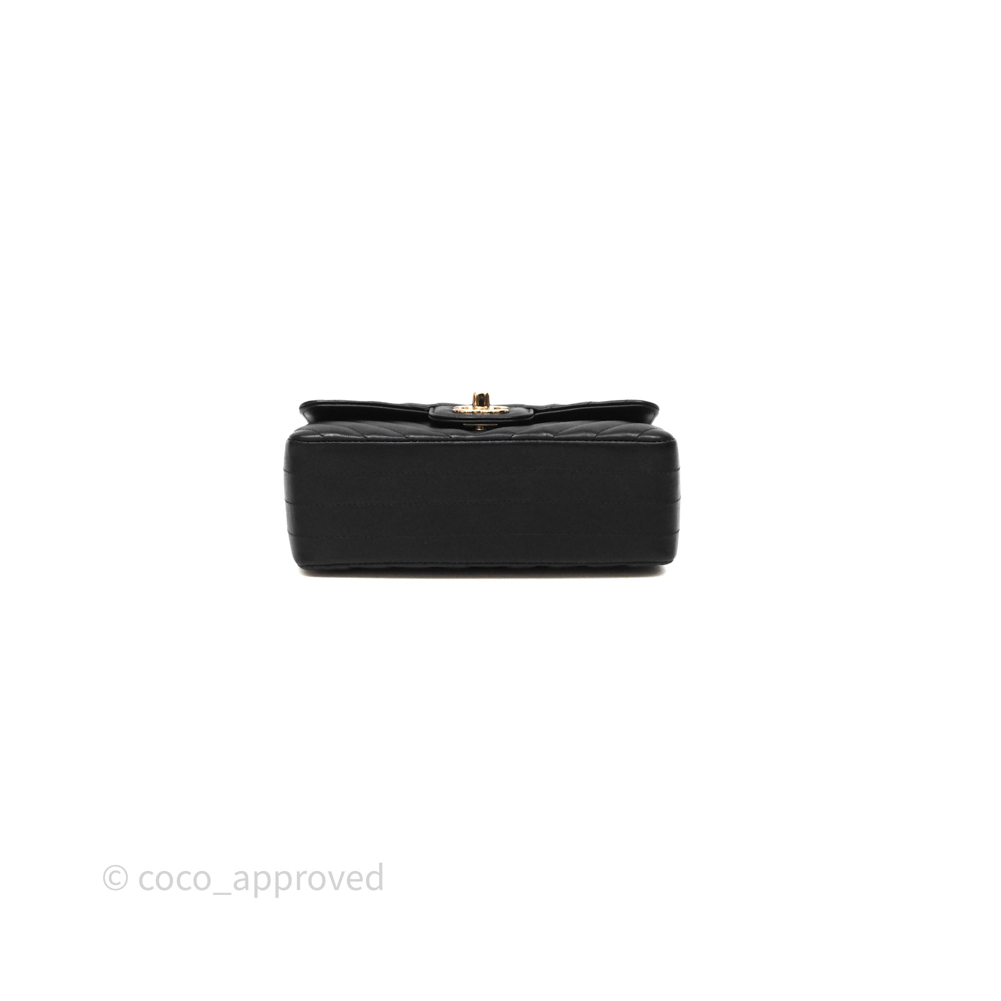 Chanel Quilted Mini Rectangular Chevron Black Lambskin Gold Hardware