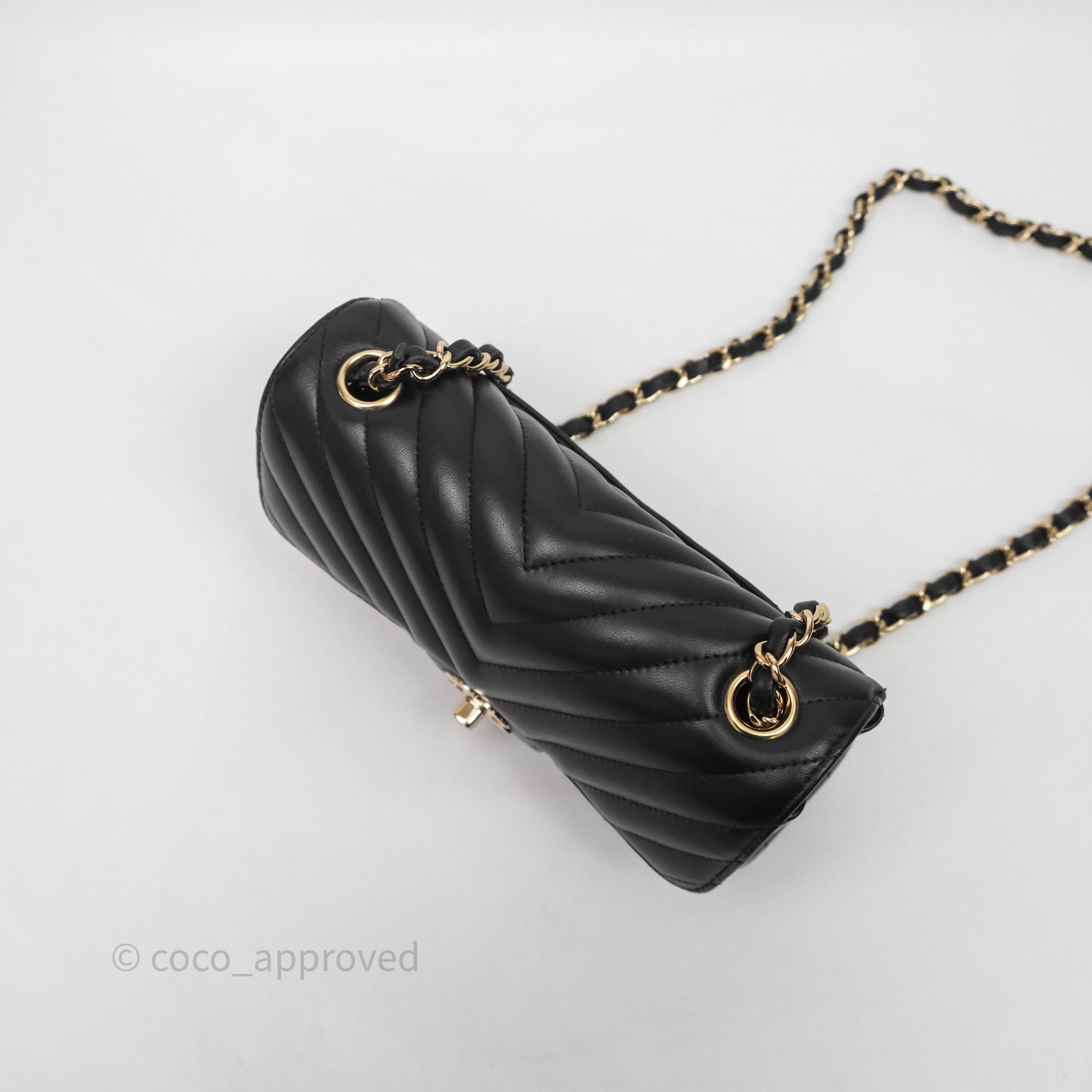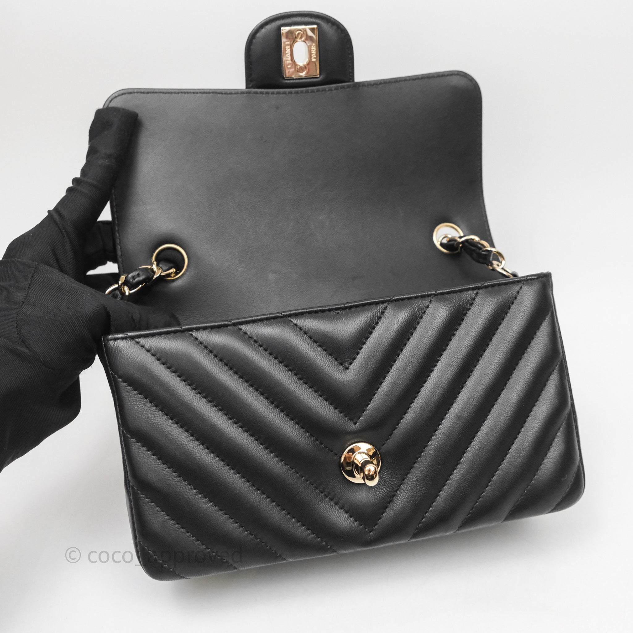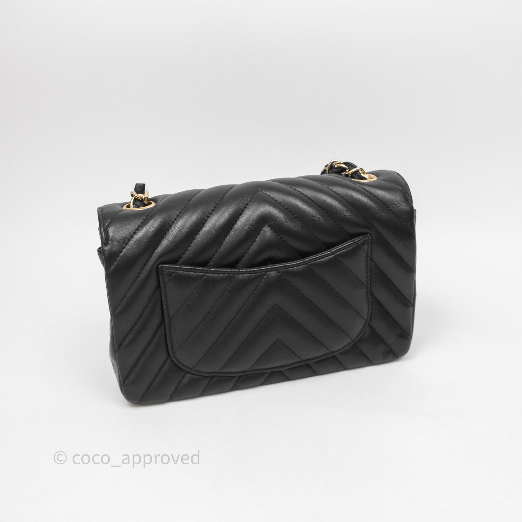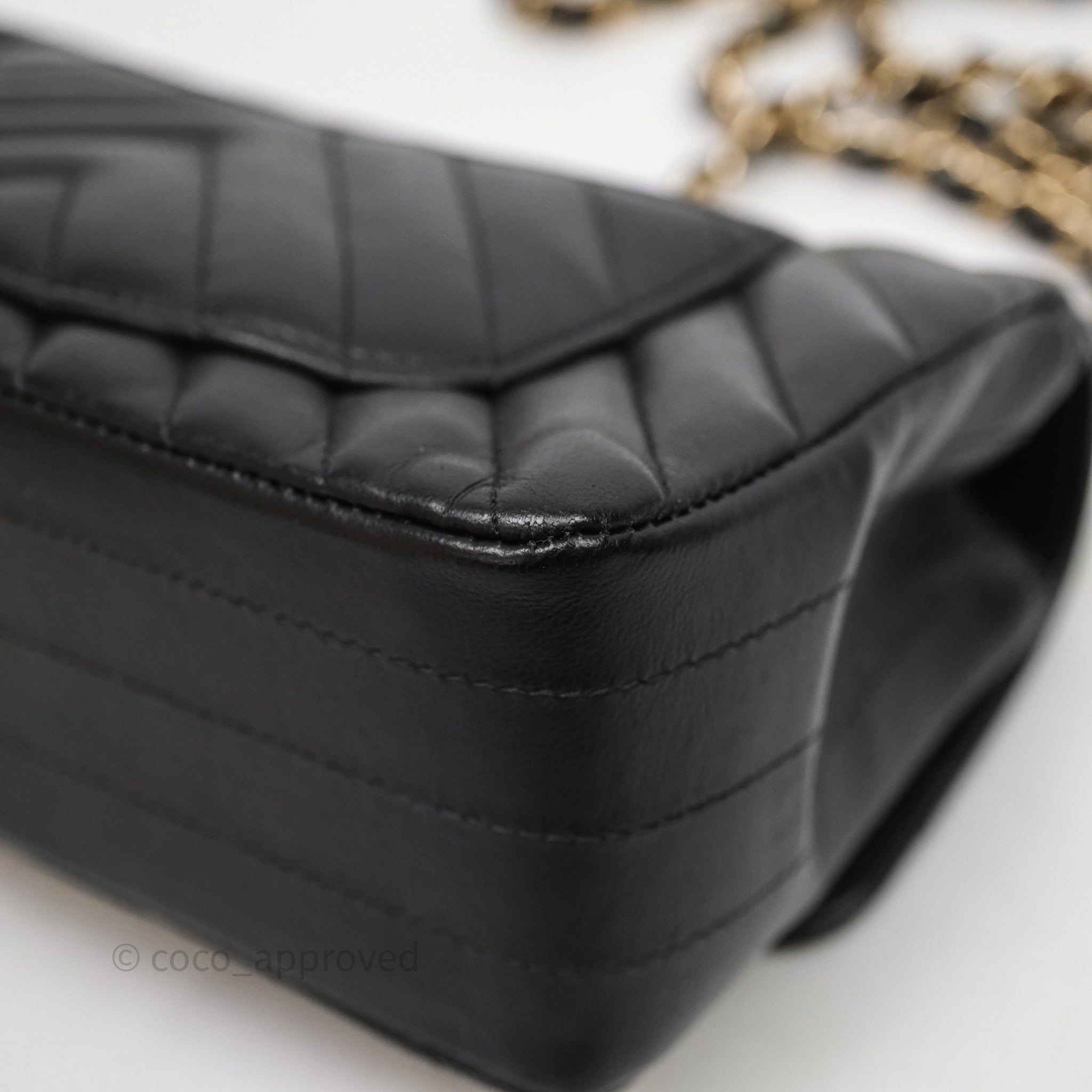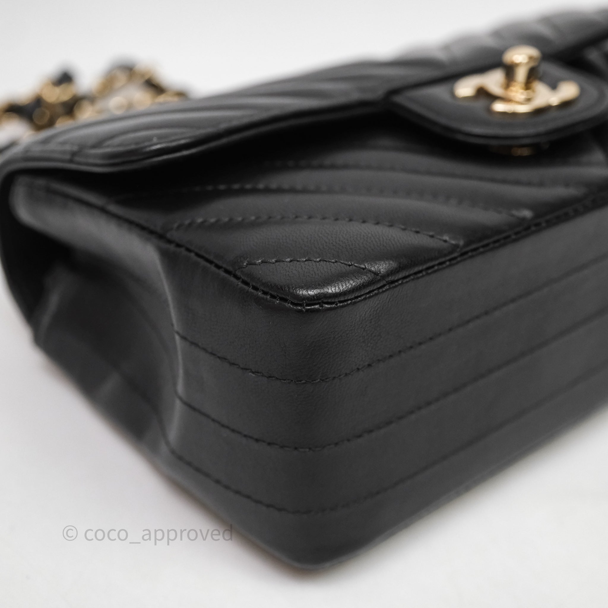 Chanel Quilted Mini Rectangular Chevron Black Lambskin Gold Hardware is now sold. Please subscribe for any updates if similar item becomes available.