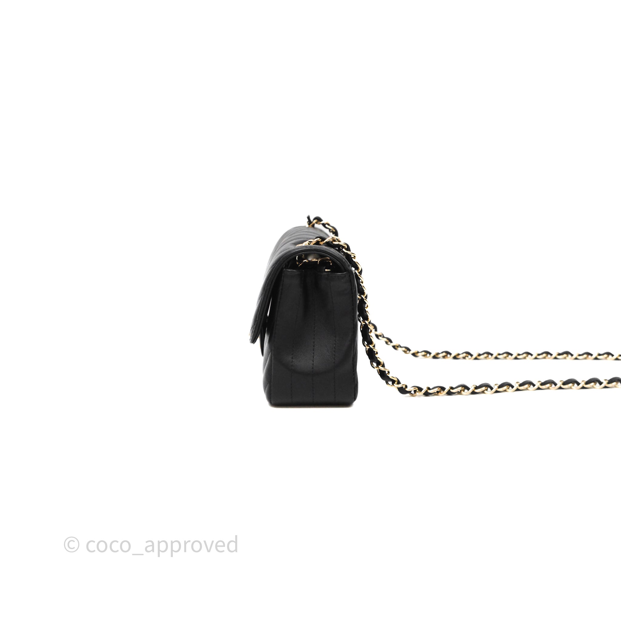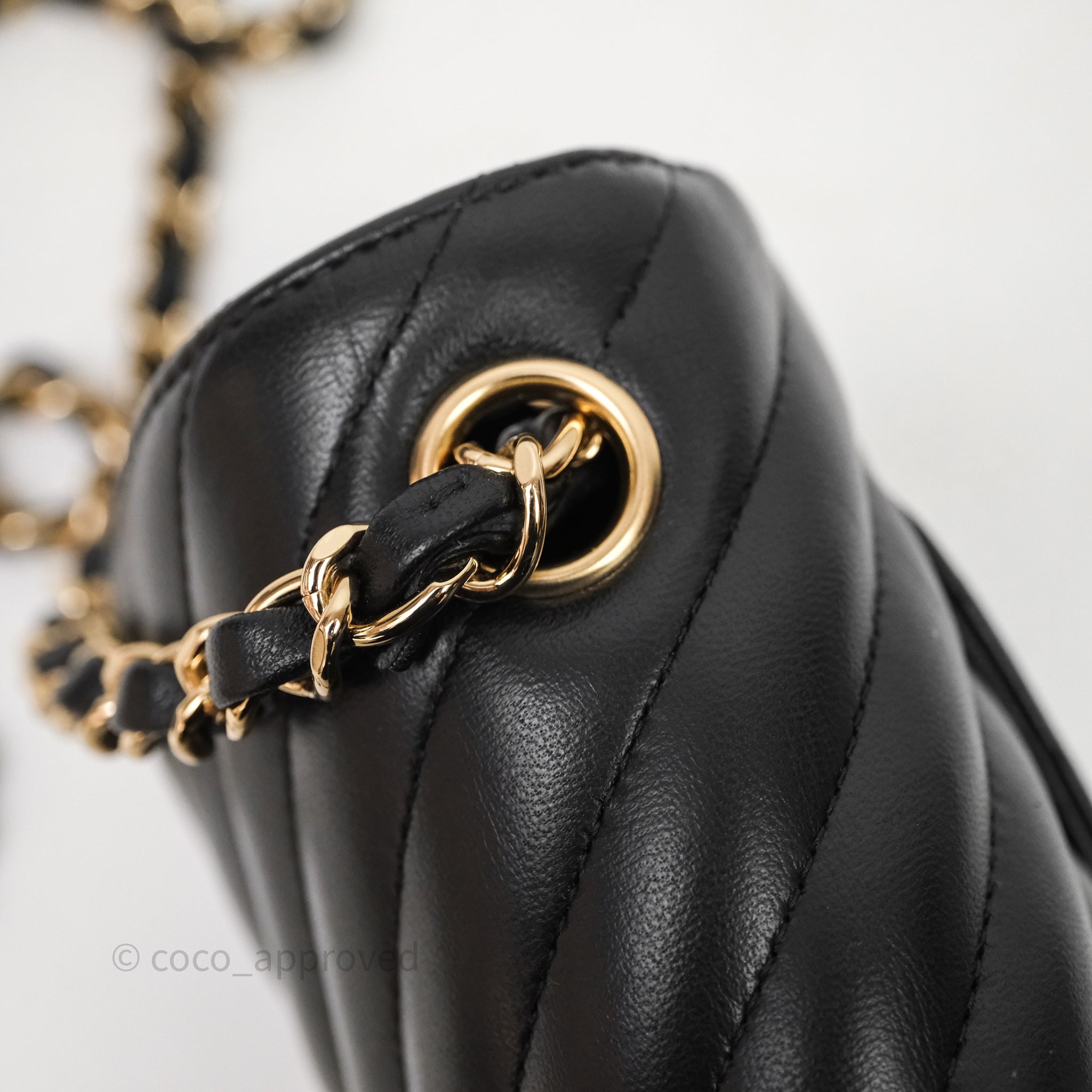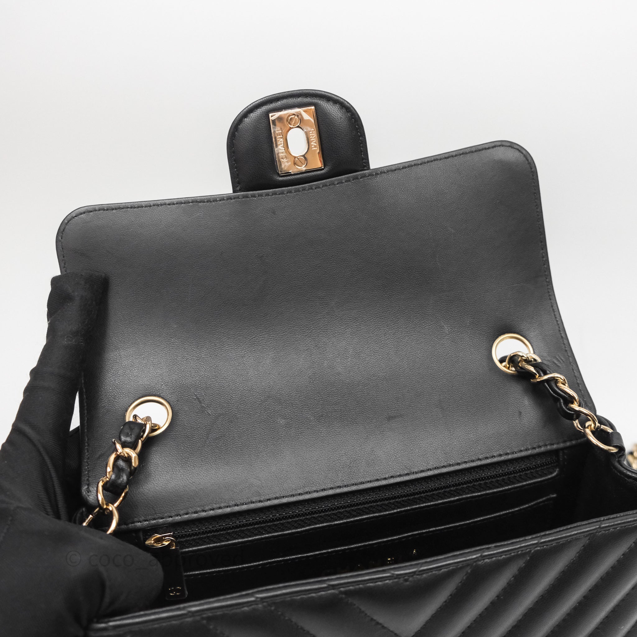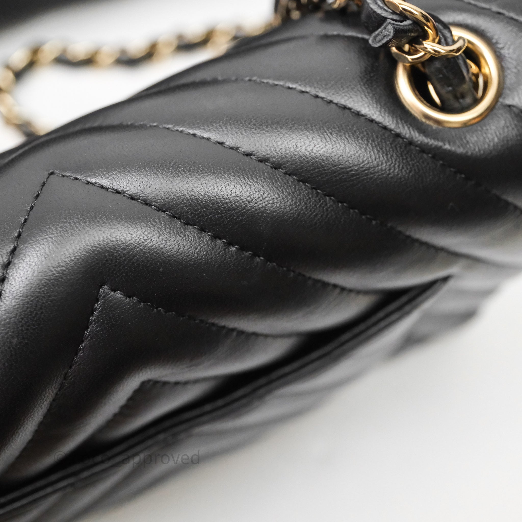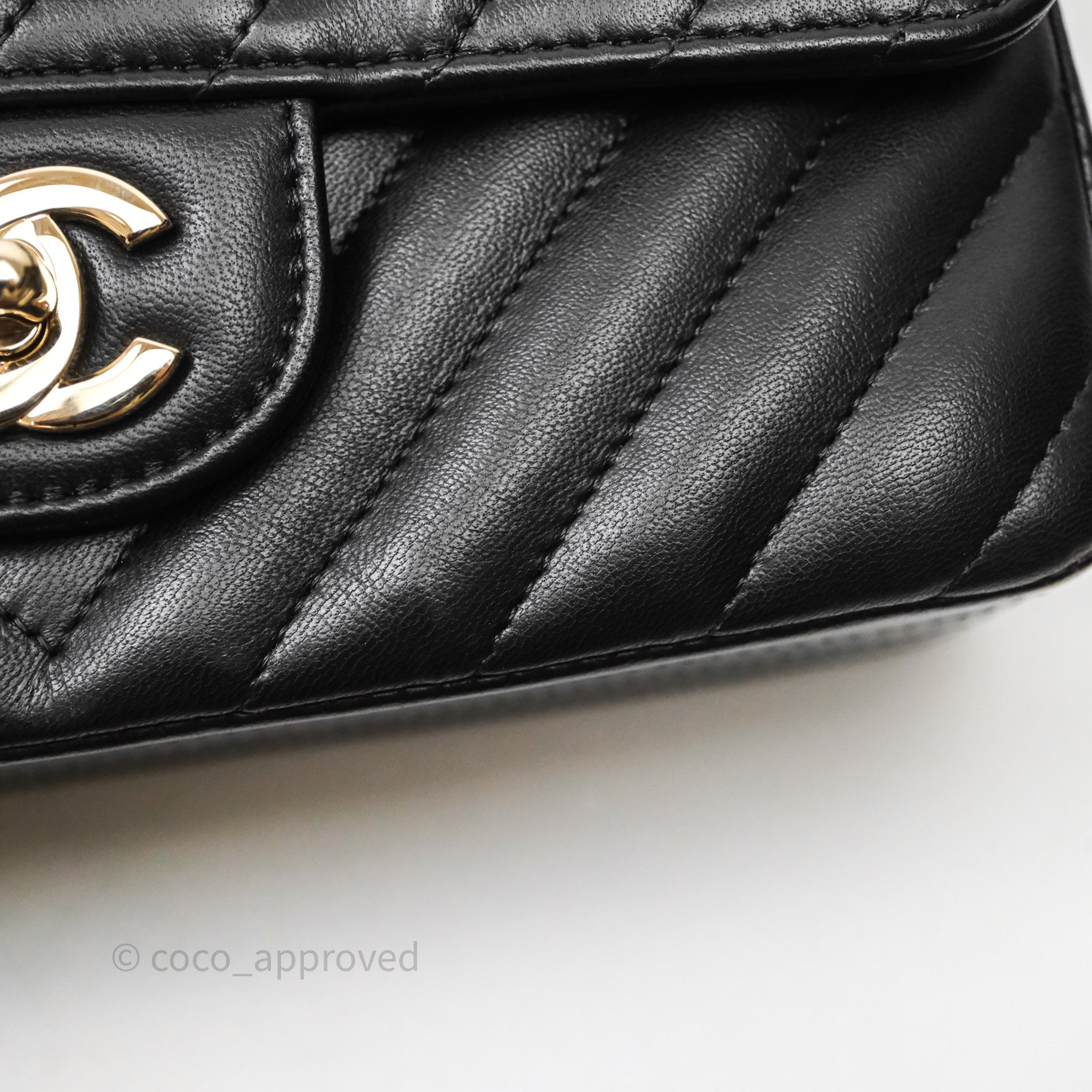 Chanel Quilted Mini Rectangular Chevron Black Lambskin Gold Hardware is now sold. Please subscribe for any updates if similar item becomes available.