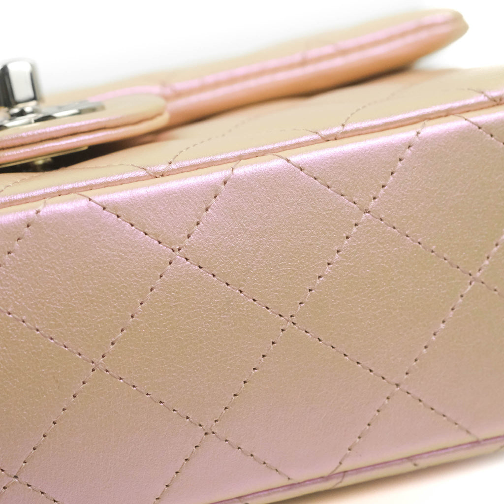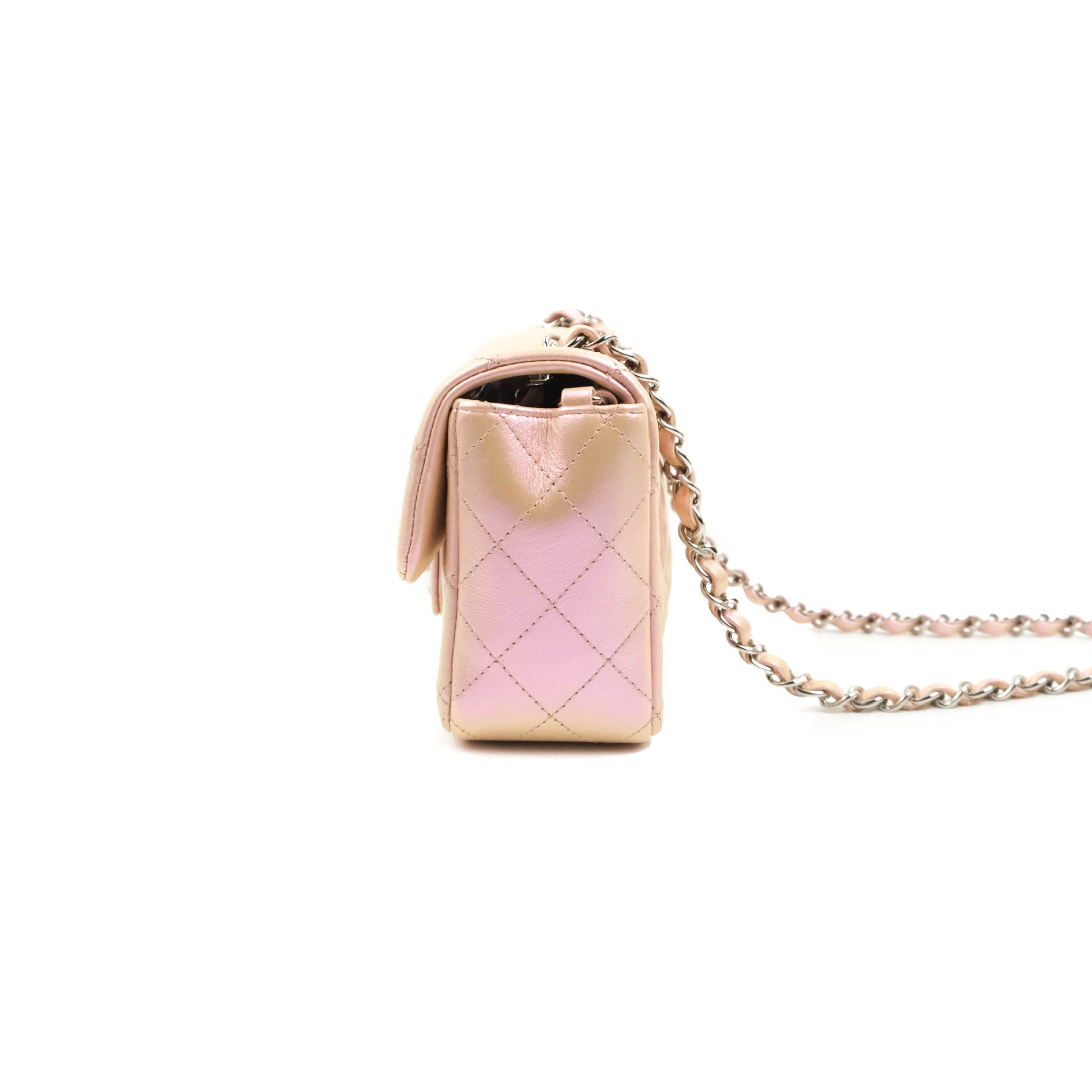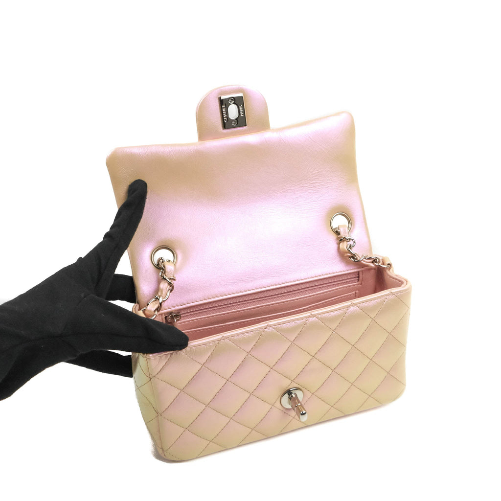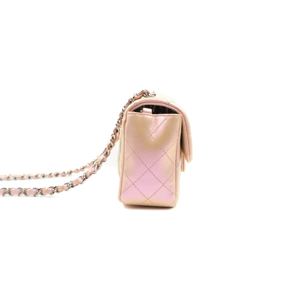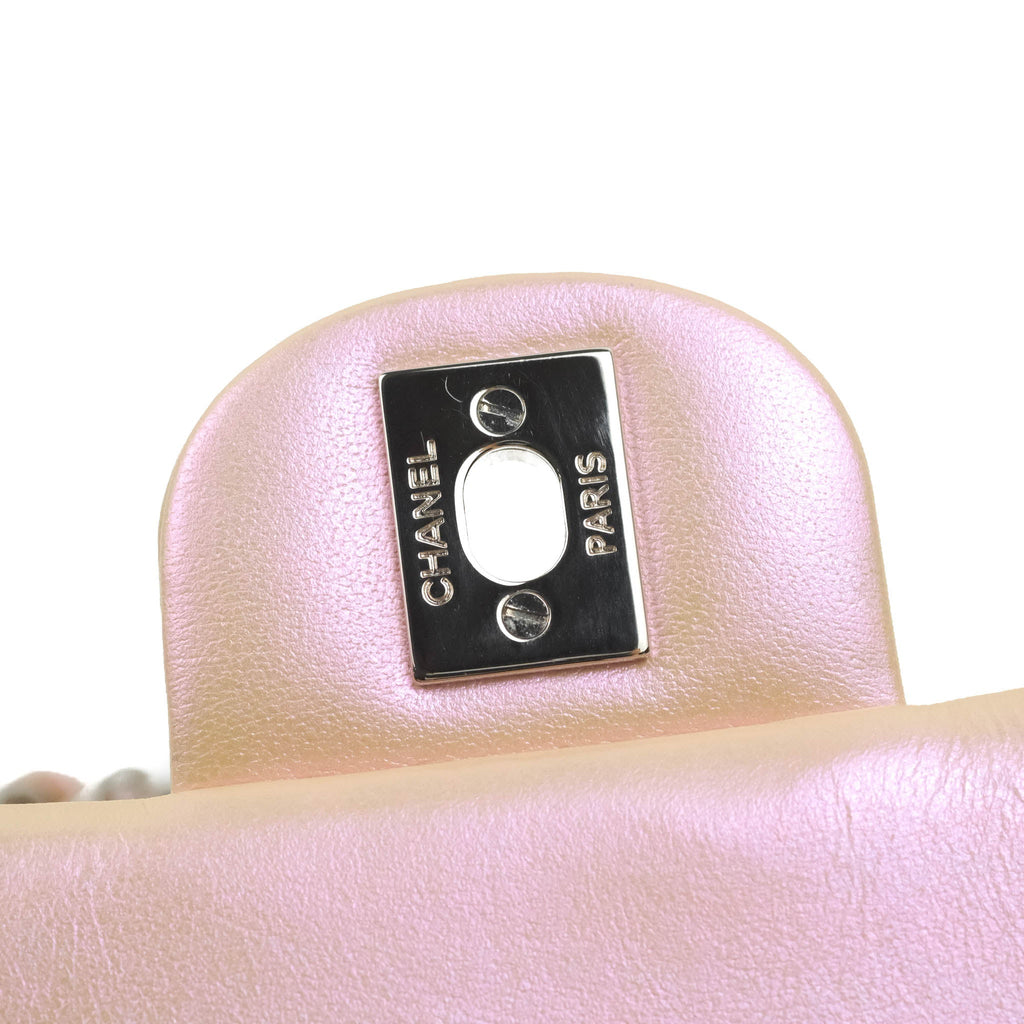 Chanel Quilted Mini Rectangular Flap Iridescent Pink Calfskin Silver Hardware