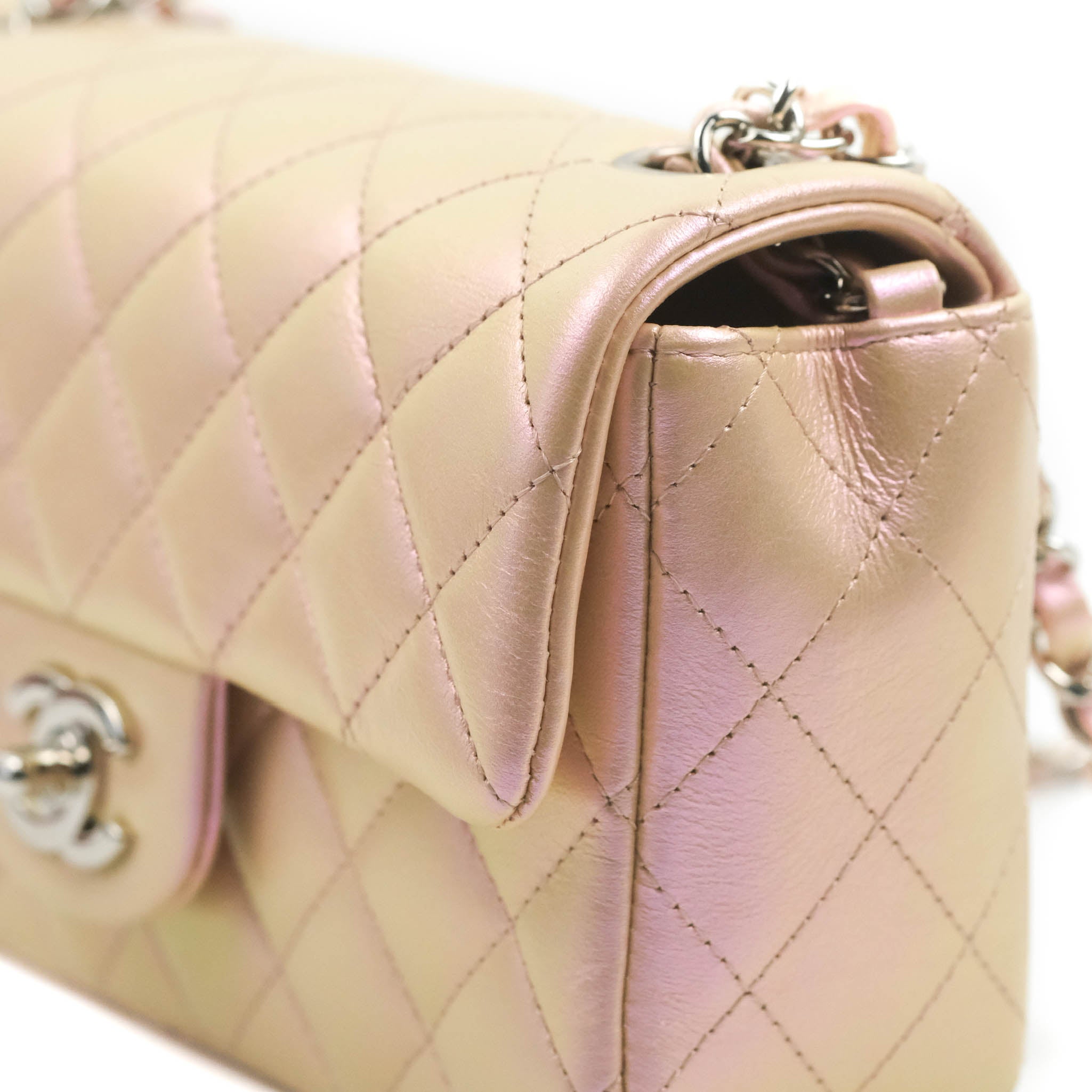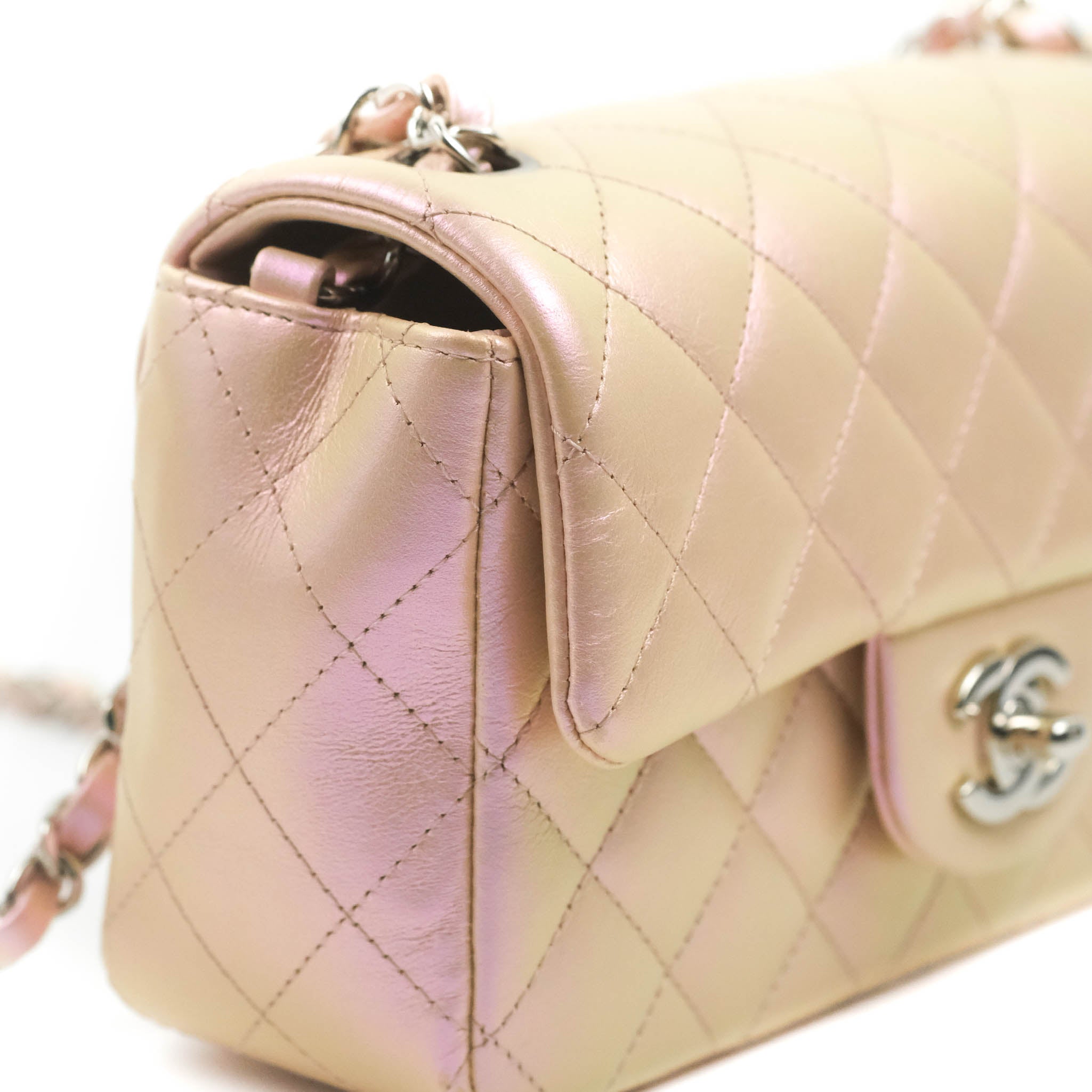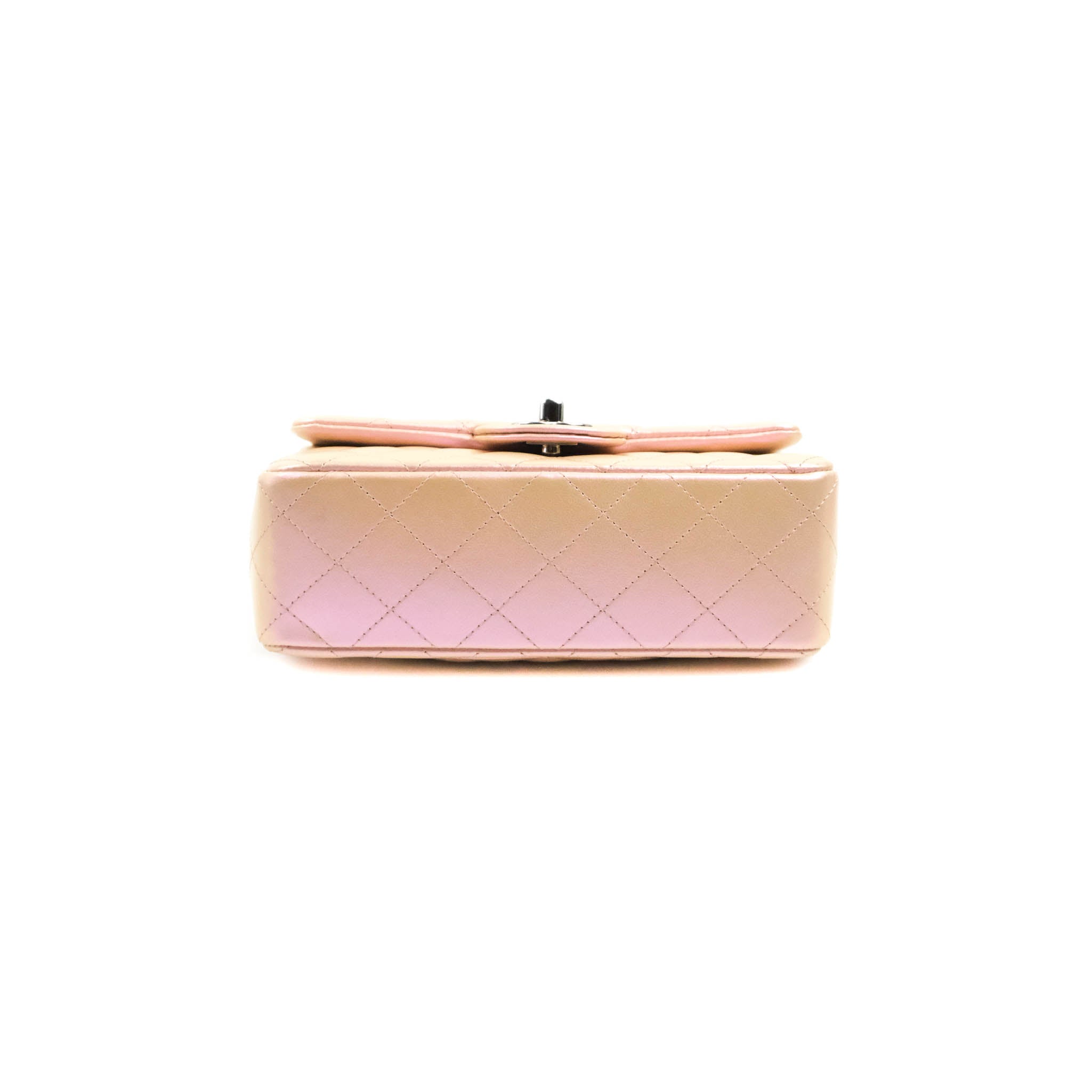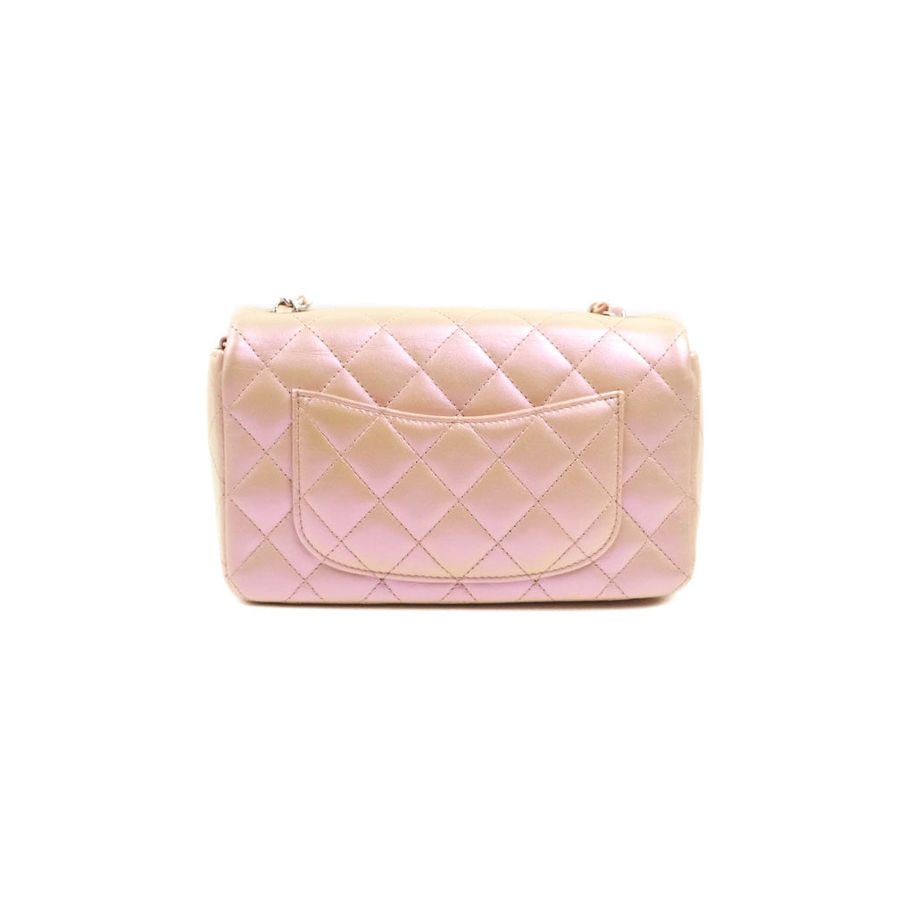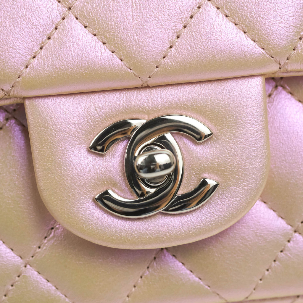 Chanel Quilted Mini Rectangular Flap Iridescent Pink Calfskin Silver Hardware
