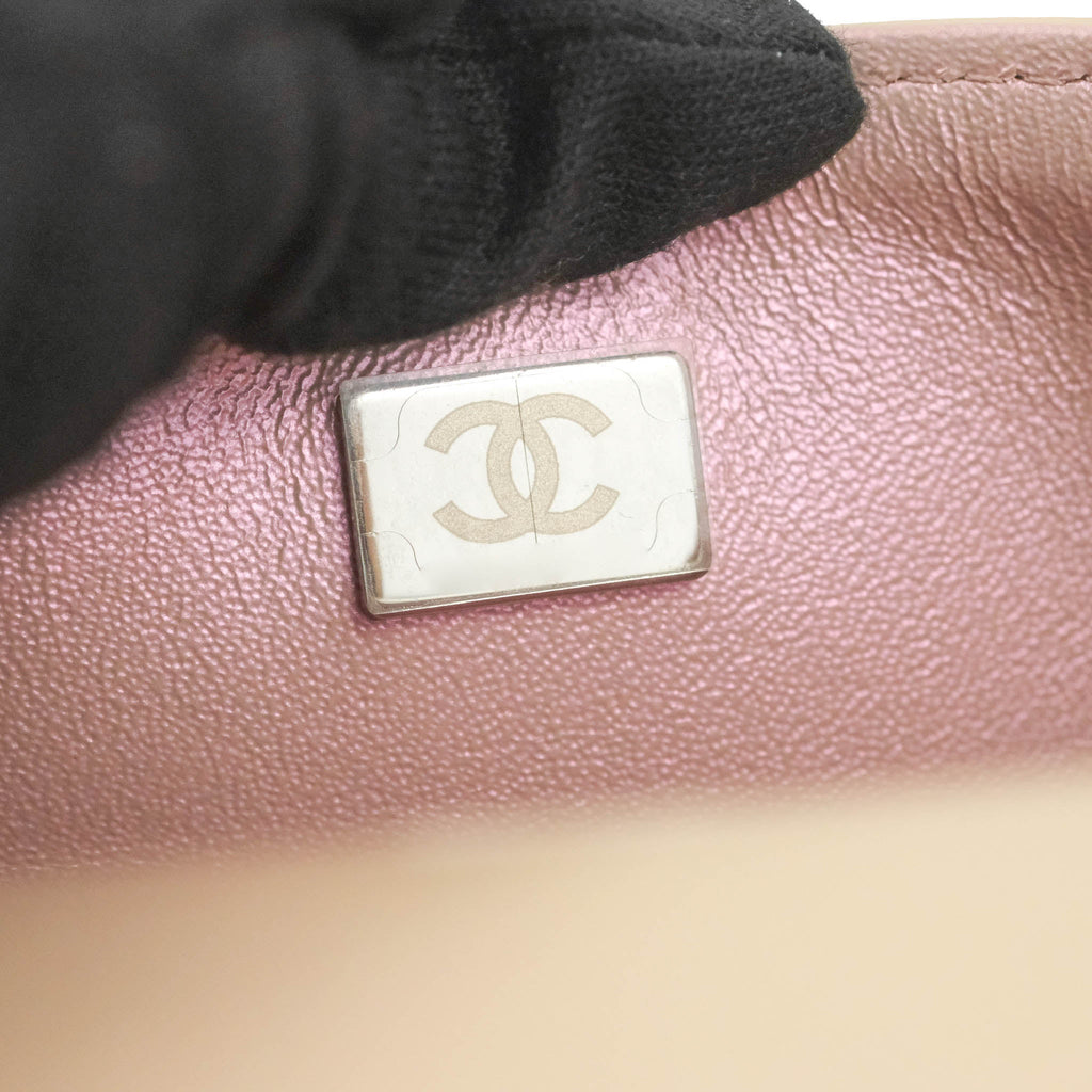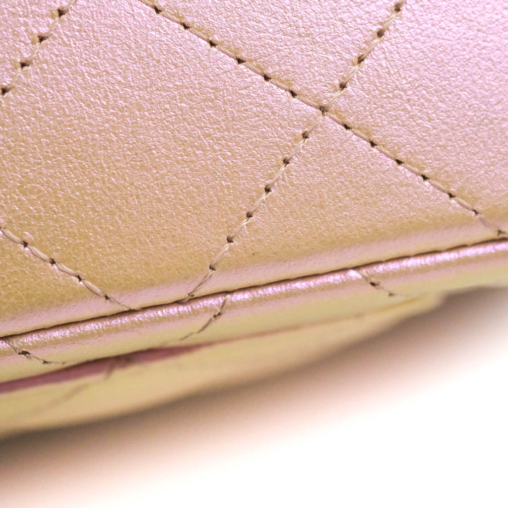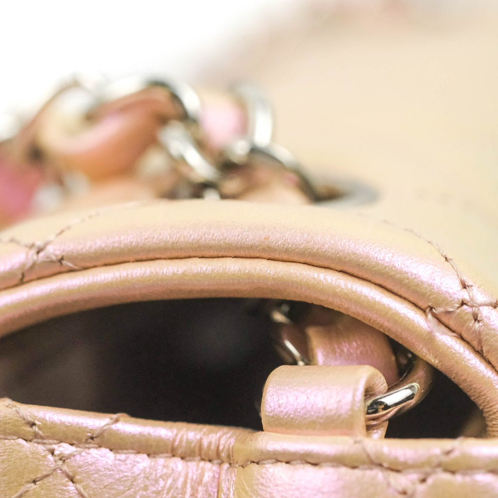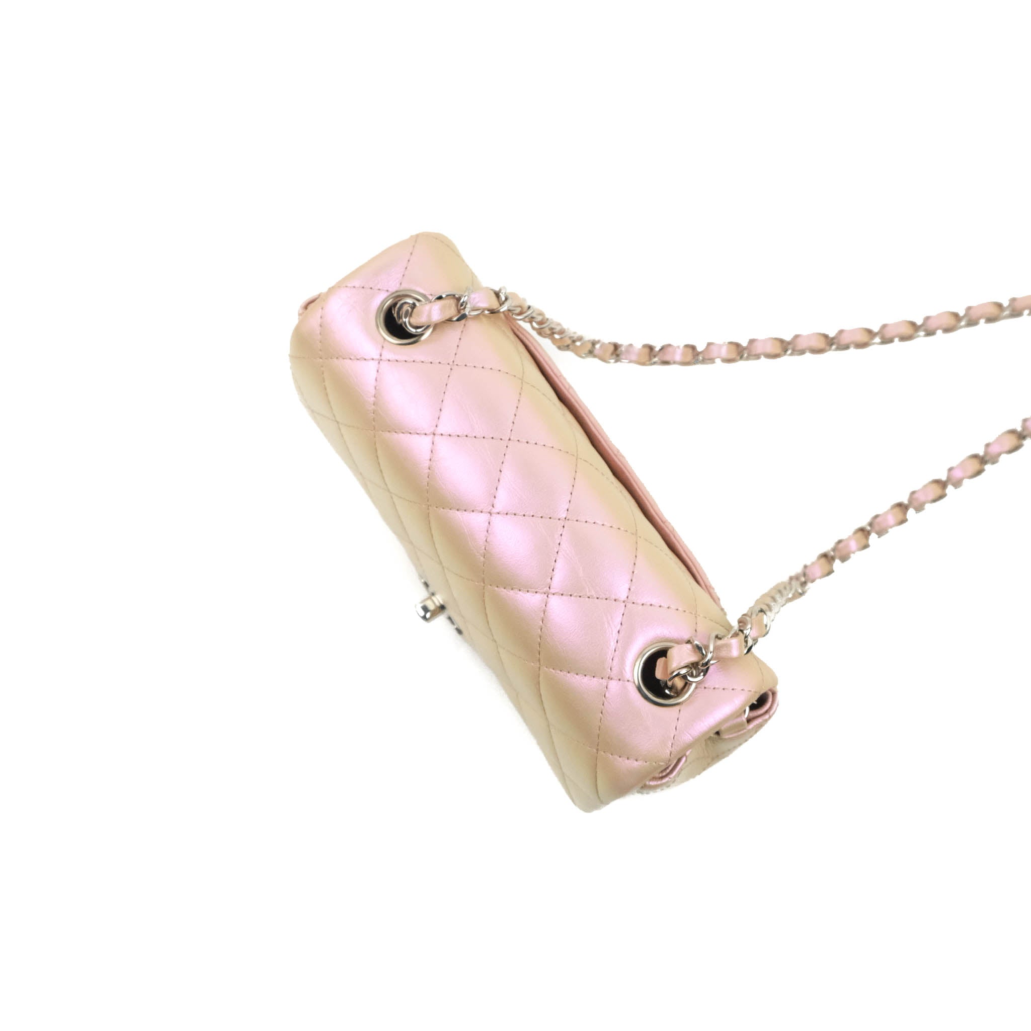 Chanel Quilted Mini Rectangular Flap Iridescent Pink Calfskin Silver Hardware