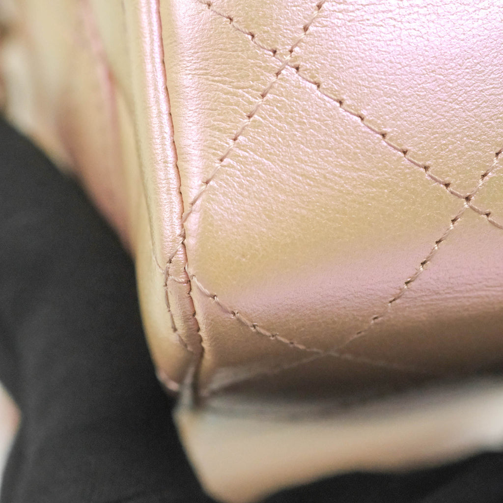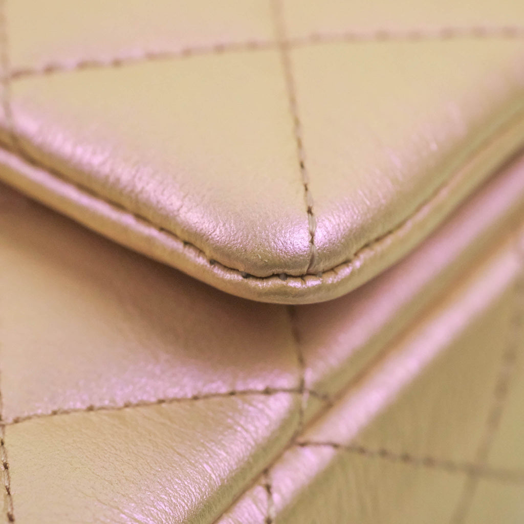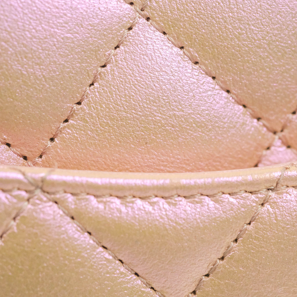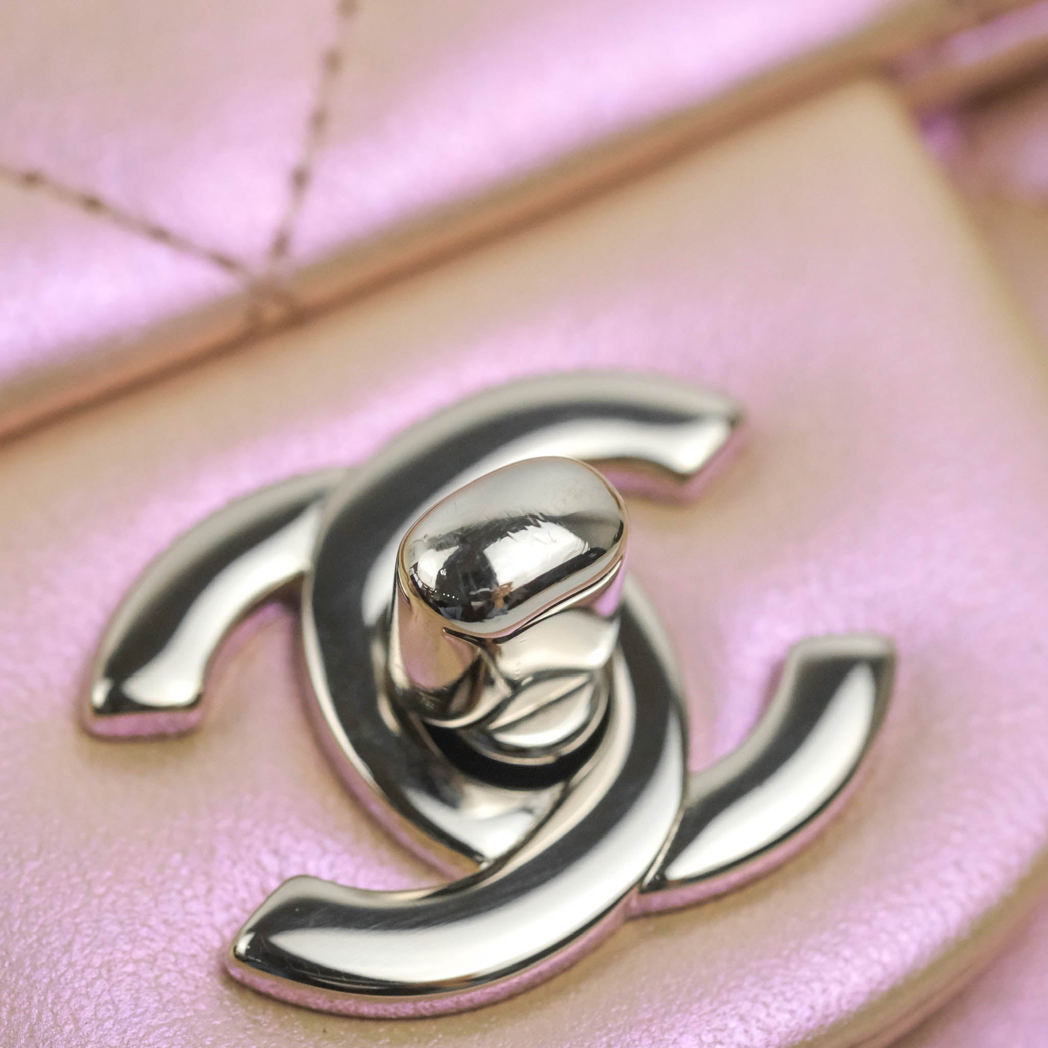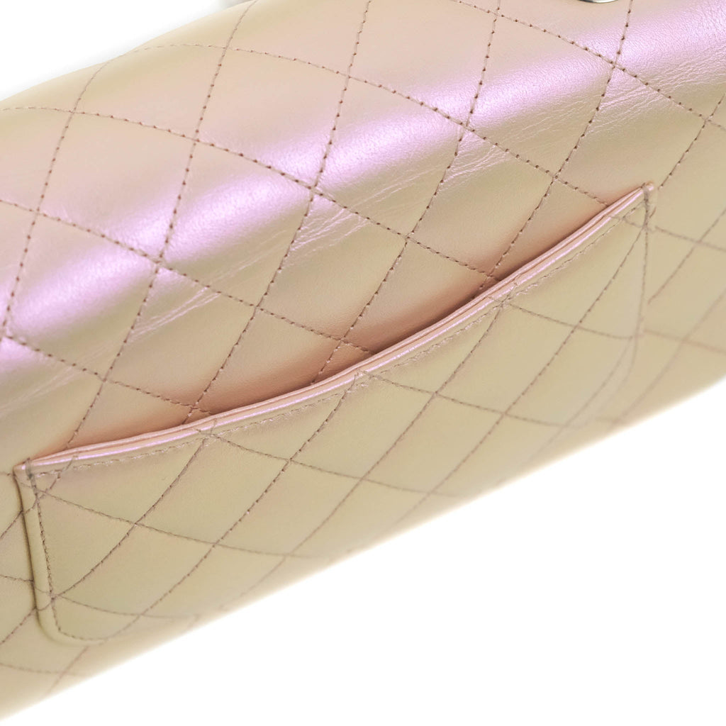 Chanel Quilted Mini Rectangular Flap Iridescent Pink Calfskin Silver Hardware