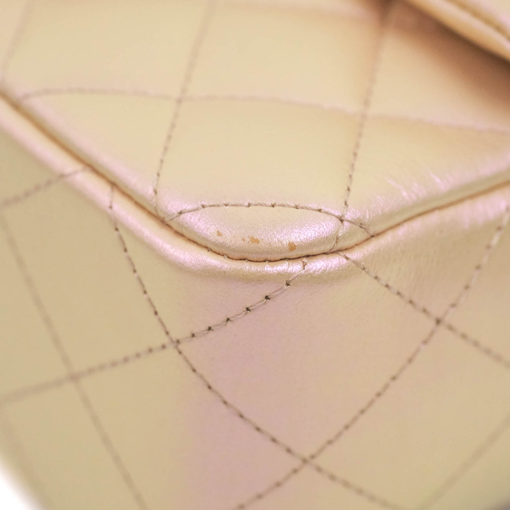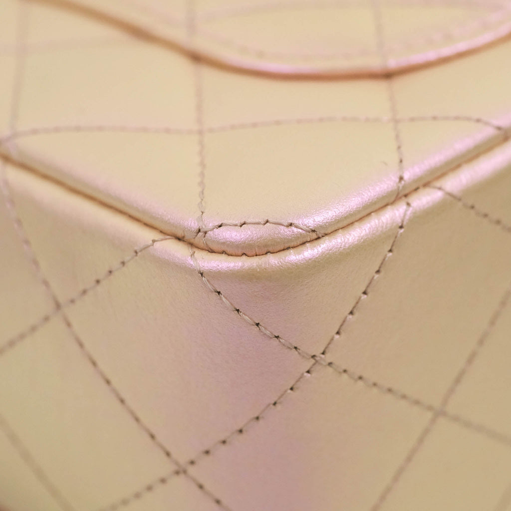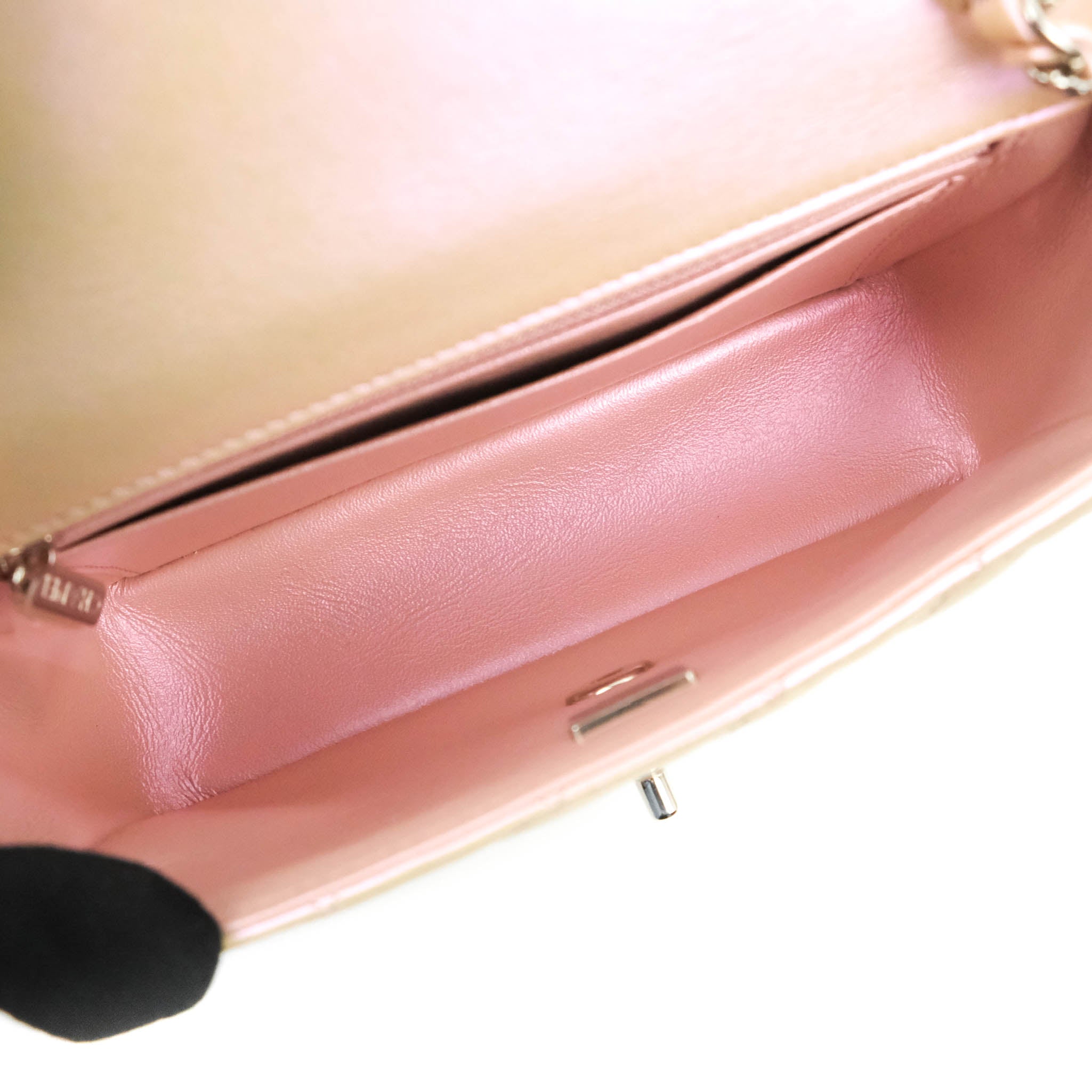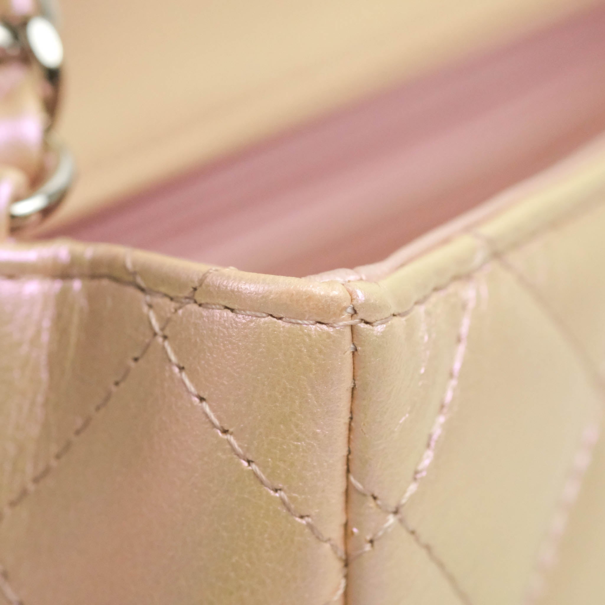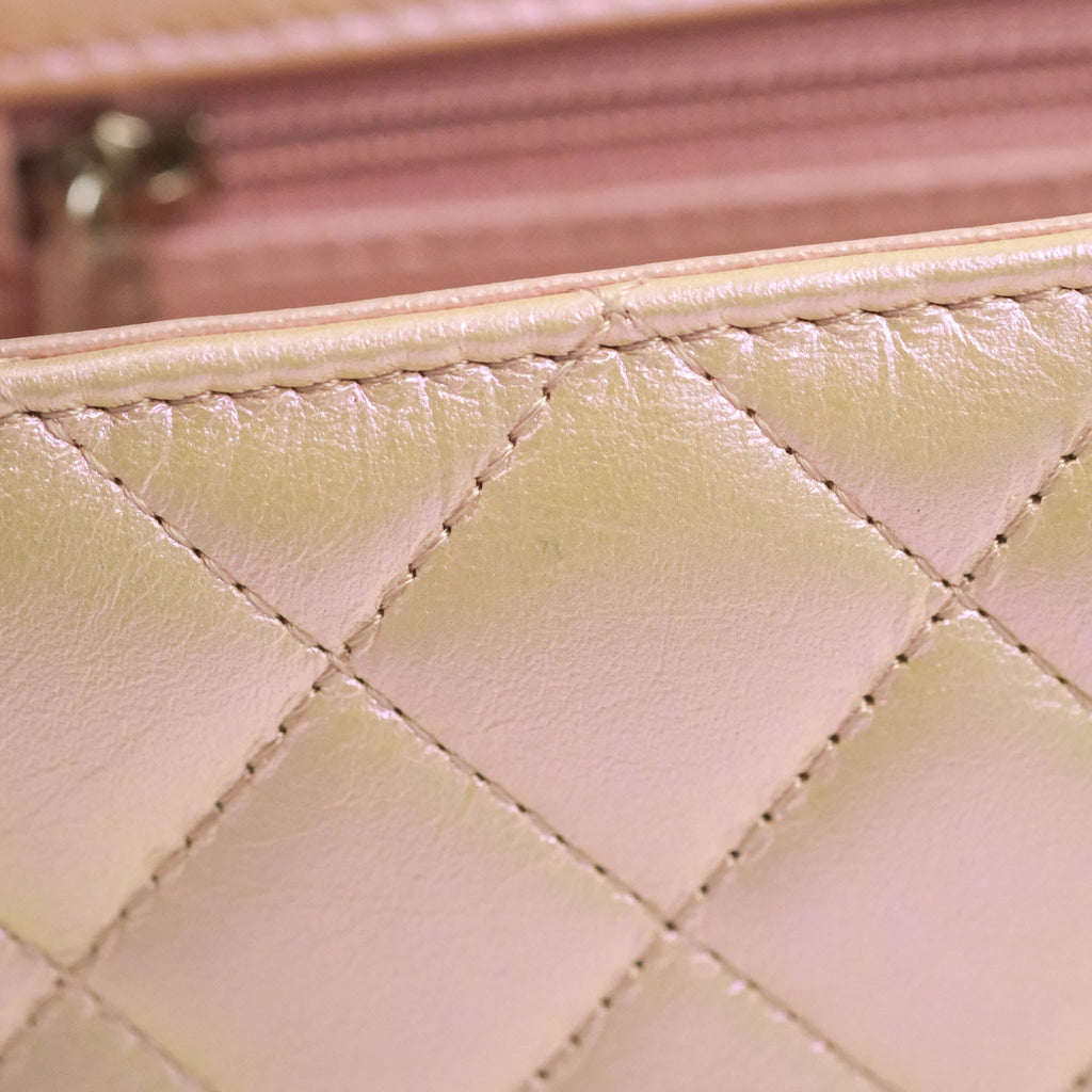 Chanel Quilted Mini Rectangular Flap Iridescent Pink Calfskin Silver Hardware