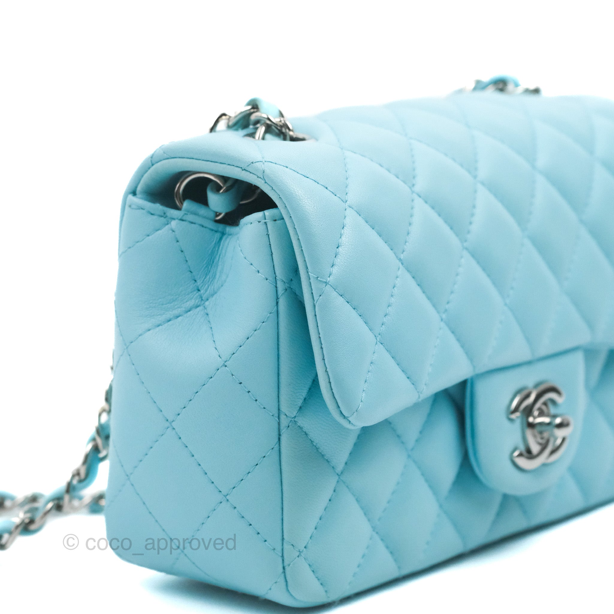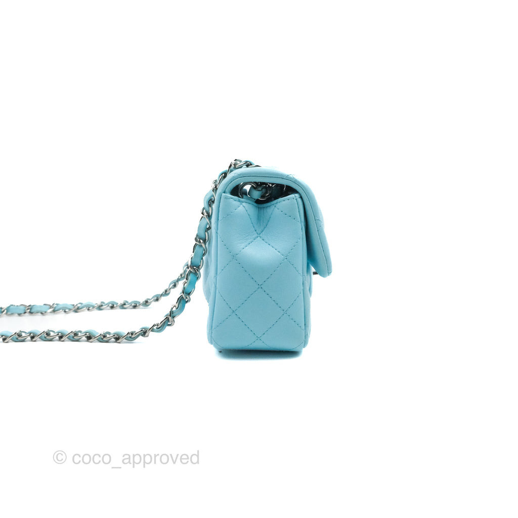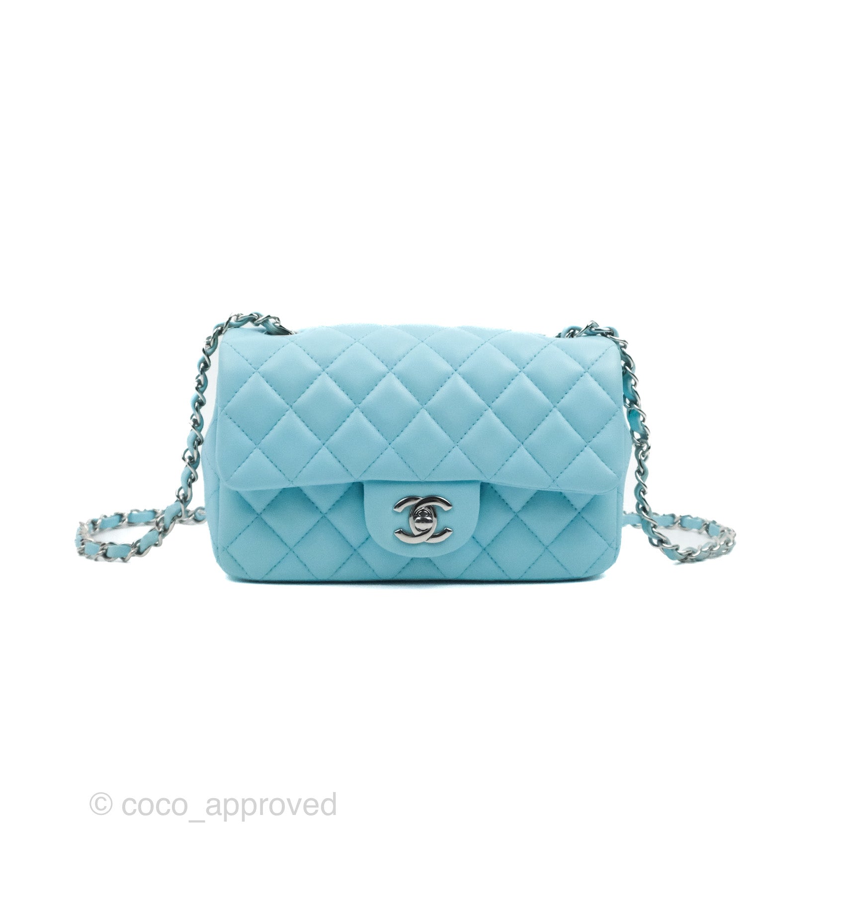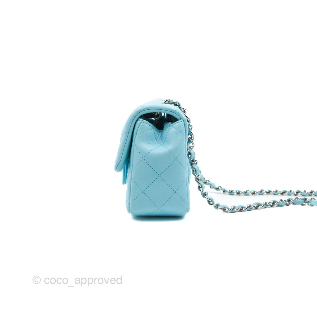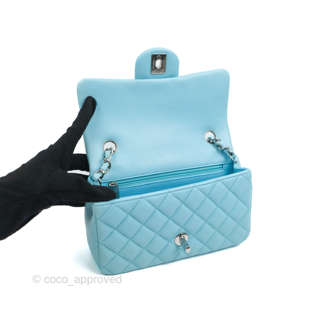 Chanel Quilted Mini Rectangular Flap Light Blue Lambskin Silver Hardware