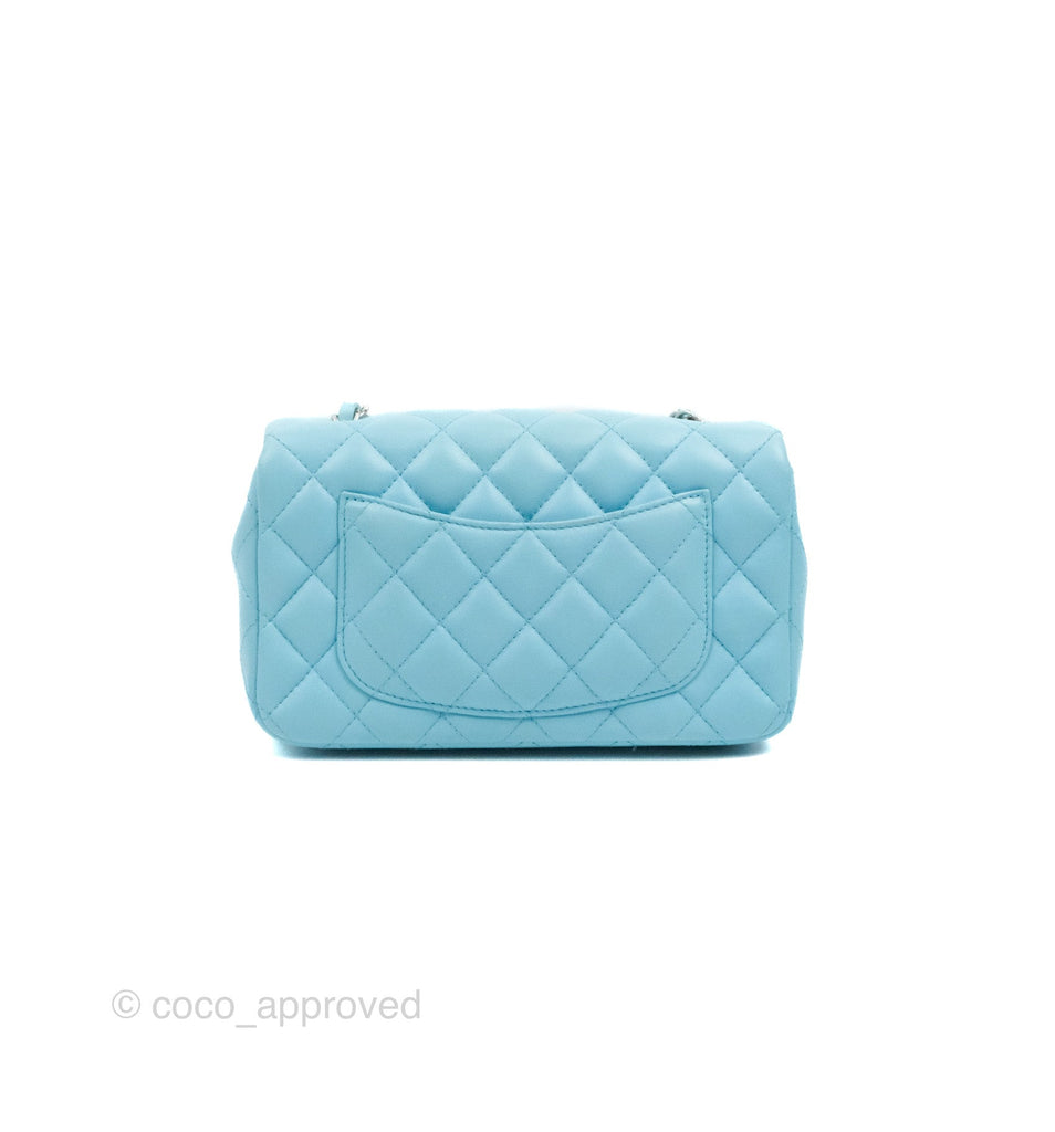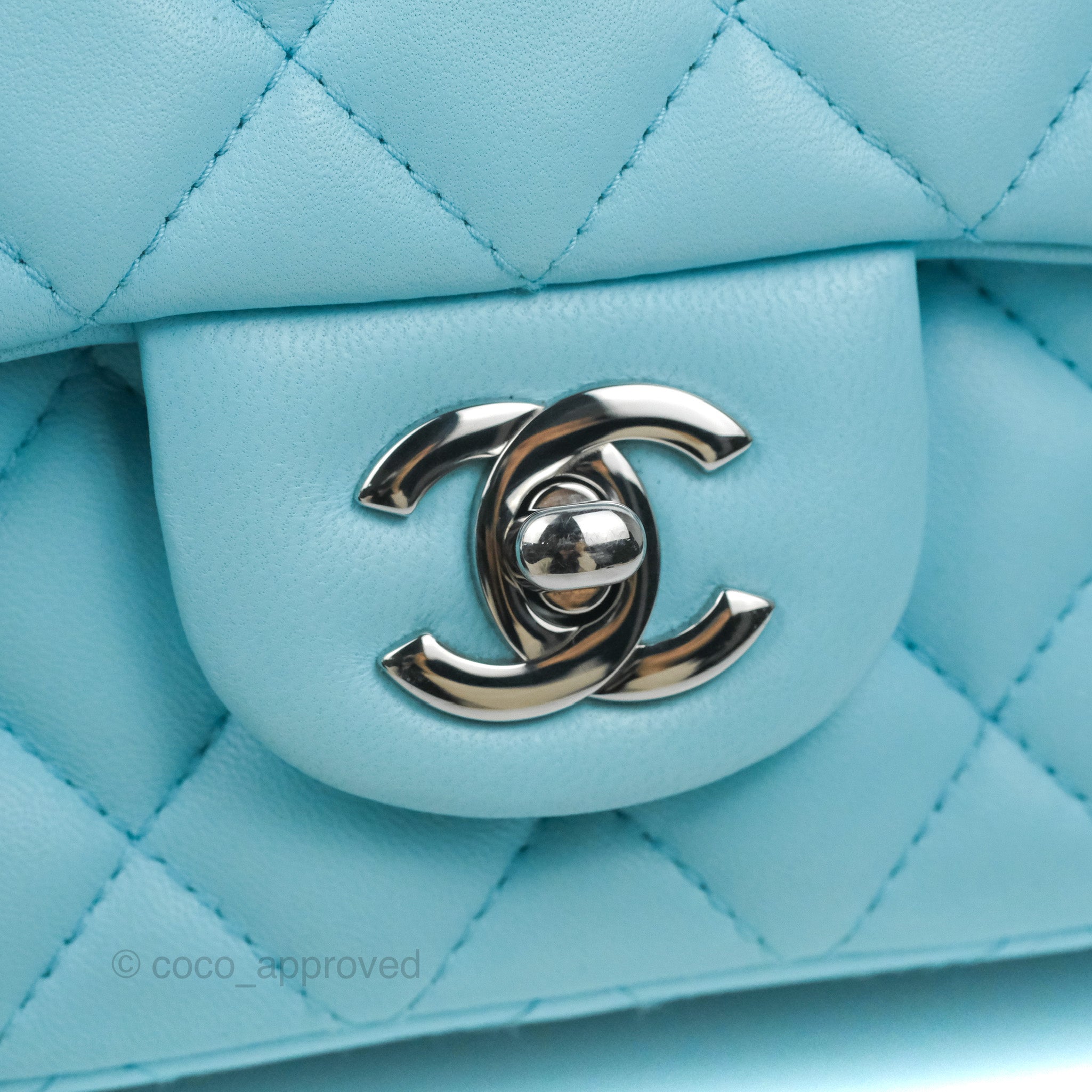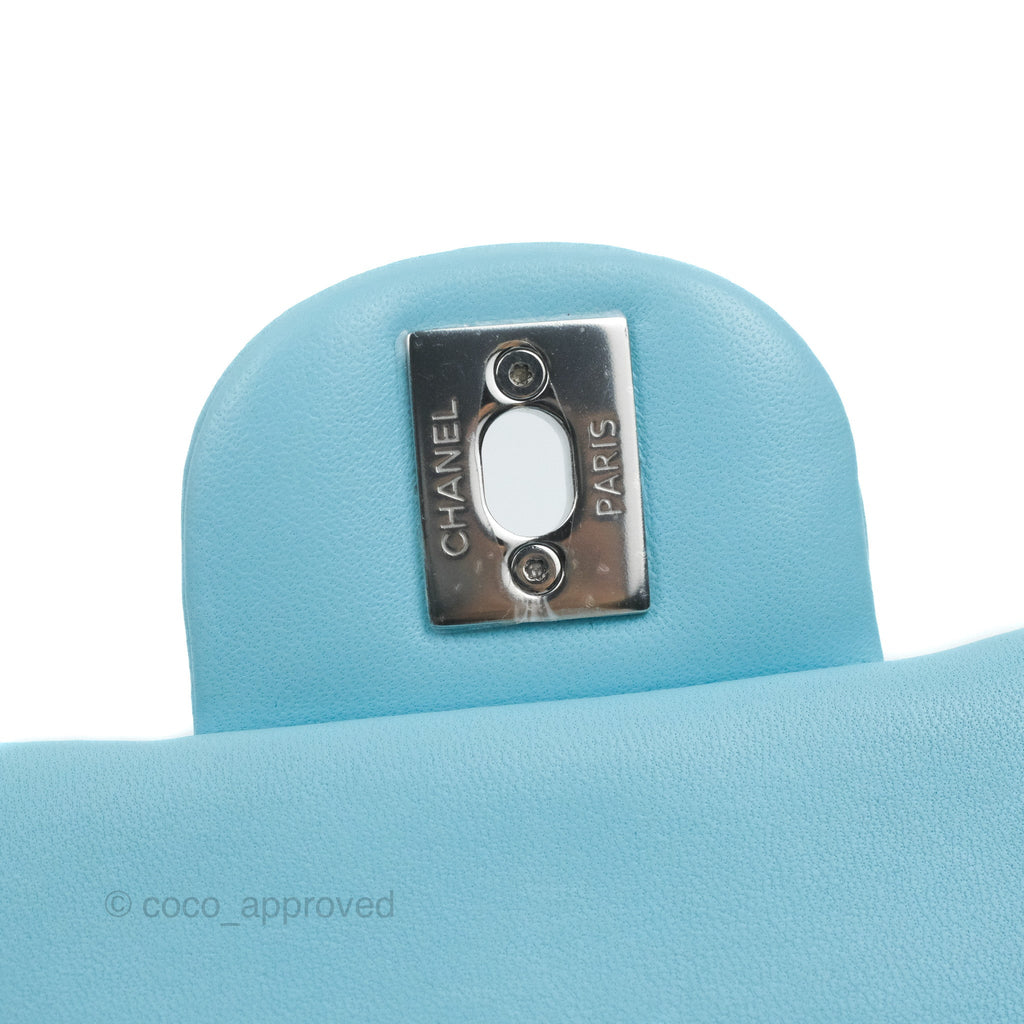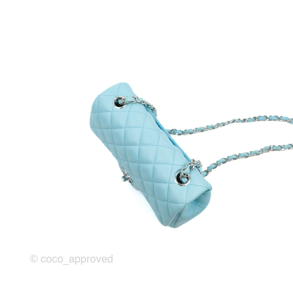 Chanel Quilted Mini Rectangular Flap Light Blue Lambskin Silver Hardware