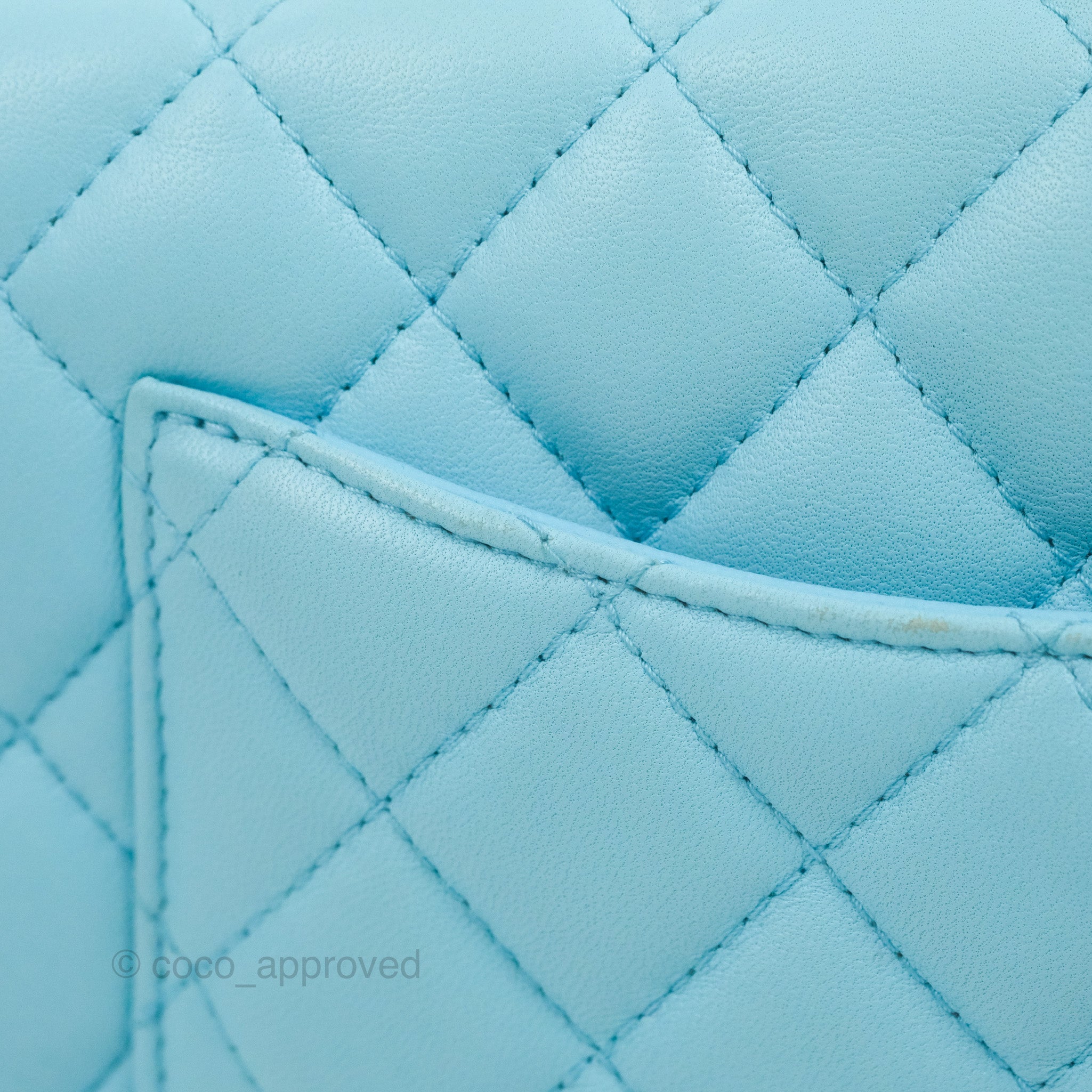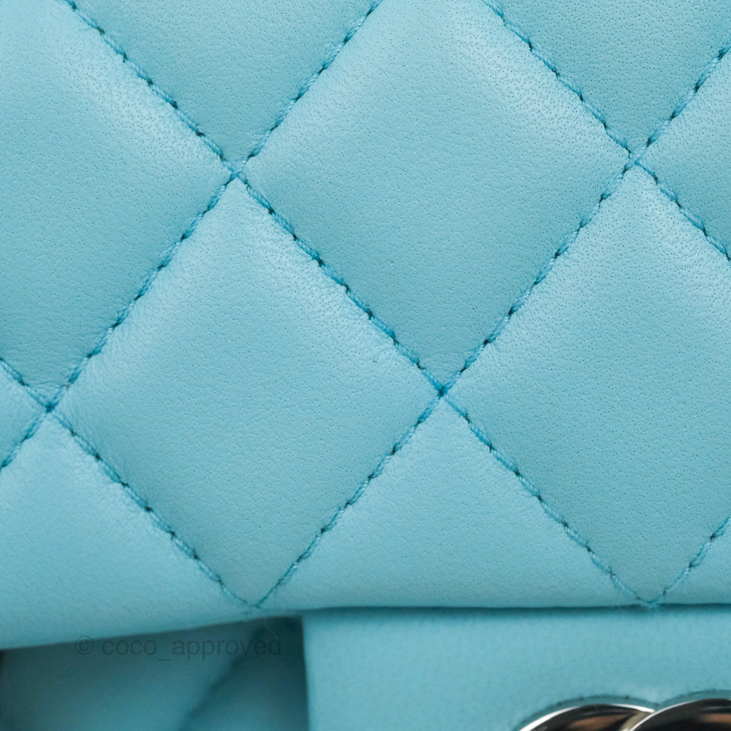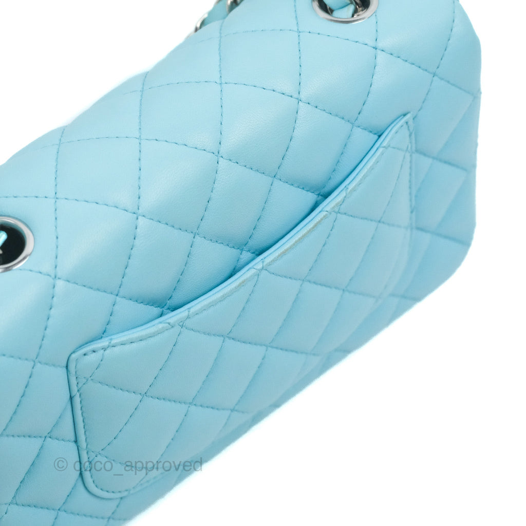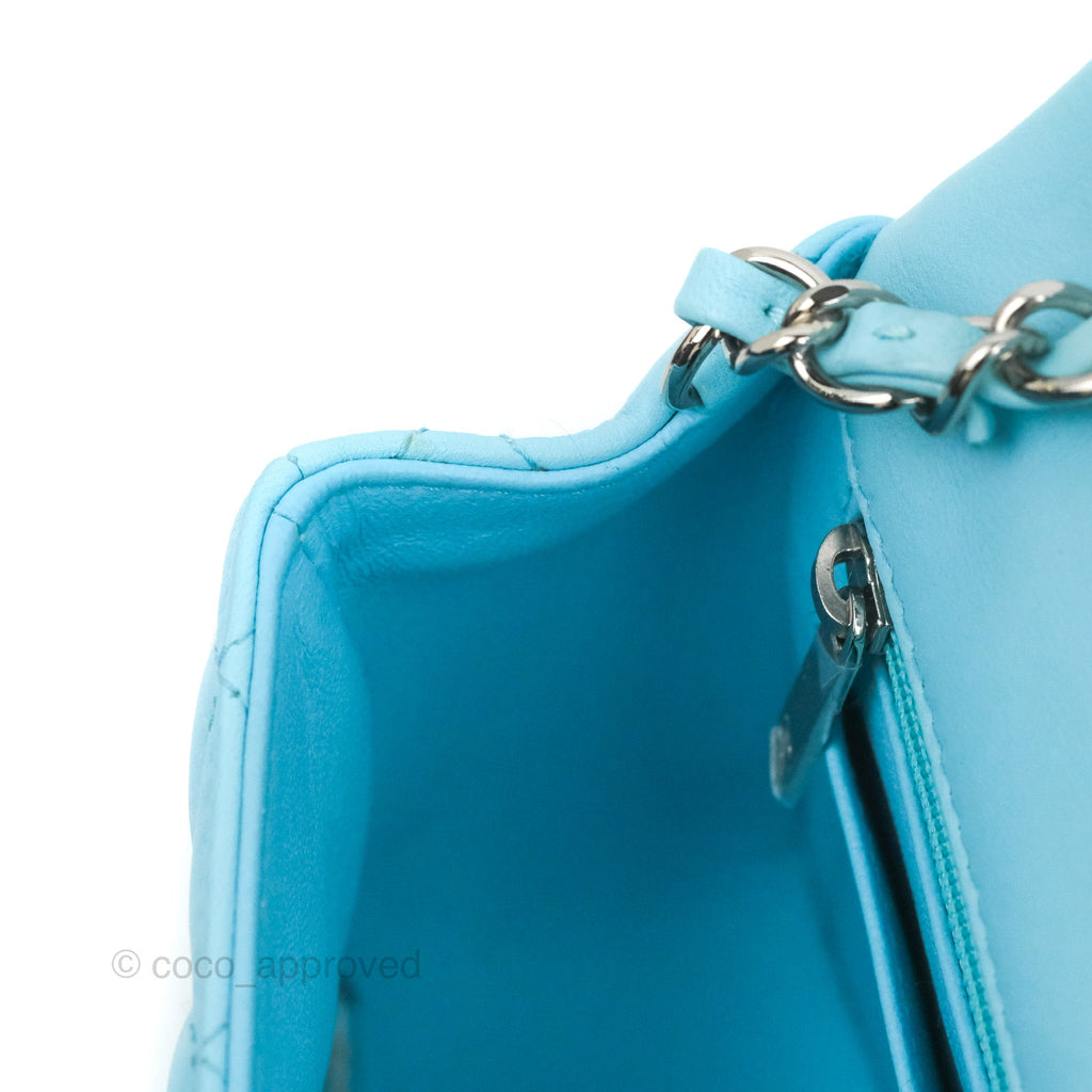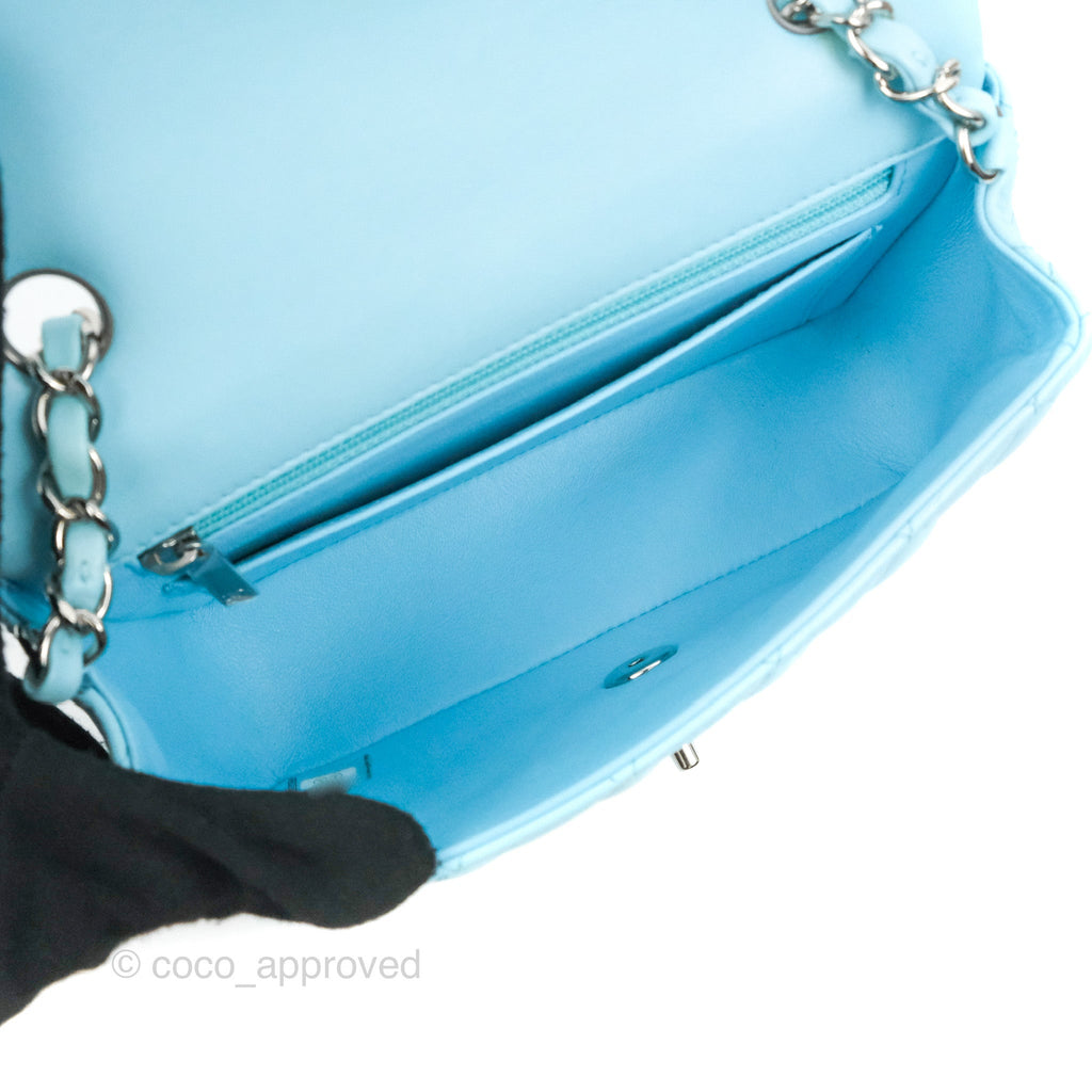 Chanel Quilted Mini Rectangular Flap Light Blue Lambskin Silver Hardware