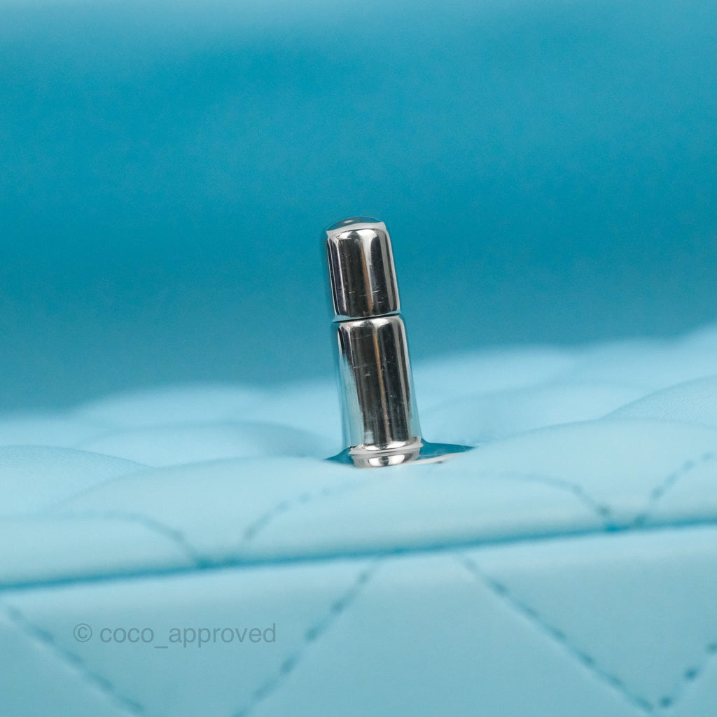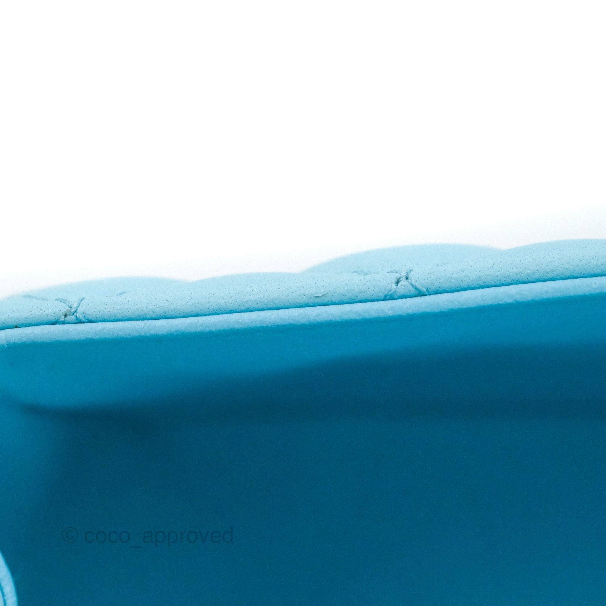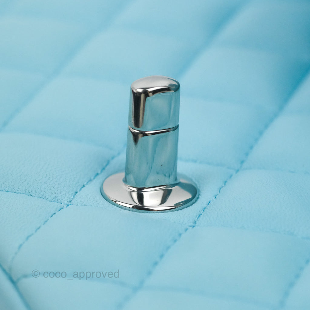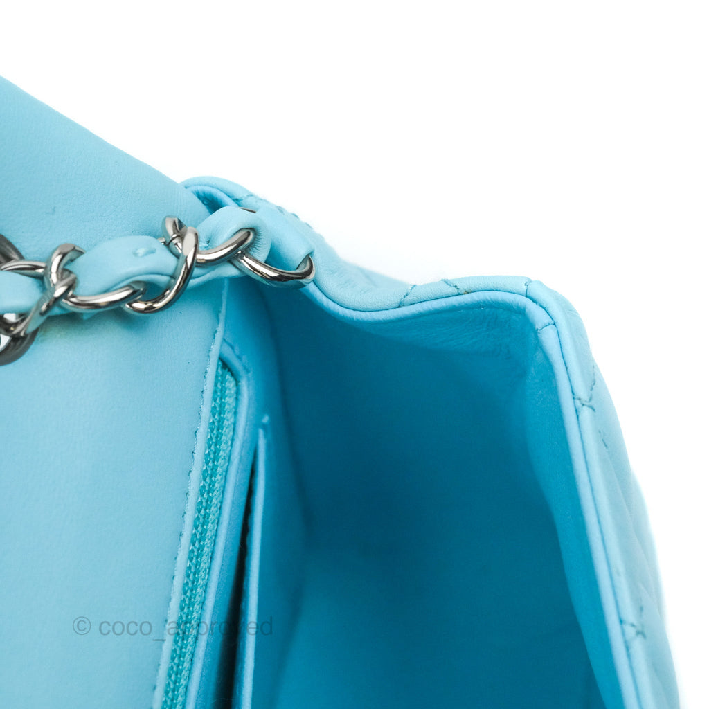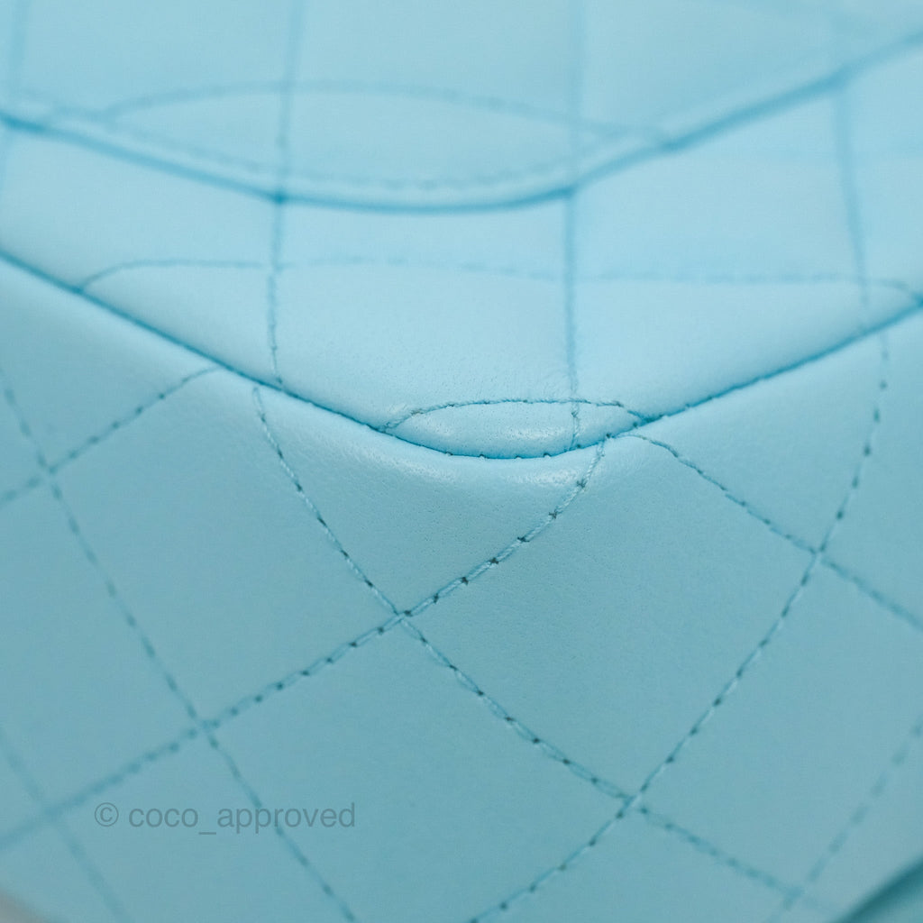 Chanel Quilted Mini Rectangular Flap Light Blue Lambskin Silver Hardware