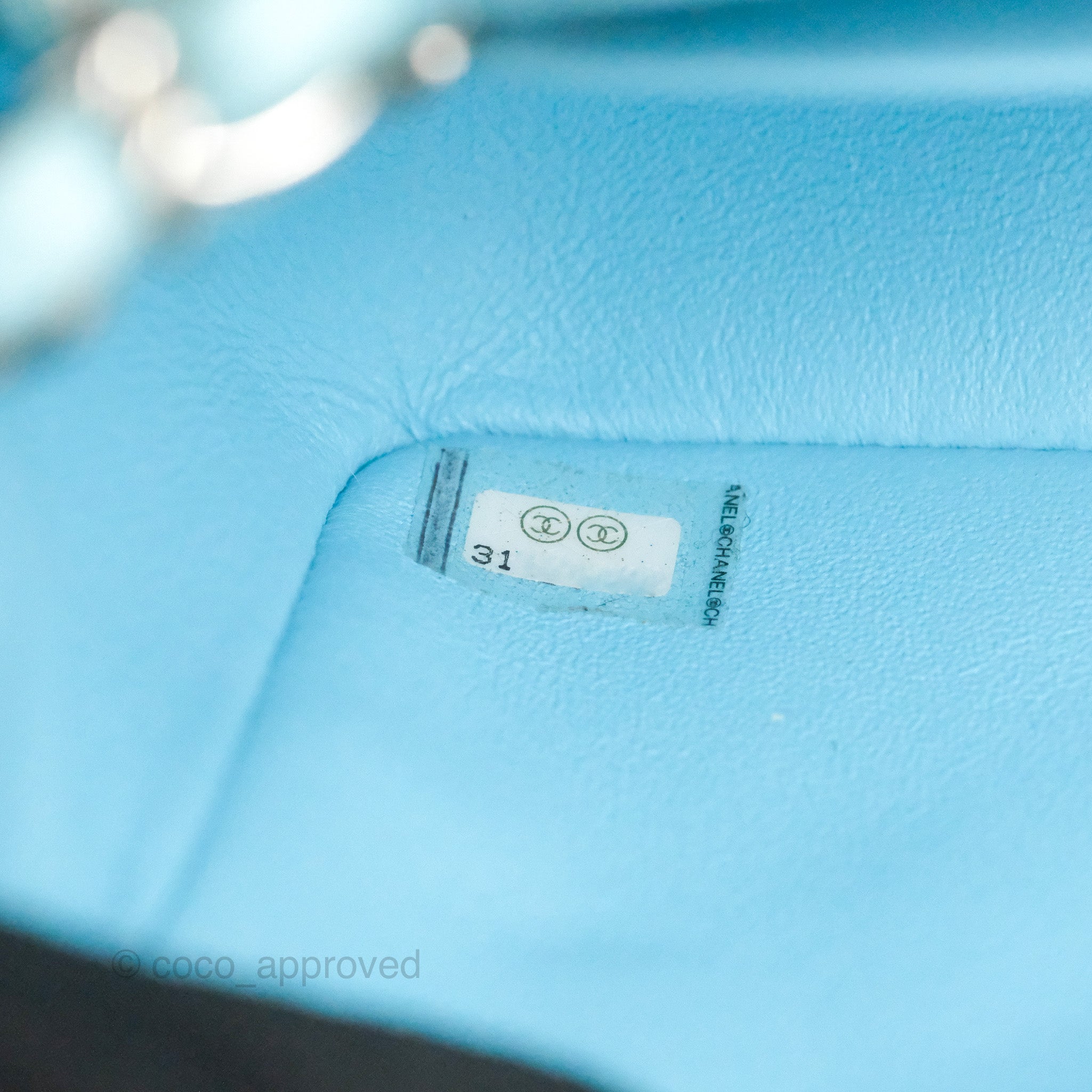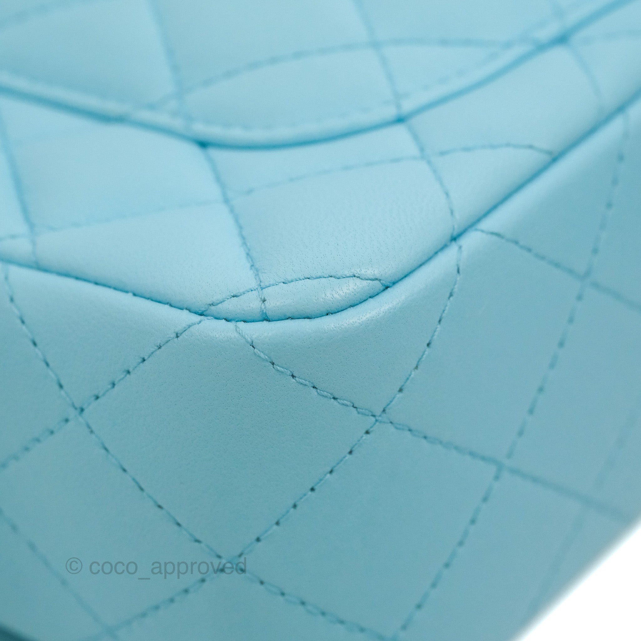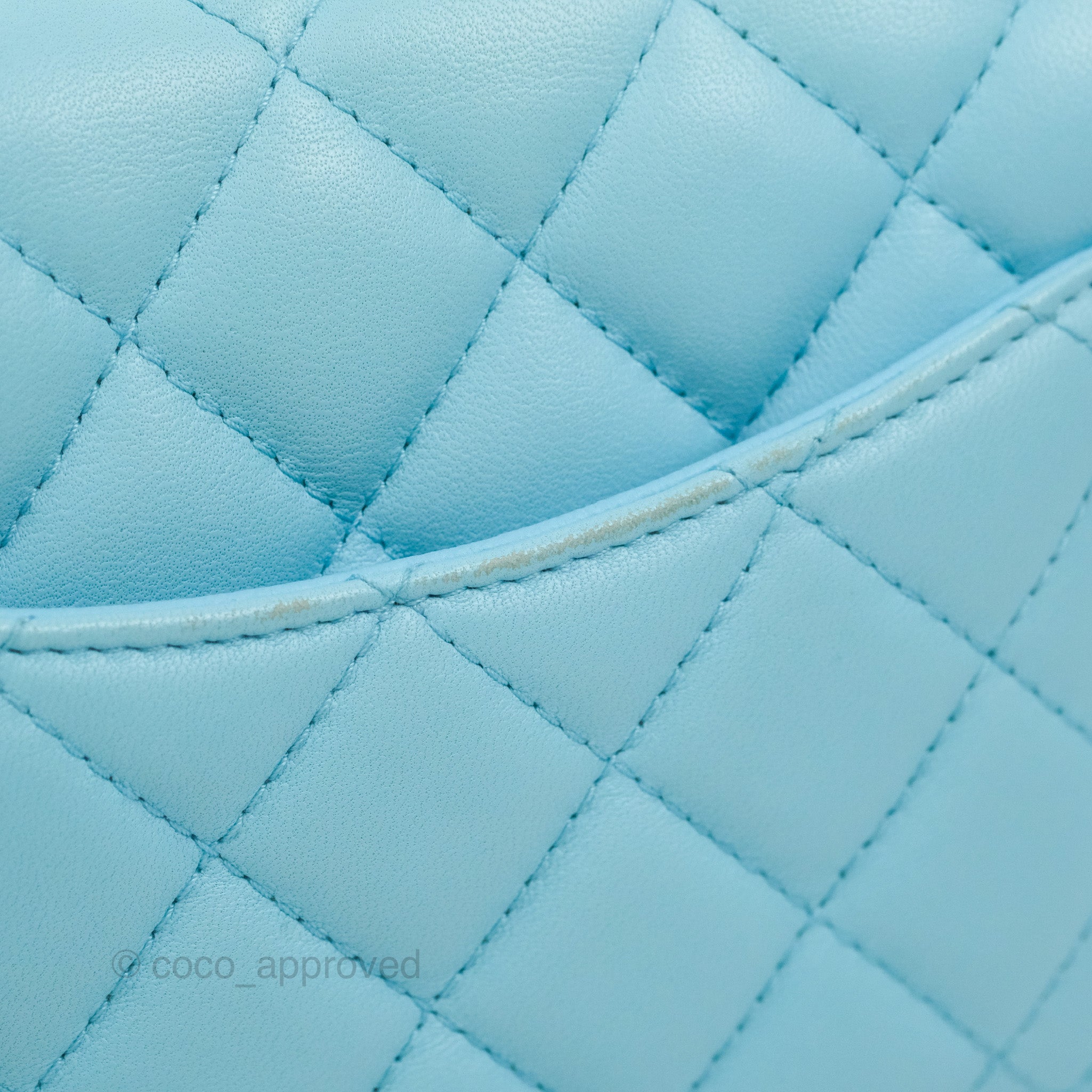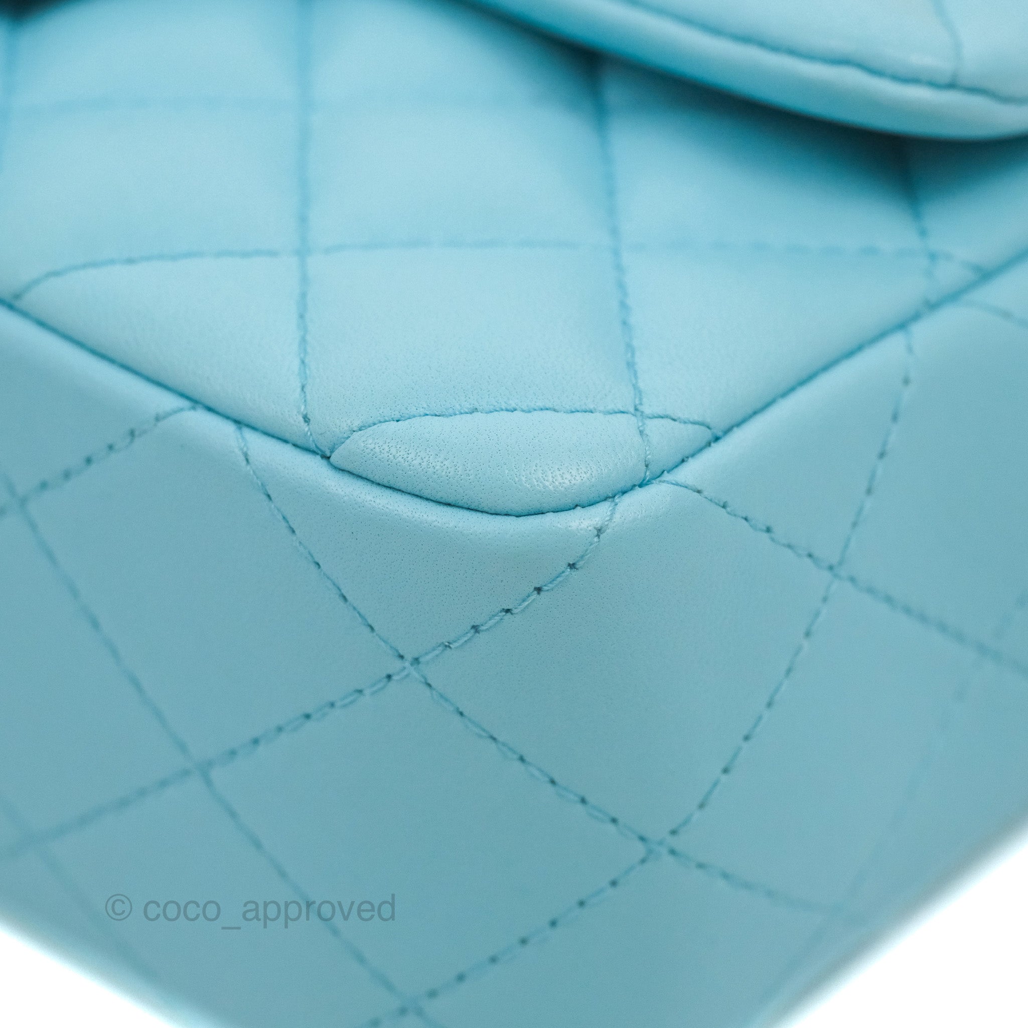 Chanel Quilted Mini Rectangular Flap Light Blue Lambskin Silver Hardware