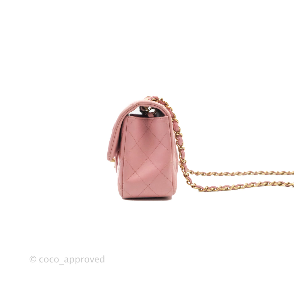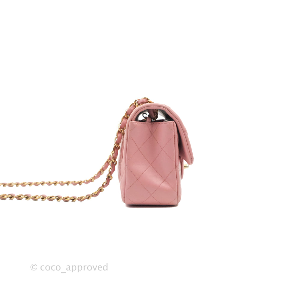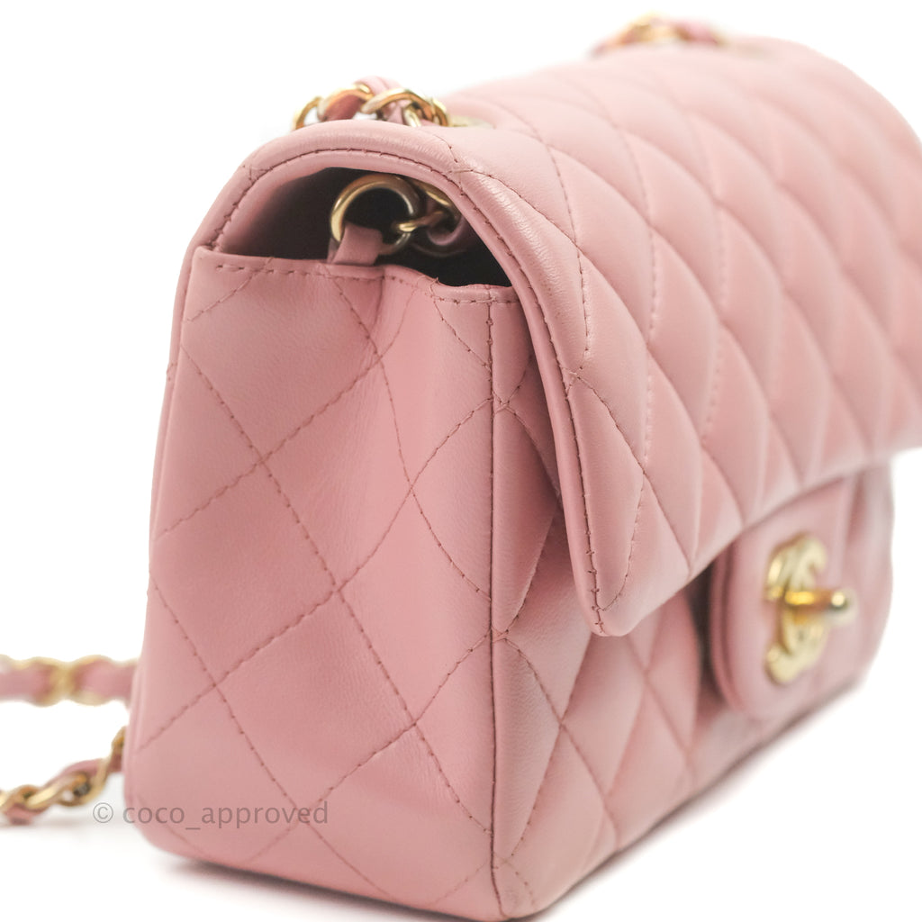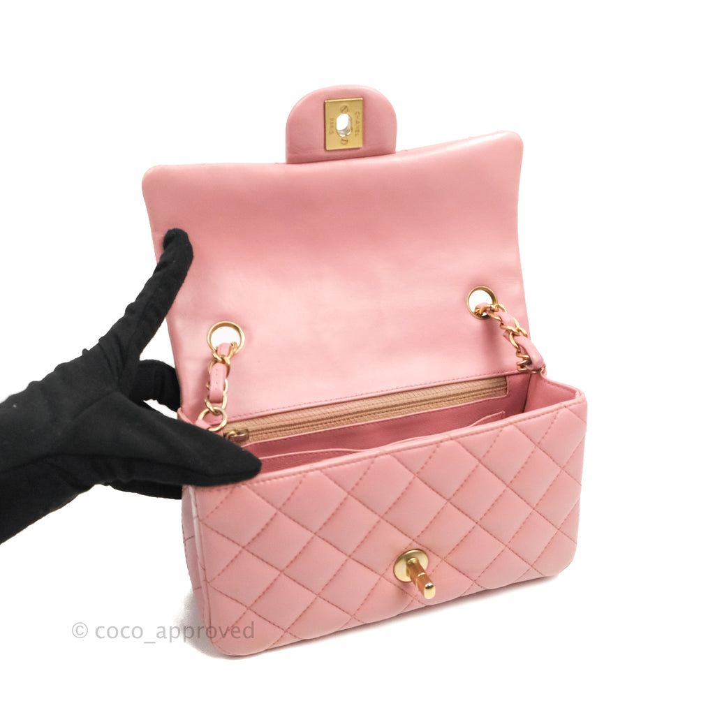 Chanel Quilted Mini Rectangular Flap Pink Lambskin Gold Hardware