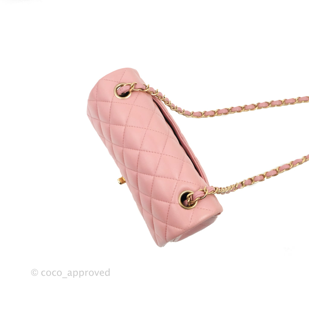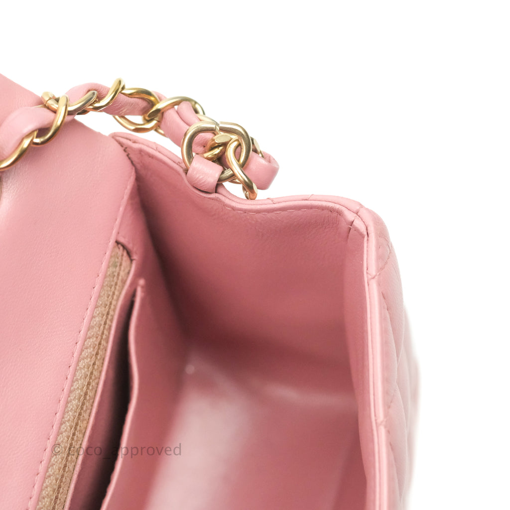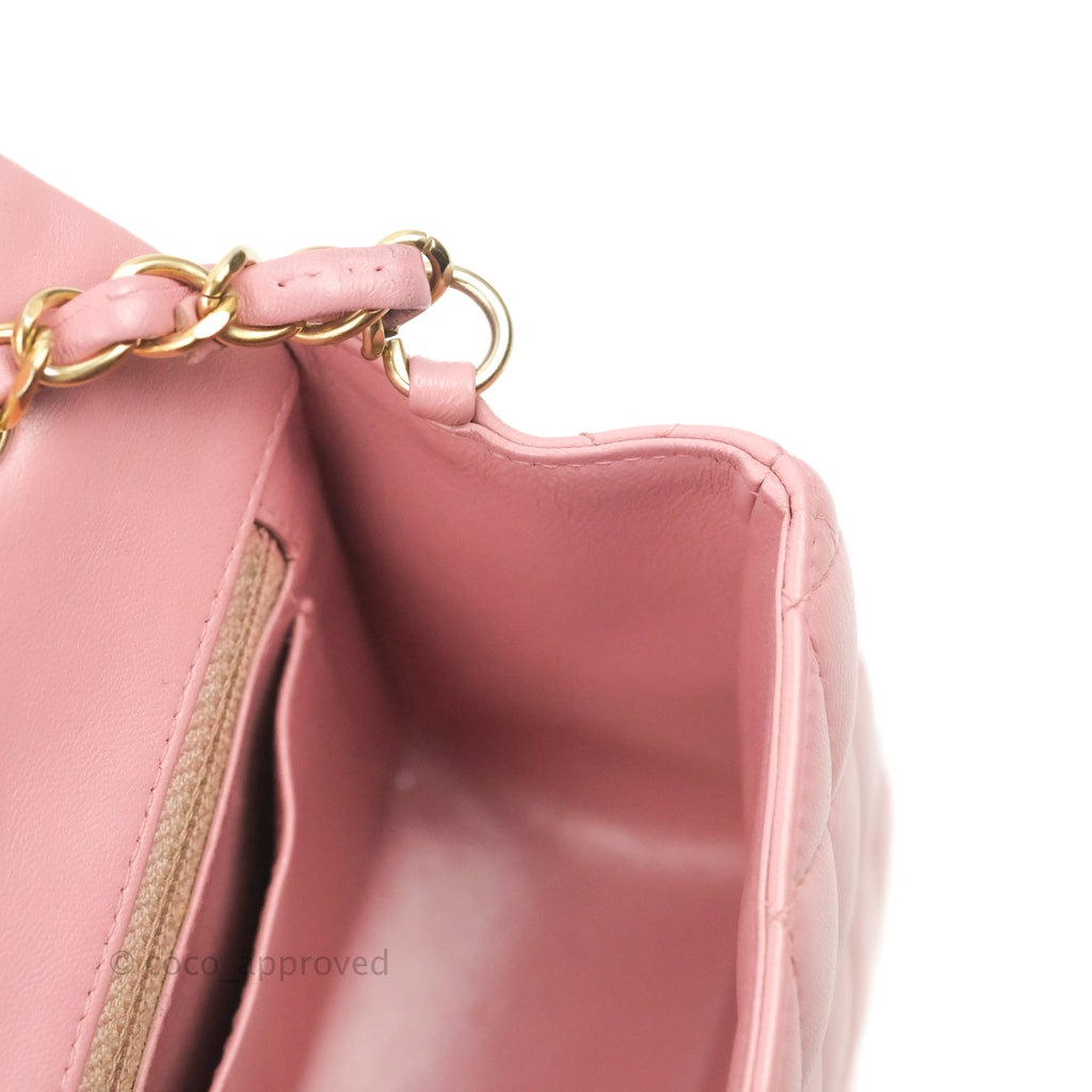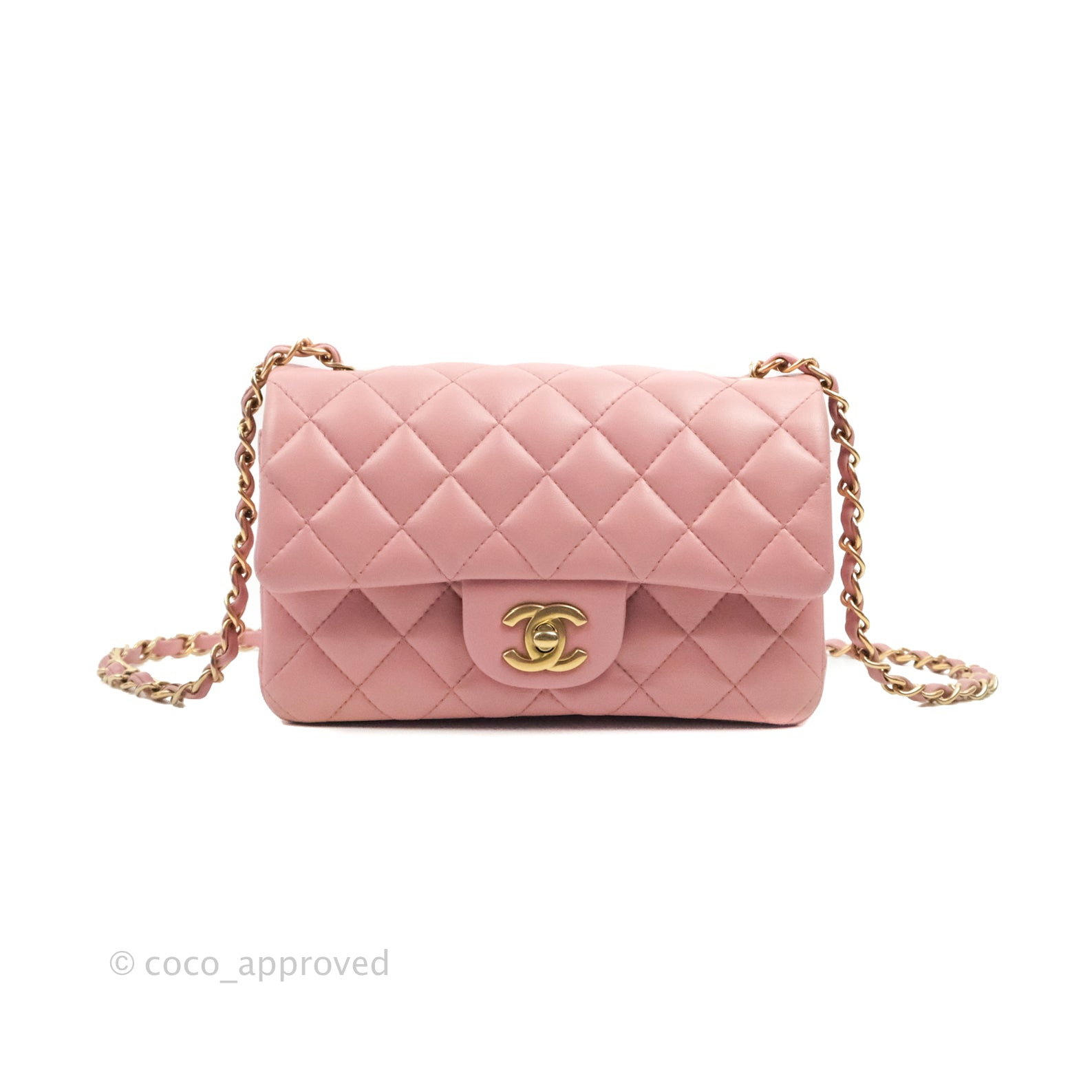 Chanel Quilted Mini Rectangular Flap Pink Lambskin Gold Hardware