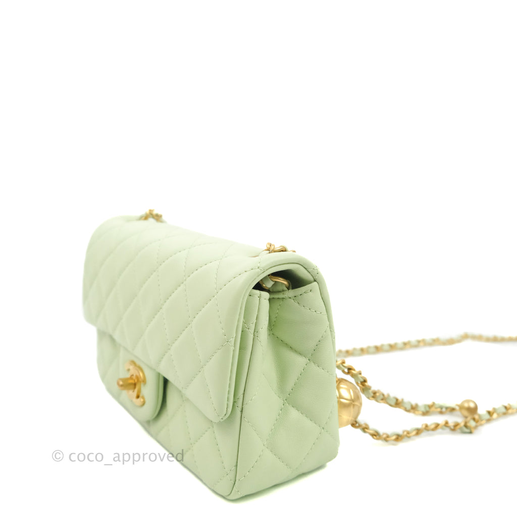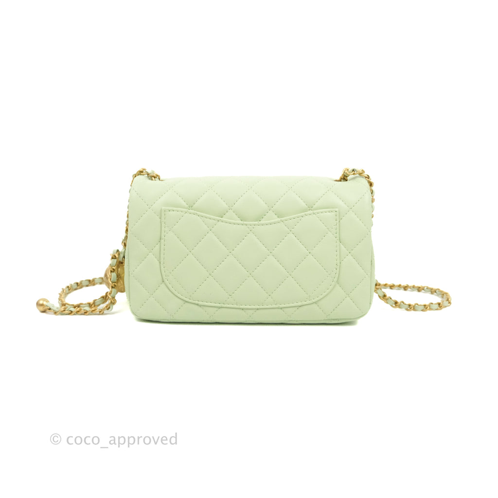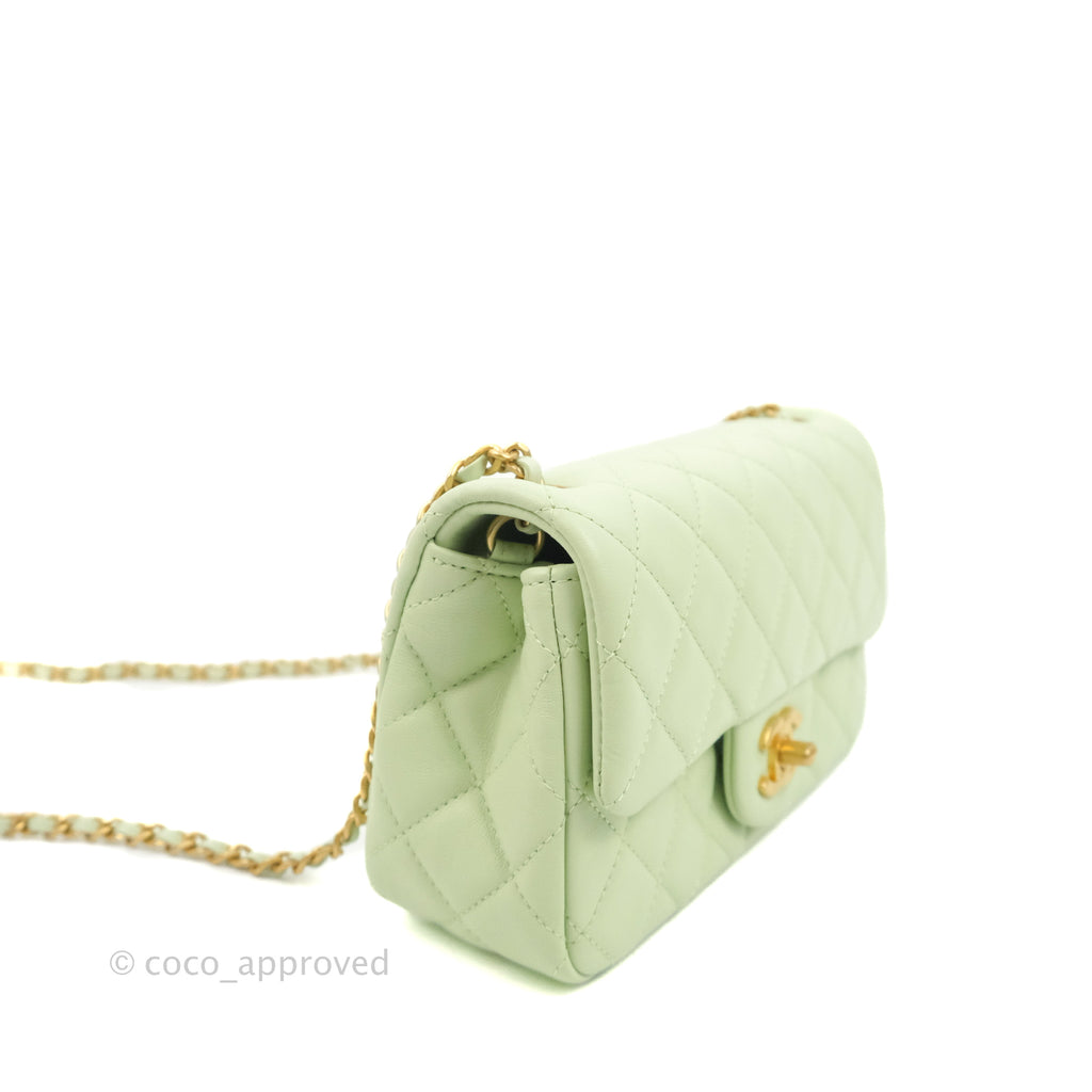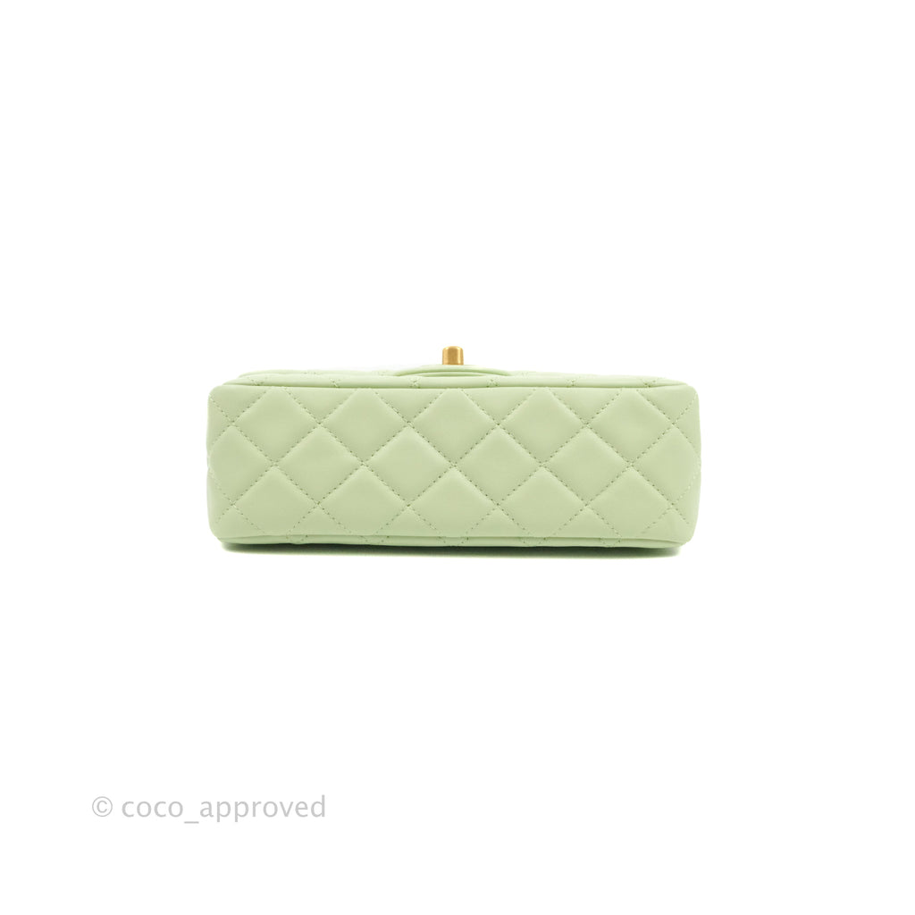 Chanel Quilted Mini Rectangular Pearl Crush Avocado Green Lambskin Aged Gold Hardware 22C