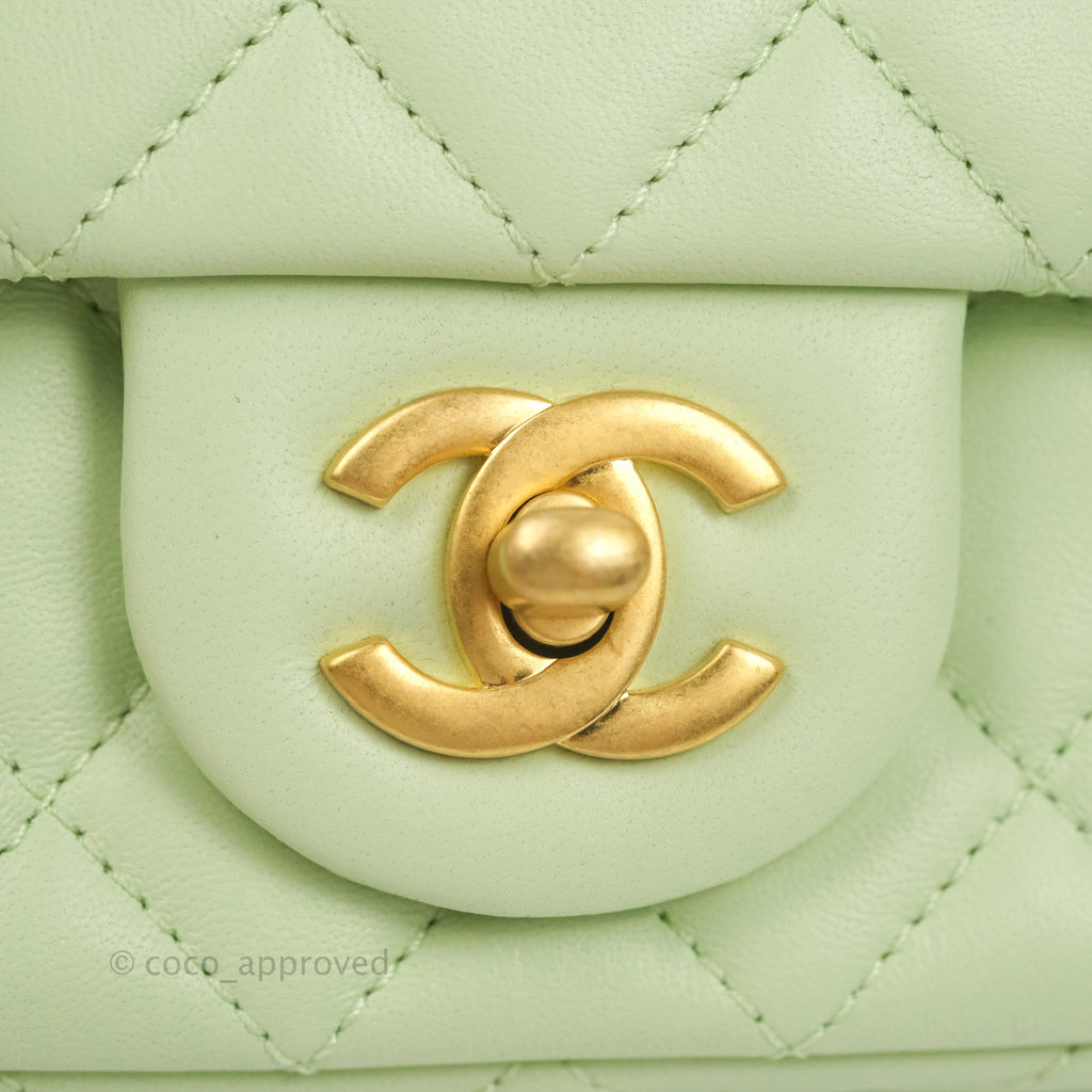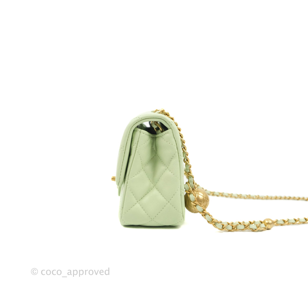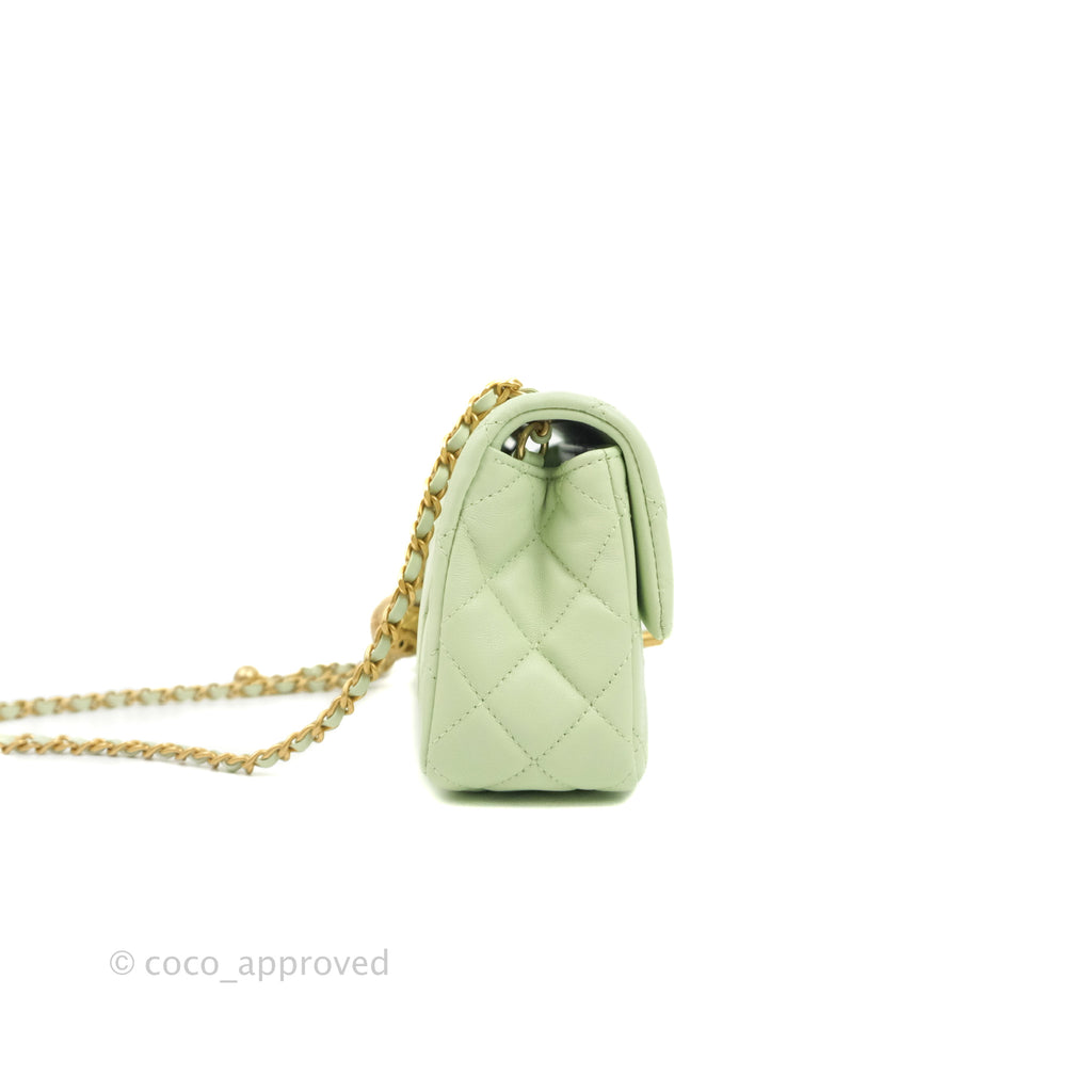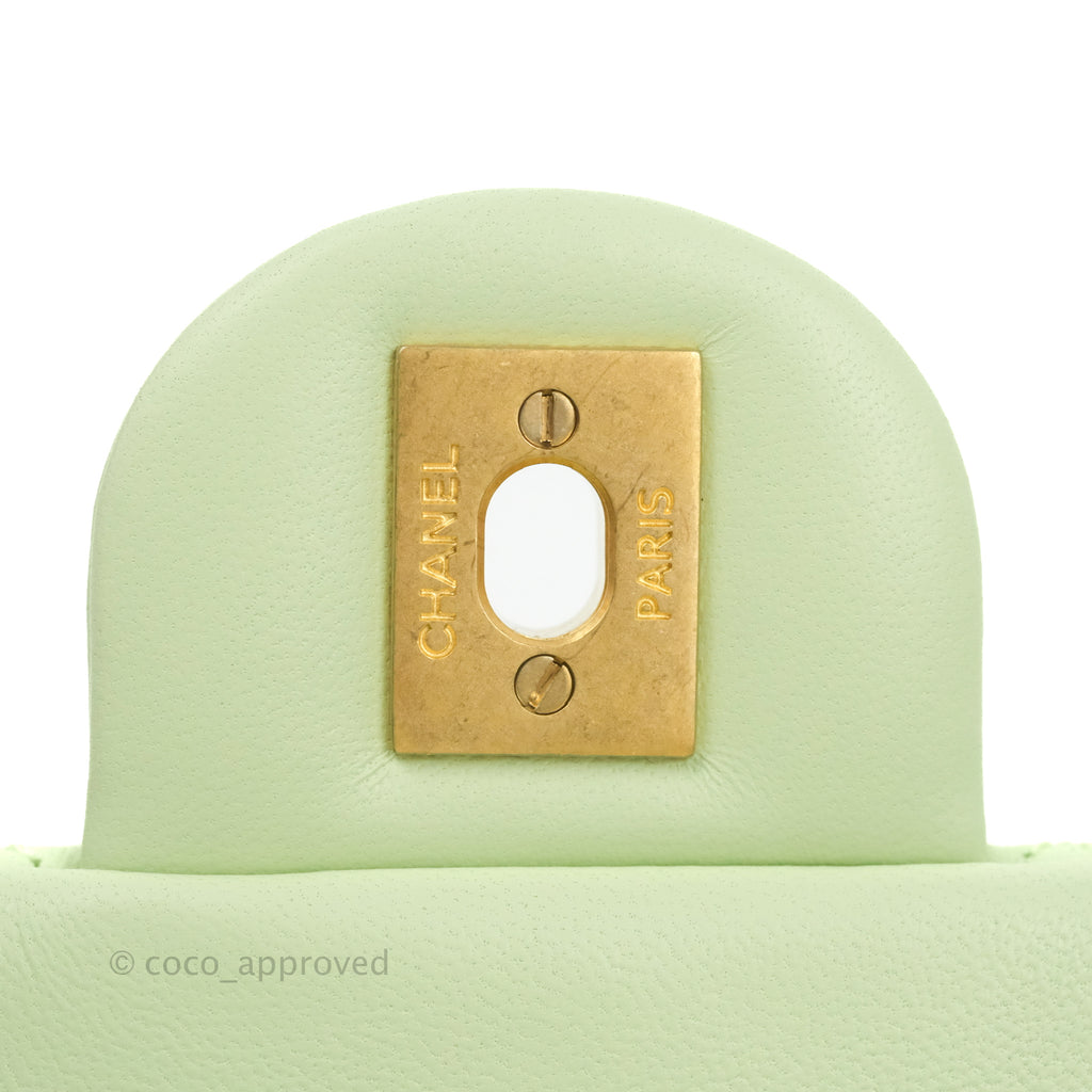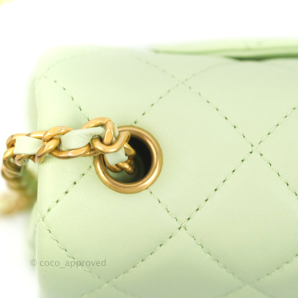 Chanel Quilted Mini Rectangular Pearl Crush Avocado Green Lambskin Aged Gold Hardware 22C