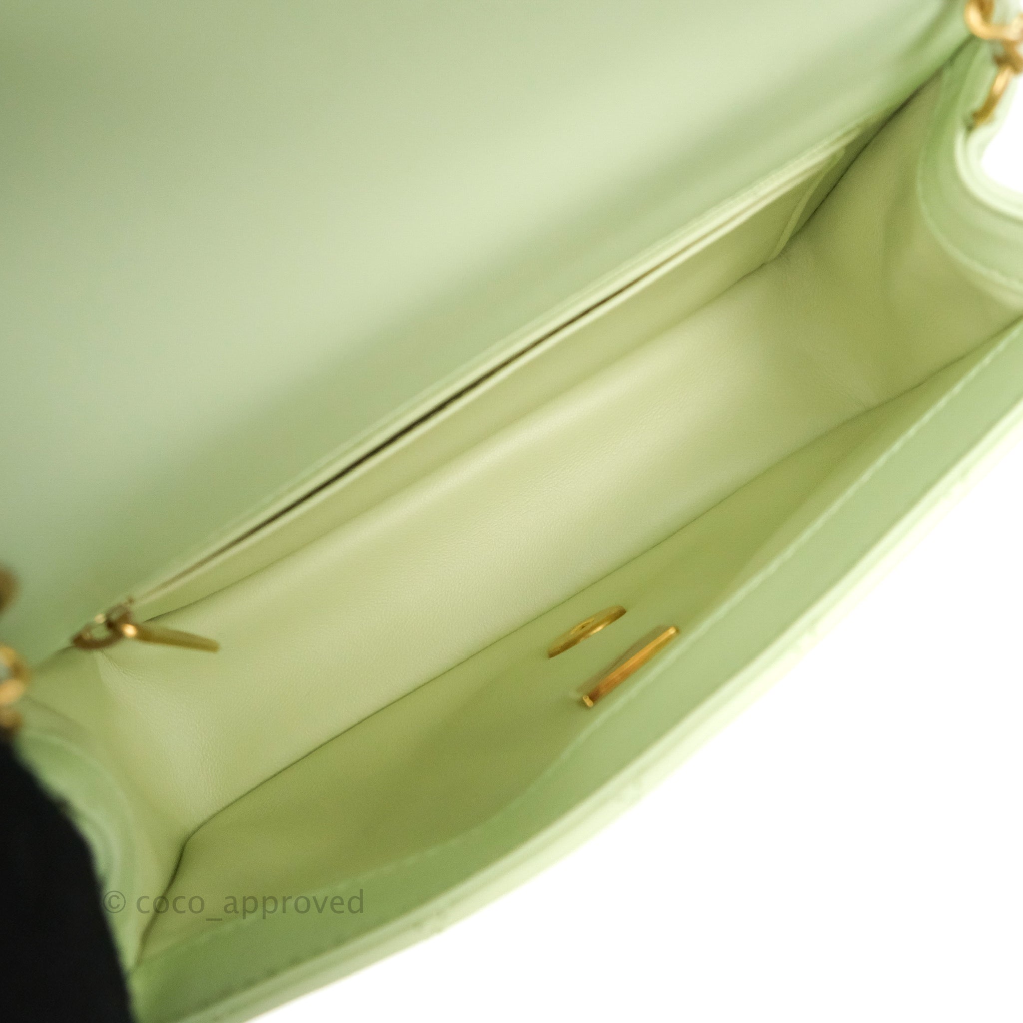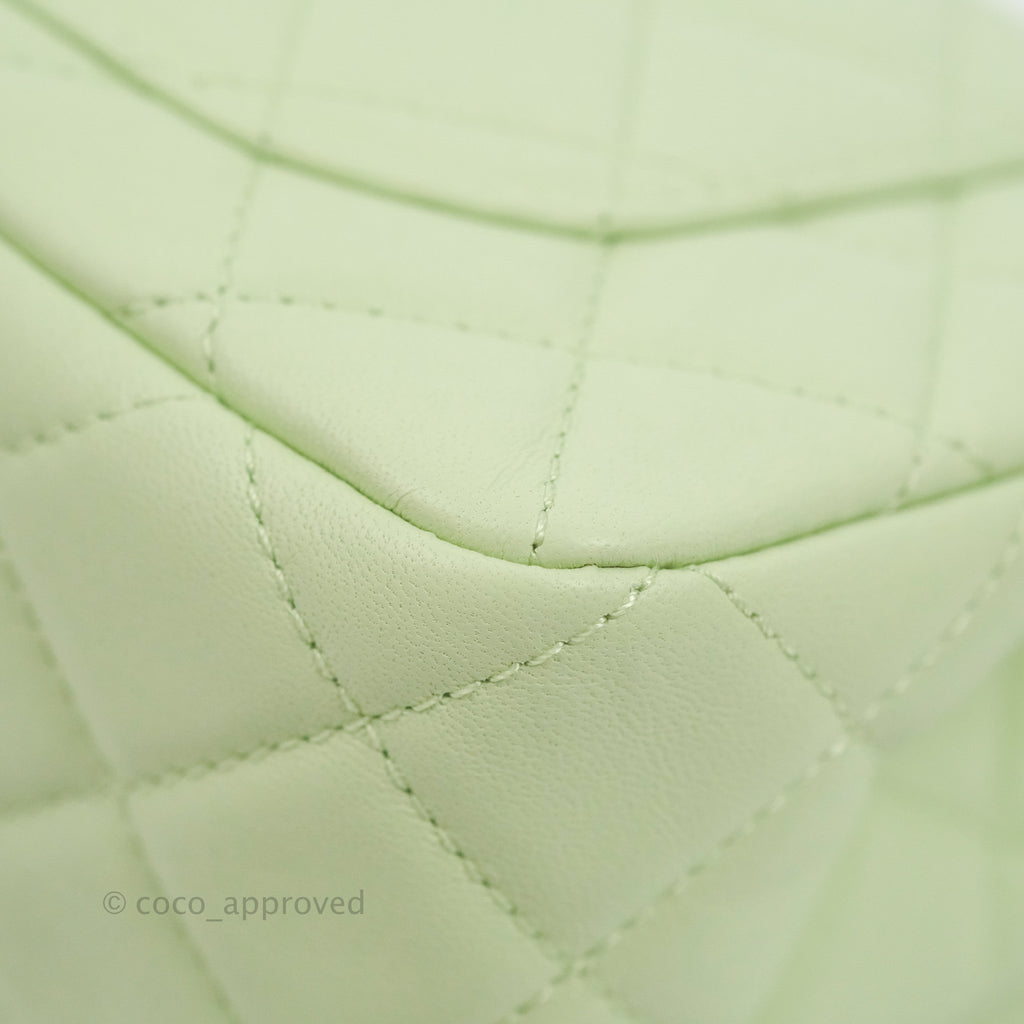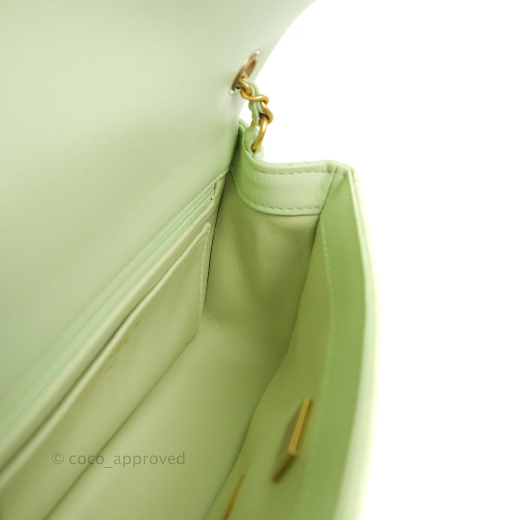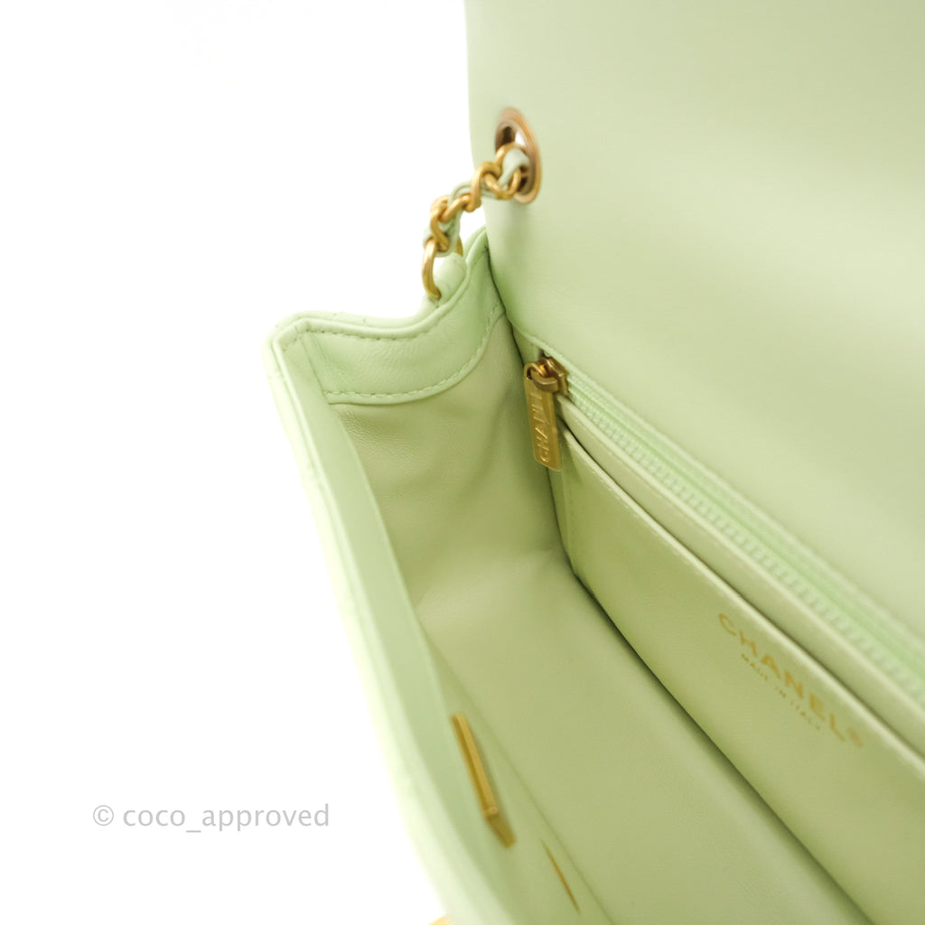 Chanel Quilted Mini Rectangular Pearl Crush Avocado Green Lambskin Aged Gold Hardware 22C