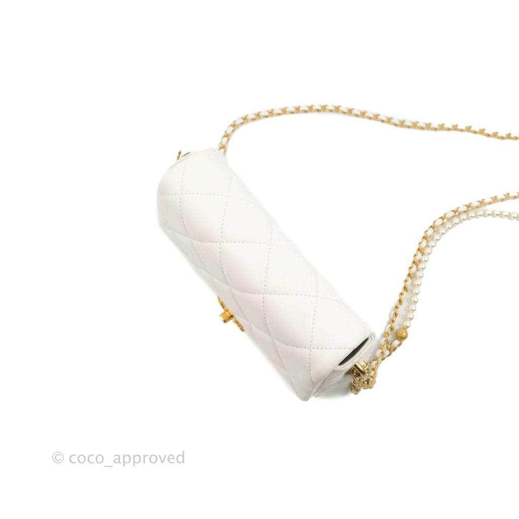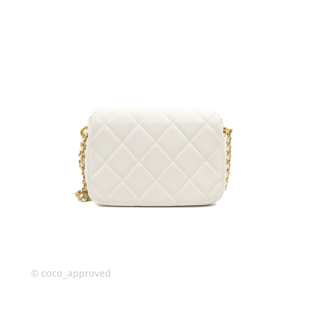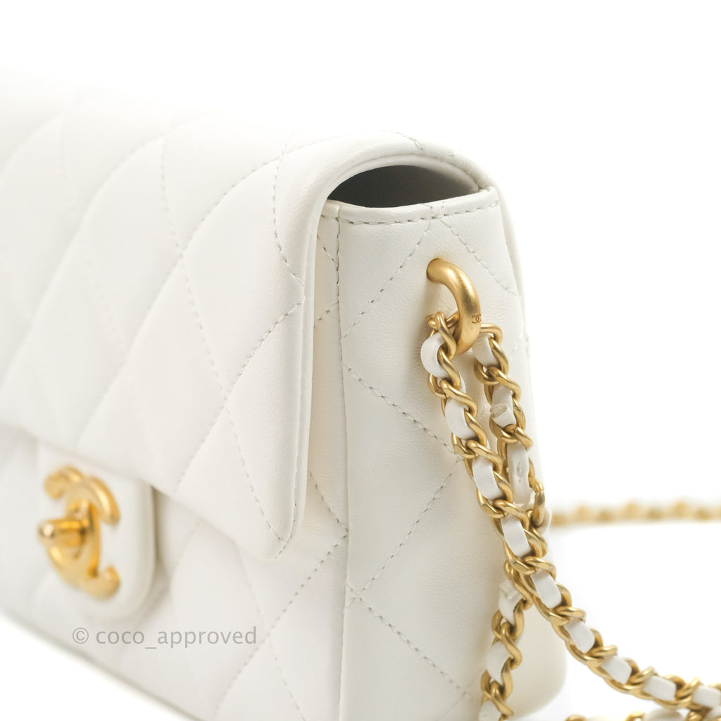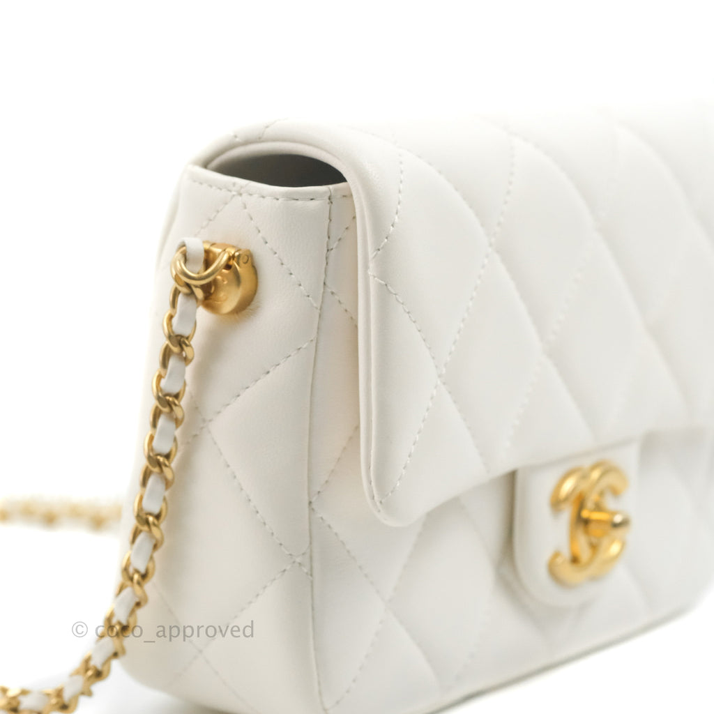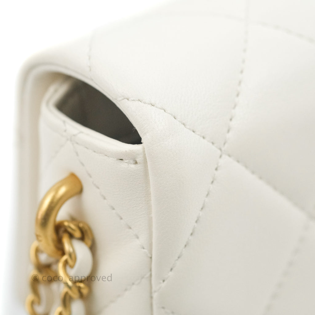 Chanel Quilted My Perfect Mini With Pearl White Lambskin Aged Gold Hardware