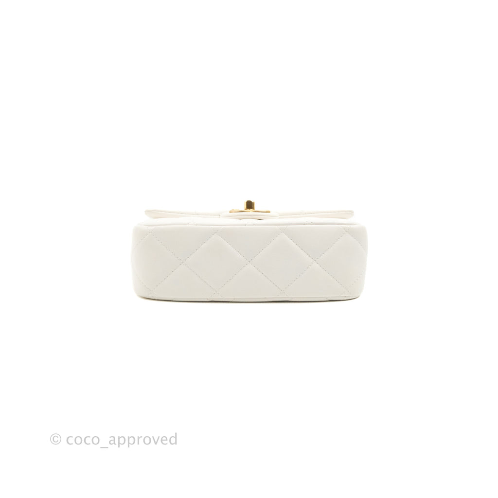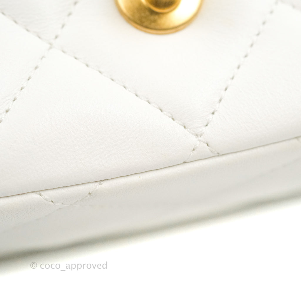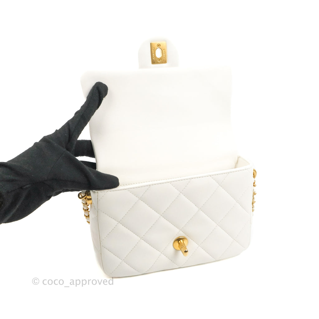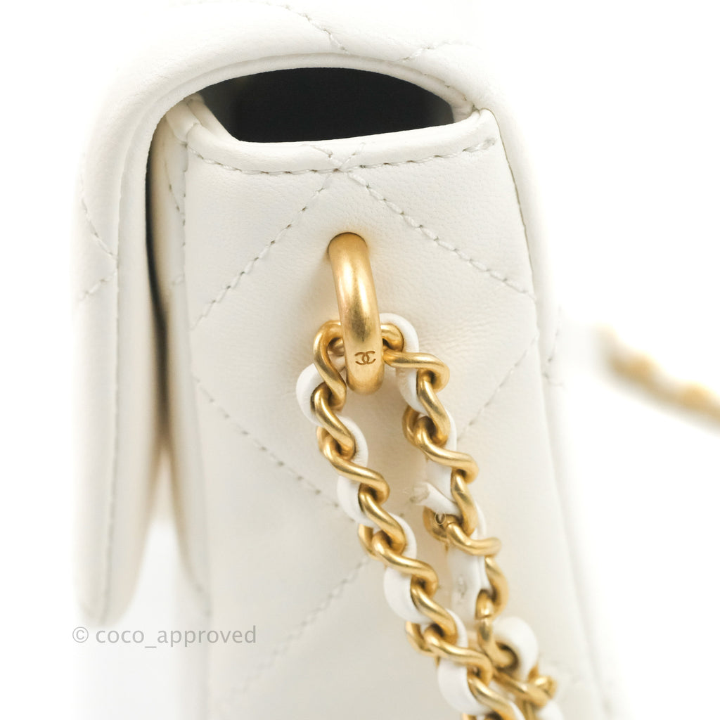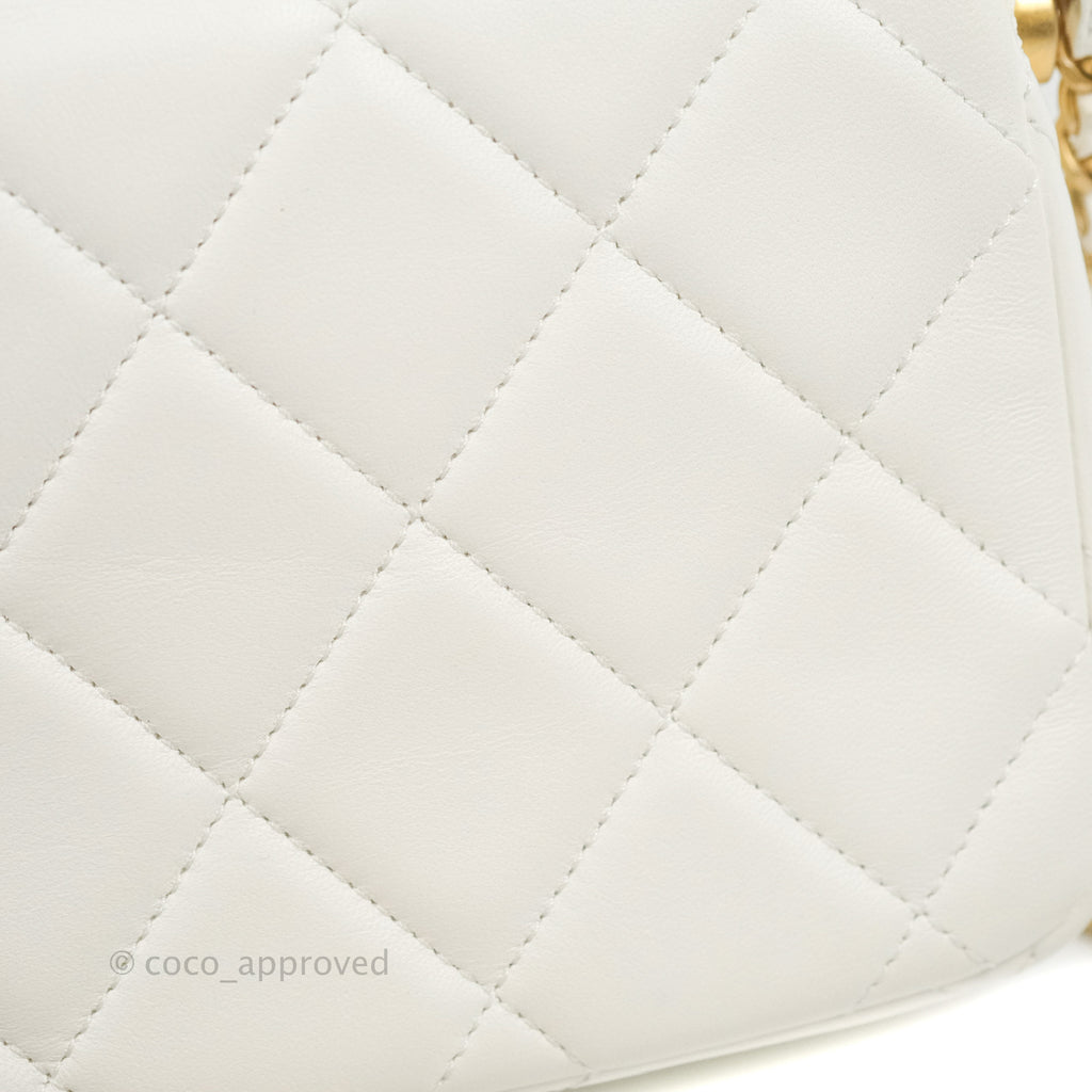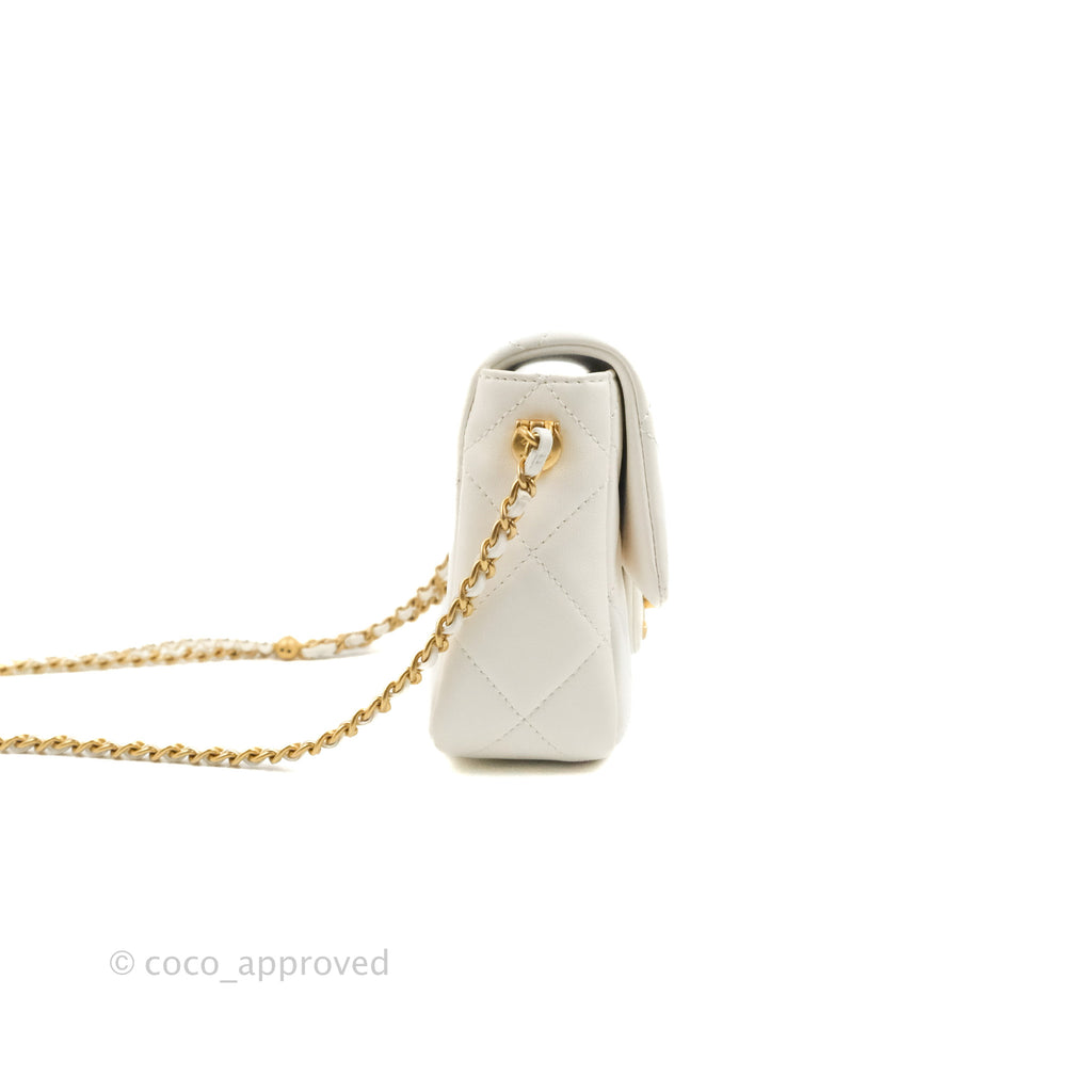 Chanel Quilted My Perfect Mini With Pearl White Lambskin Aged Gold Hardware