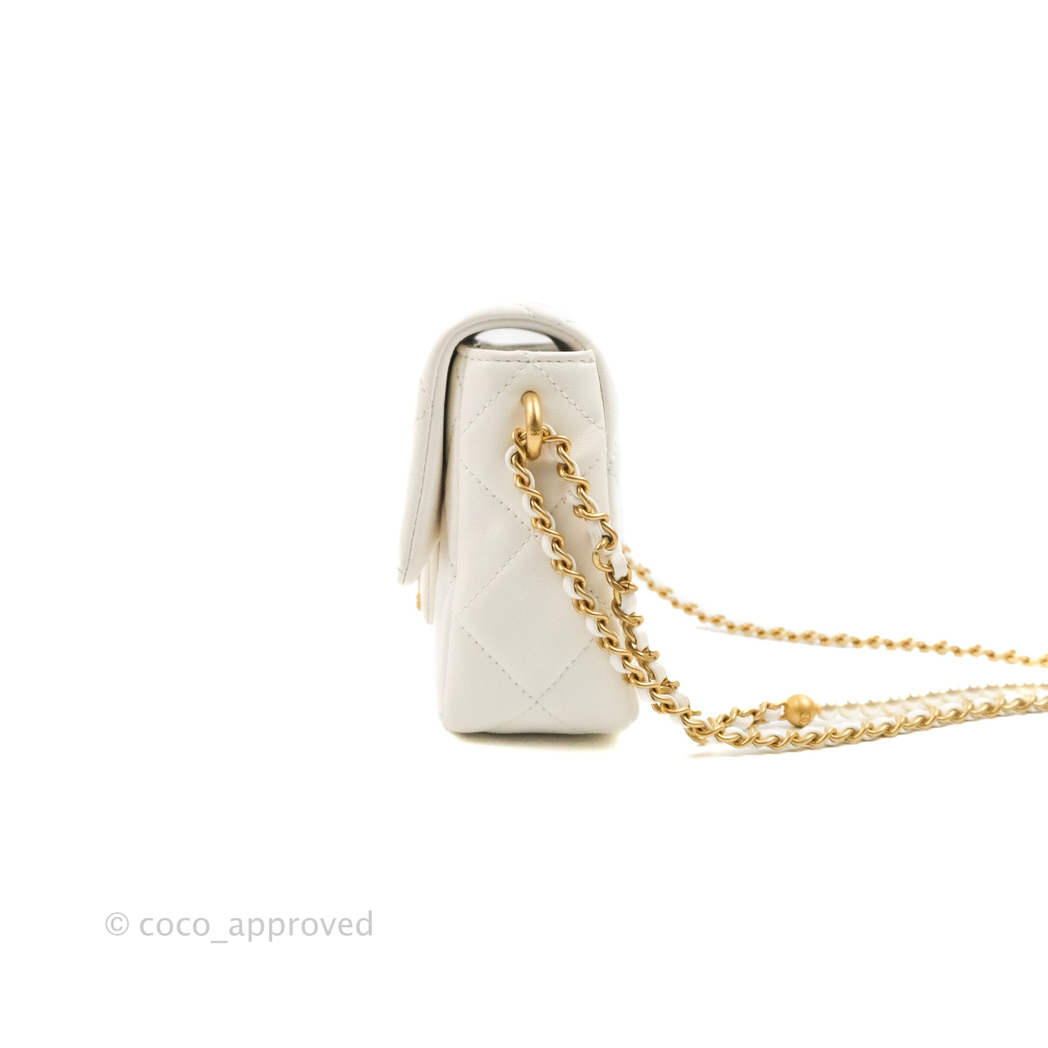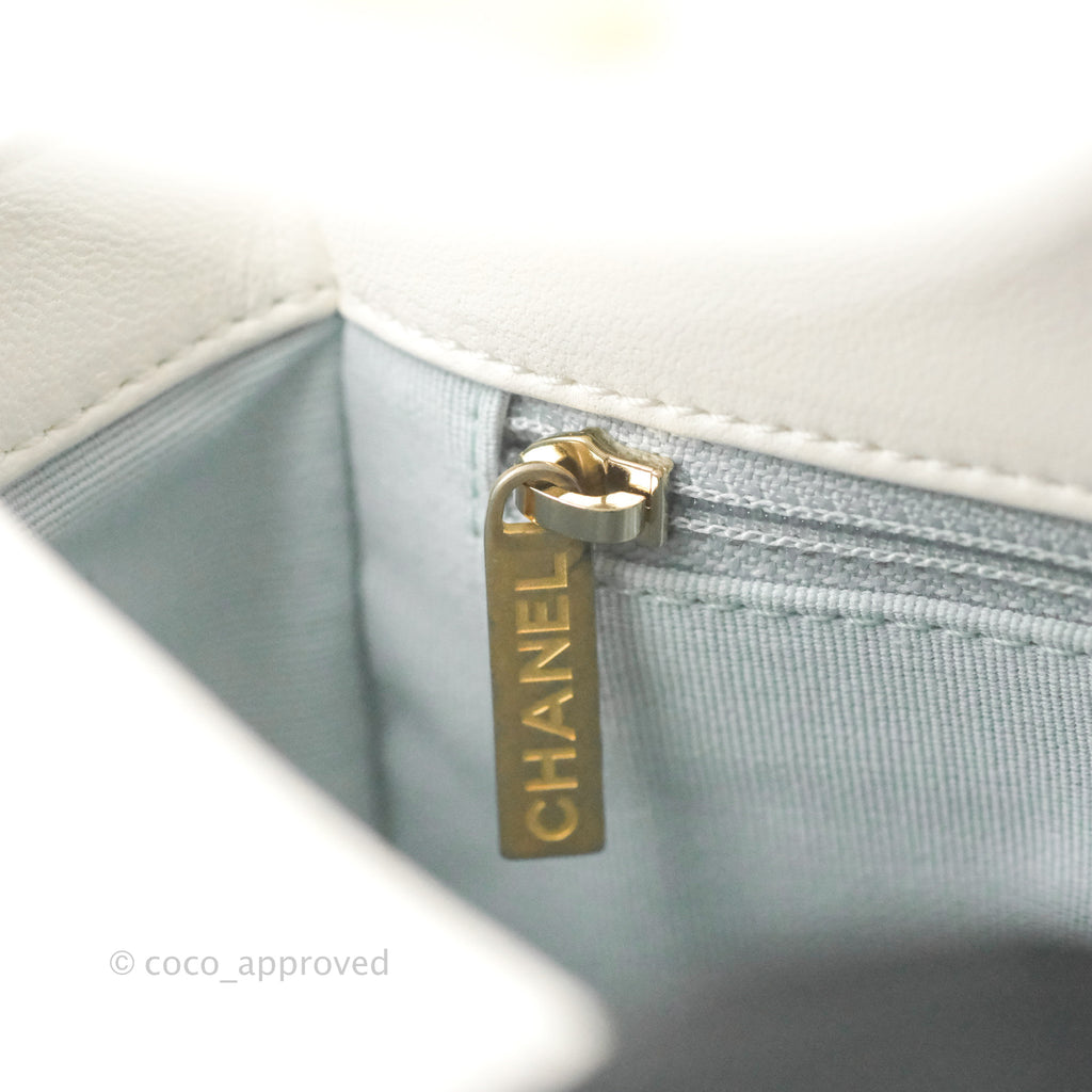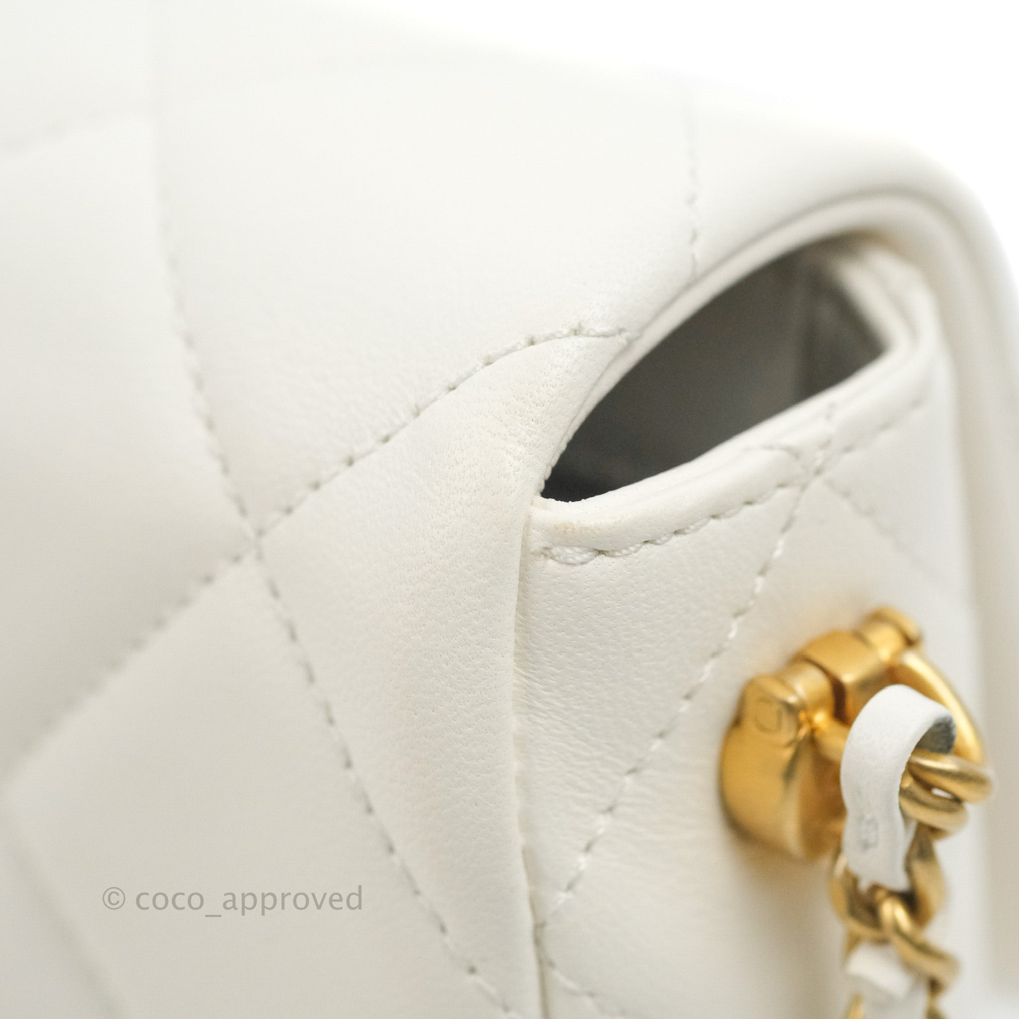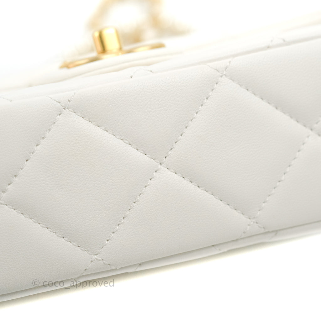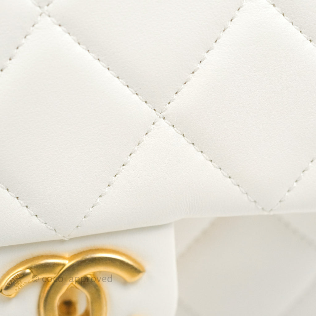 Chanel Quilted My Perfect Mini With Pearl White Lambskin Aged Gold Hardware