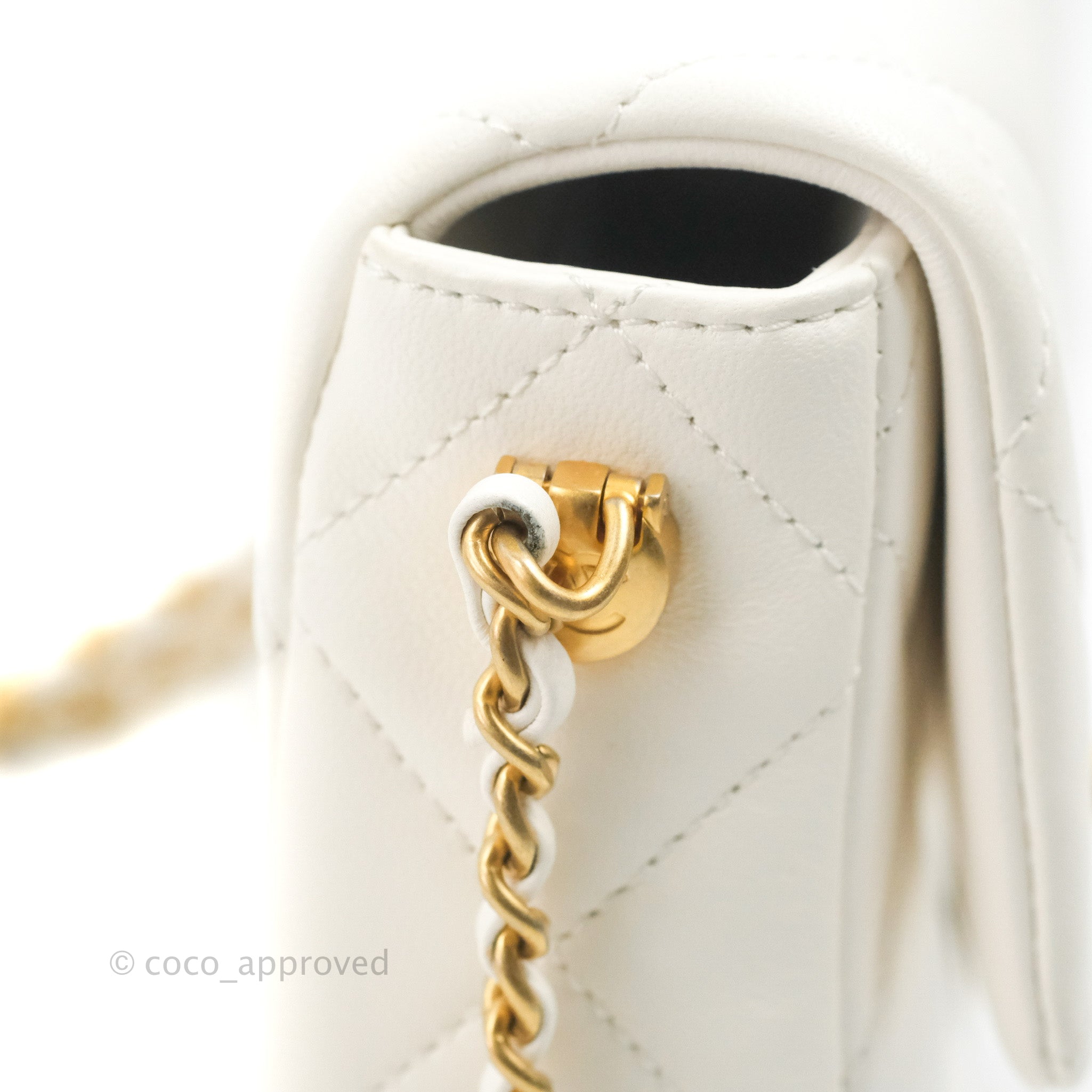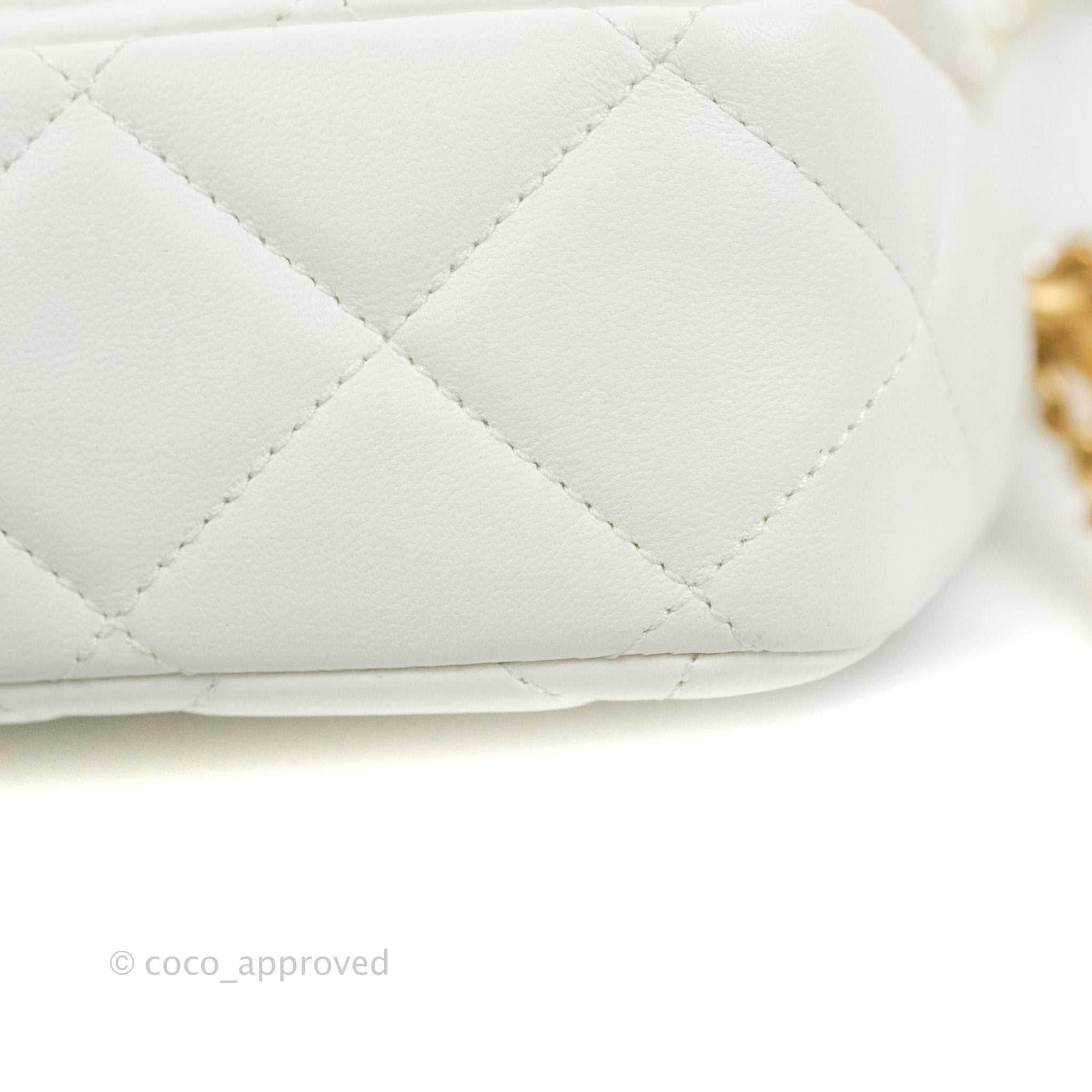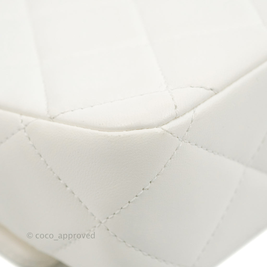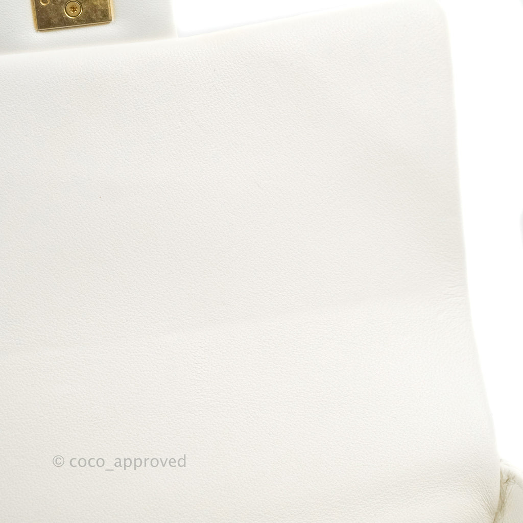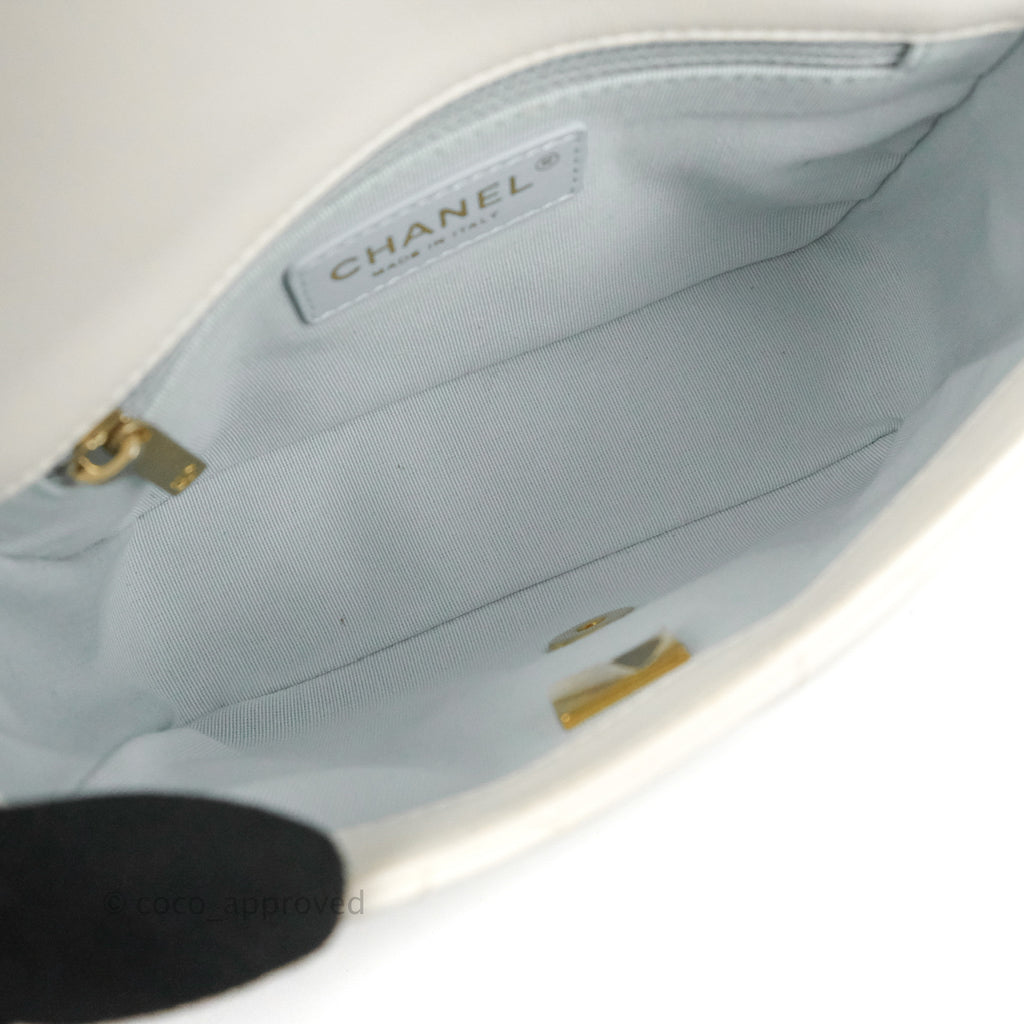 Chanel Quilted My Perfect Mini With Pearl White Lambskin Aged Gold Hardware