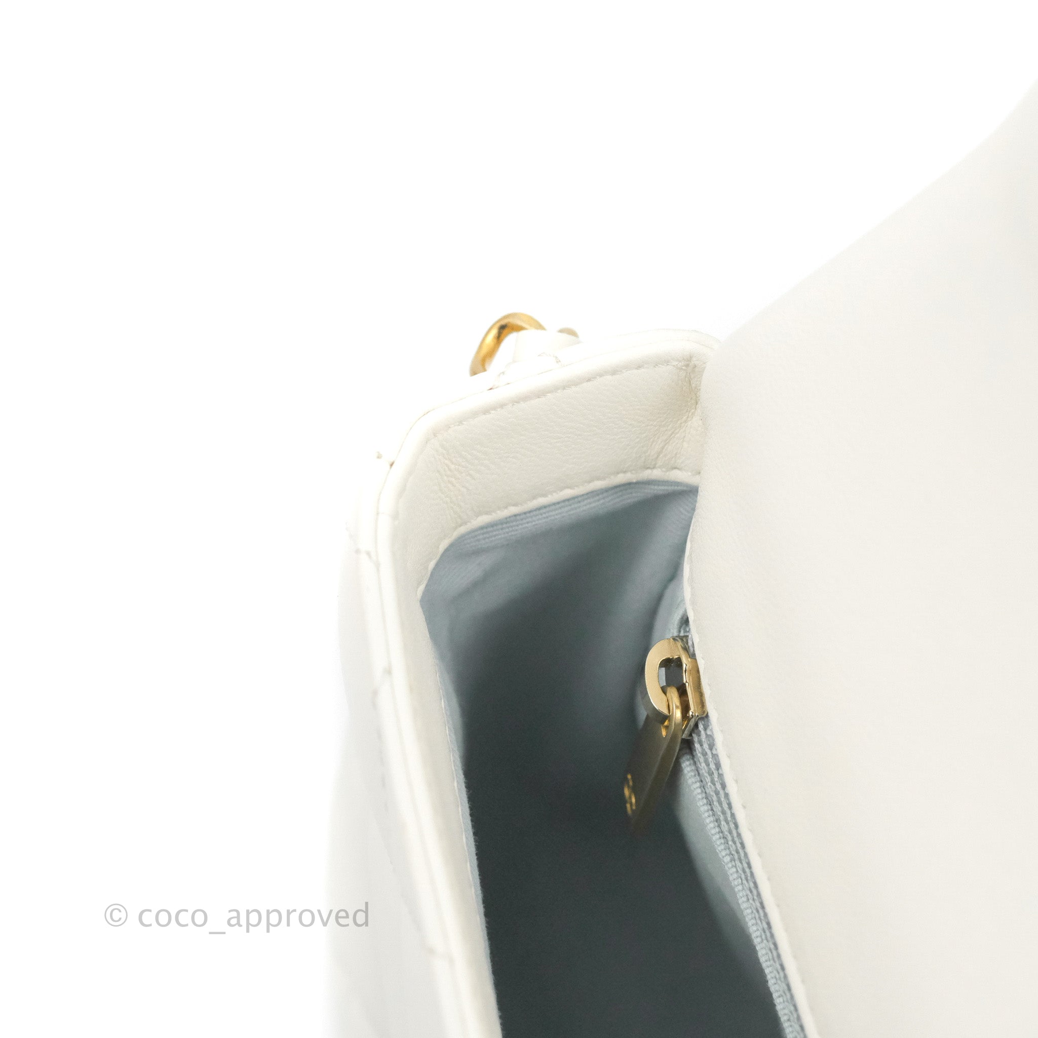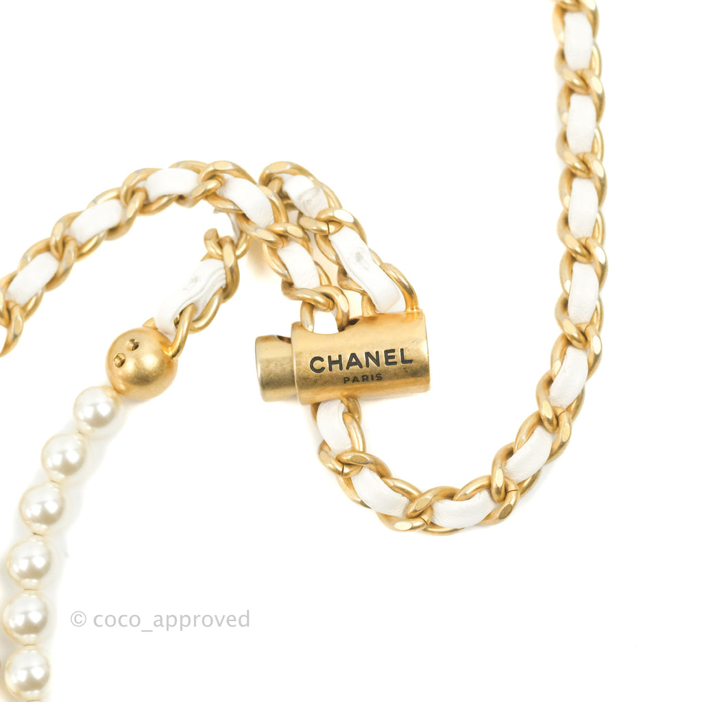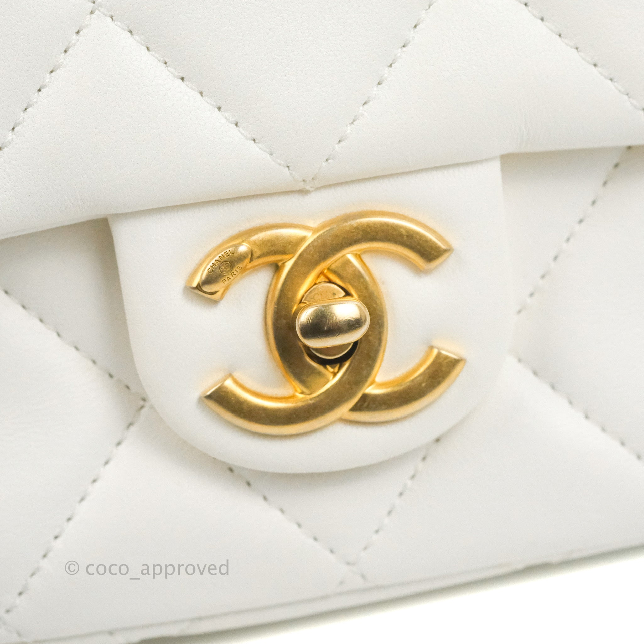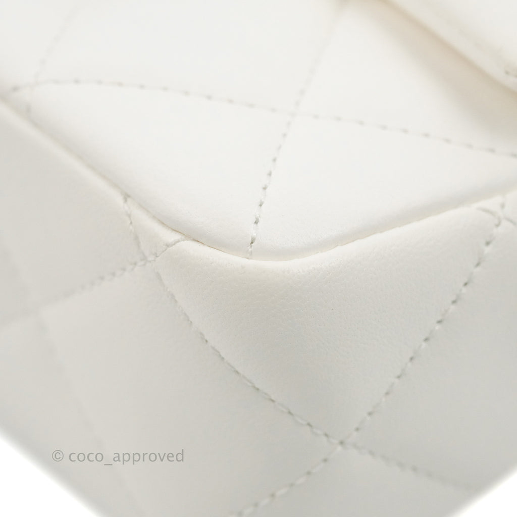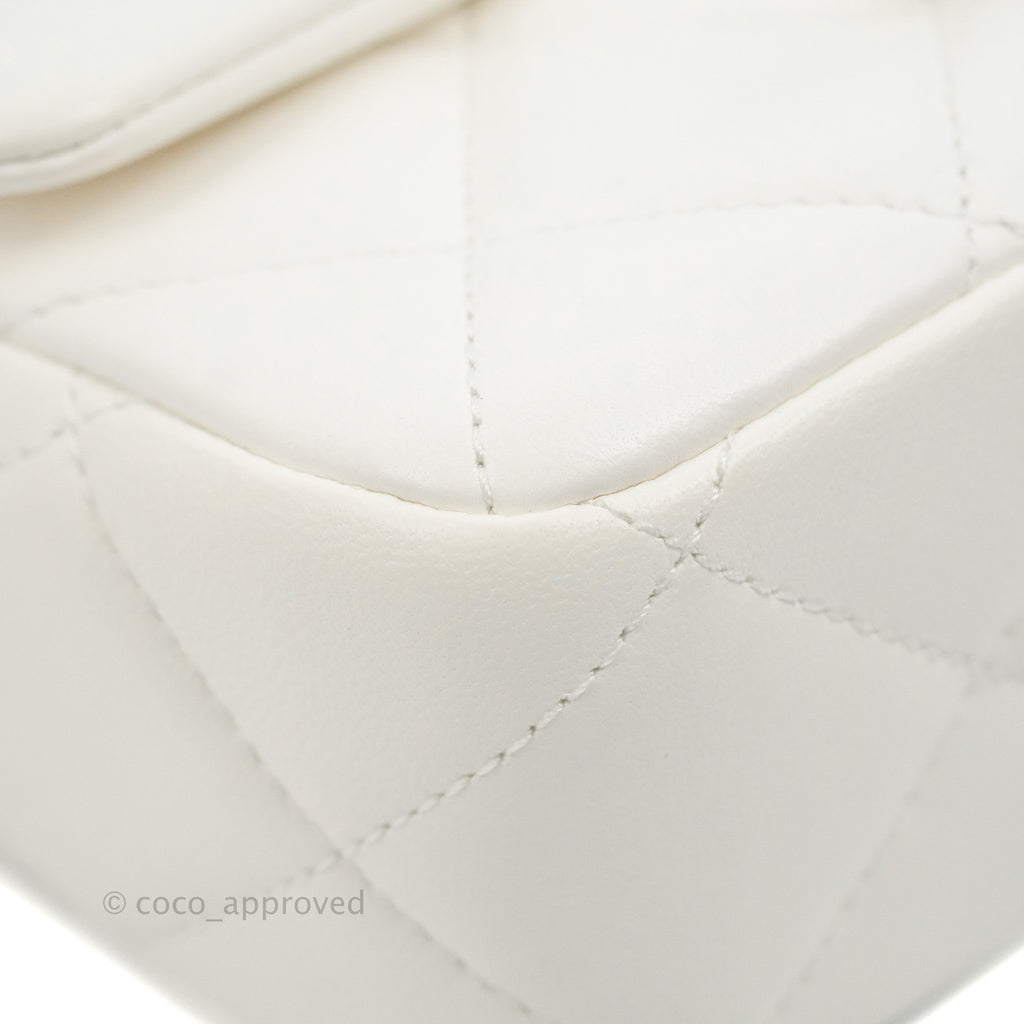 Chanel Quilted My Perfect Mini With Pearl White Lambskin Aged Gold Hardware
