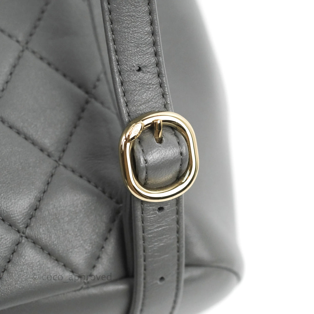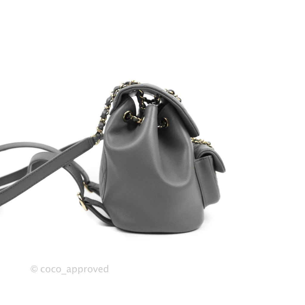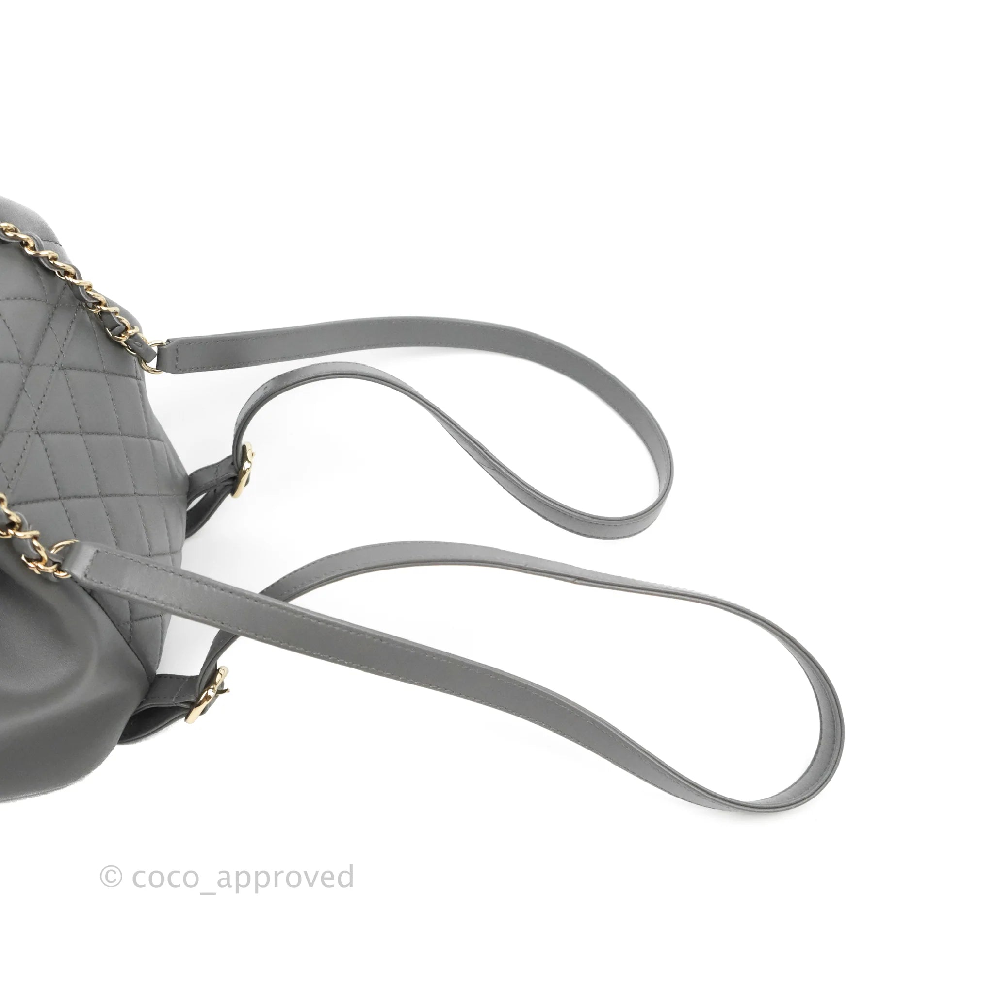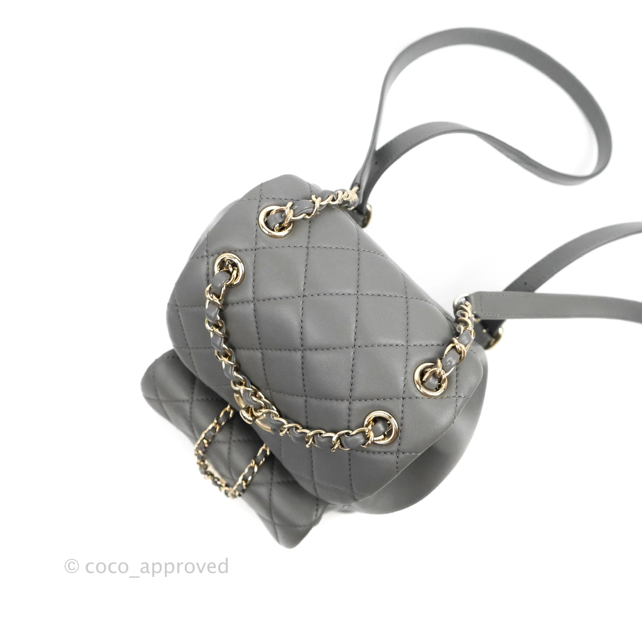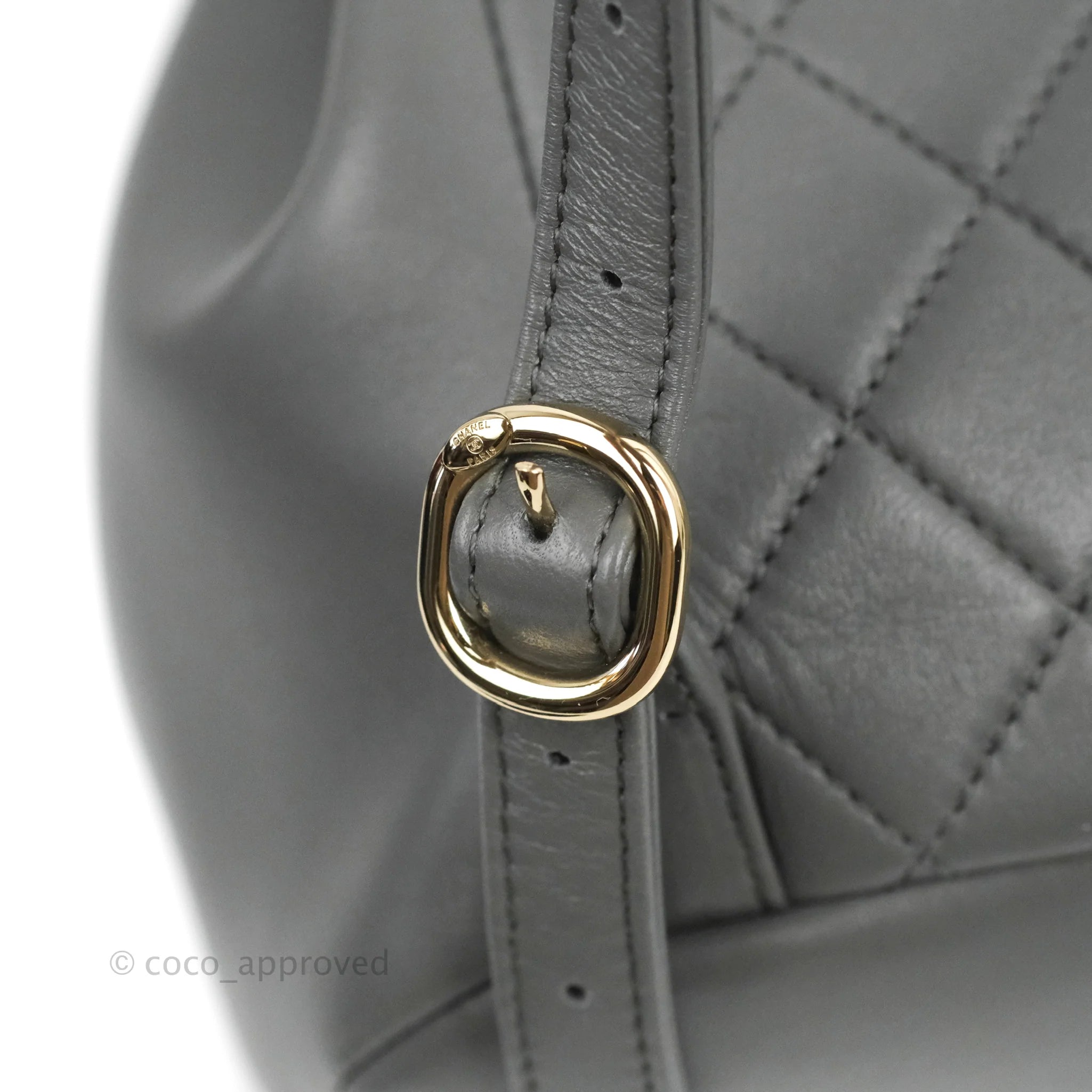 Chanel Quilted Small Duma Drawstring Backpack Grey Lambskin