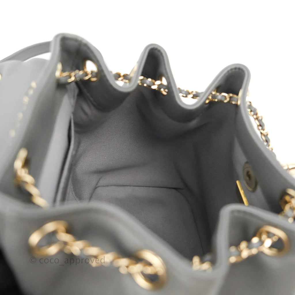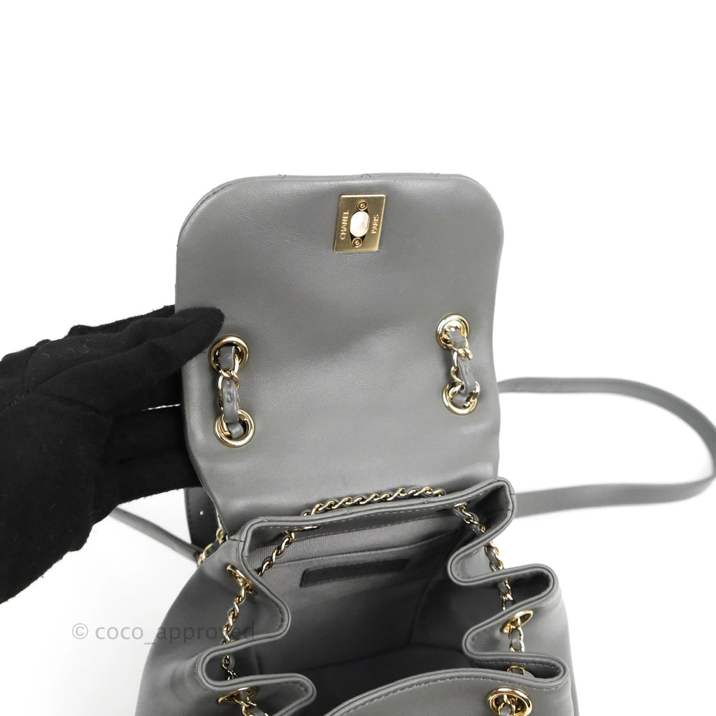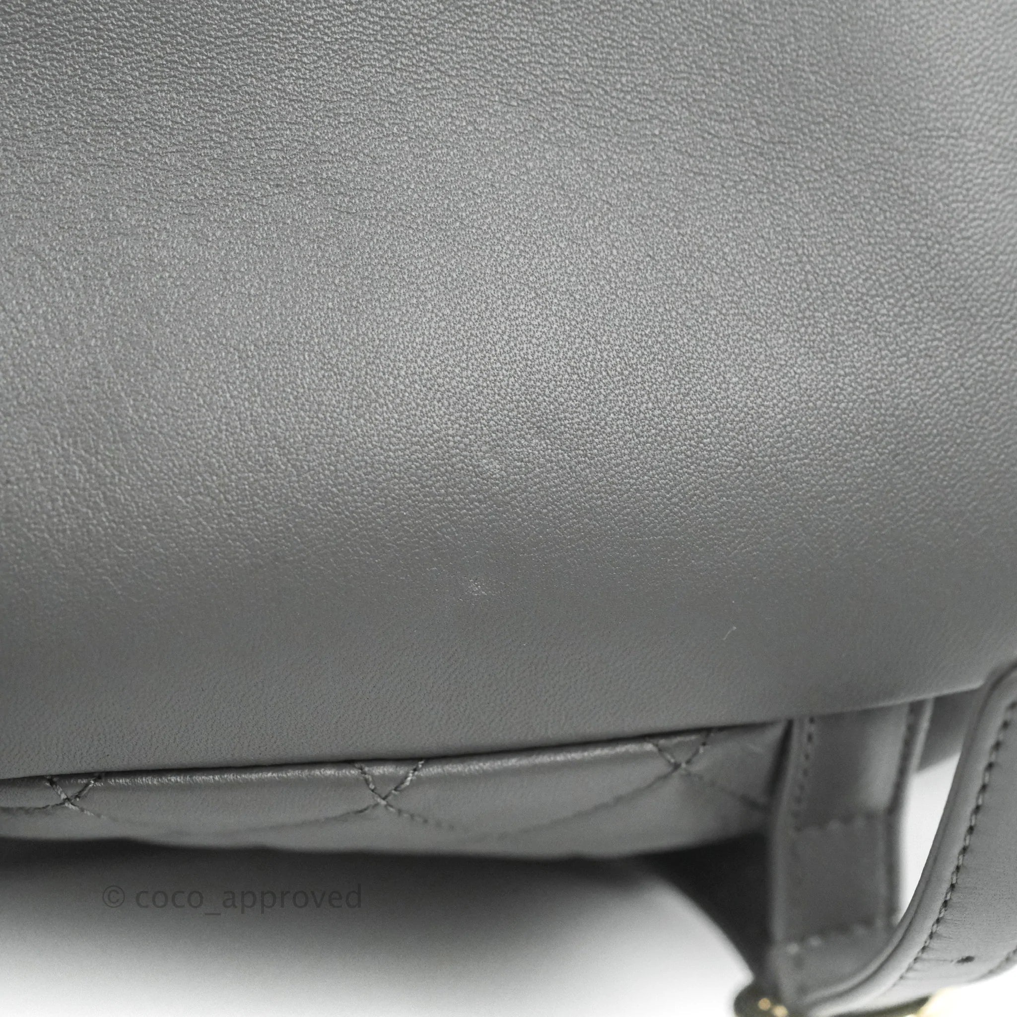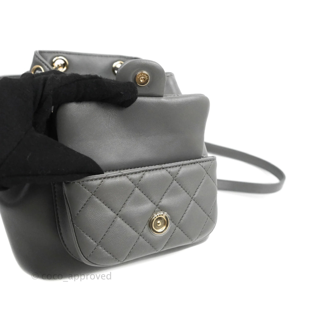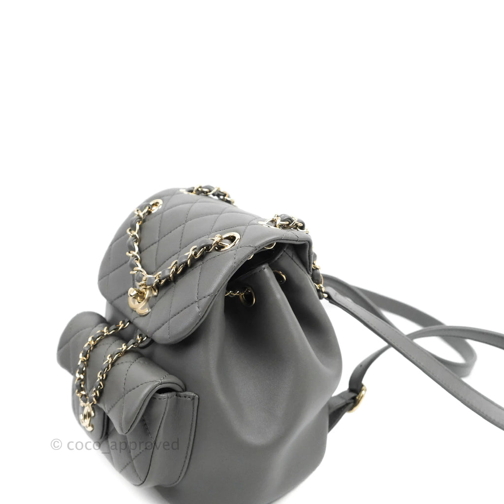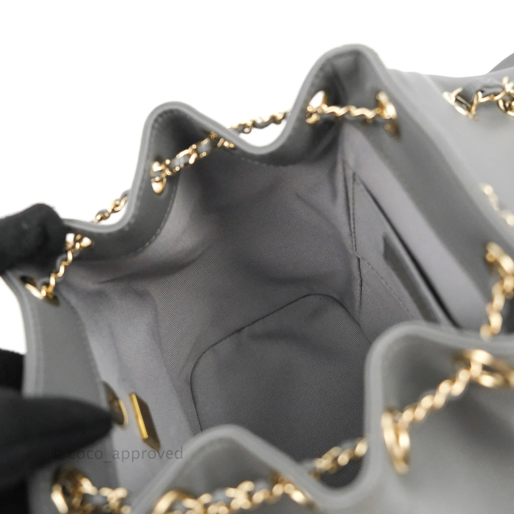Chanel Quilted Small Duma Drawstring Backpack Grey Lambskin