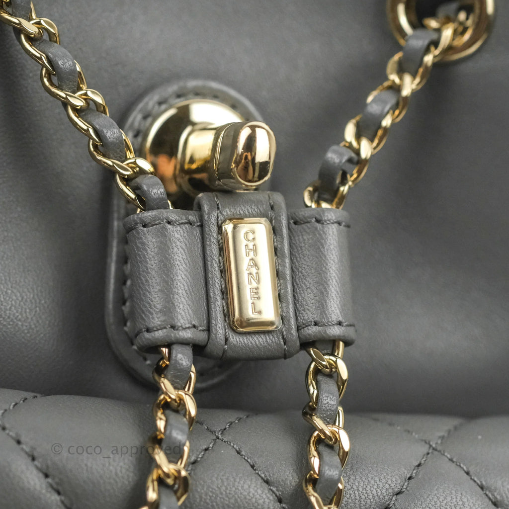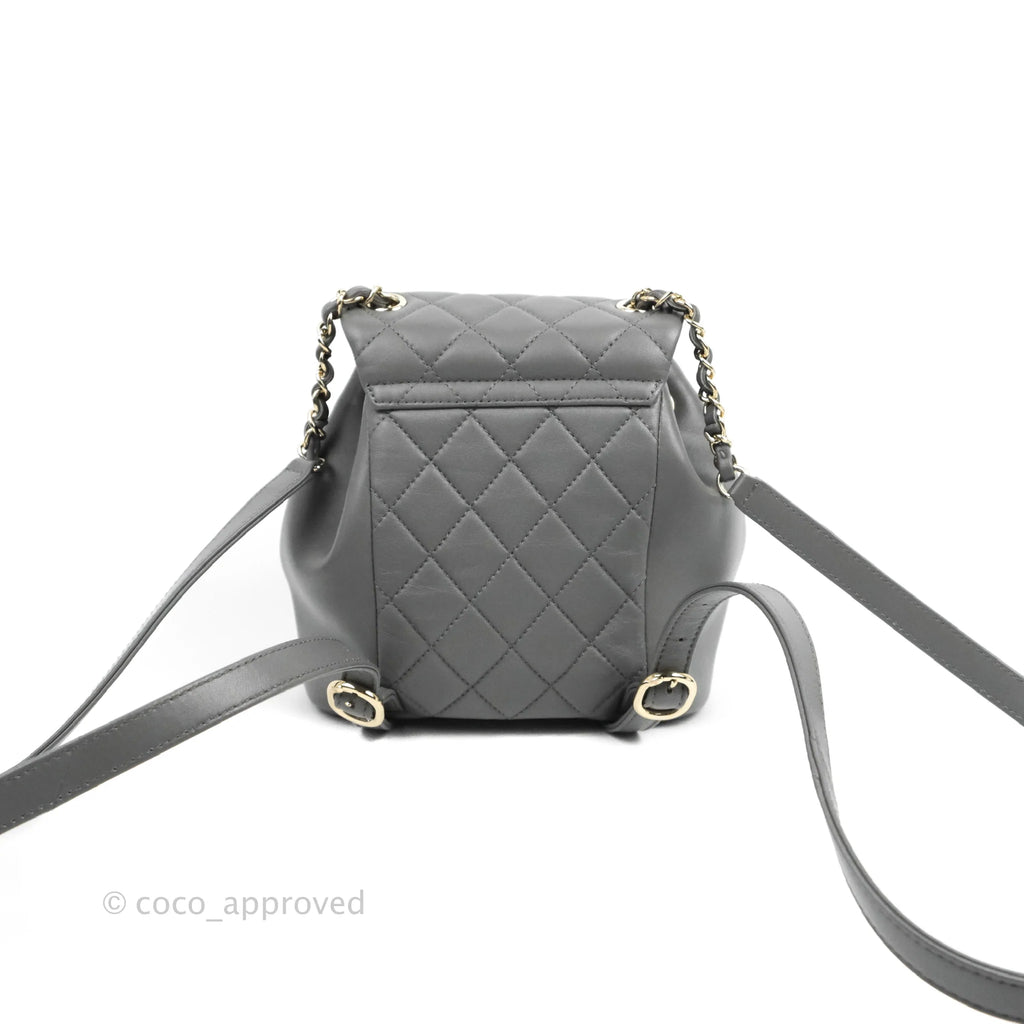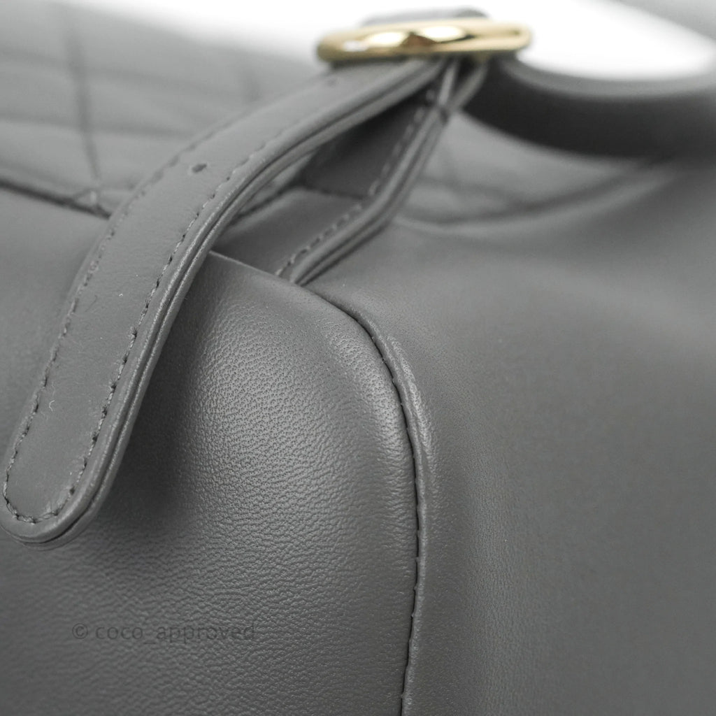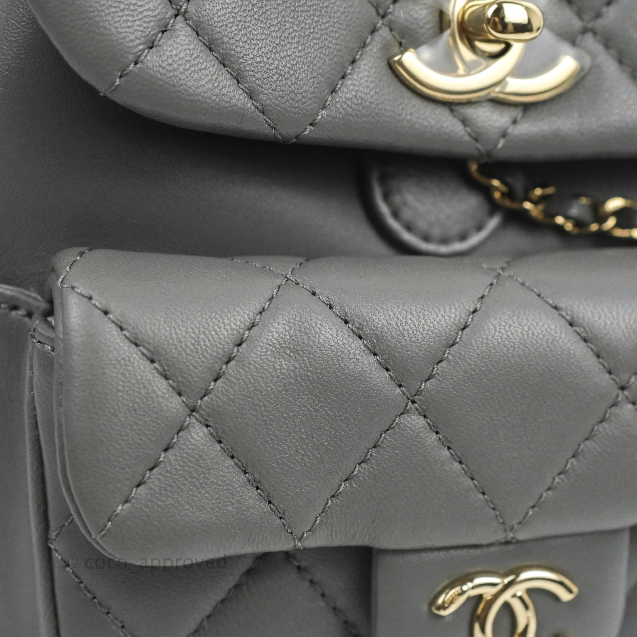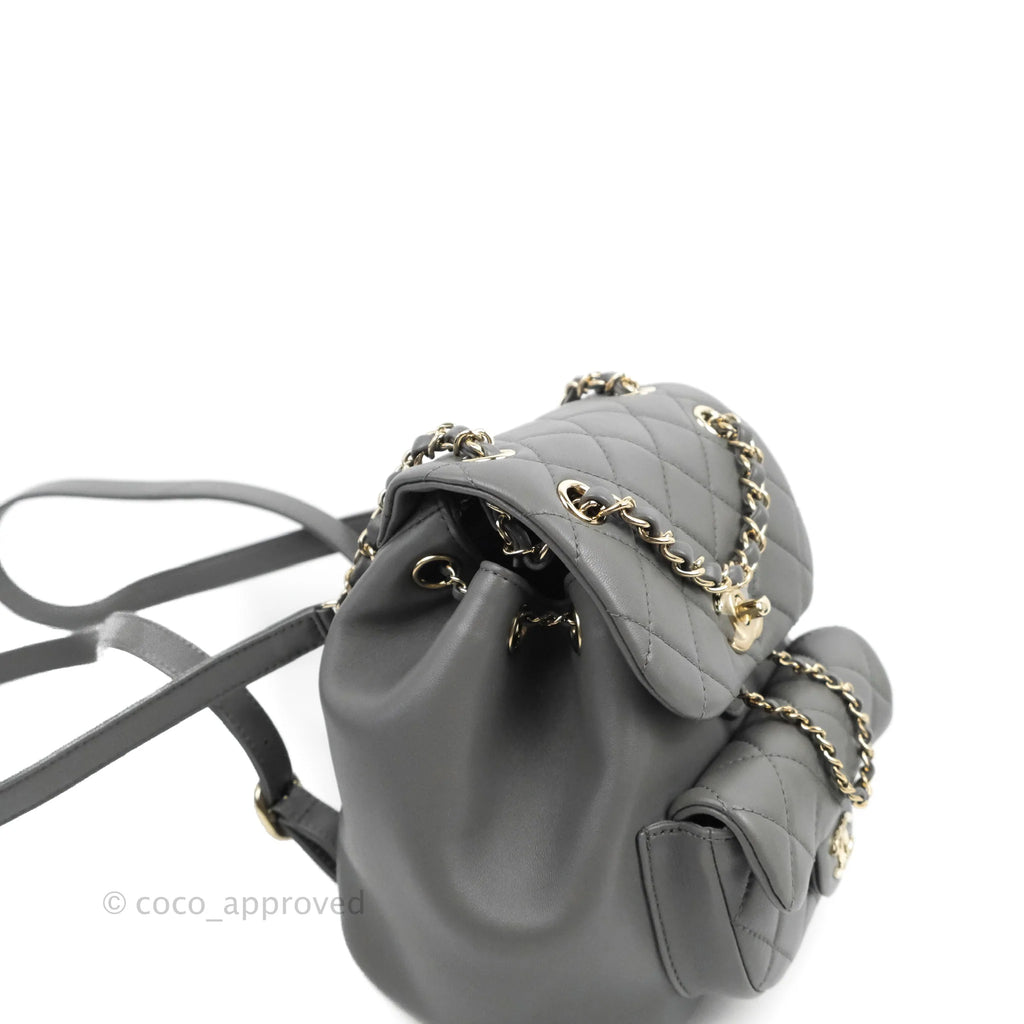 Chanel Quilted Small Duma Drawstring Backpack Grey Lambskin