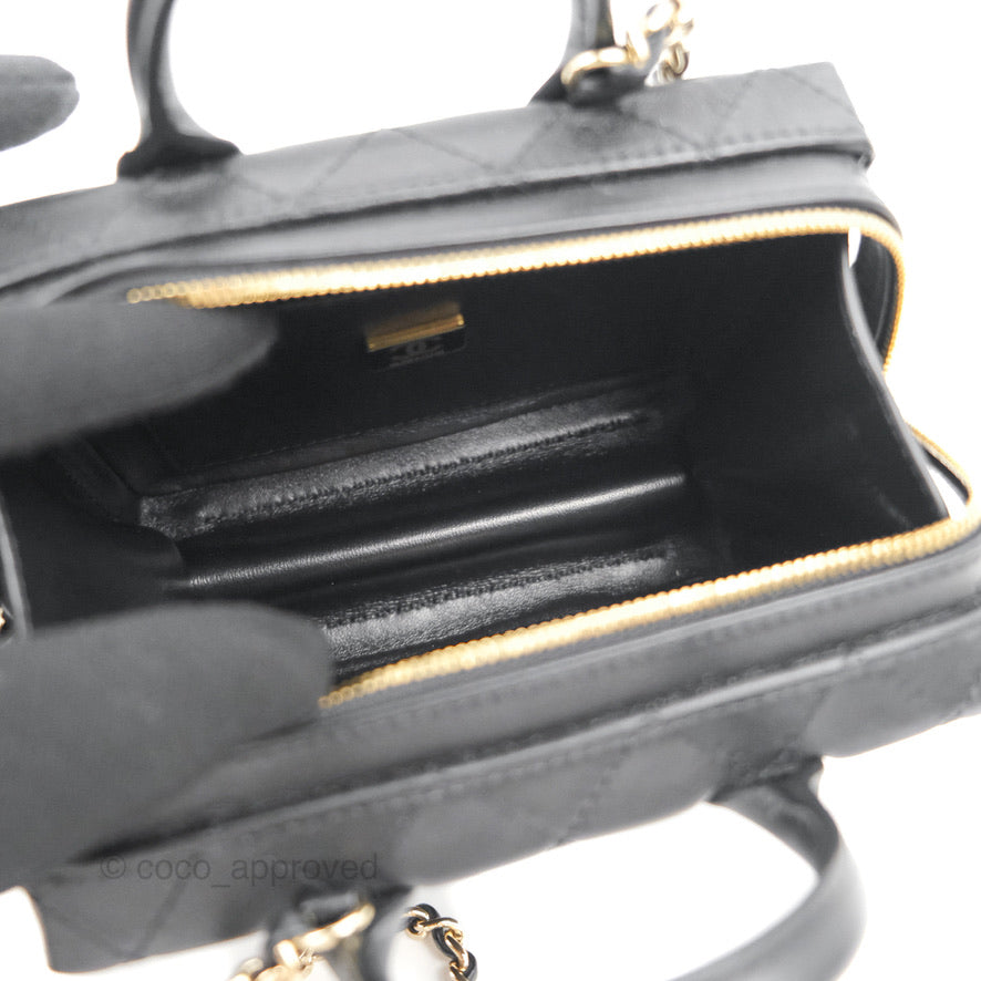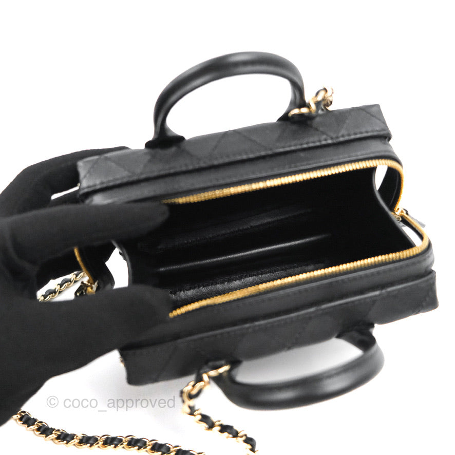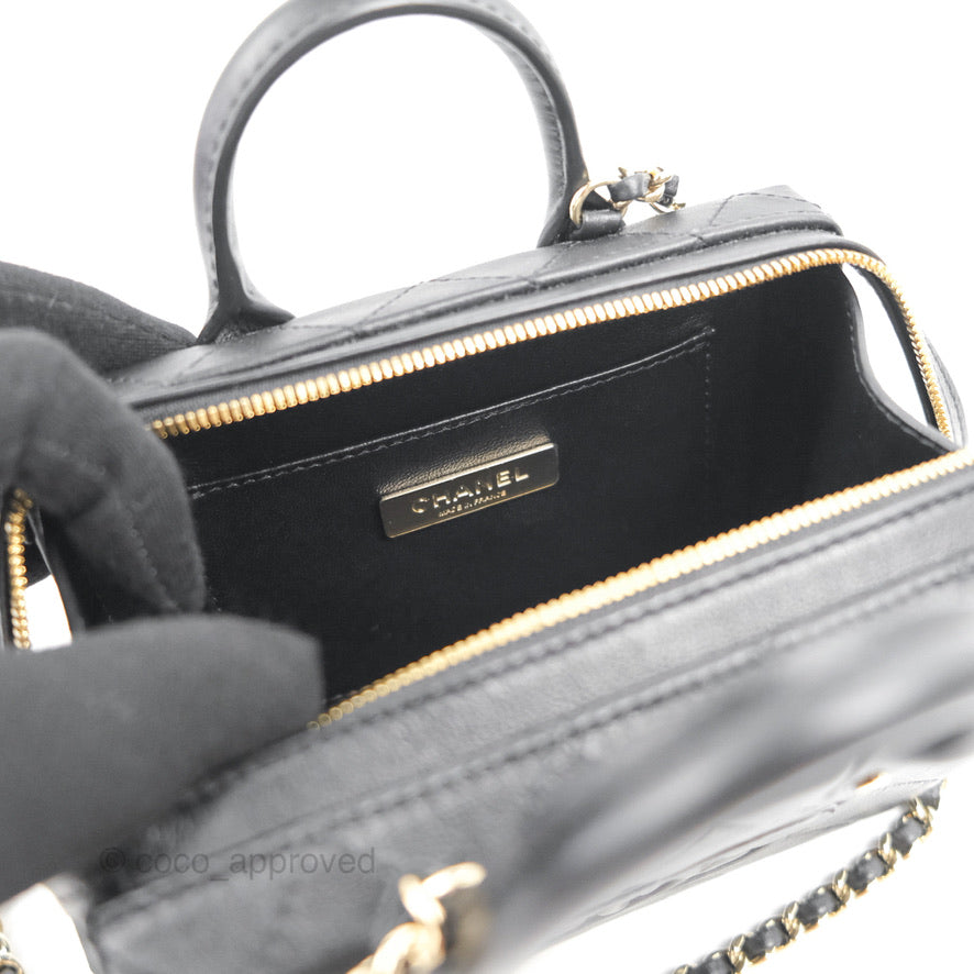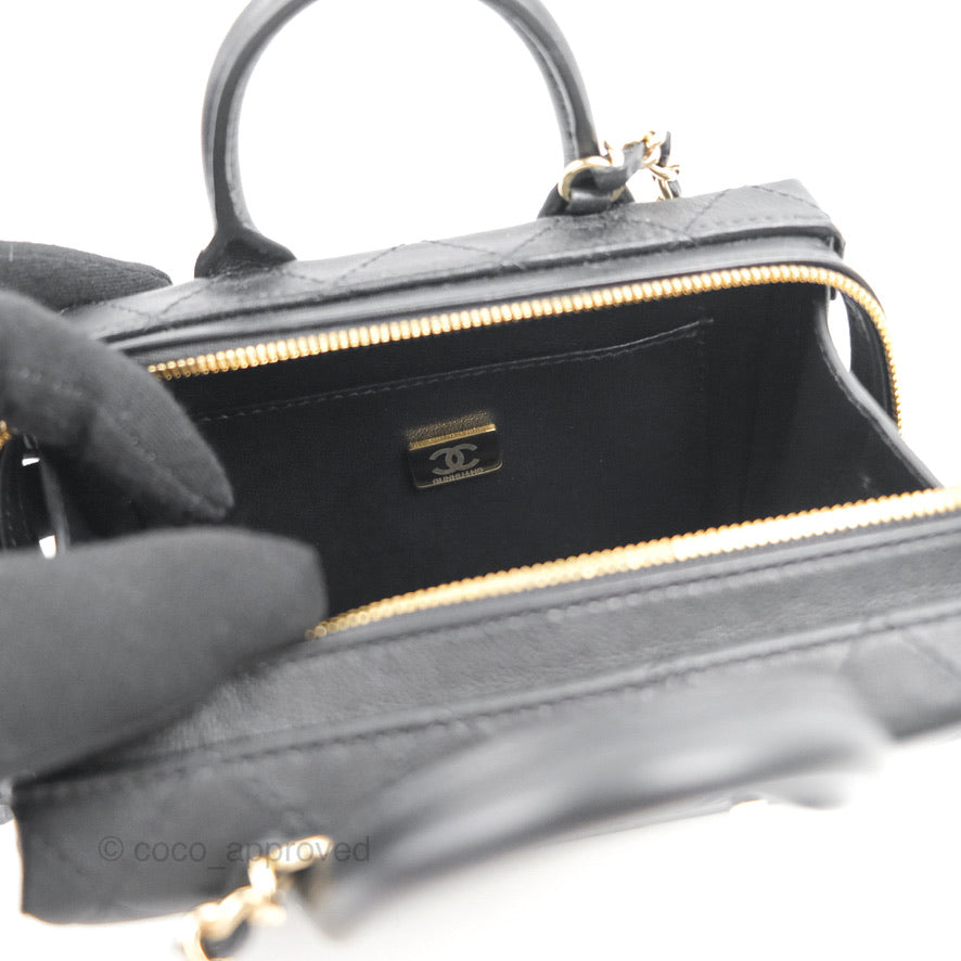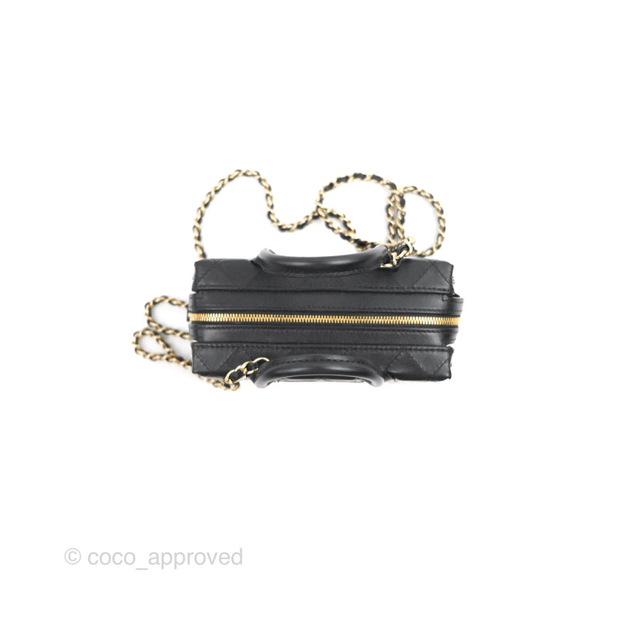 Chanel Quilted Vanity Case with Chain Black Calfskin Gold Hardware 22B