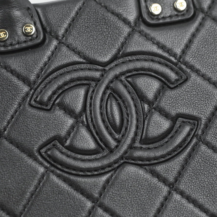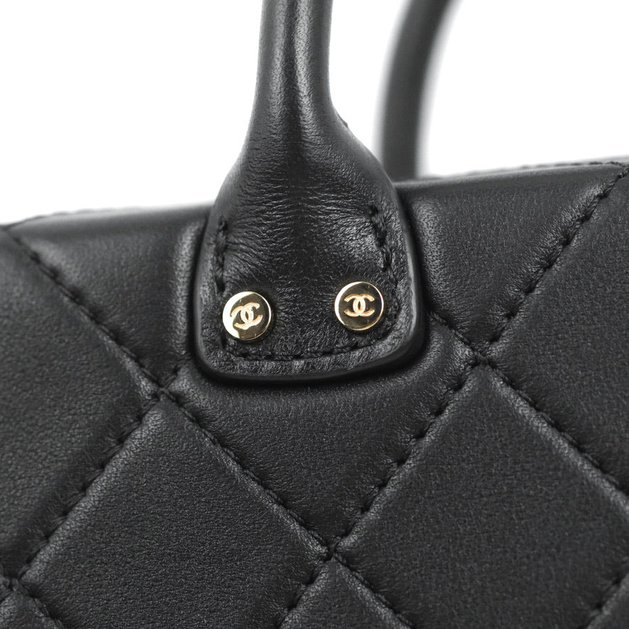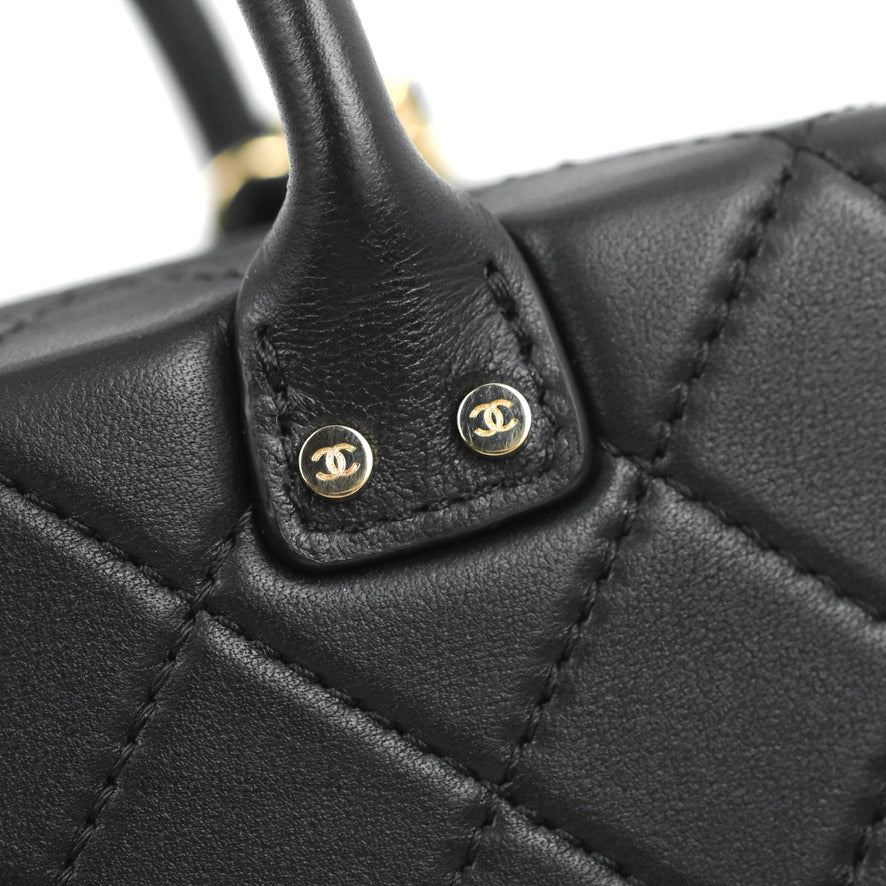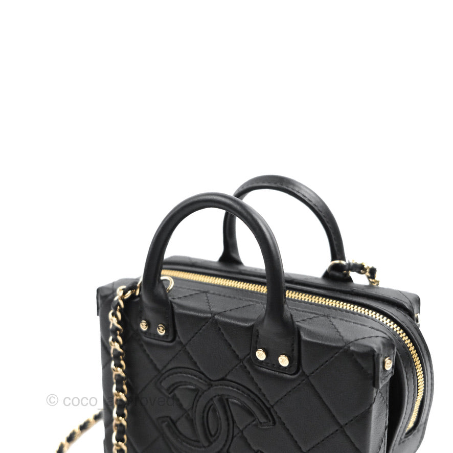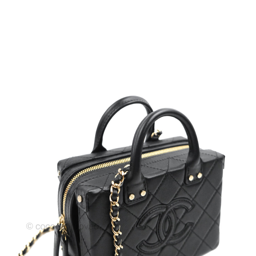 Chanel Quilted Vanity Case with Chain Black Calfskin Gold Hardware 22B