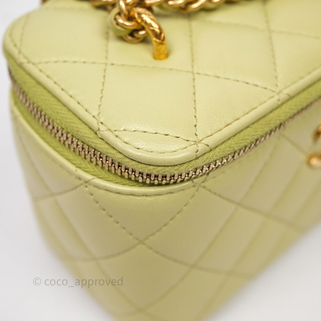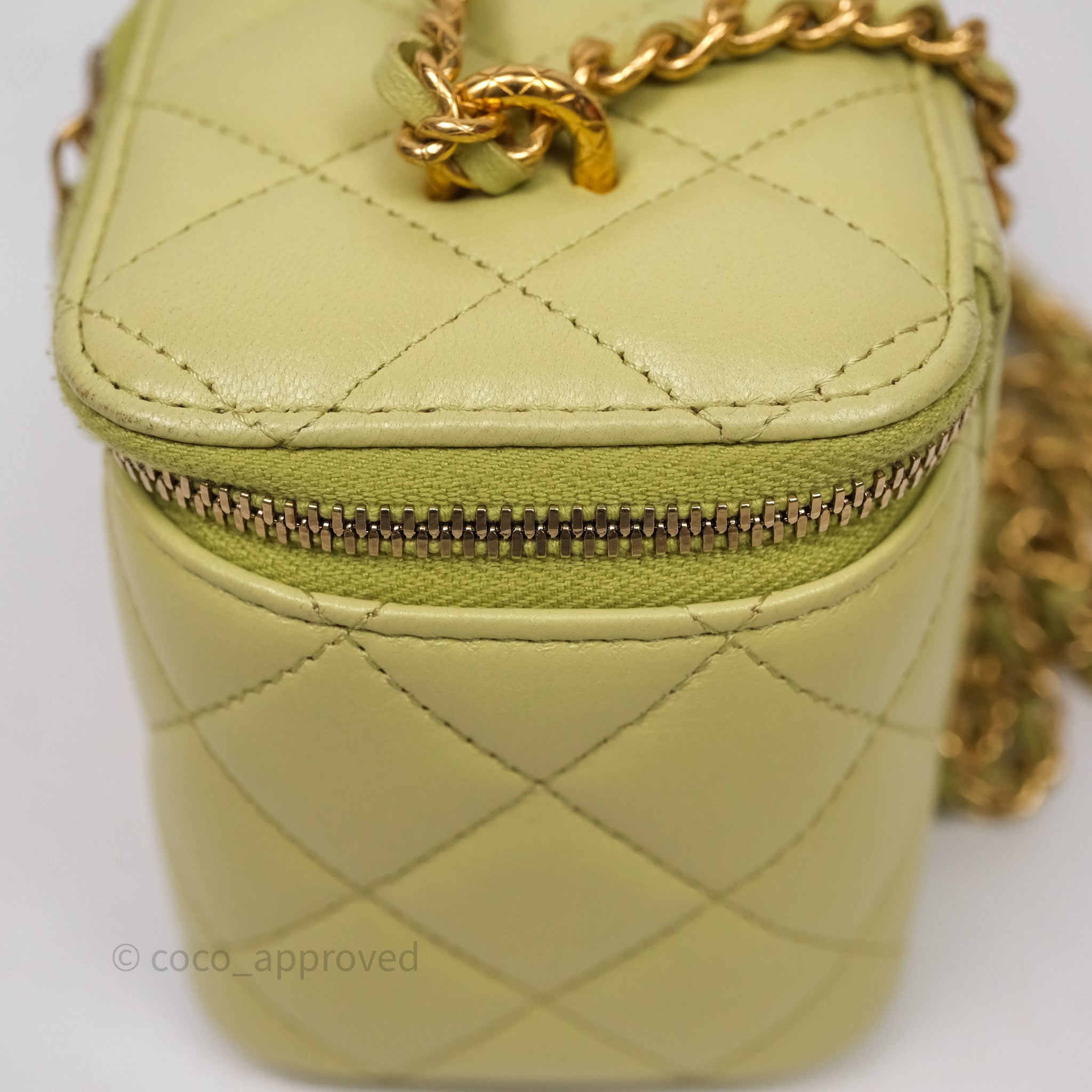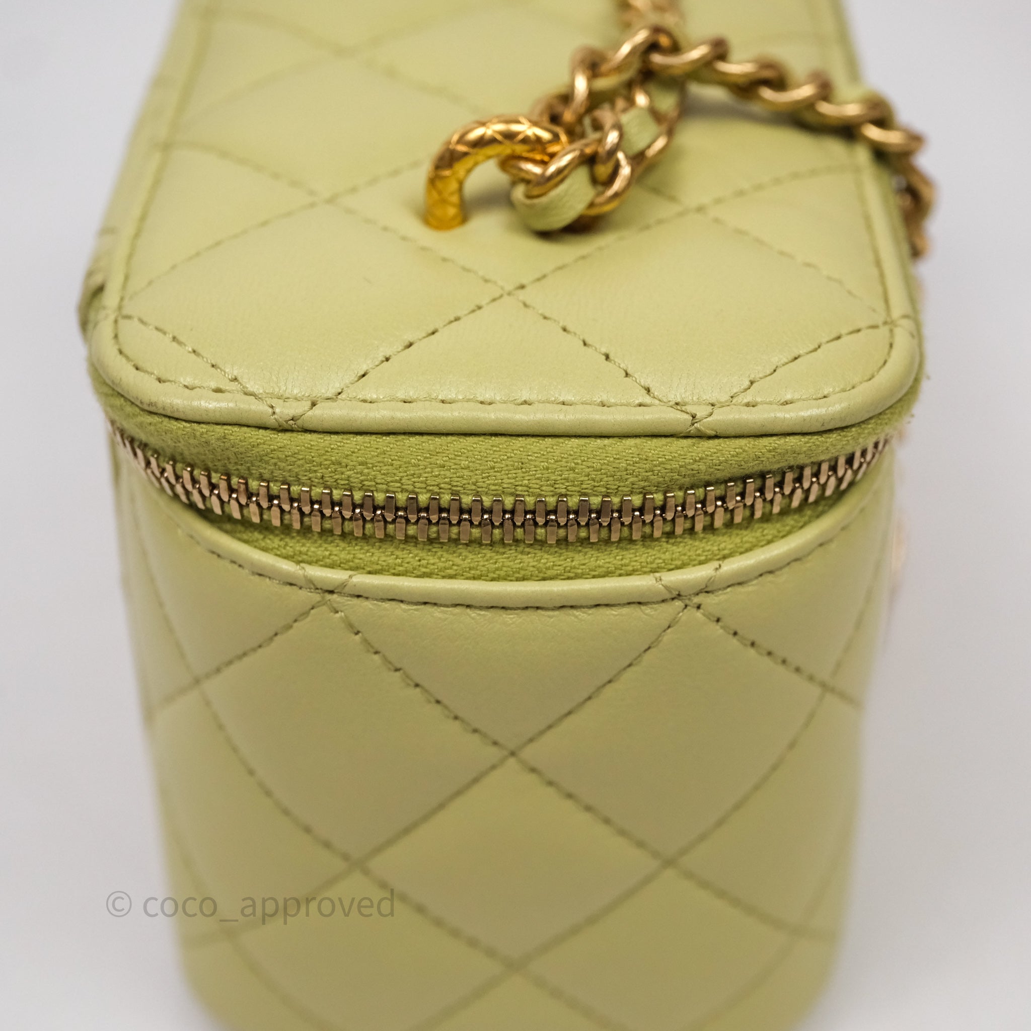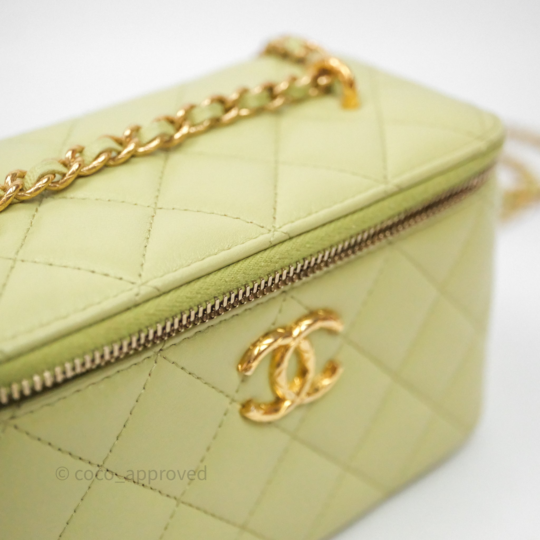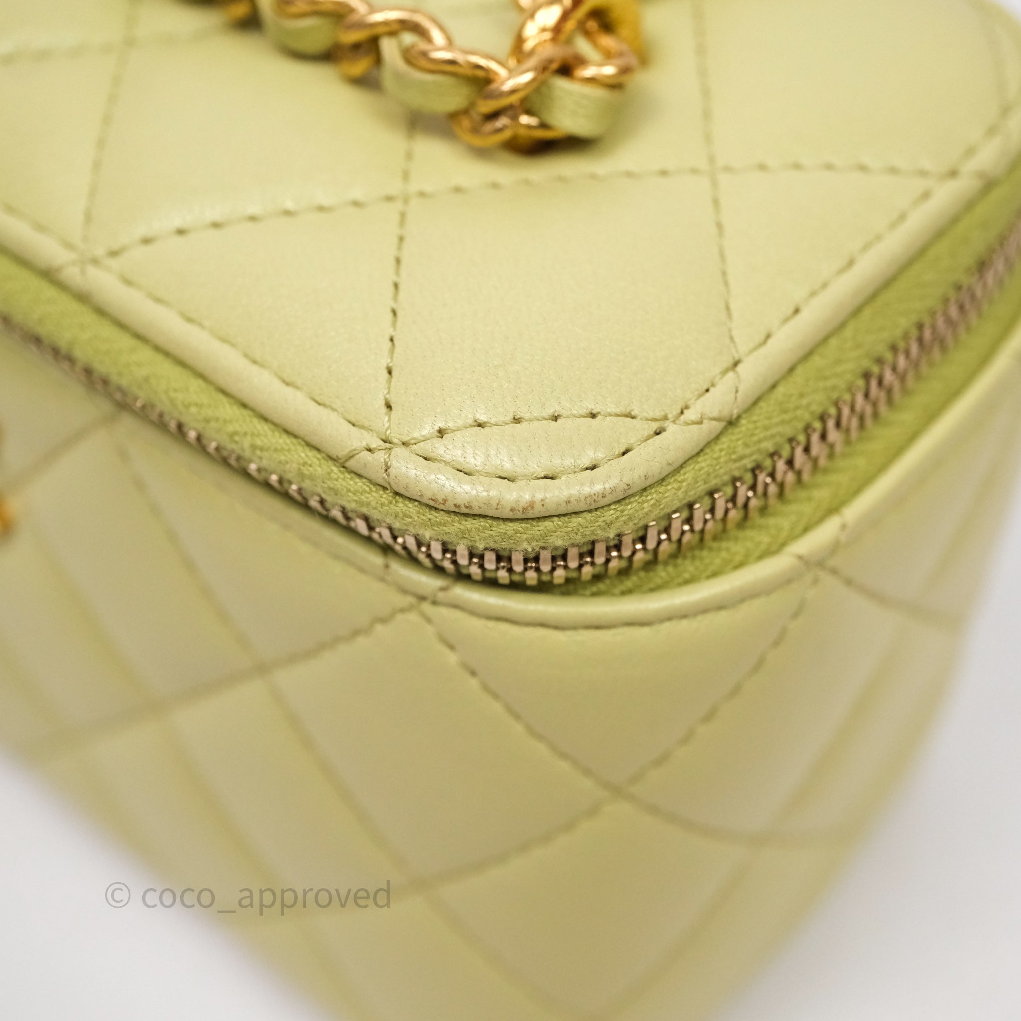 Chanel Quilted Vanity With Chain Lambskin Green Gold Hardware