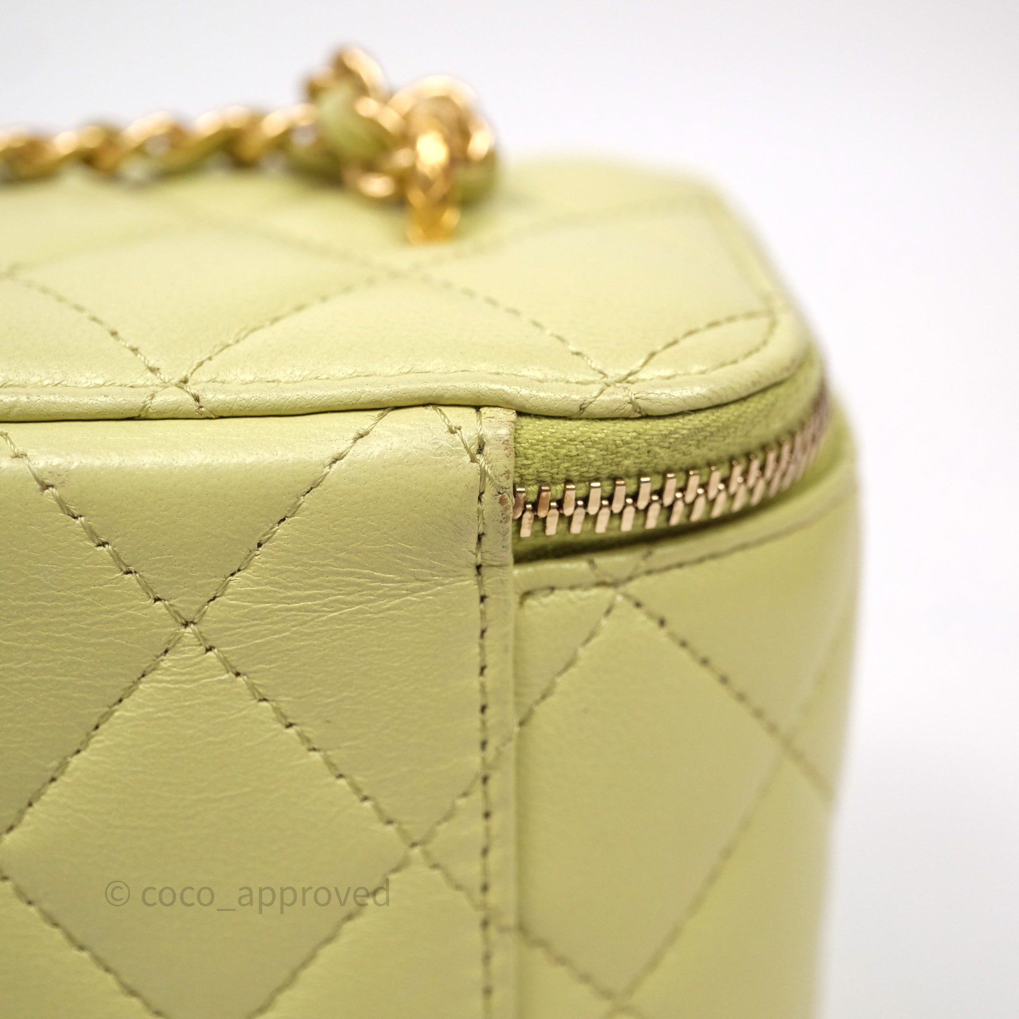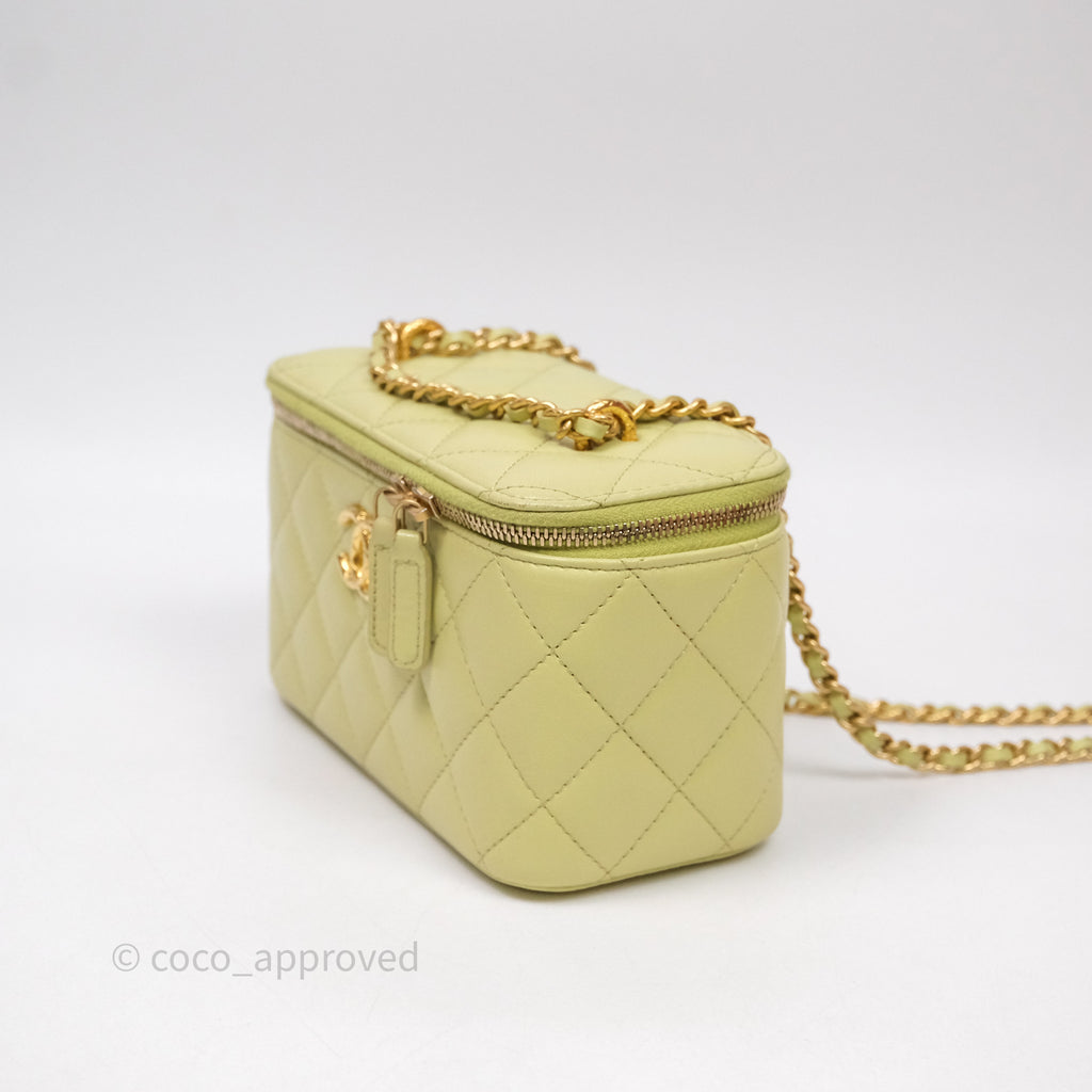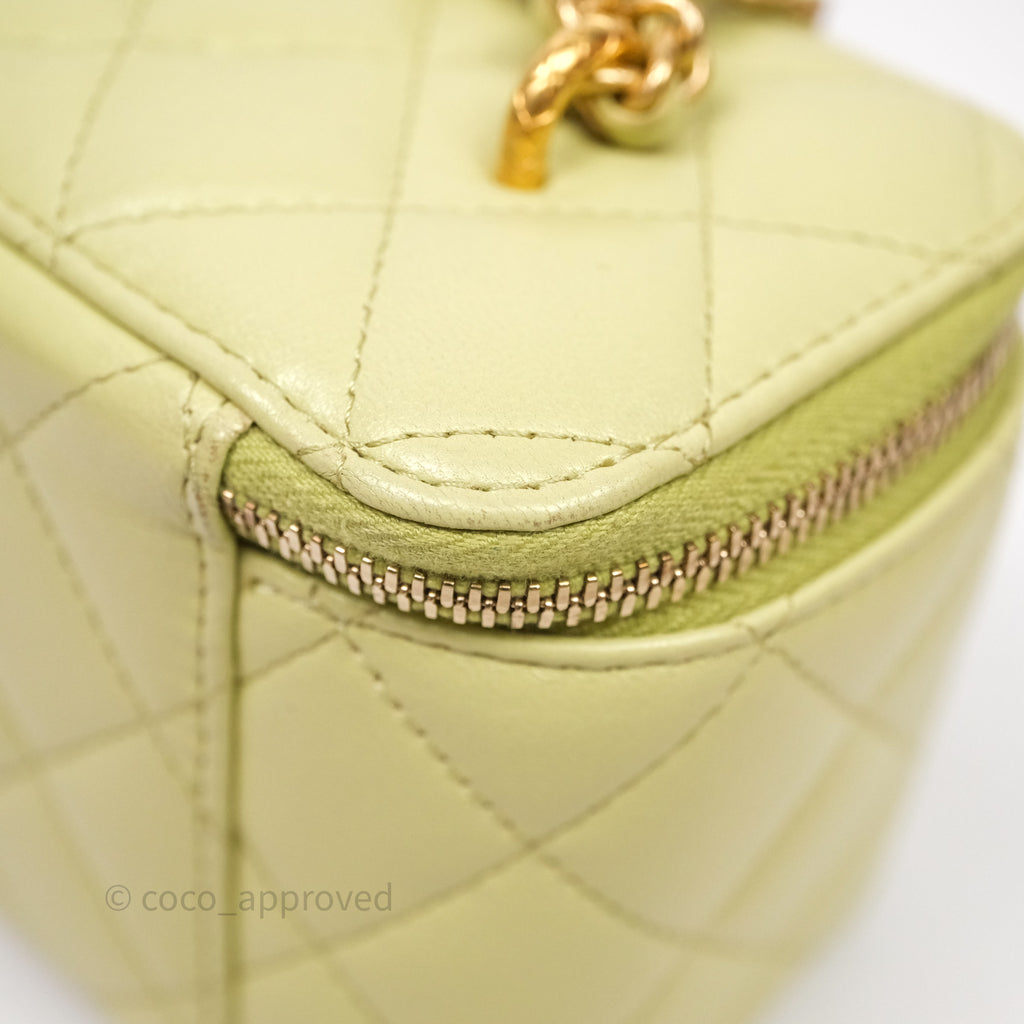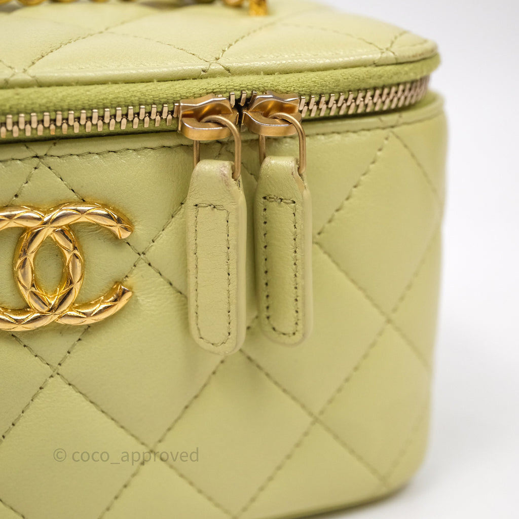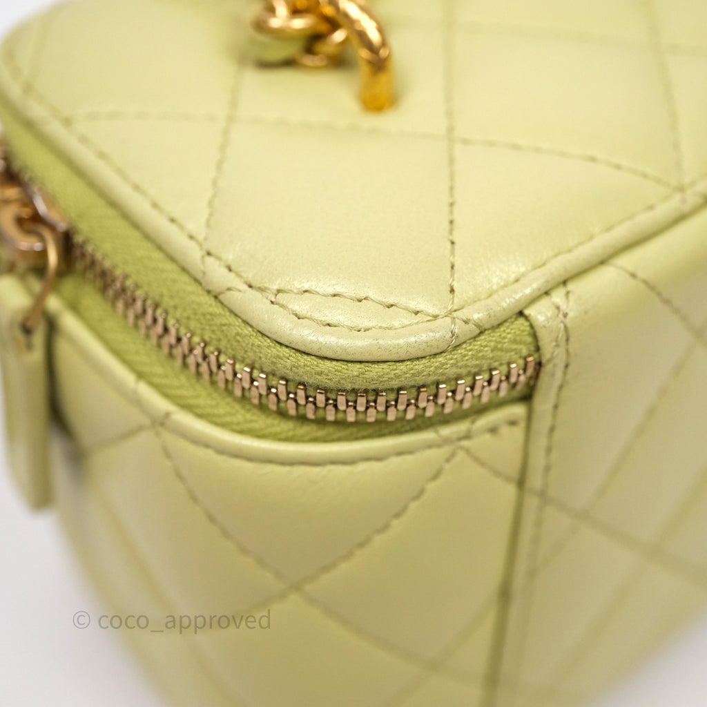 Chanel Quilted Vanity With Chain Lambskin Green Gold Hardware