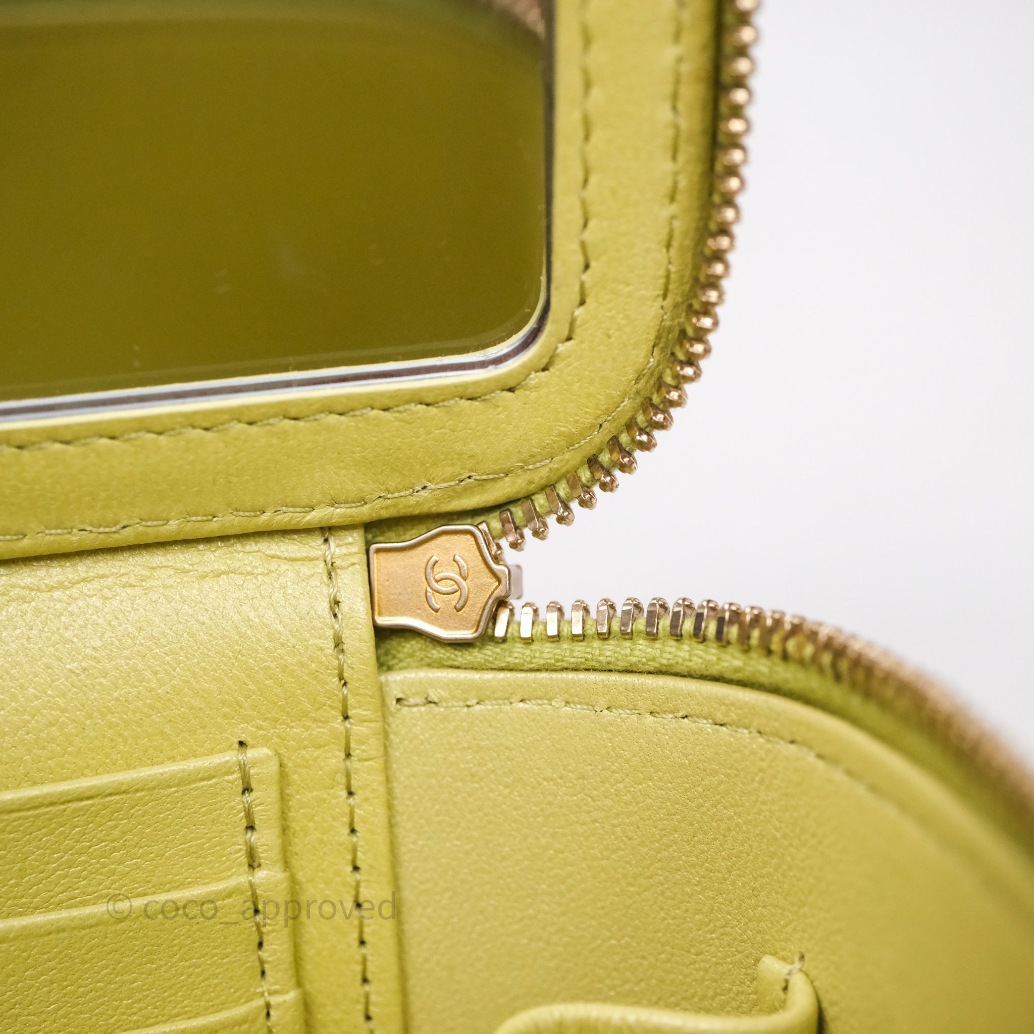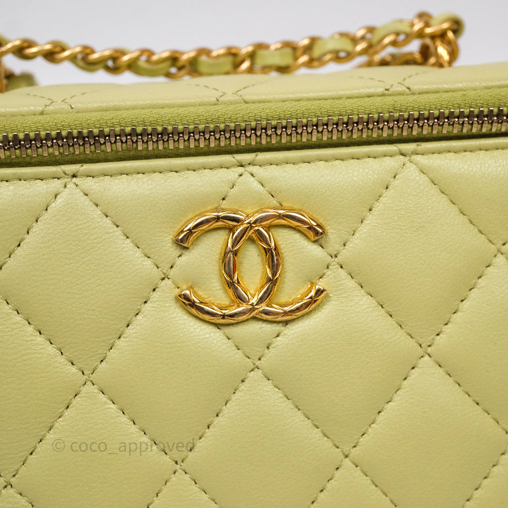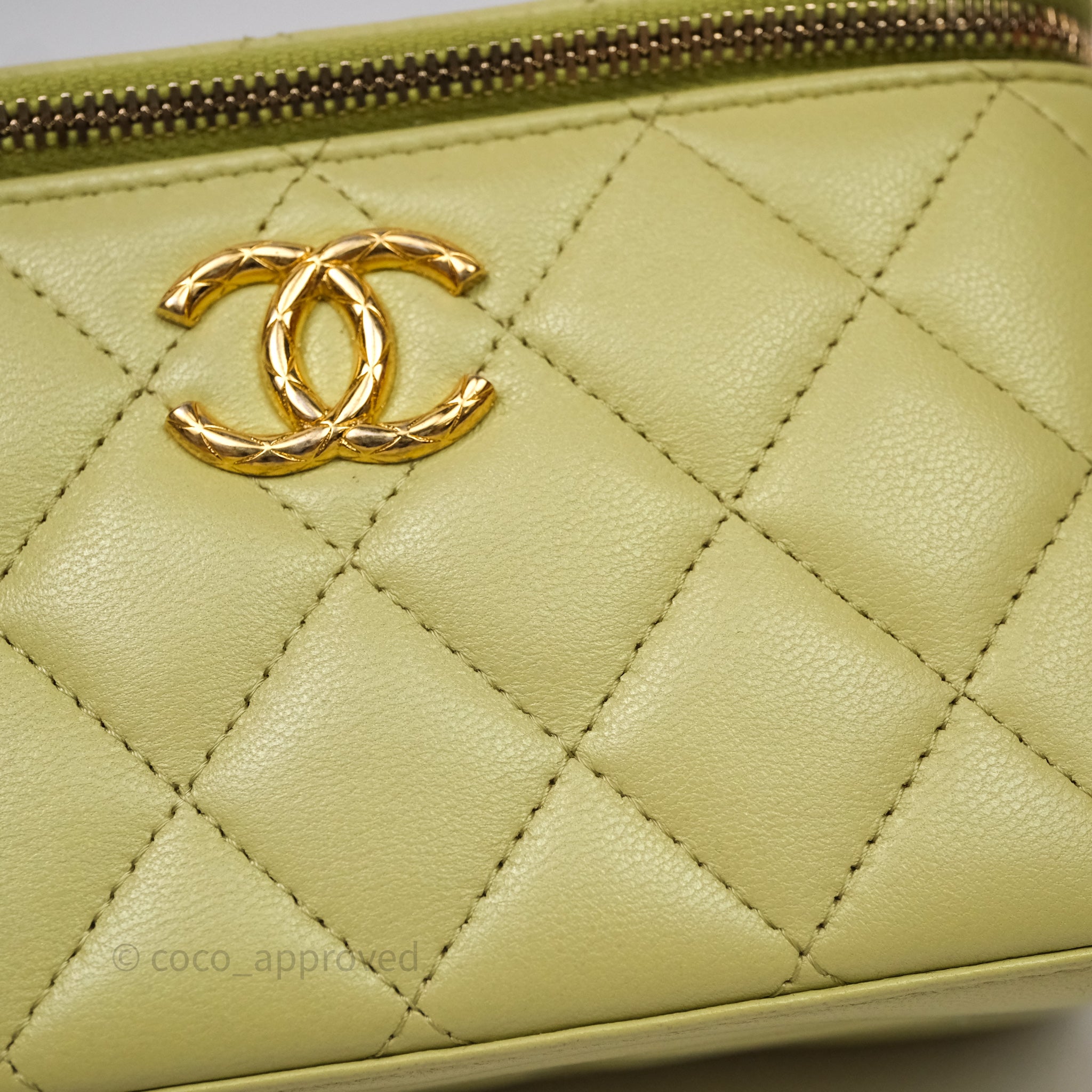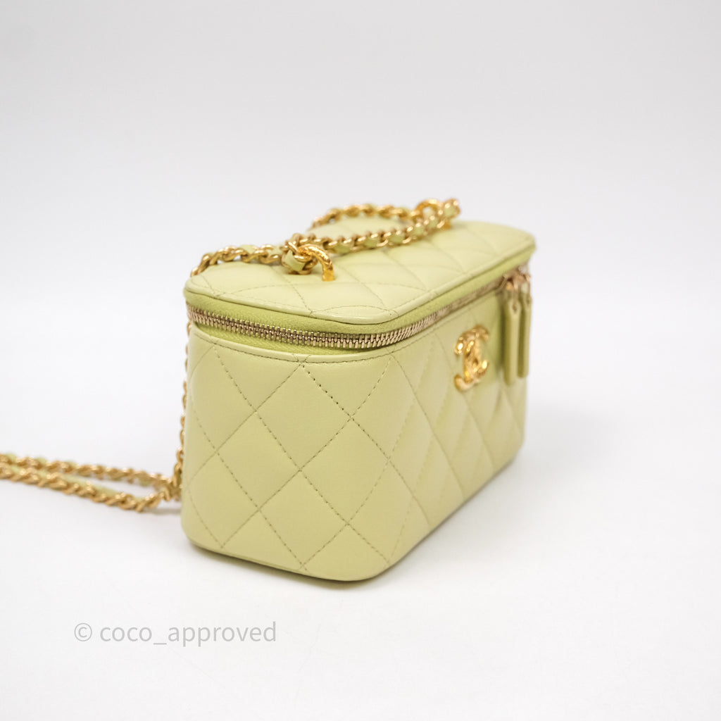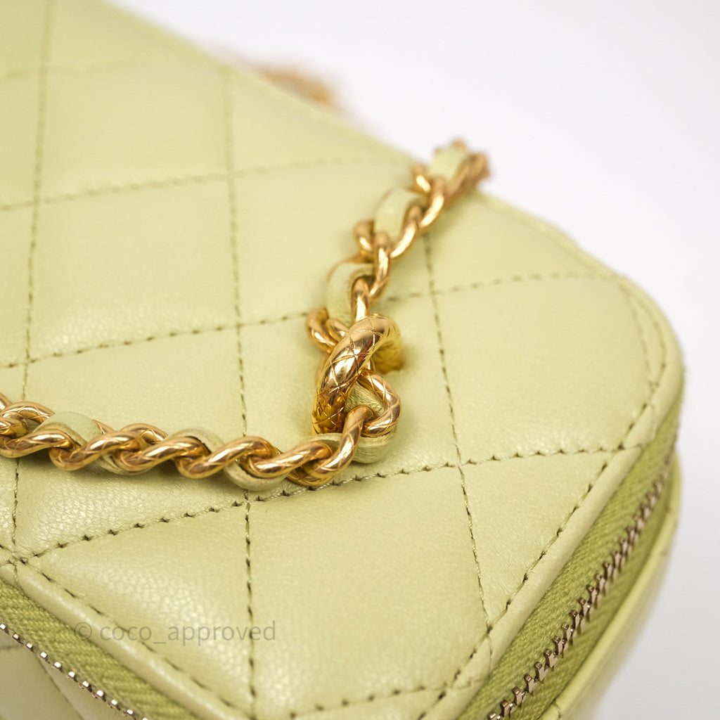 Chanel Quilted Vanity With Chain Lambskin Green Gold Hardware