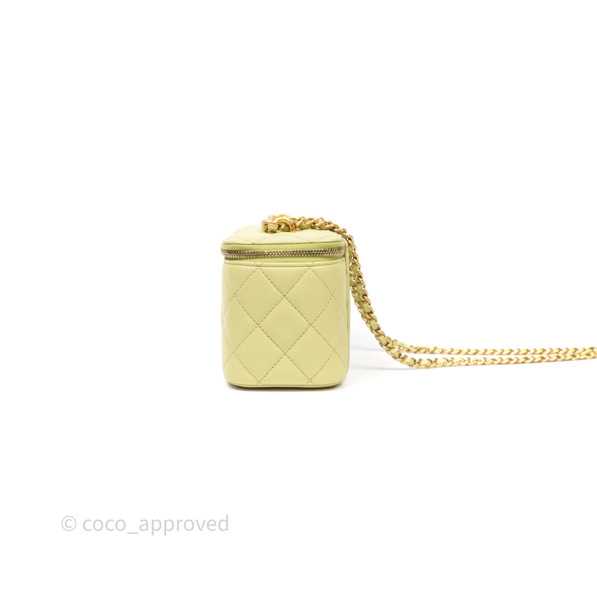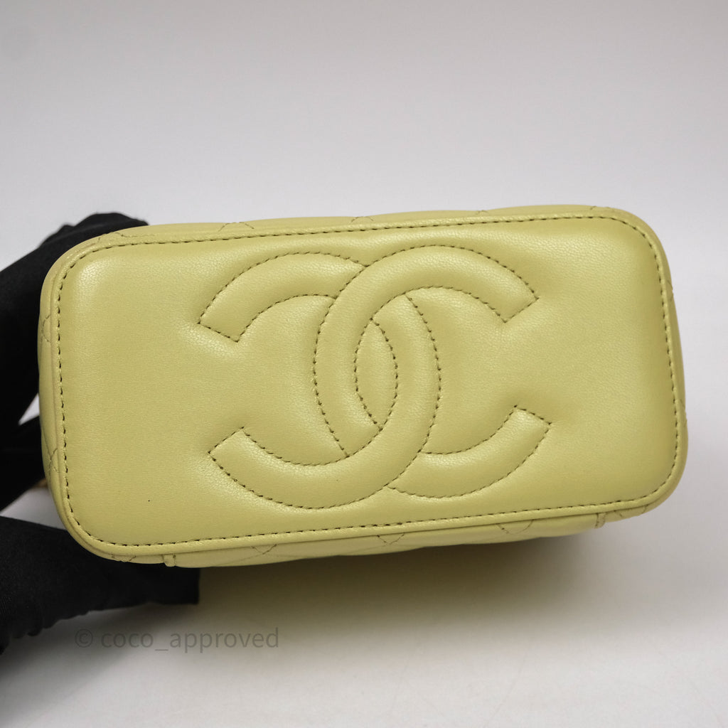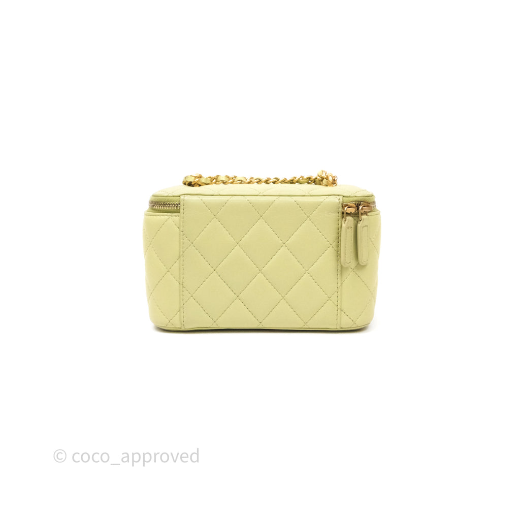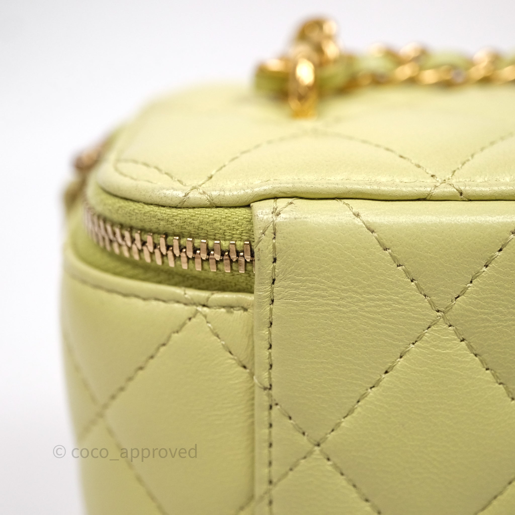 Chanel Quilted Vanity With Chain Lambskin Green Gold Hardware