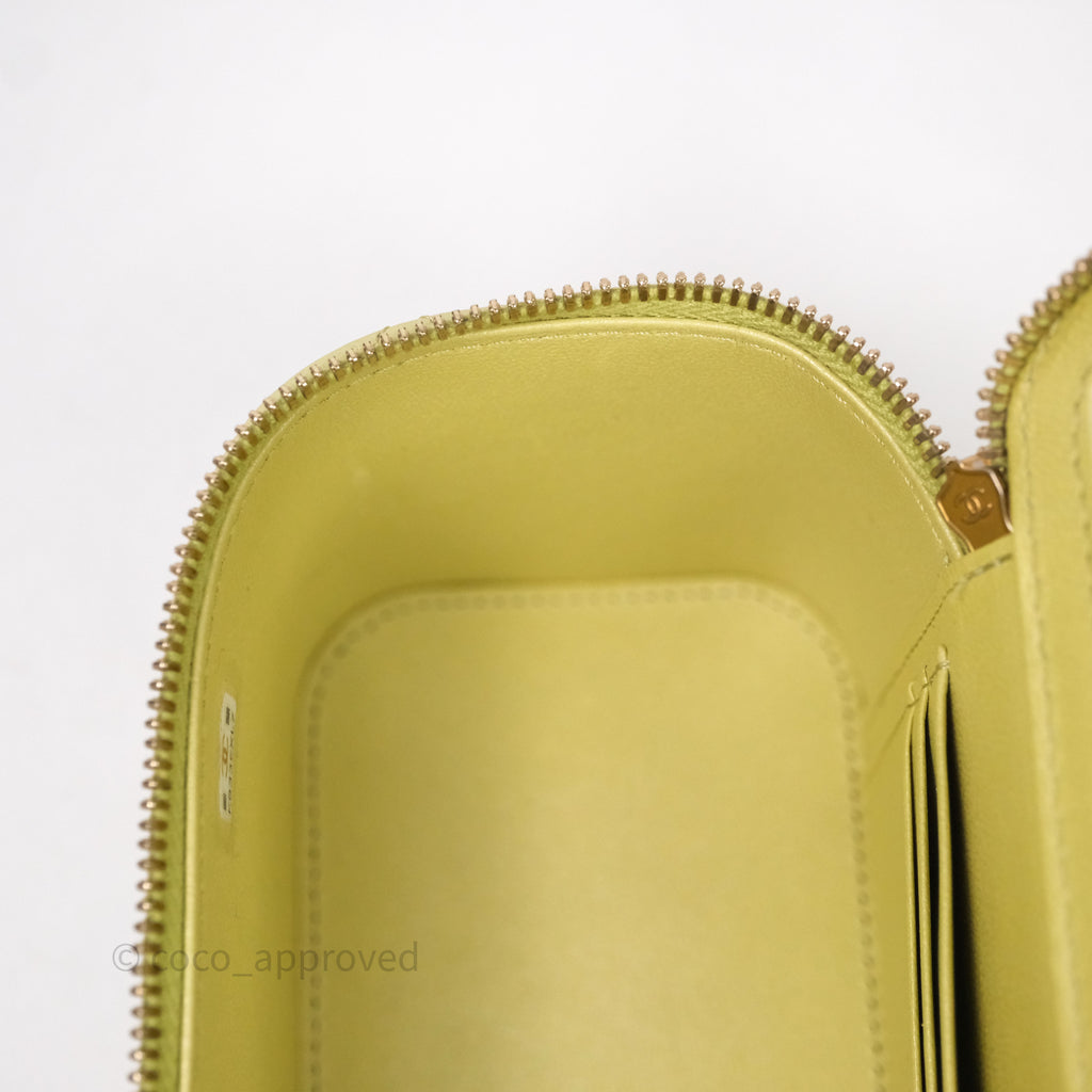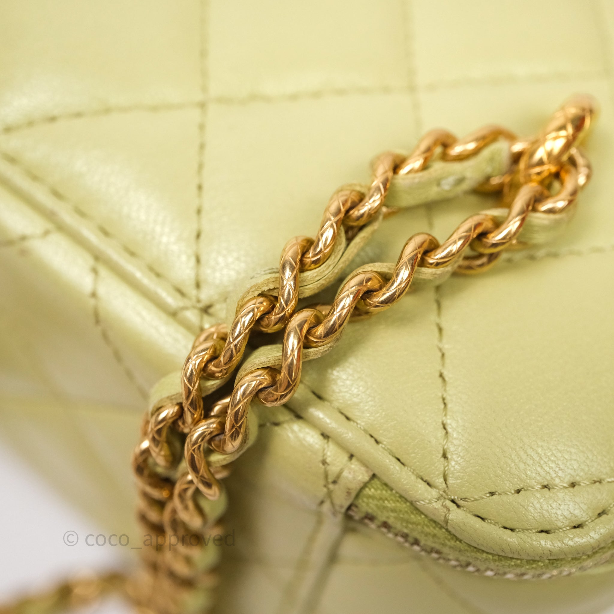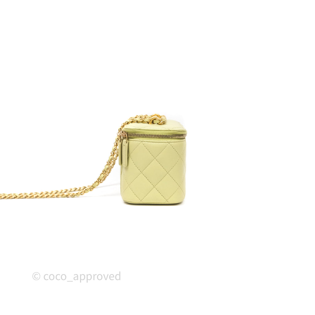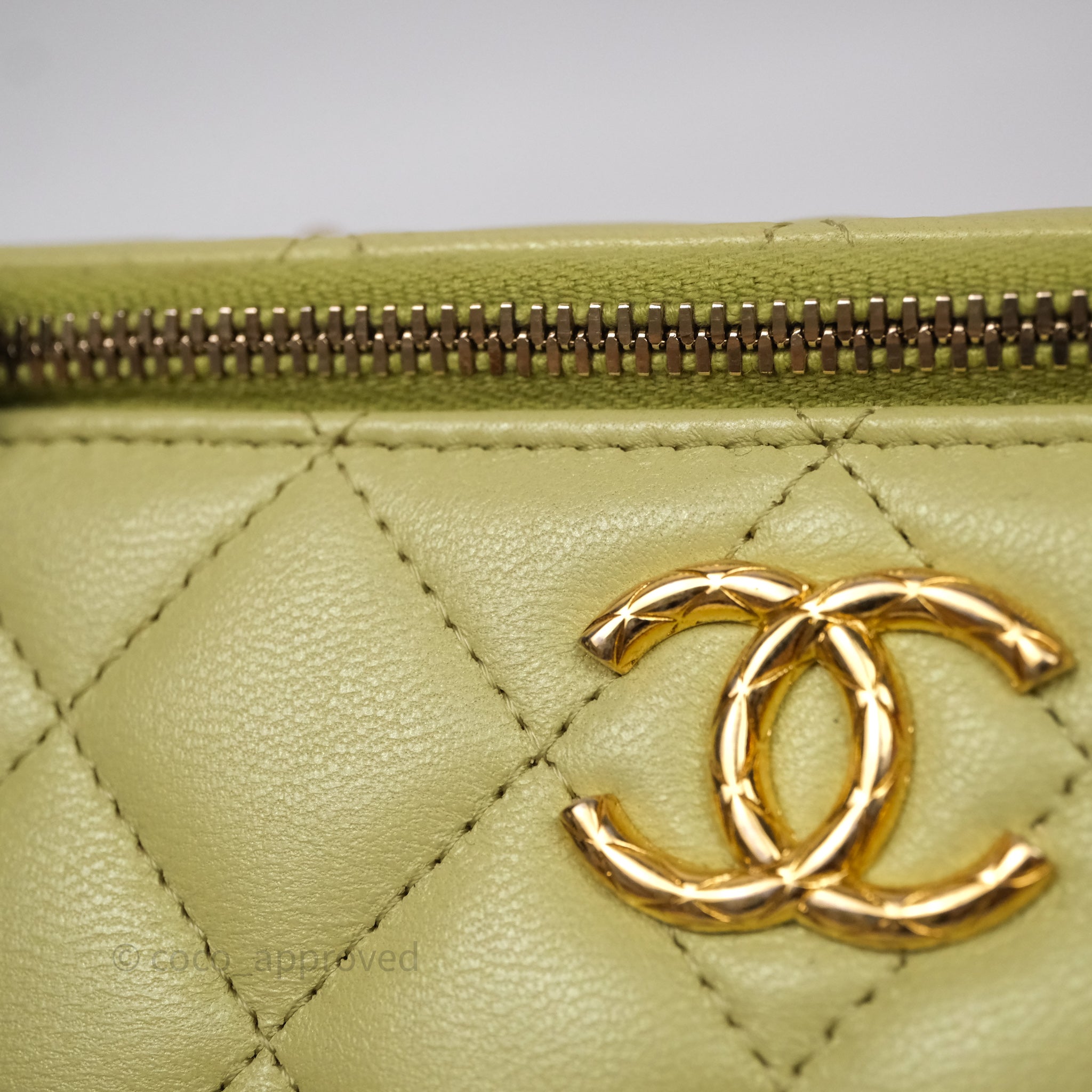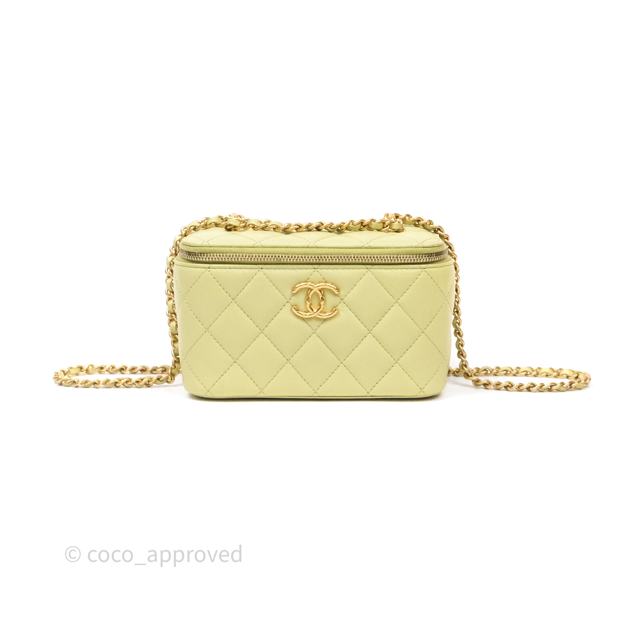 Chanel Quilted Vanity With Chain Lambskin Green Gold Hardware