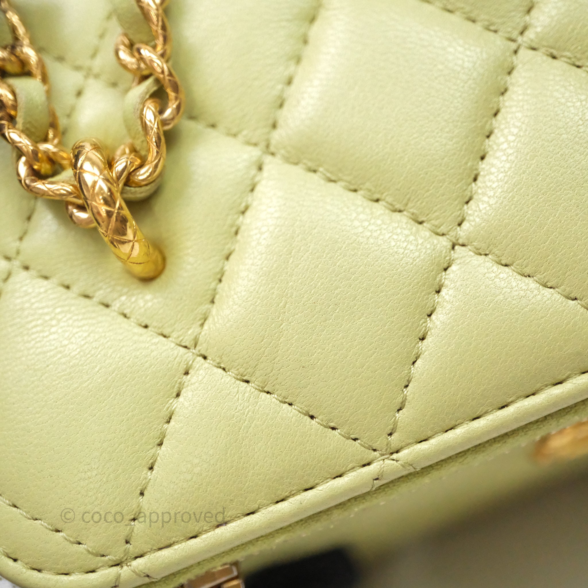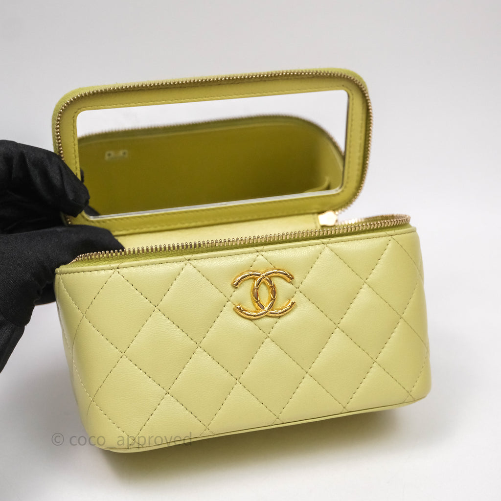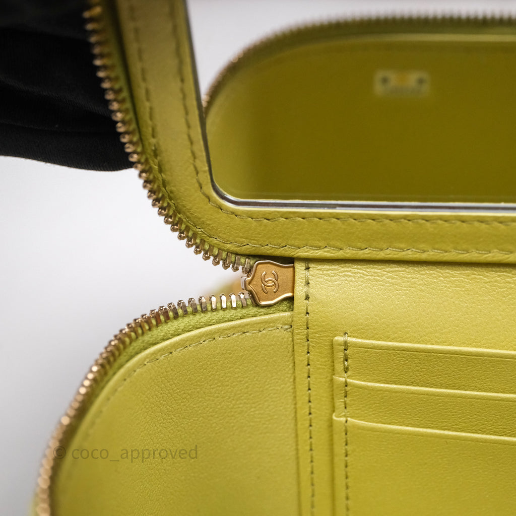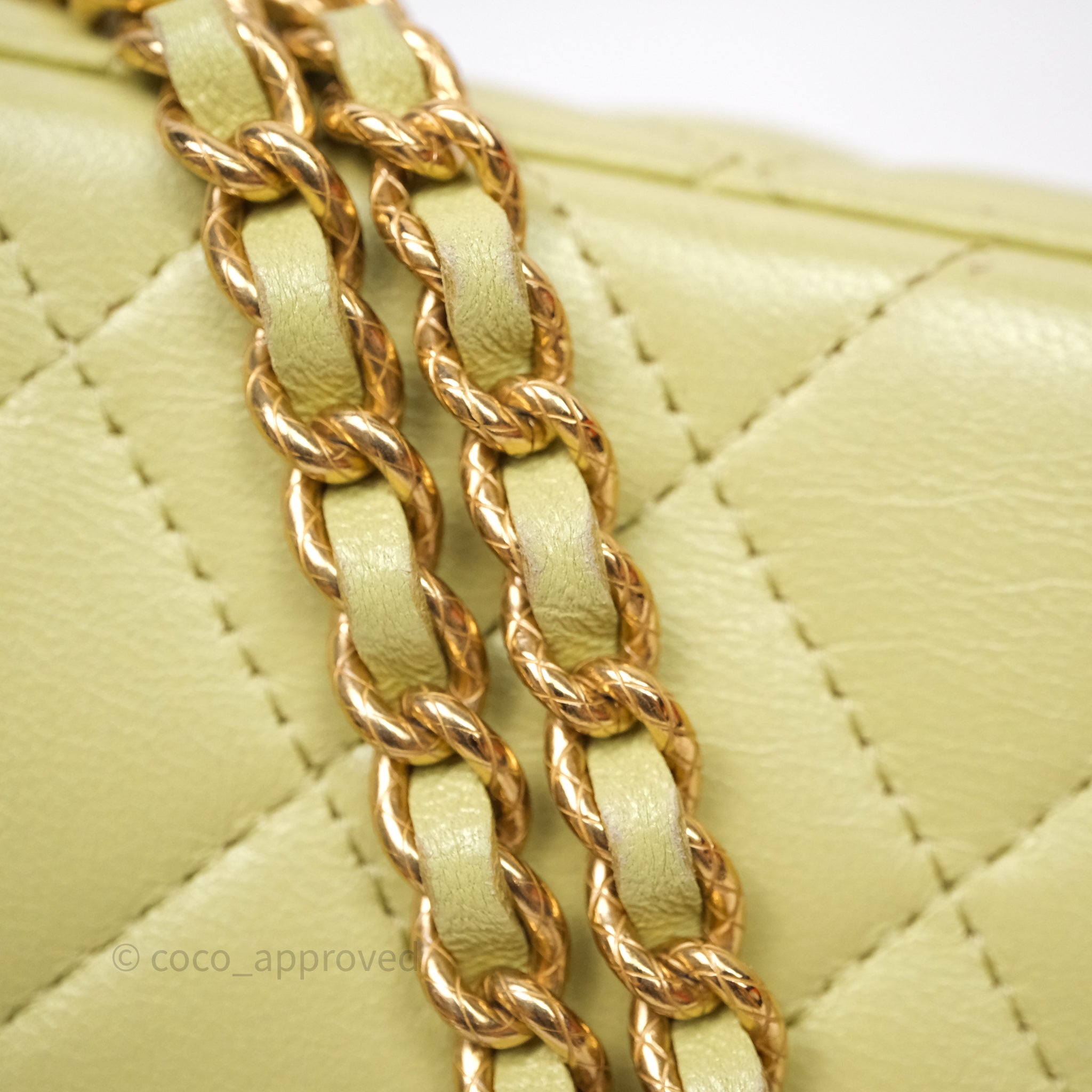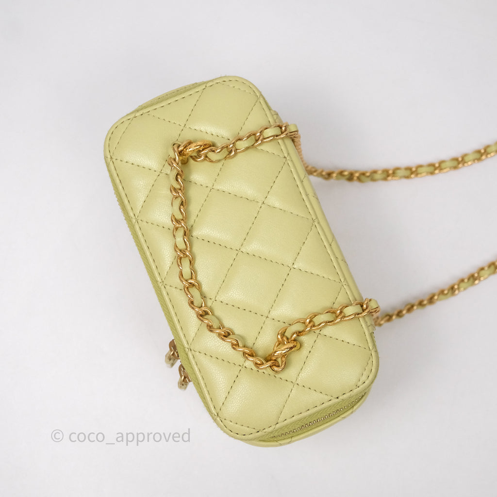 Chanel Quilted Vanity With Chain Lambskin Green Gold Hardware