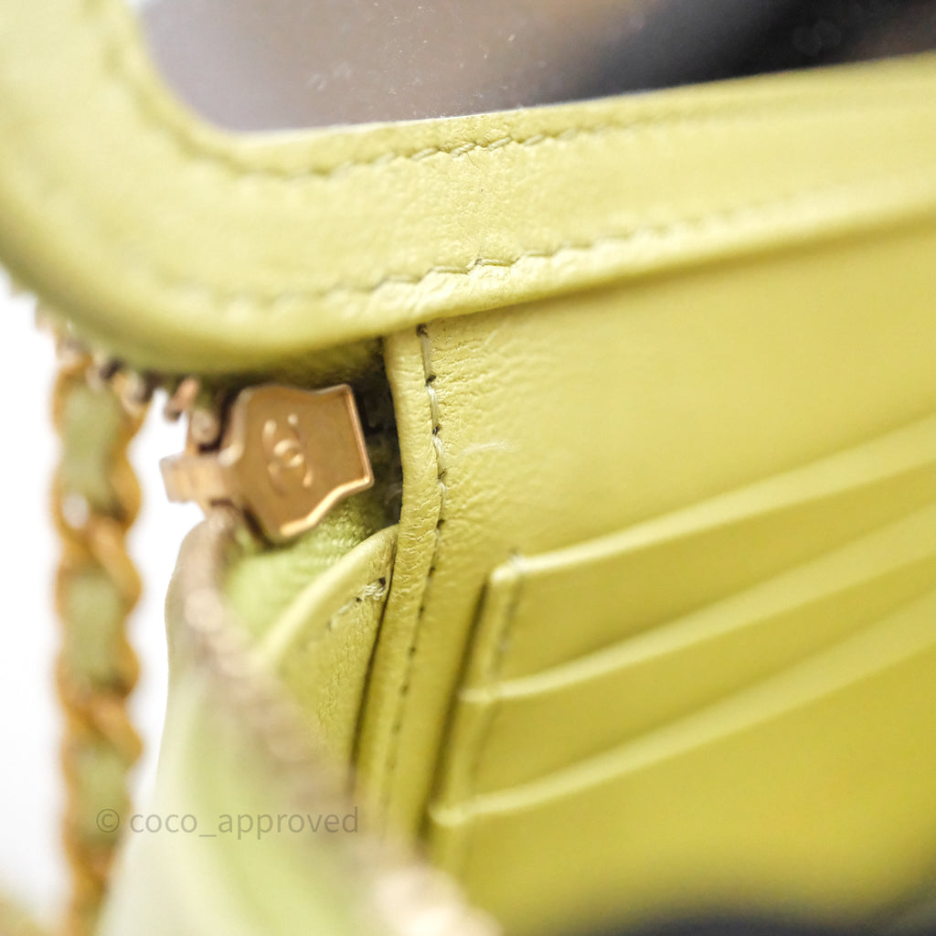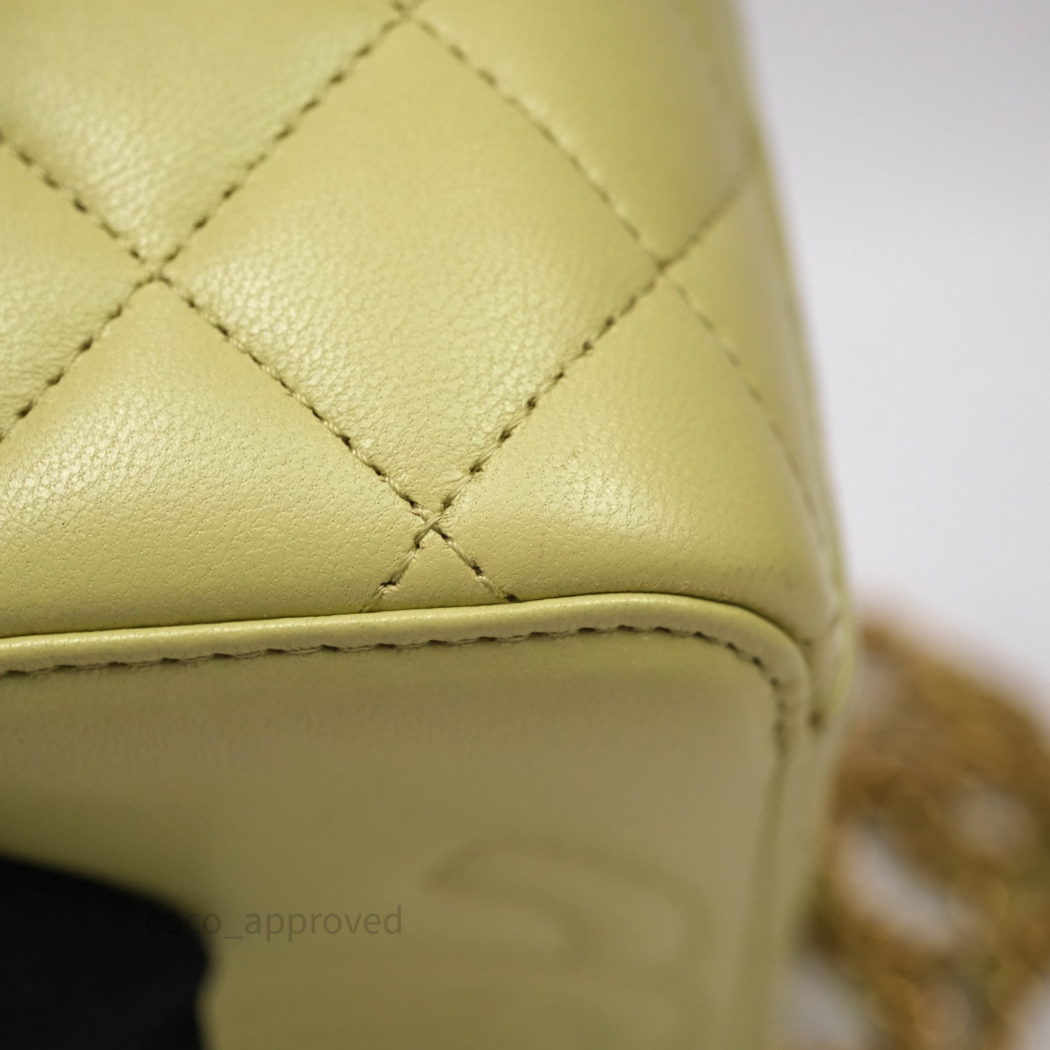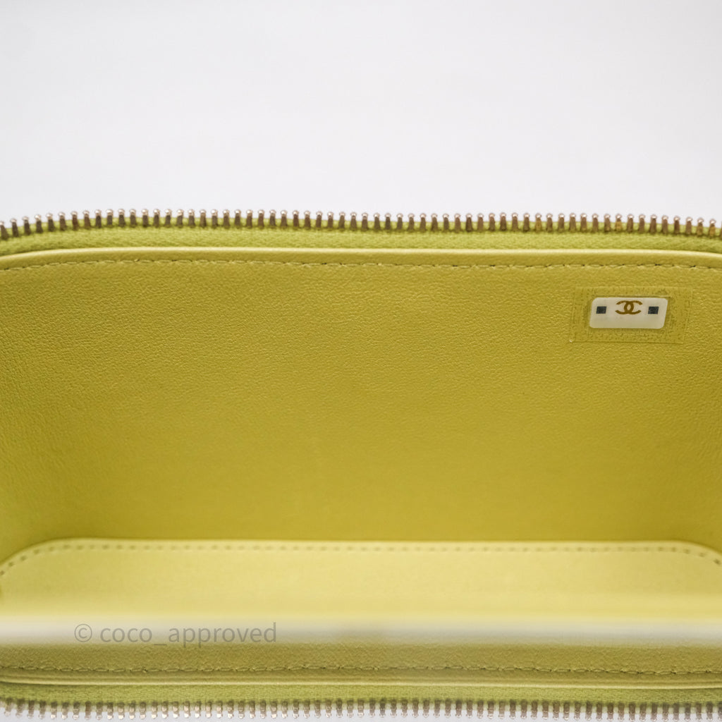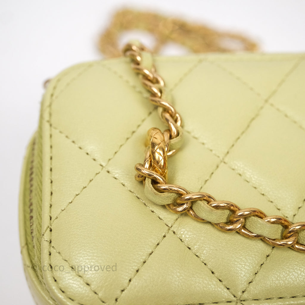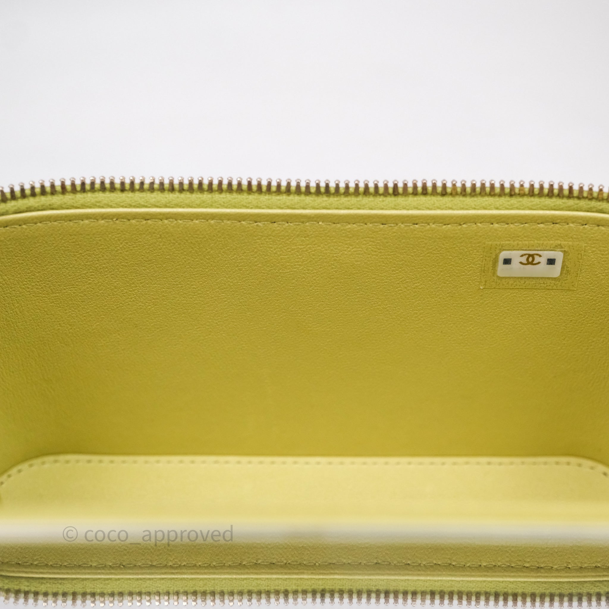 Chanel Quilted Vanity With Chain Lambskin Green Gold Hardware