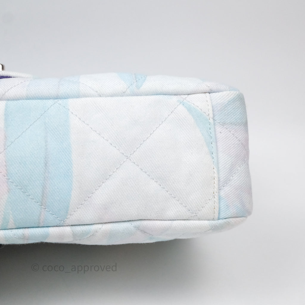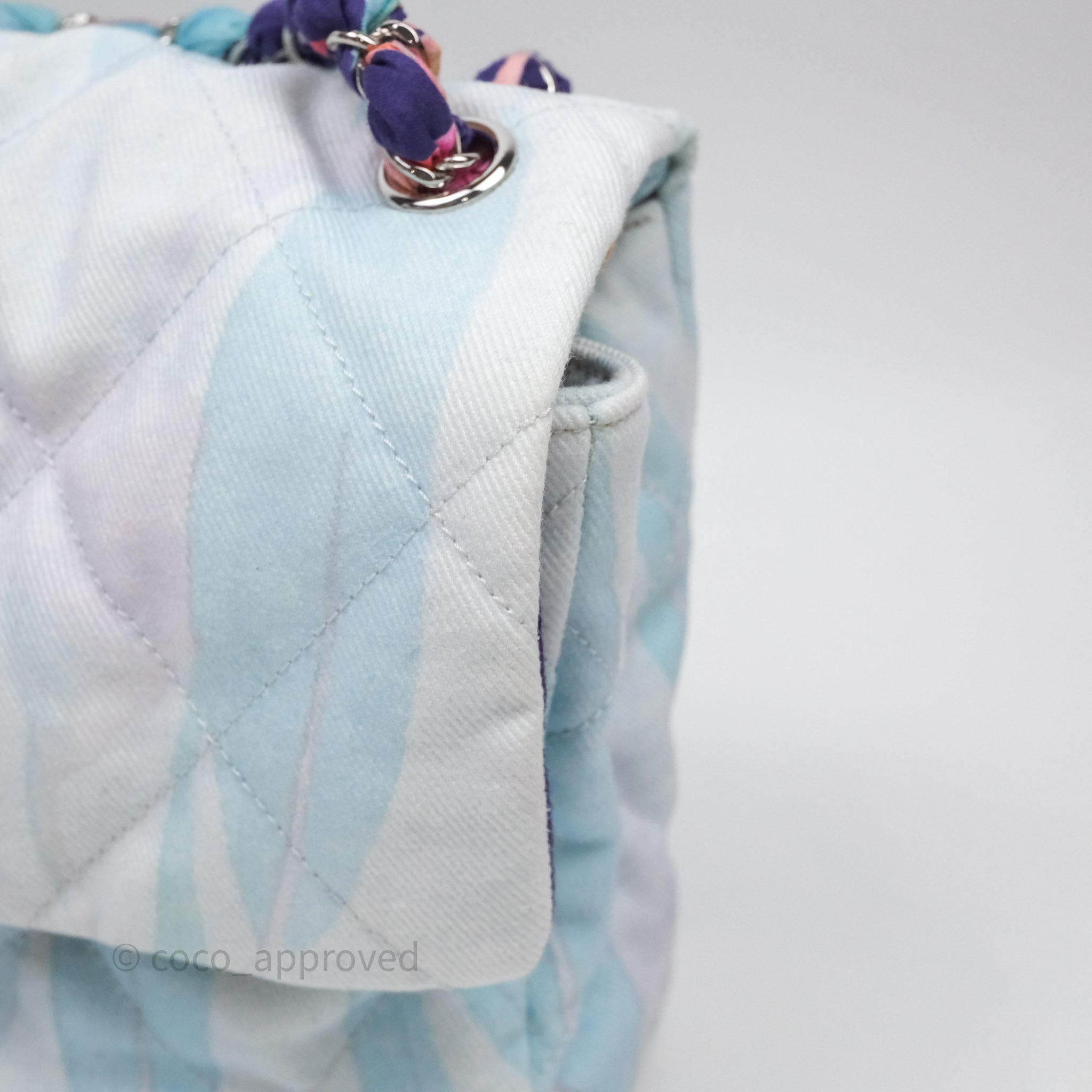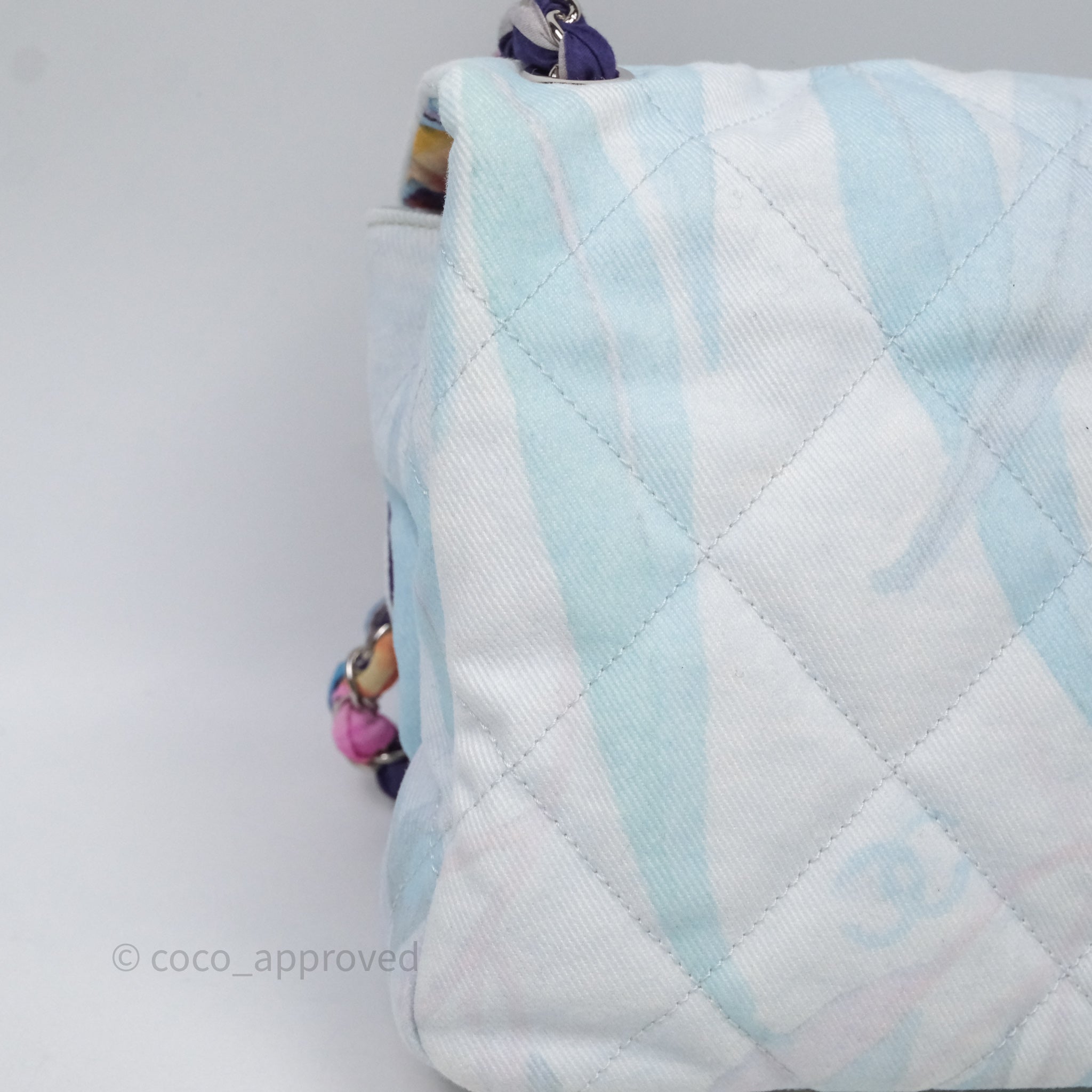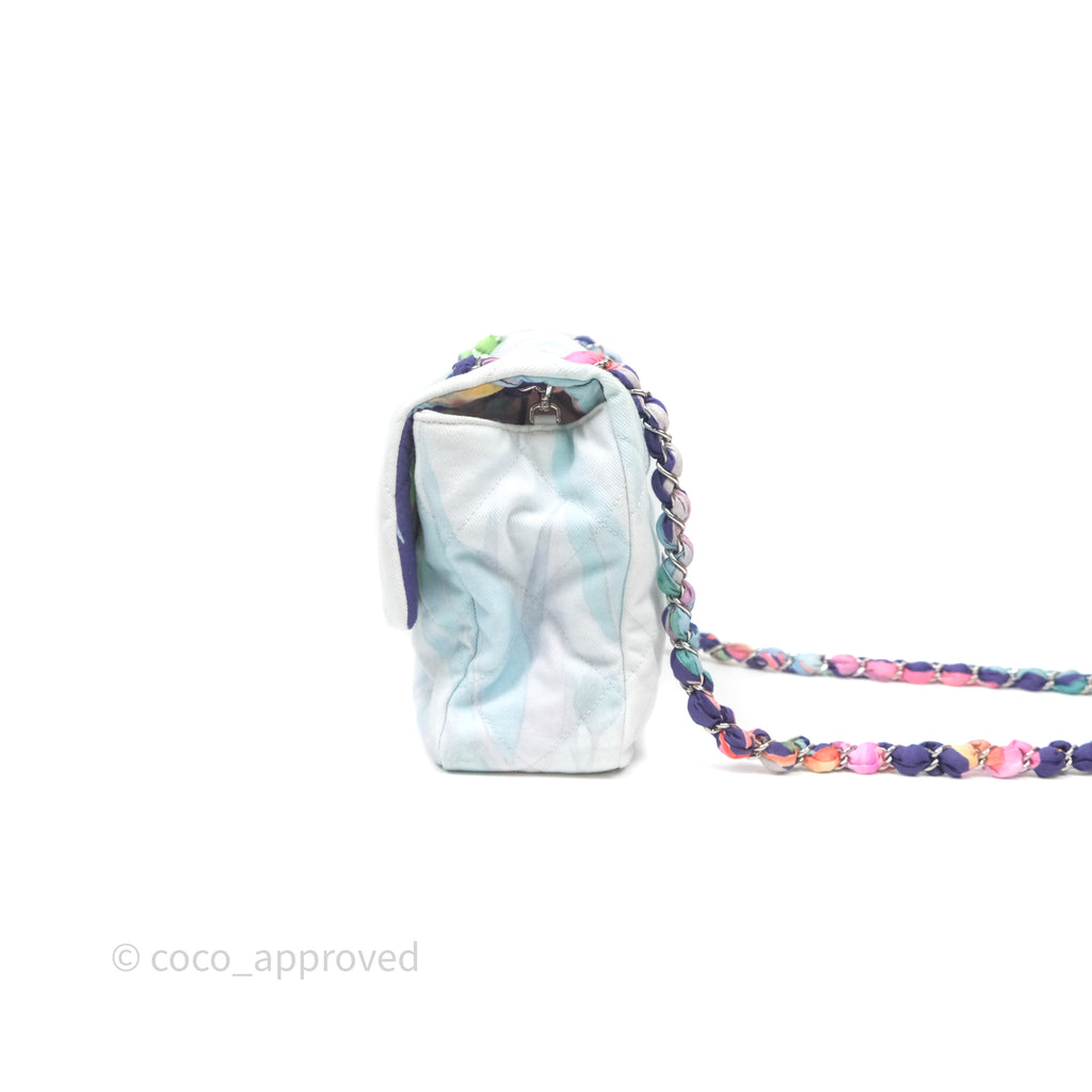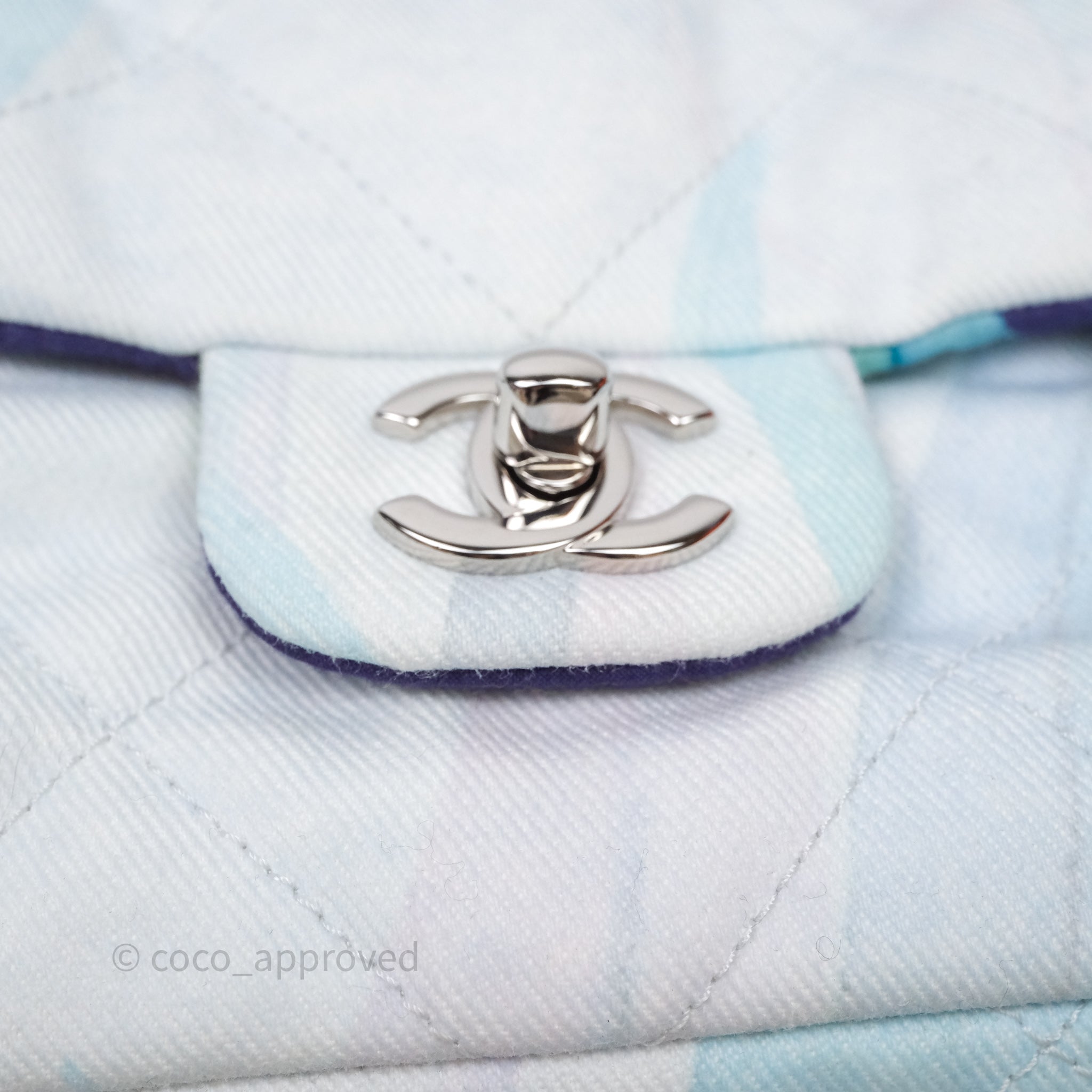 Chanel Single Flap Bag Blue Watercolour Denim Silver Hardware