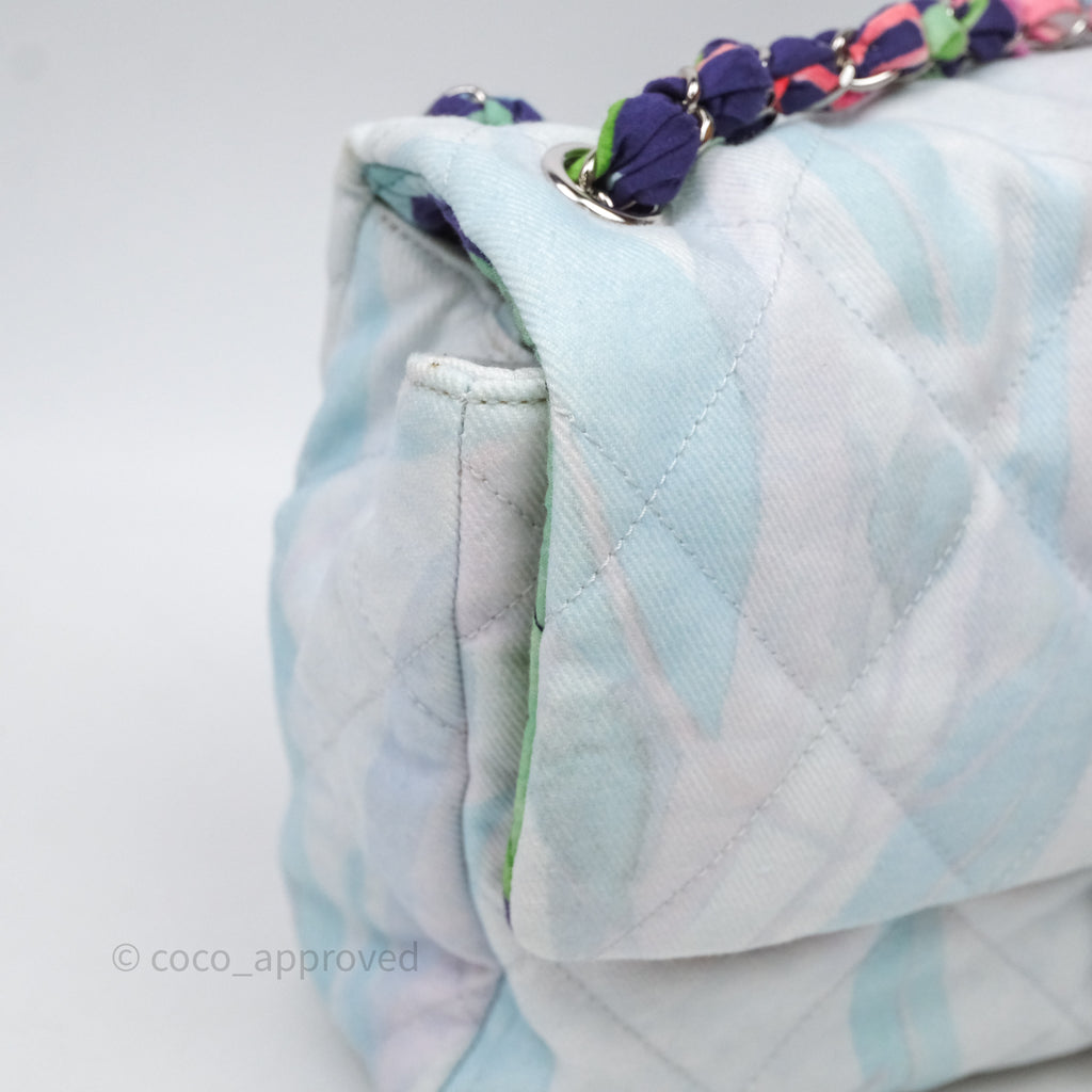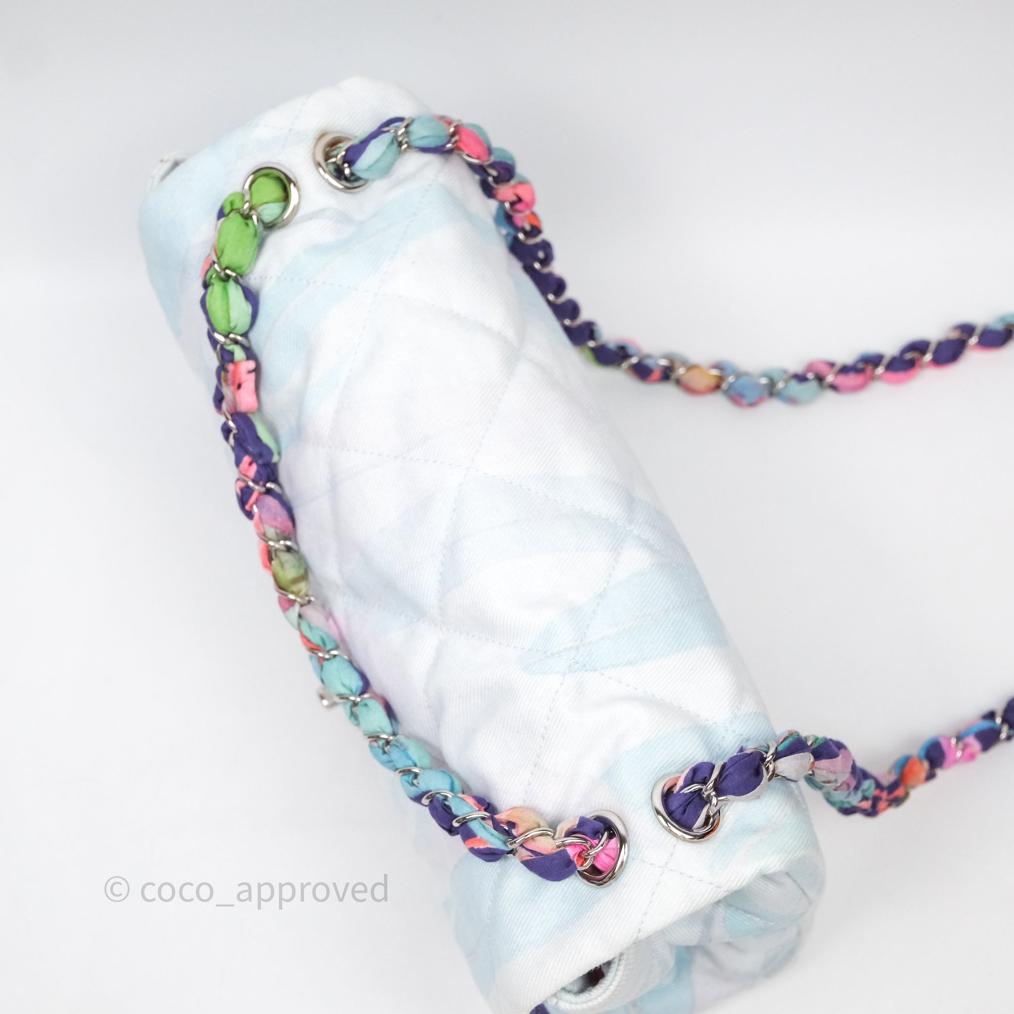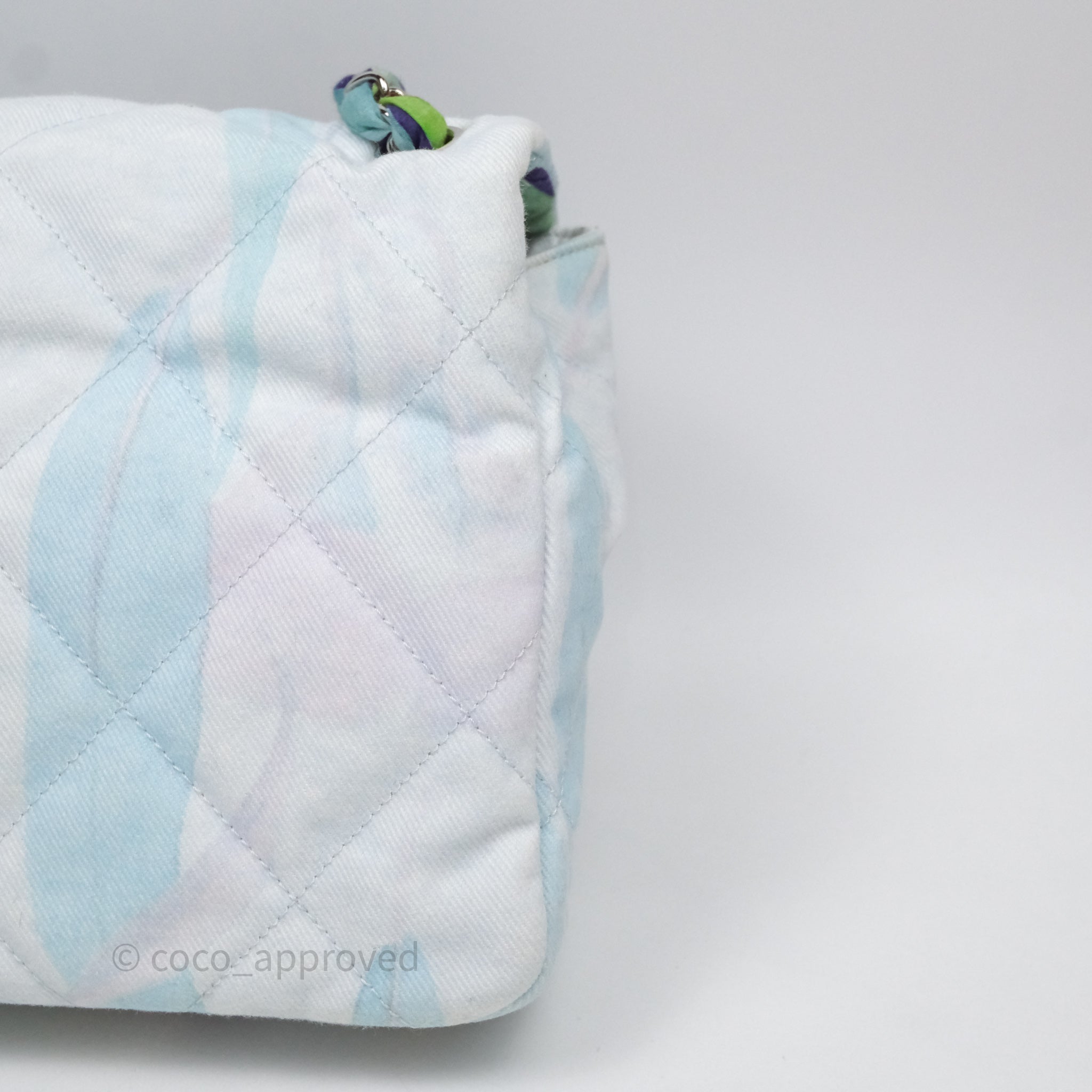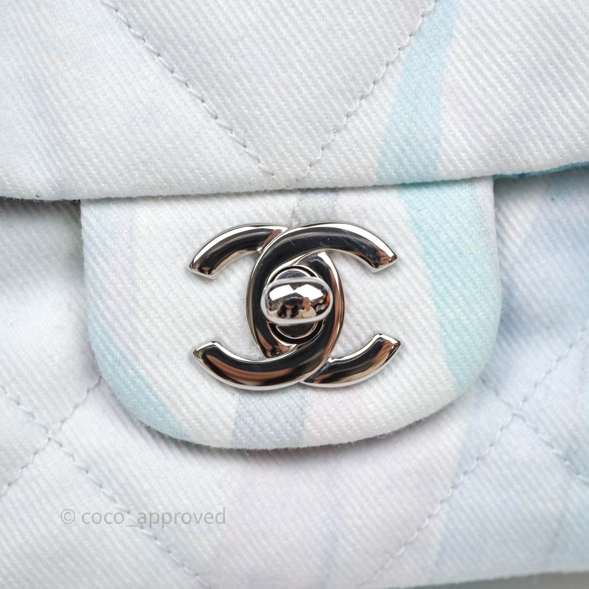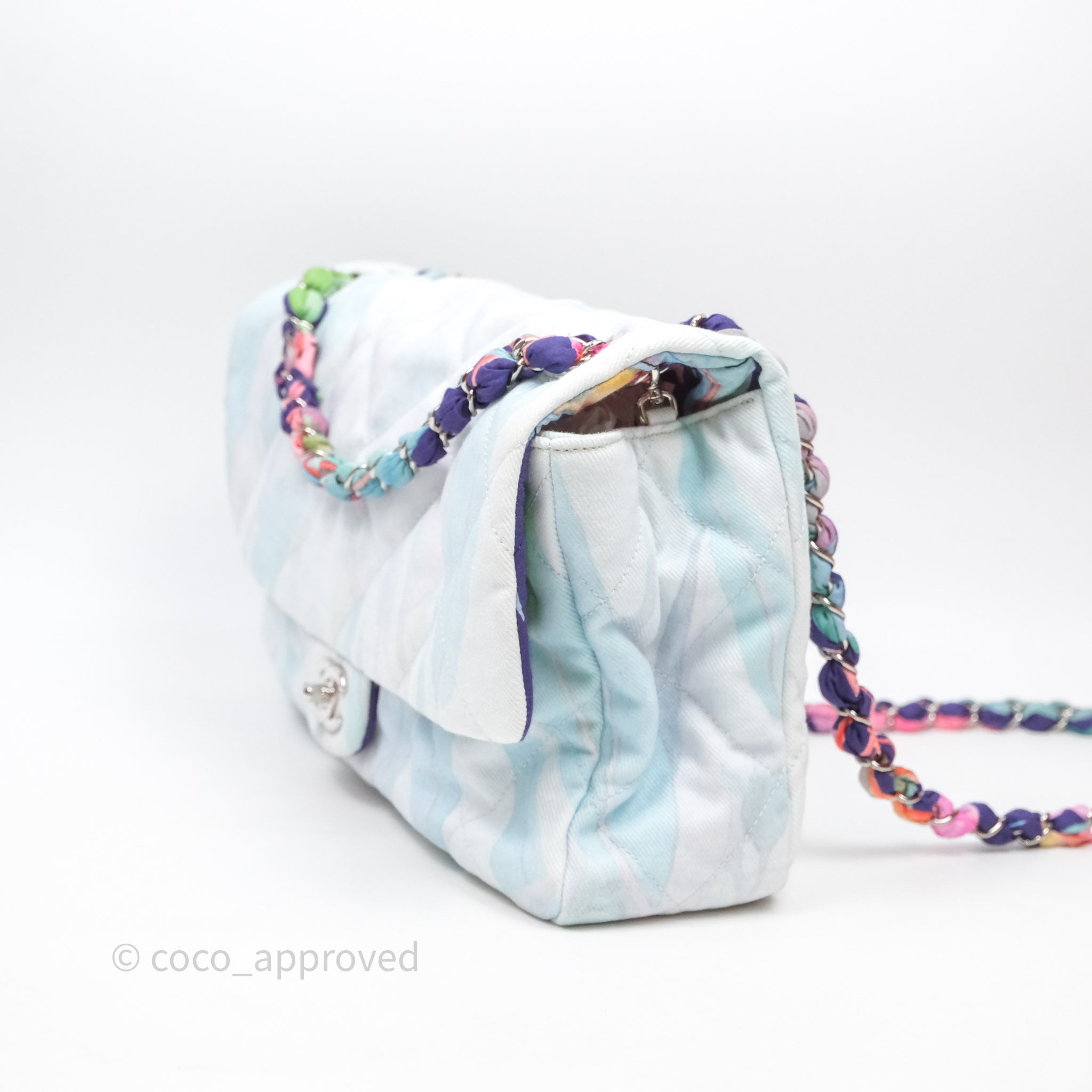 Chanel Single Flap Bag Blue Watercolour Denim Silver Hardware