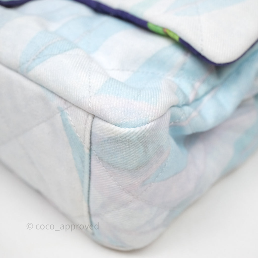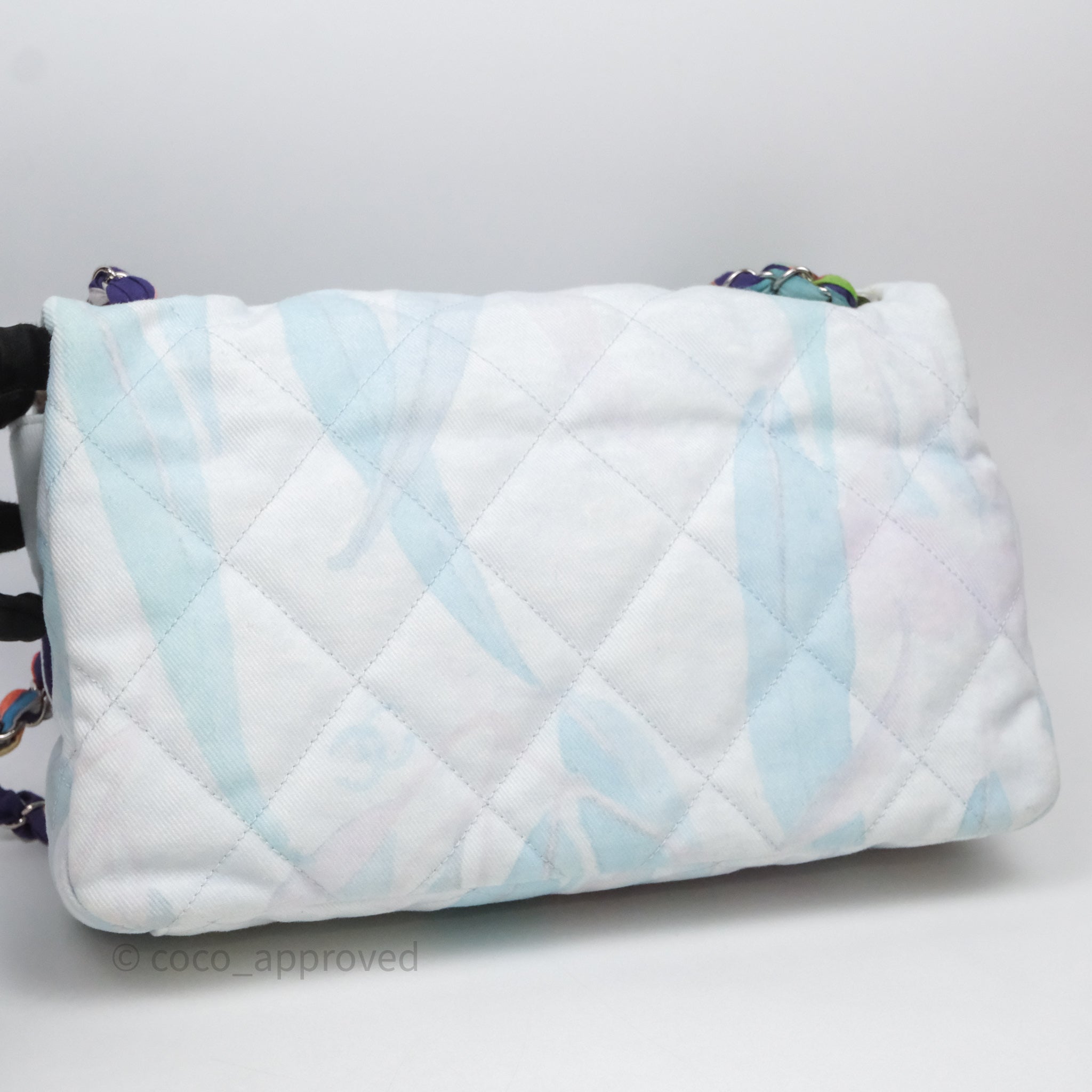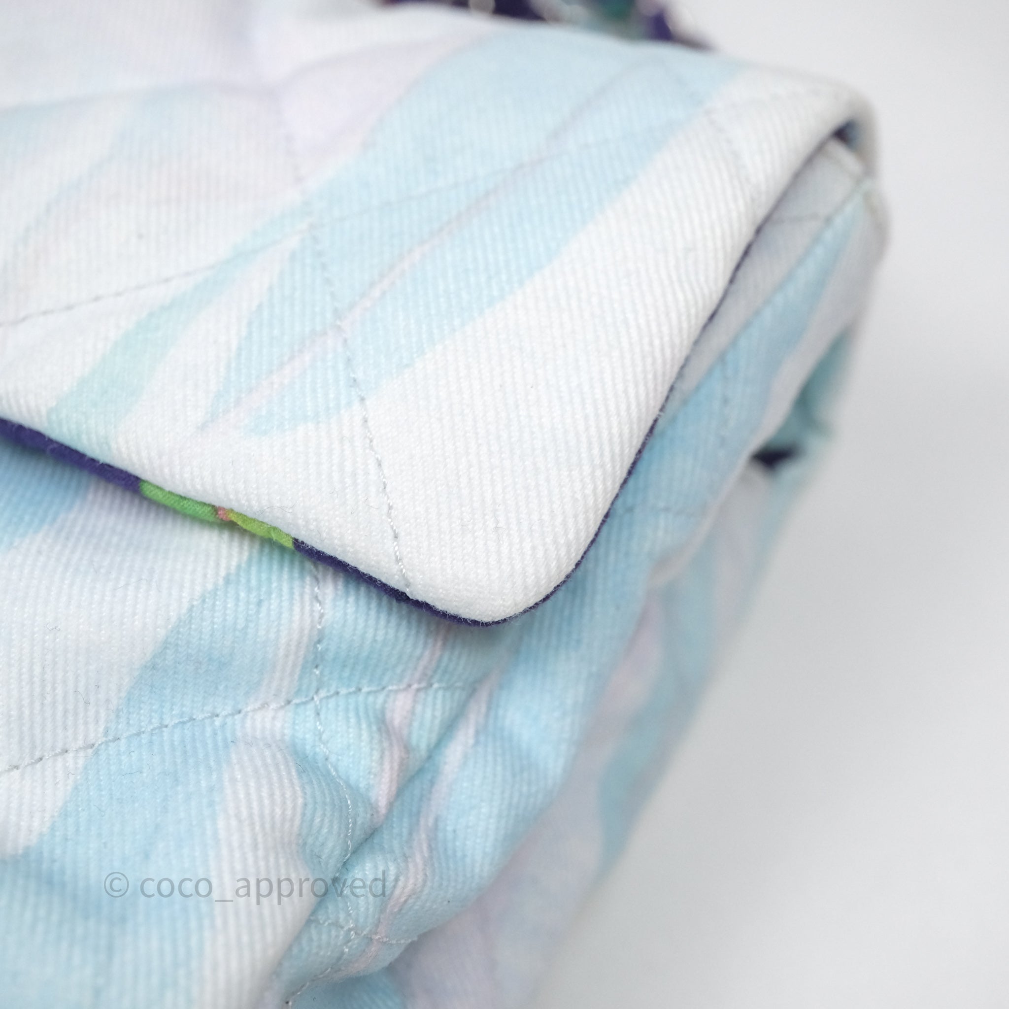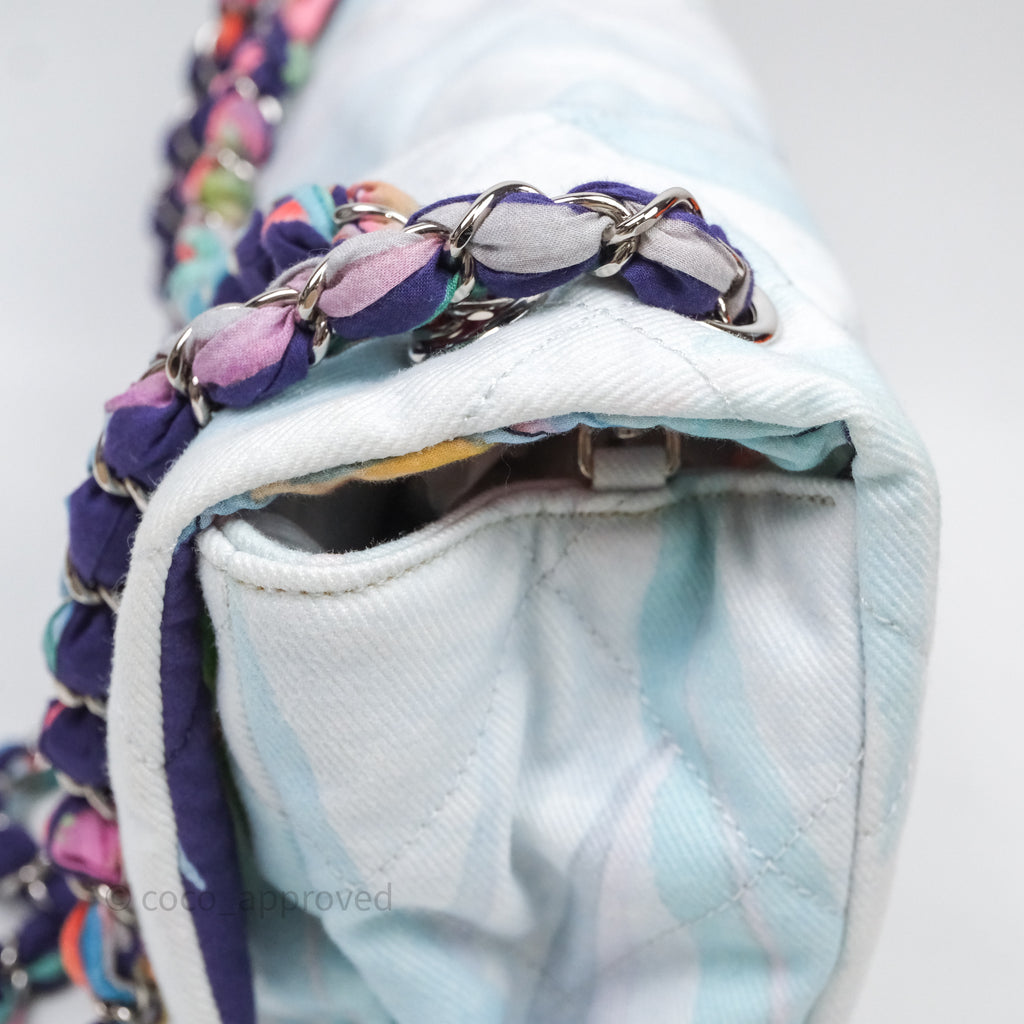 Chanel Single Flap Bag Blue Watercolour Denim Silver Hardware